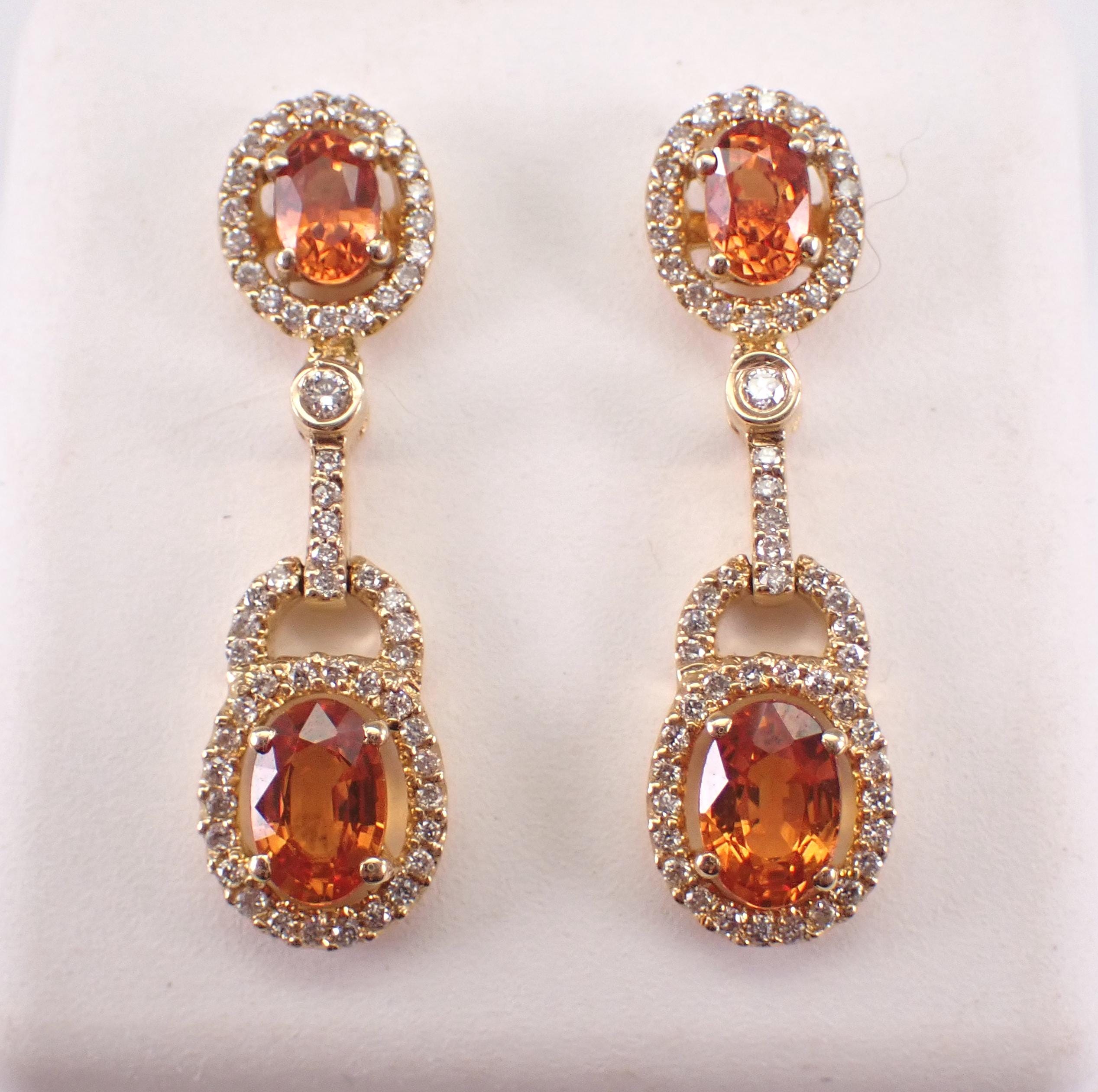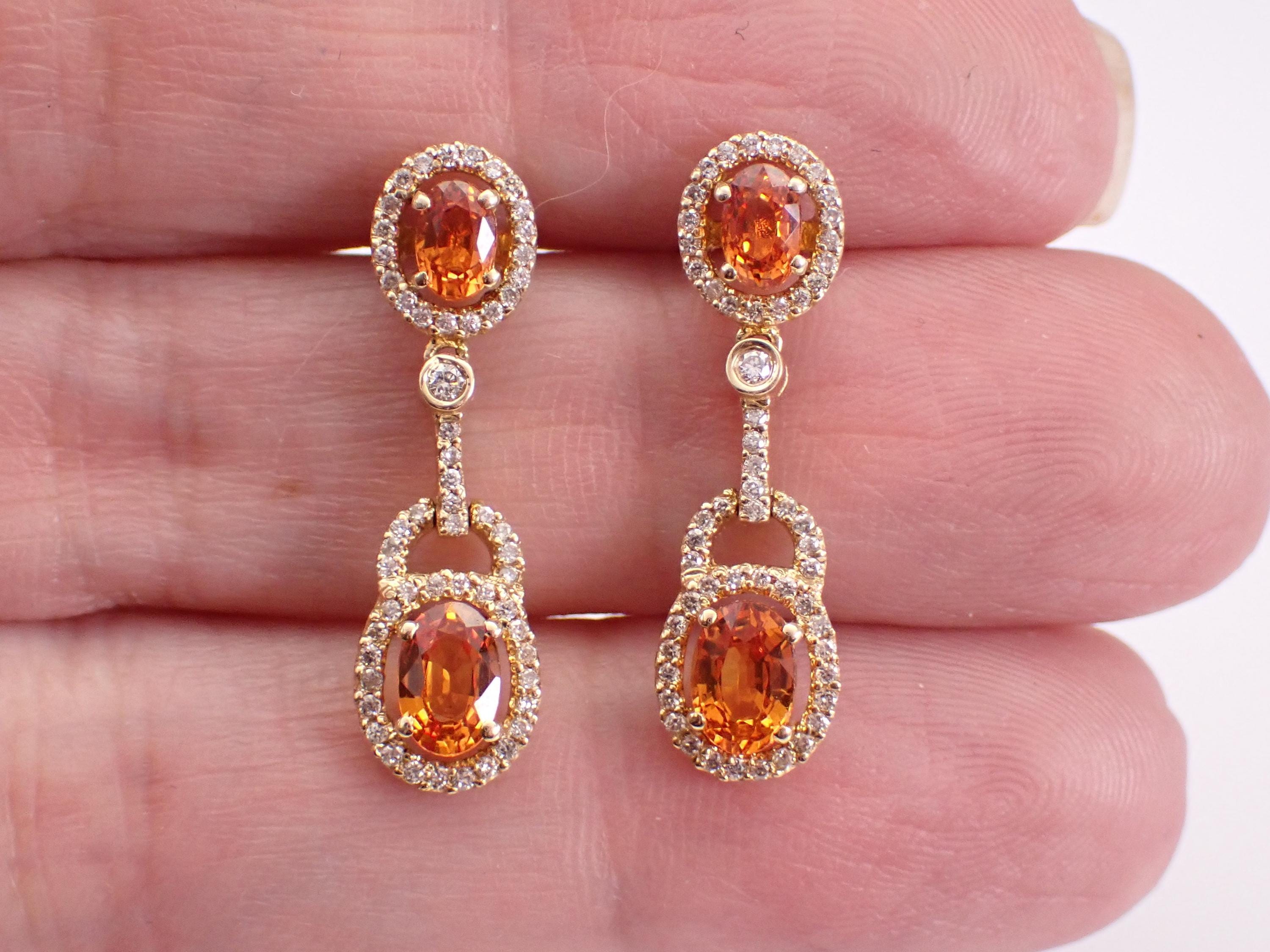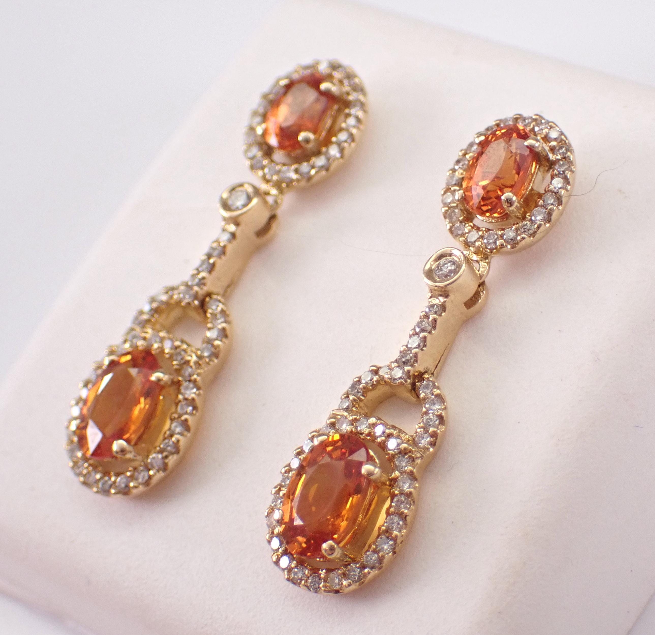 14K Yellow Gold Citrine and Diamond Dangle Earrings.