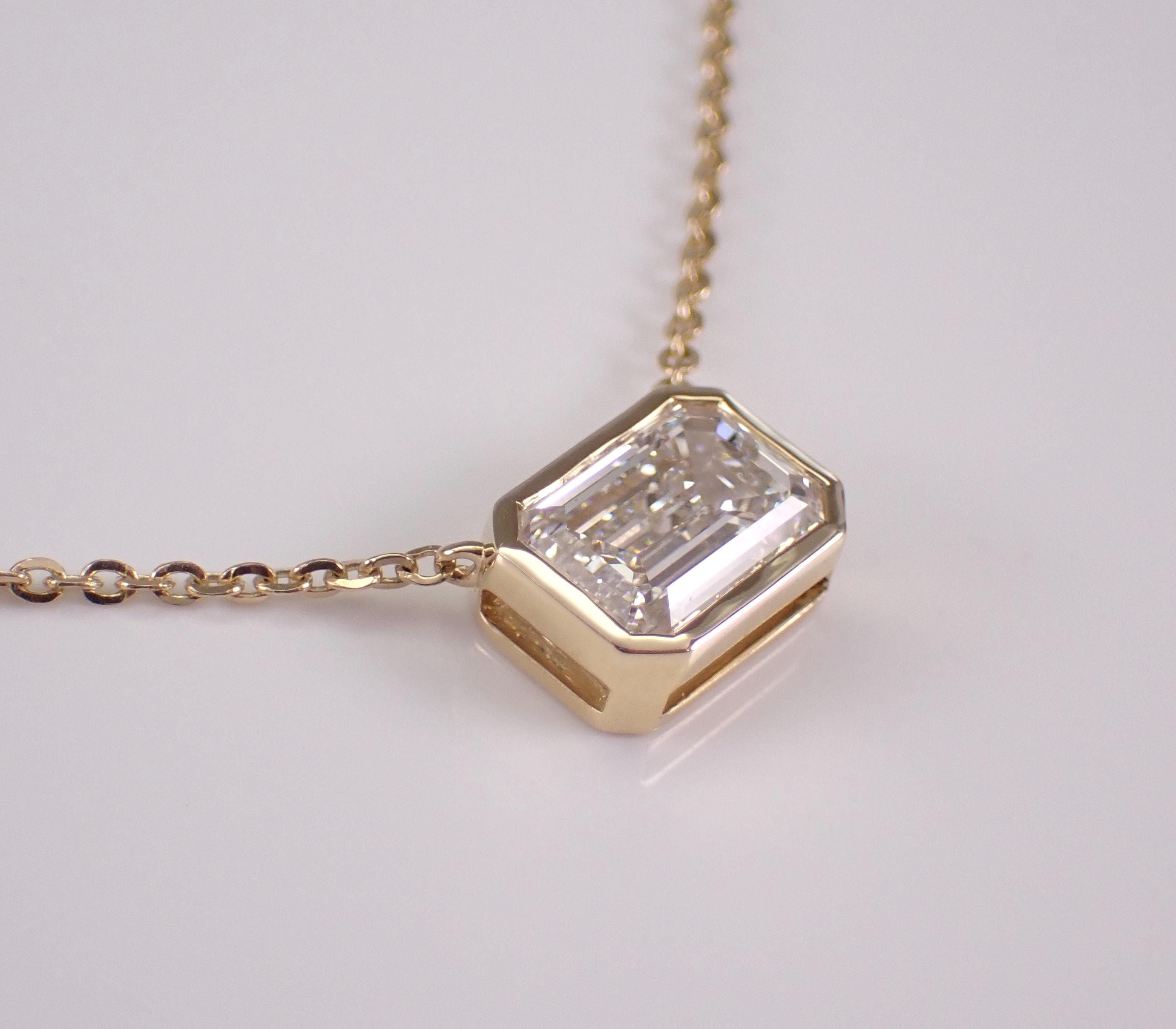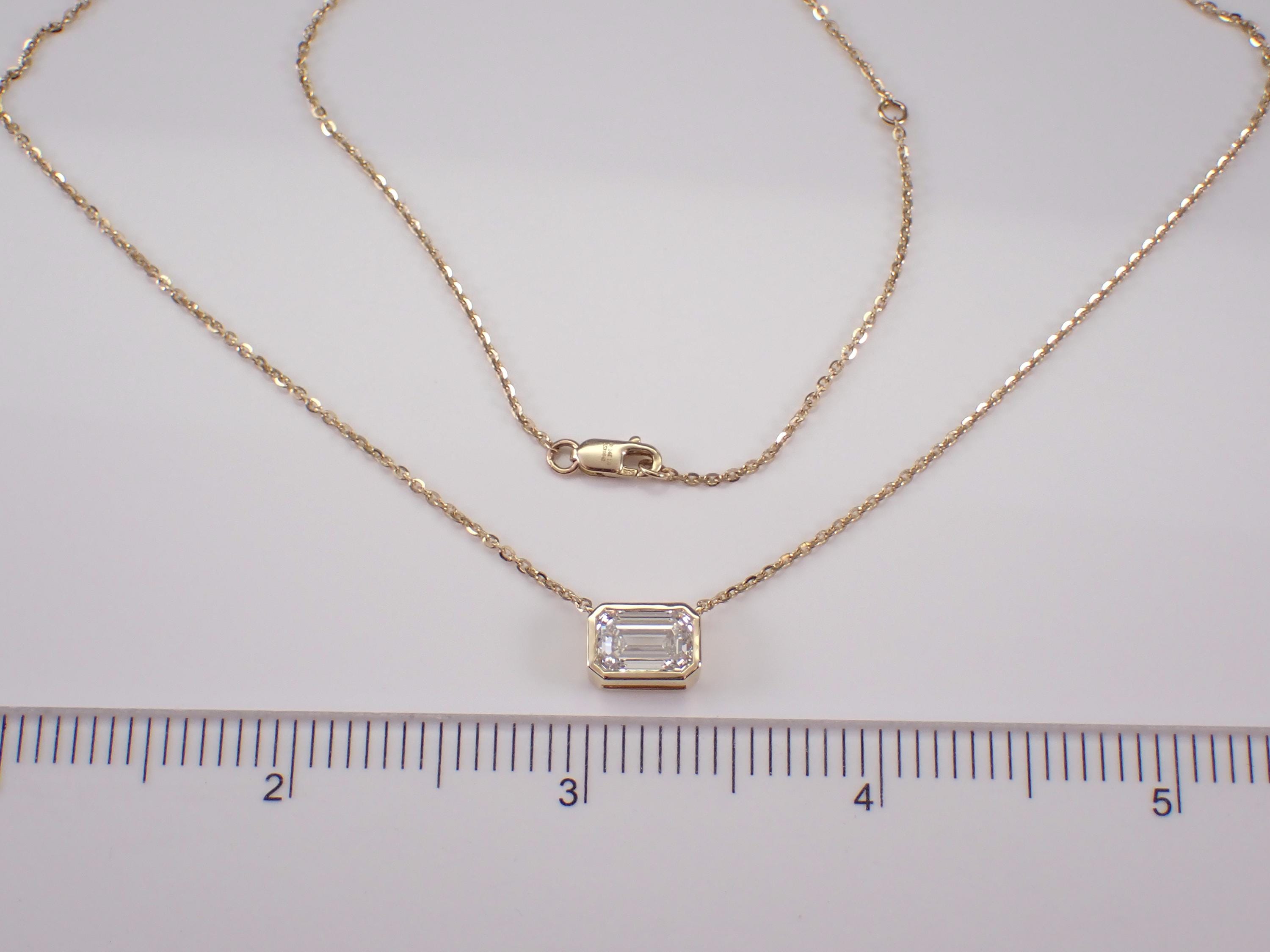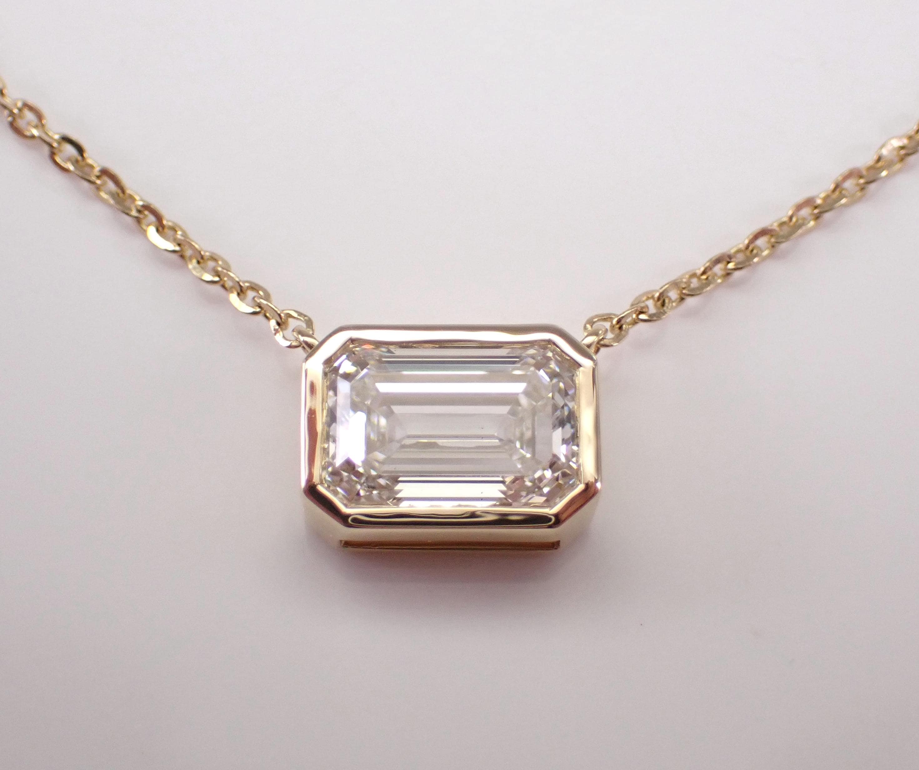 Looking for a stunning diamond pendant that will take your breath away? Look no further than this exquisite Diamond Solitaire Pendant! Made from 14K yellow gold, this pendant features a breathtaking 2.01 carat Emerald Cut Diamond that is sure to capture attention from every angle. The diamond is bezel set to ensure it stays in place and sparkles with every move you make.