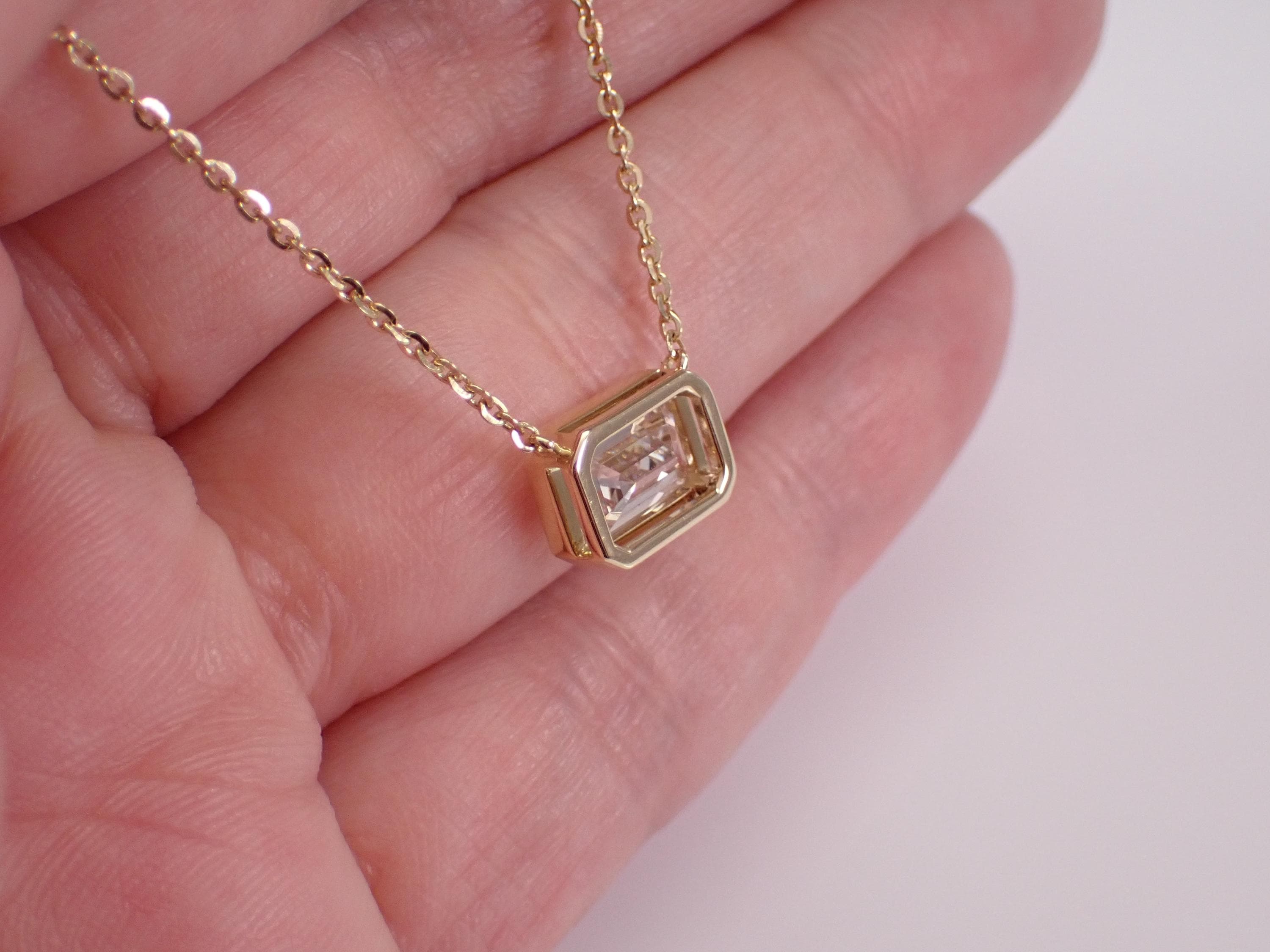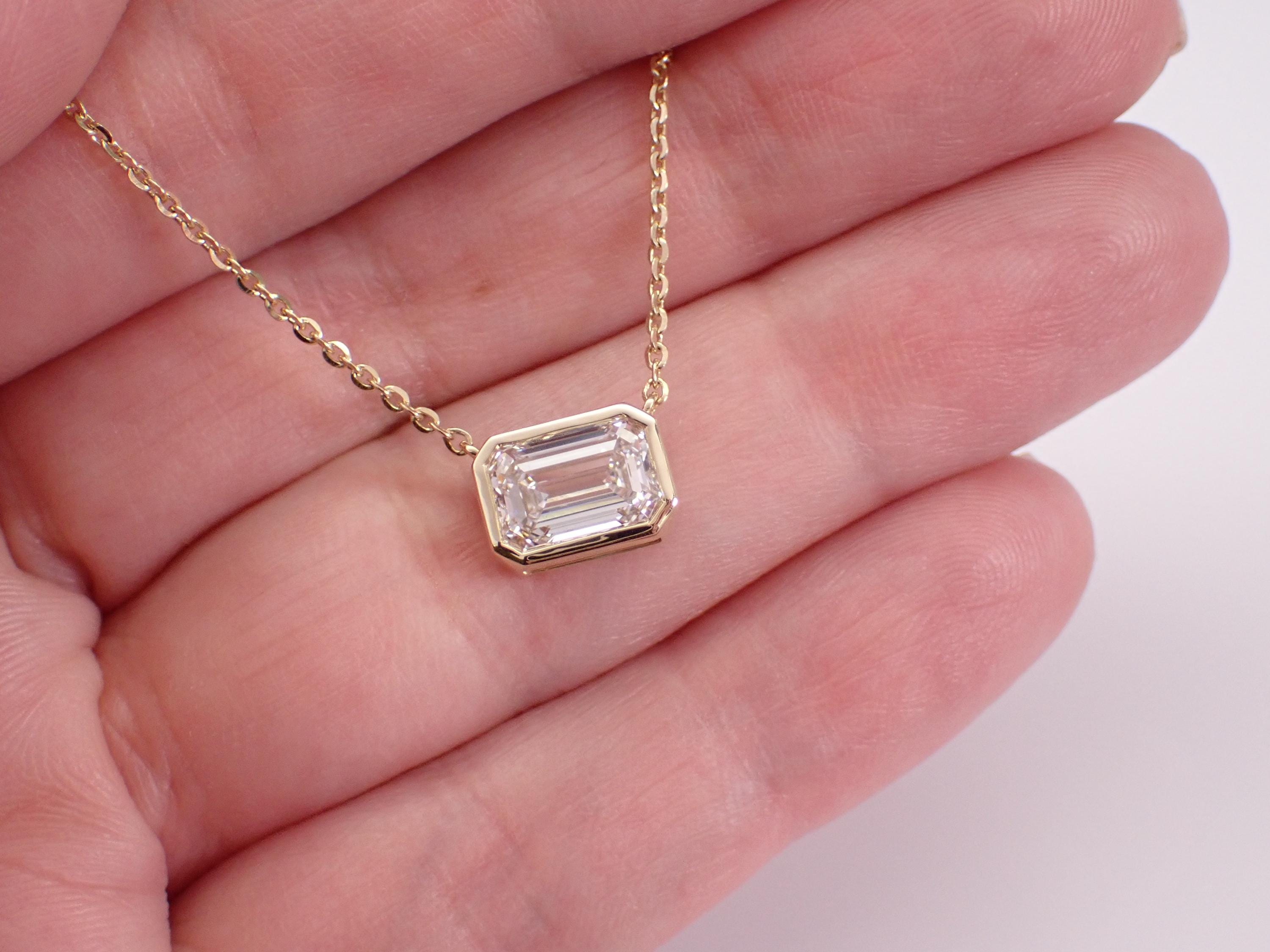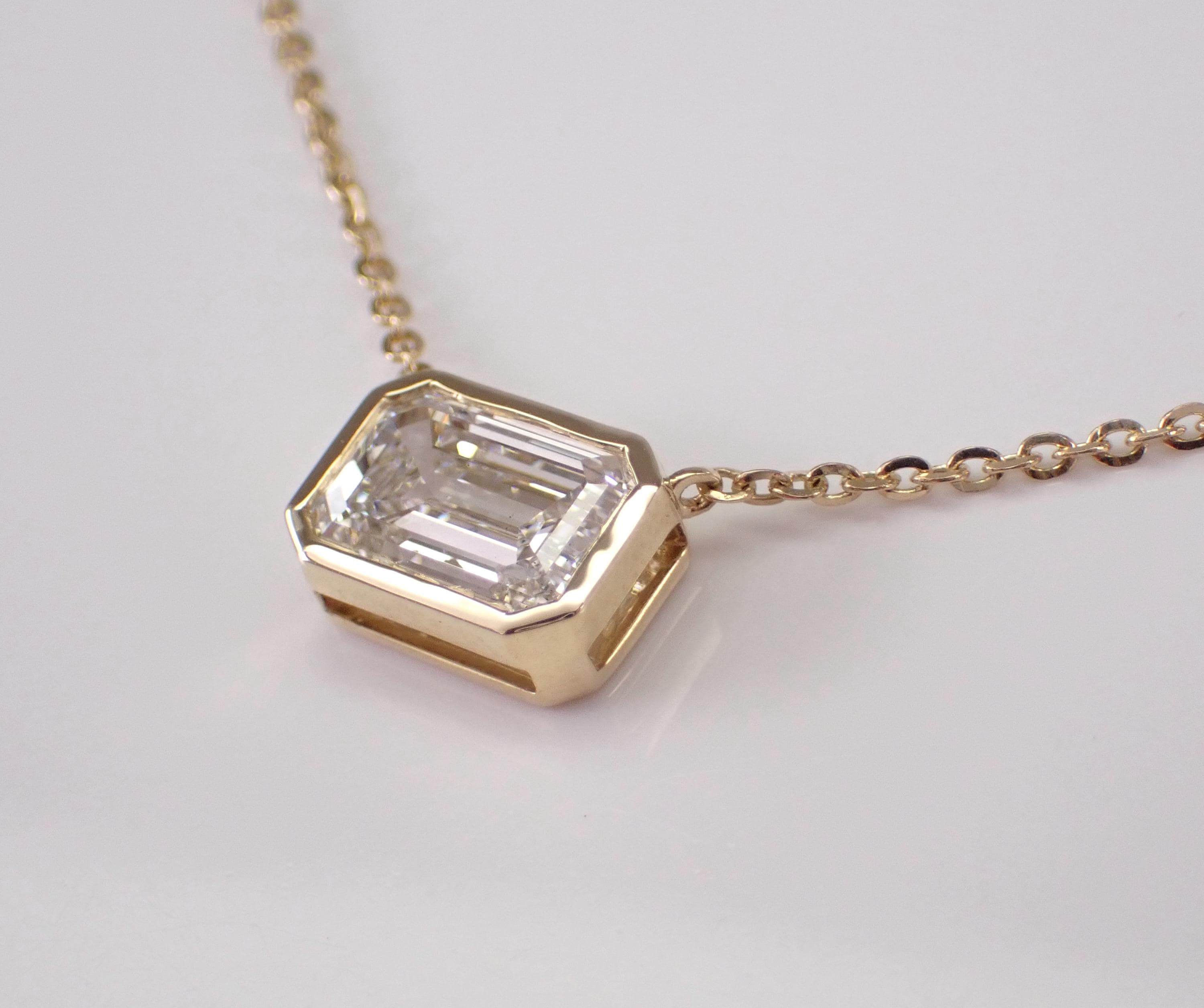 Looking for a stunning diamond pendant that will take your breath away? Look no further than this exquisite Diamond Solitaire Pendant! Made from 14K yellow gold, this pendant features a breathtaking 2.01 carat Emerald Cut Diamond that is sure to capture attention from every angle. The diamond is bezel set to ensure it stays in place and sparkles with every move you make.