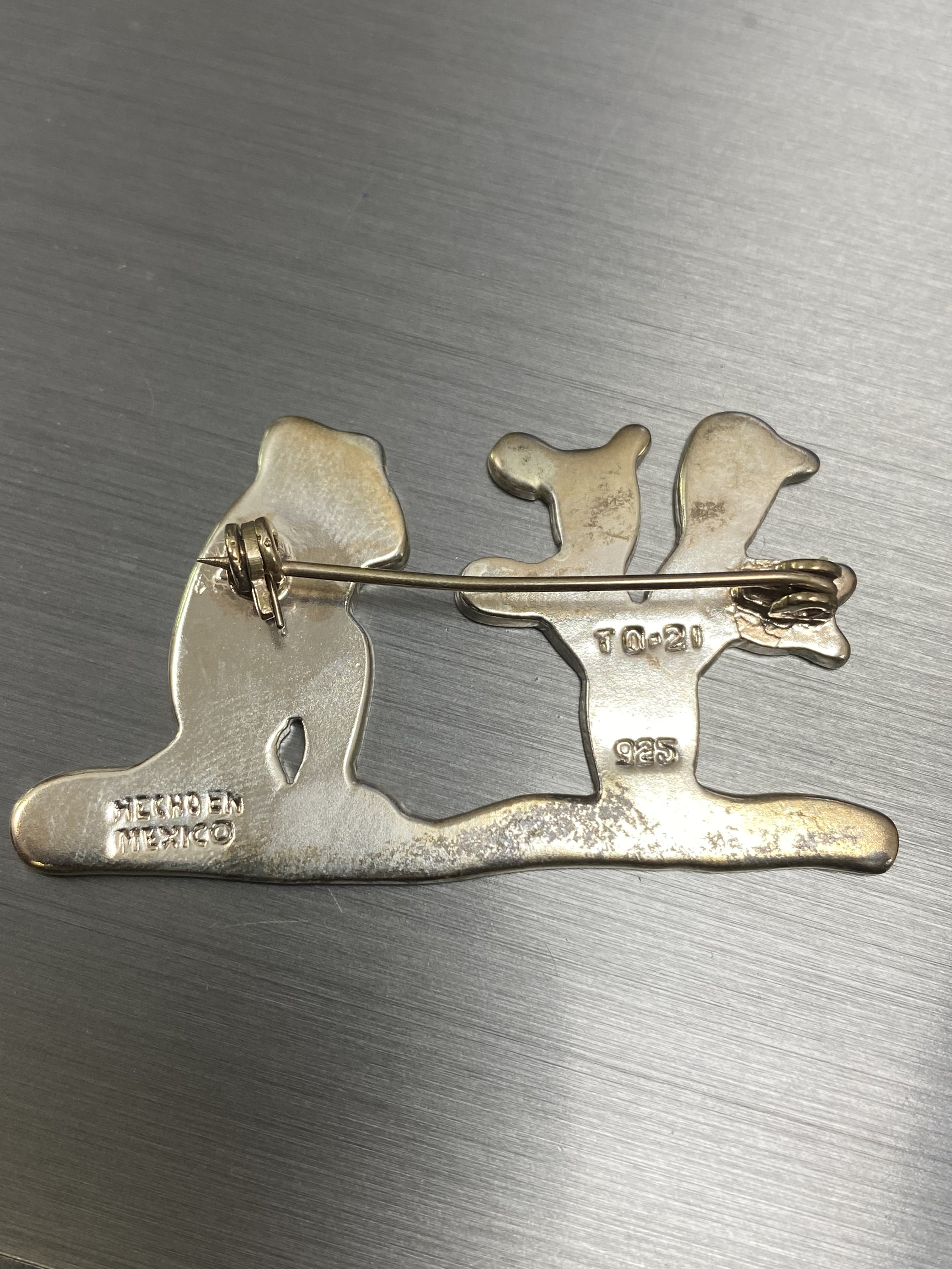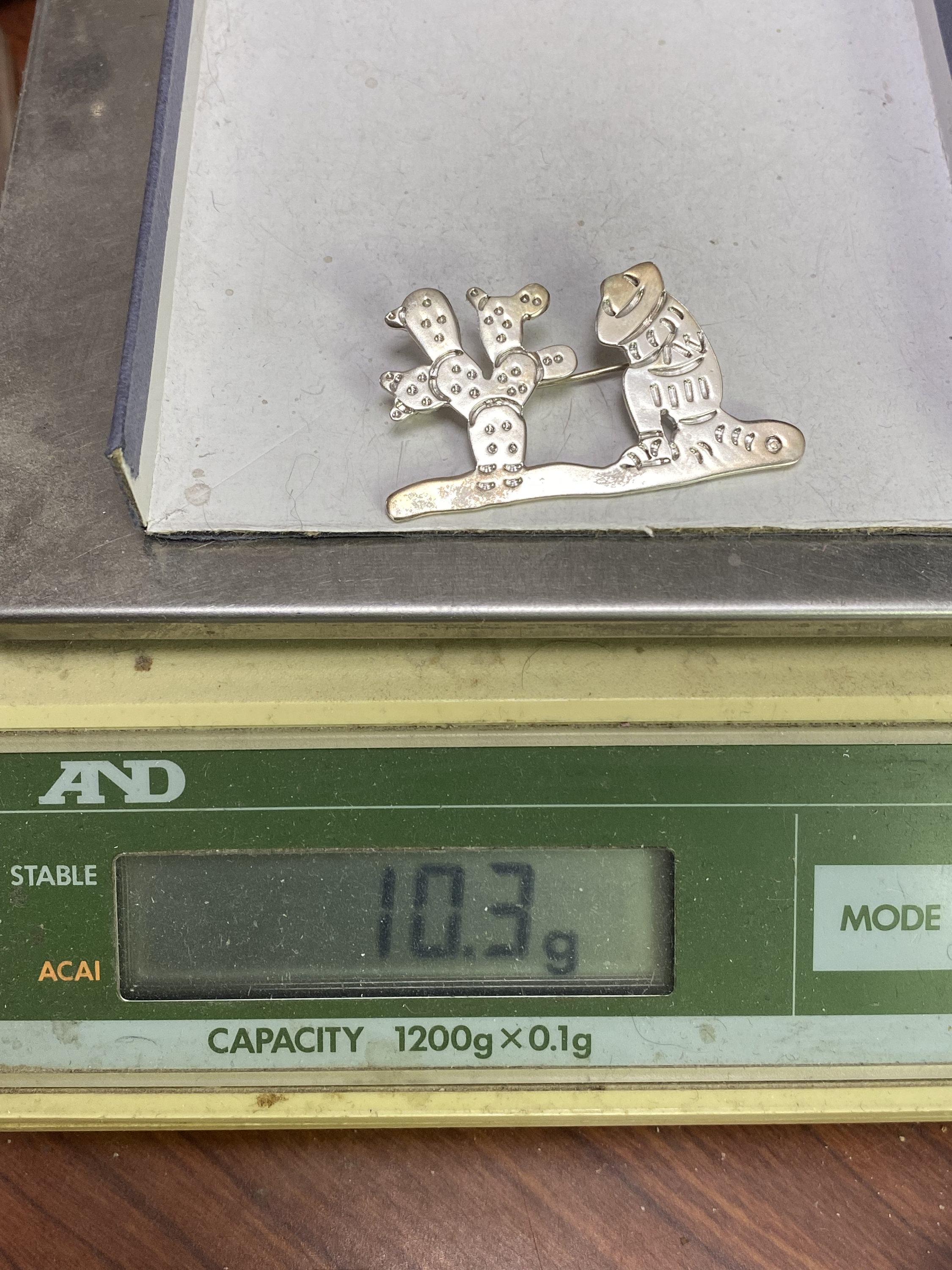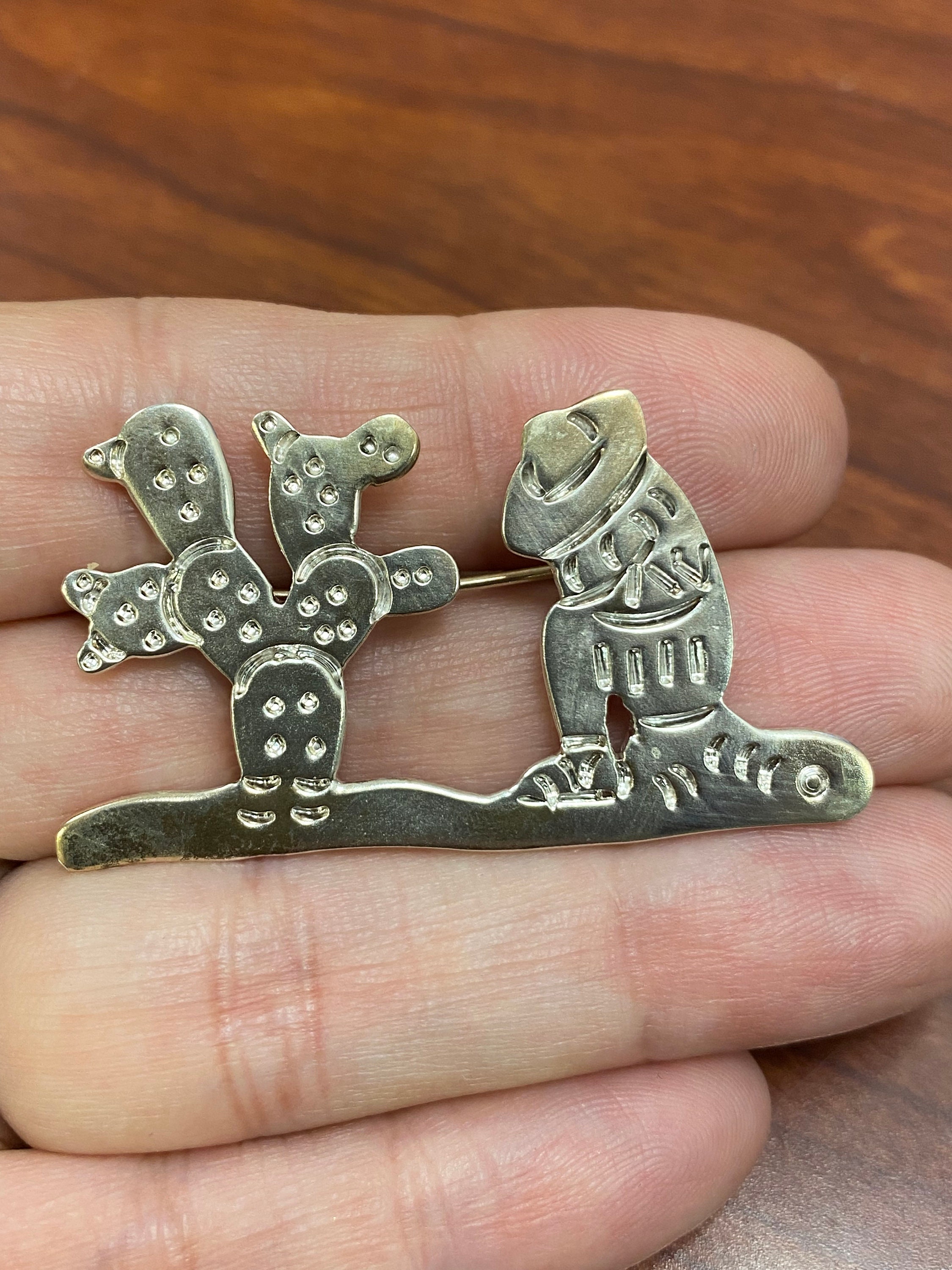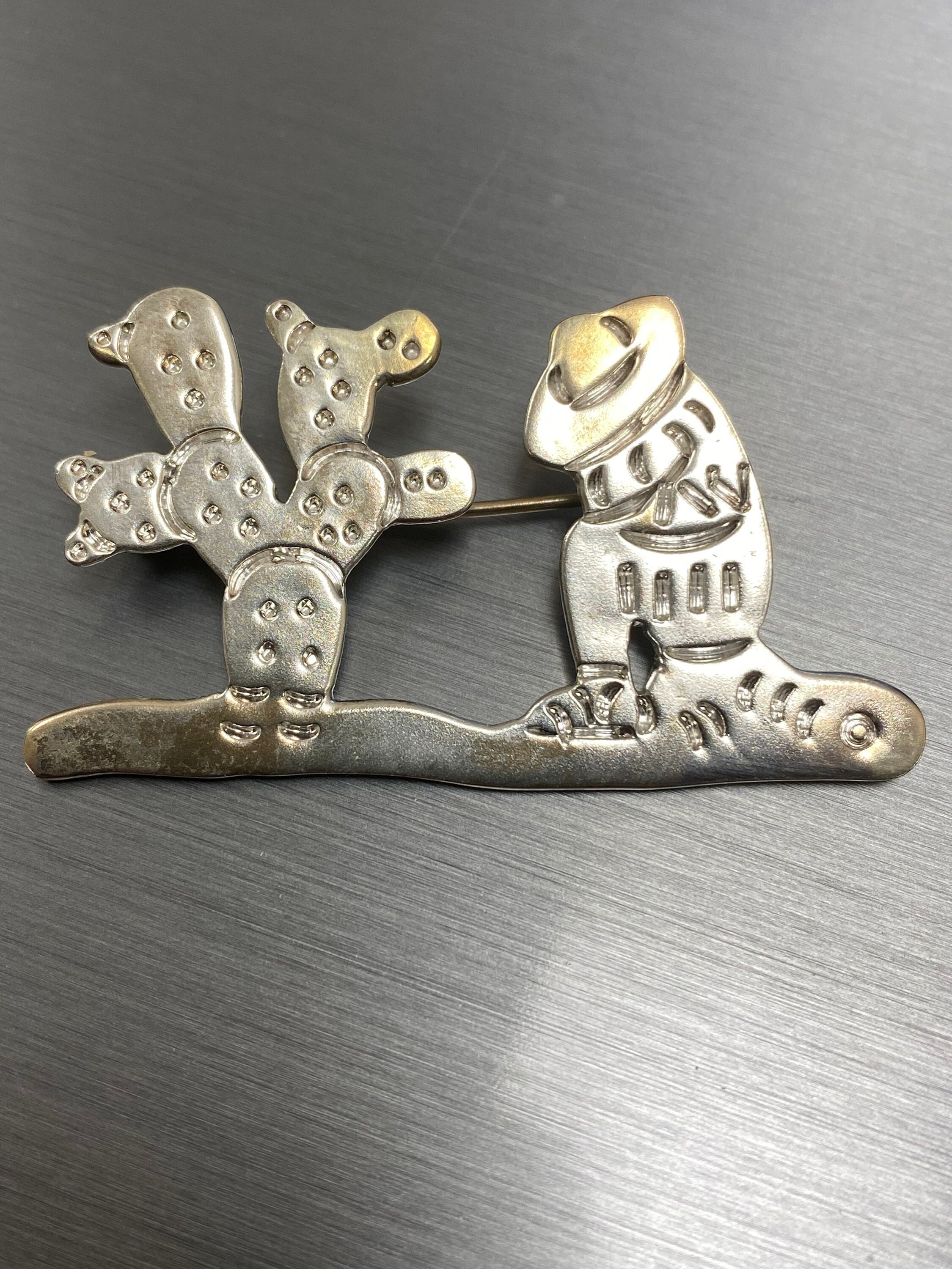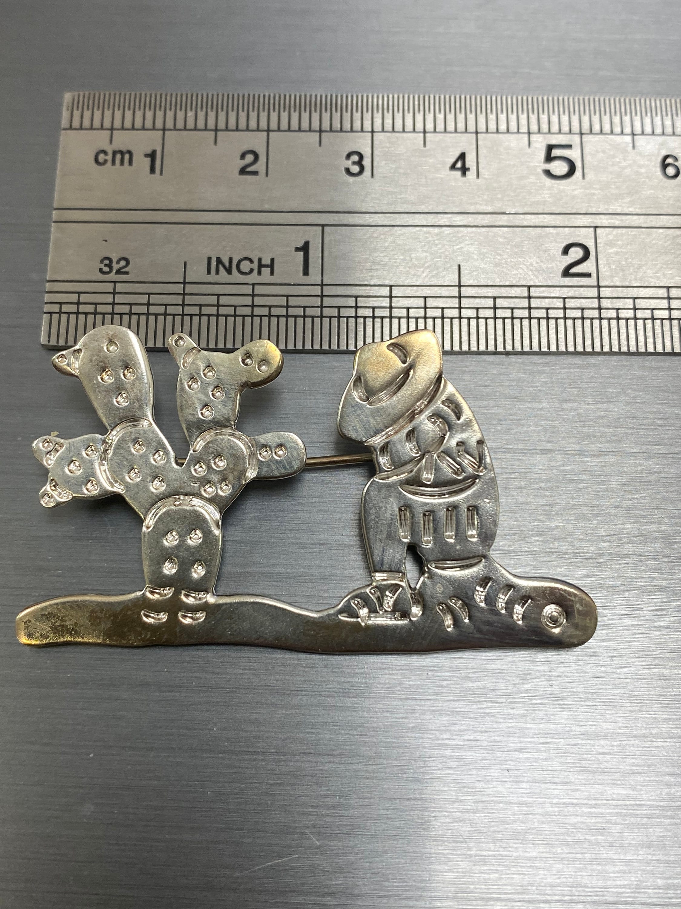 Genuine sterling silver unique artisan brooch. Stamped 925 for Sterling Silver, weighs 10.3 grams and measures just under 2 inches in length. Really interesting Southwest scenic design. I will ship this unique brooch promptly in a gift pouch.