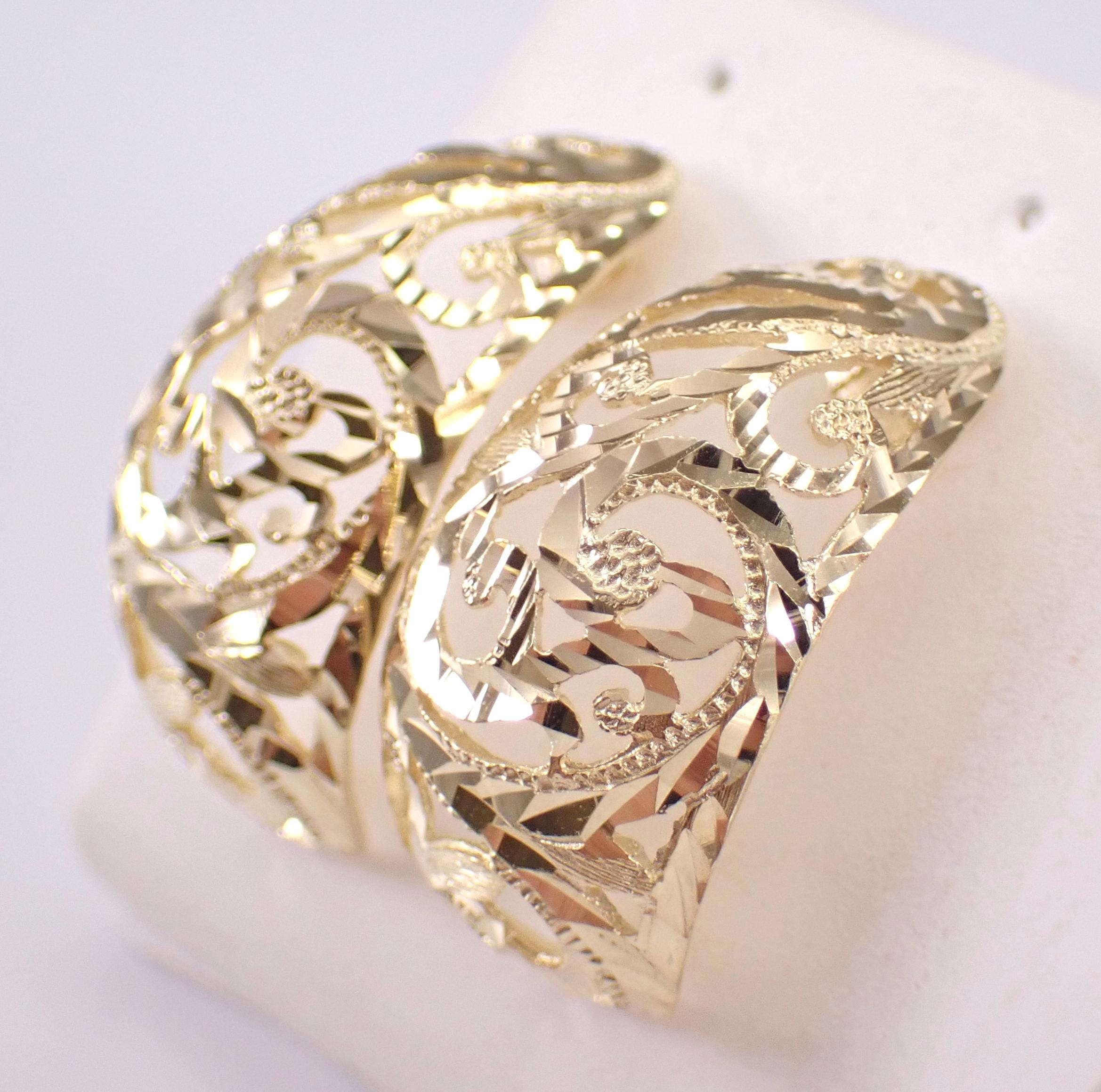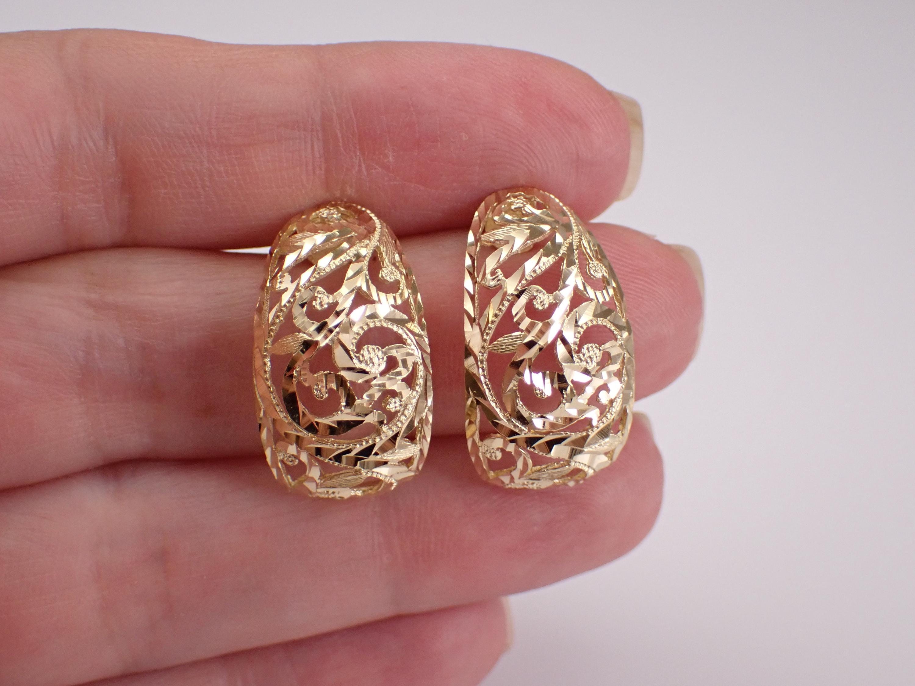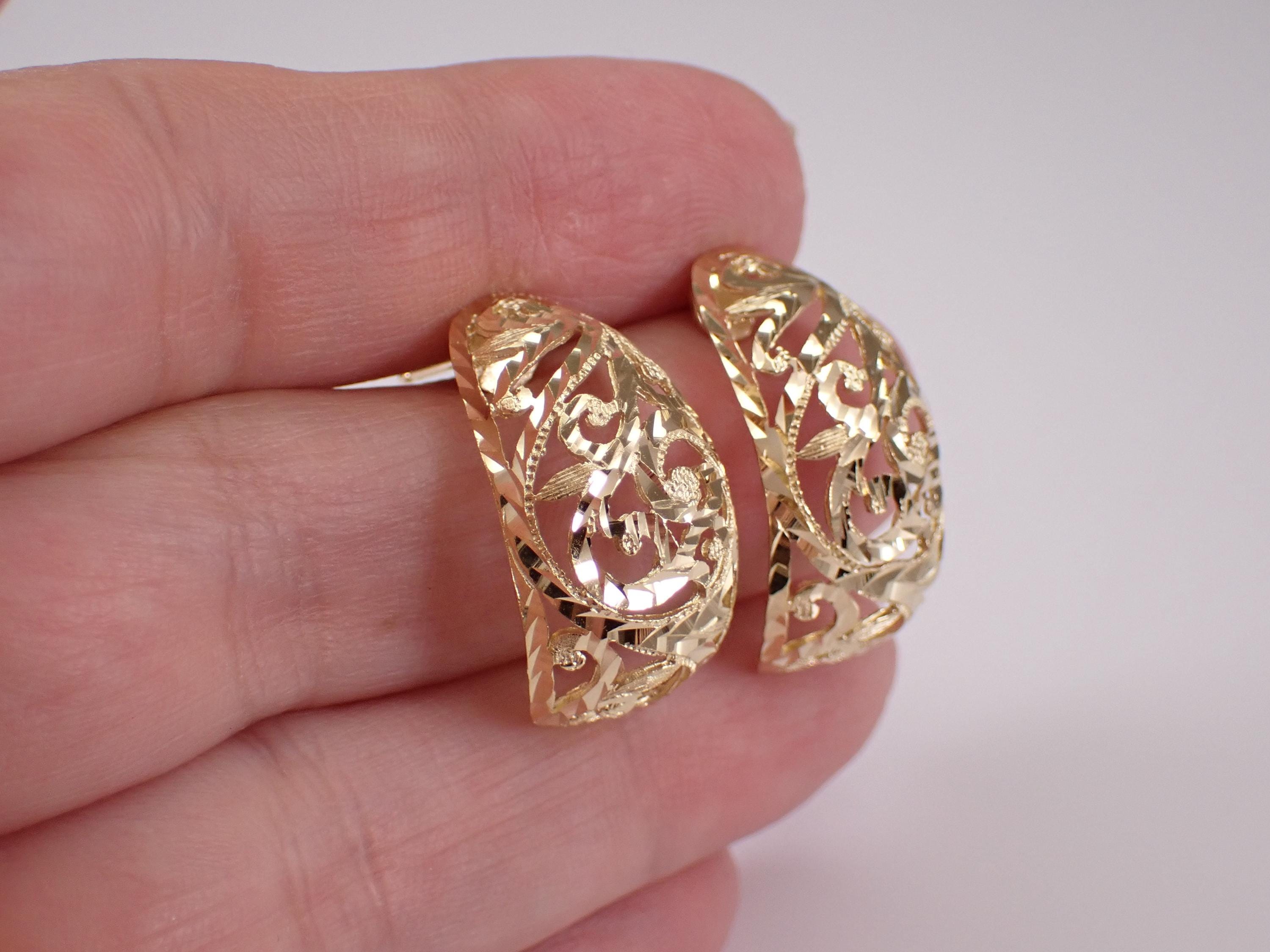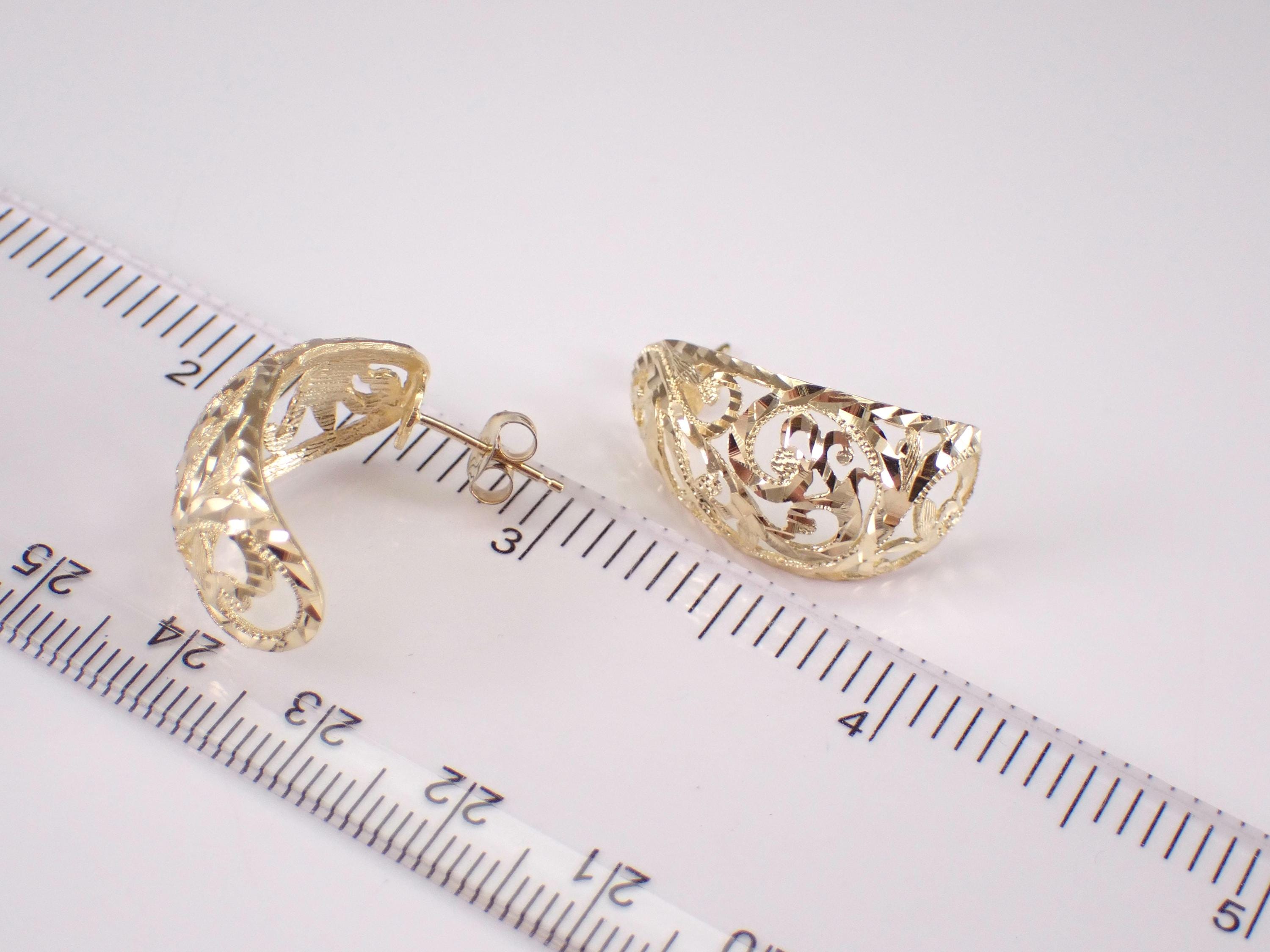 Vintage 14K Yellow Gold Half Hoop Earrings. These earrings weigh 4.4 grams and friction back posts for pierced ears. These earrings measure 13.5 mm in width and 24 mm in length. I will ship these earrings promptly in a gift box.