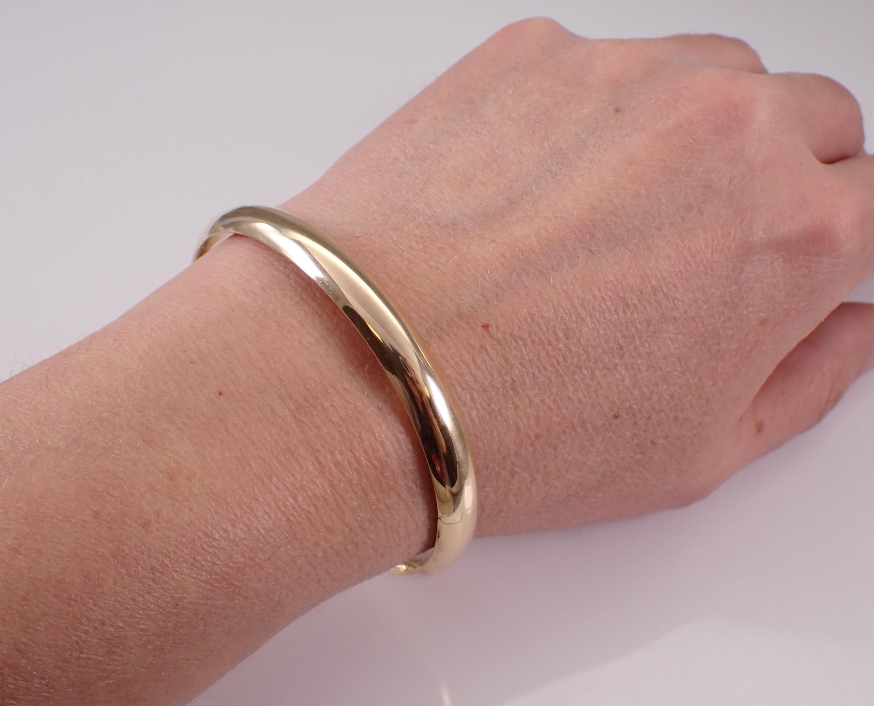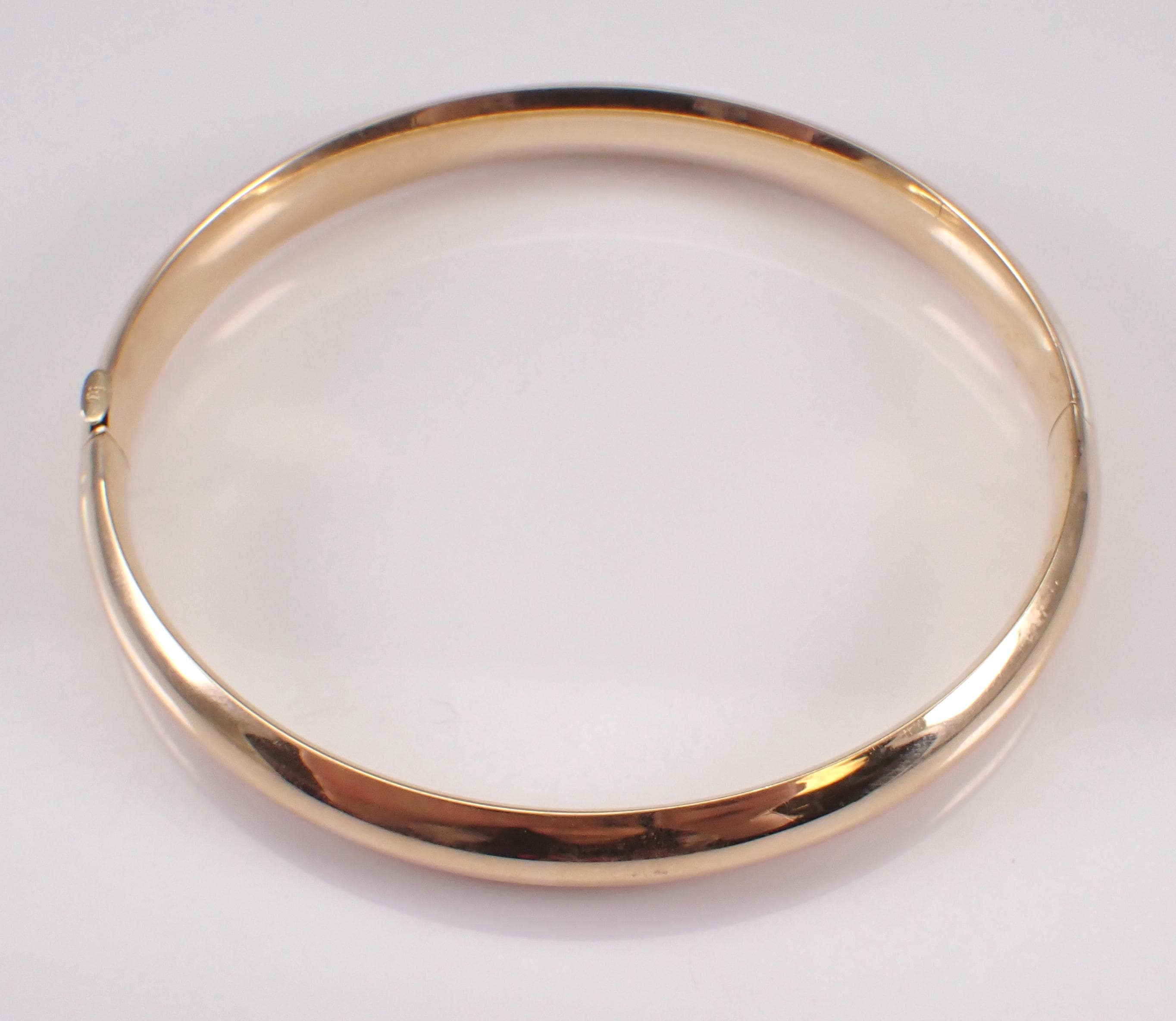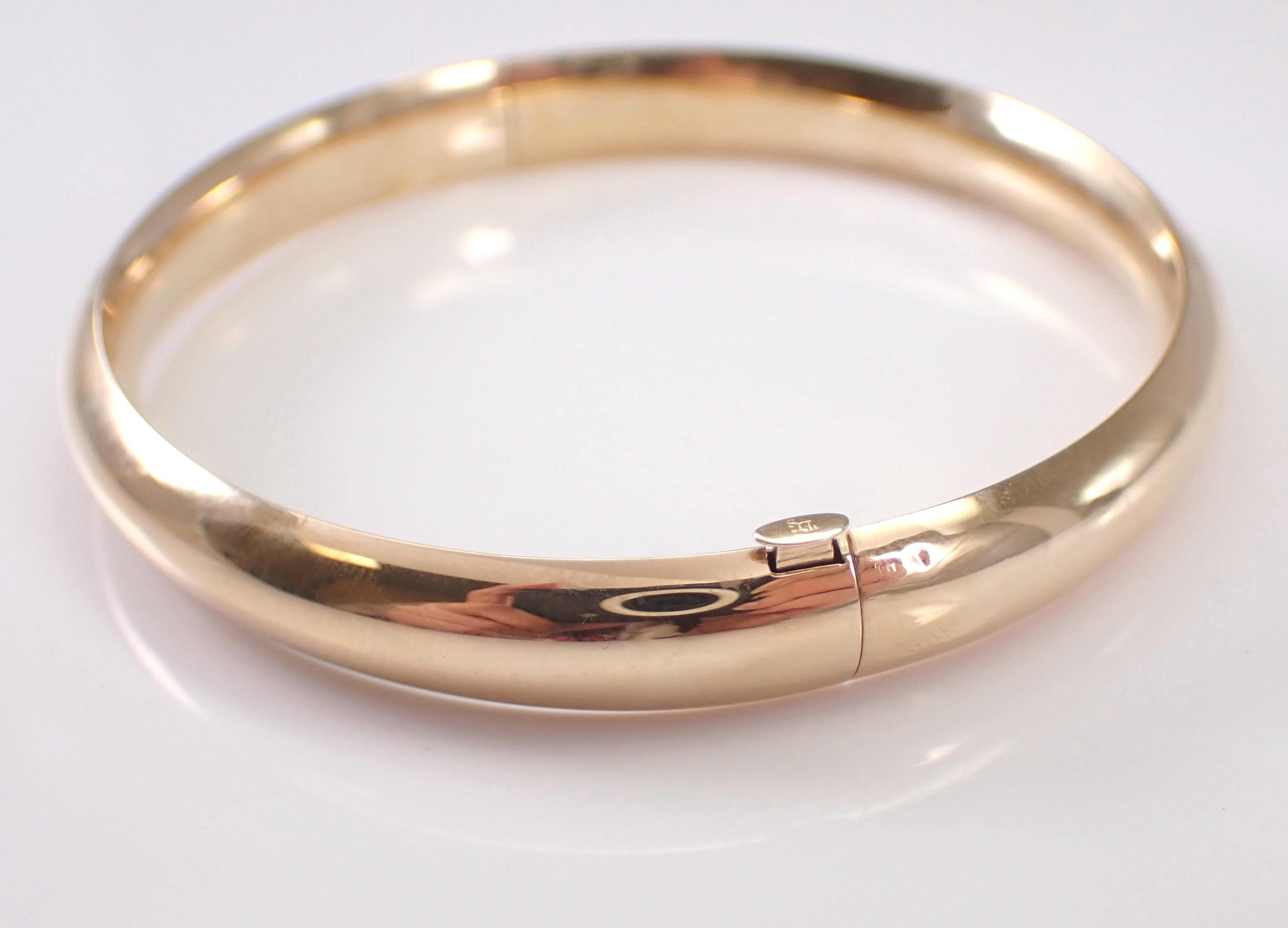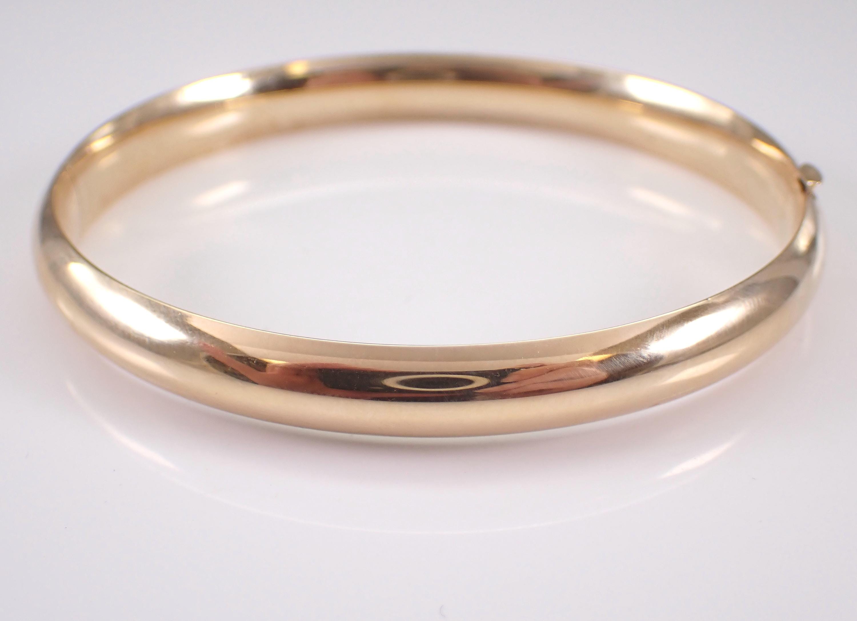 Vintage 14K Yellow Gold Bangle Bracelet. This bracelet weighs 9.2 grams, measures 7.5 mm in width and measures 7" in overall length. This bracelet will be accompanied by an appraisal by a GIA Certified Diamond Grader with the retail replacement value of $2,485.00. I will ship this bracelet promptly in a gift box.