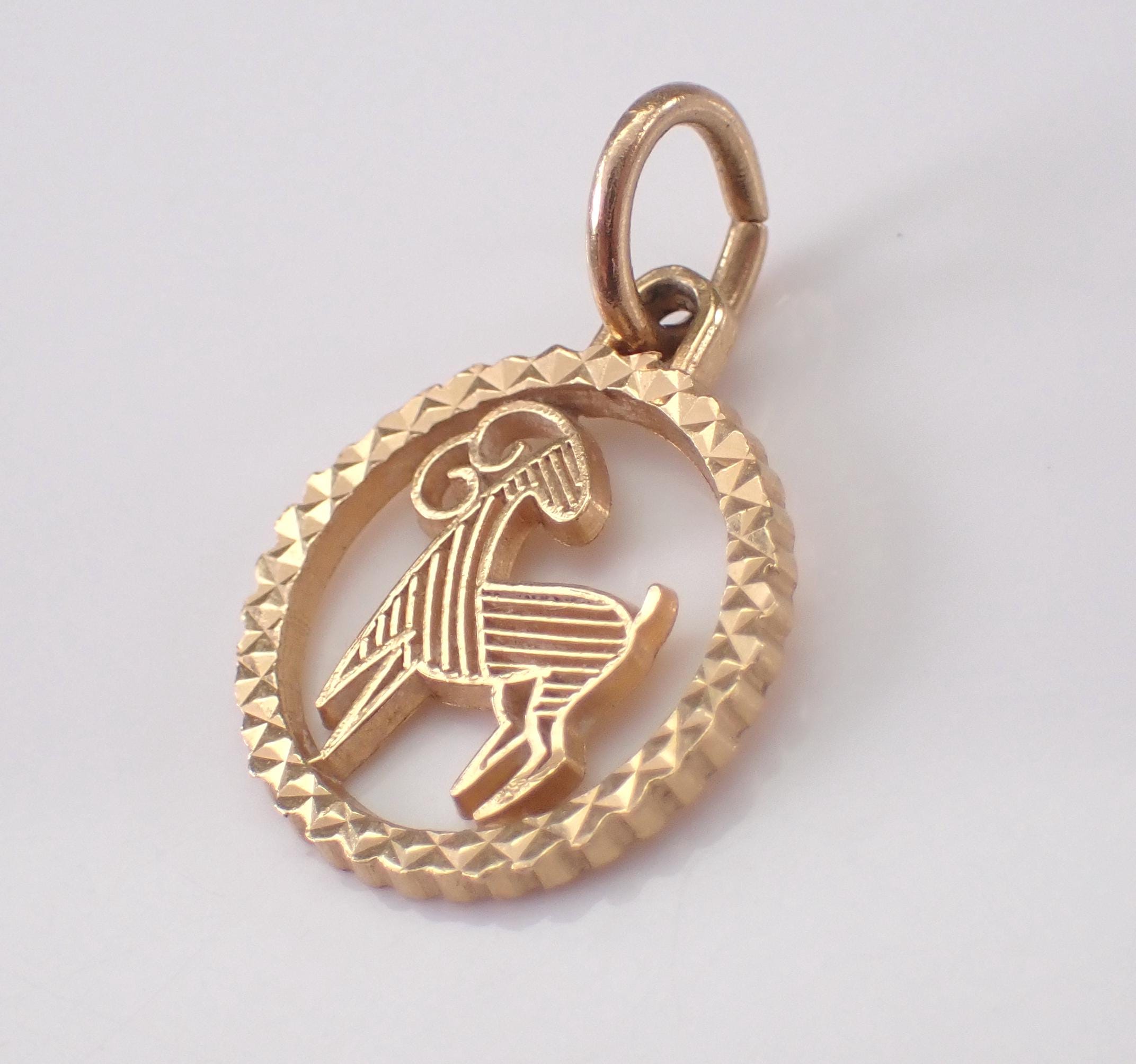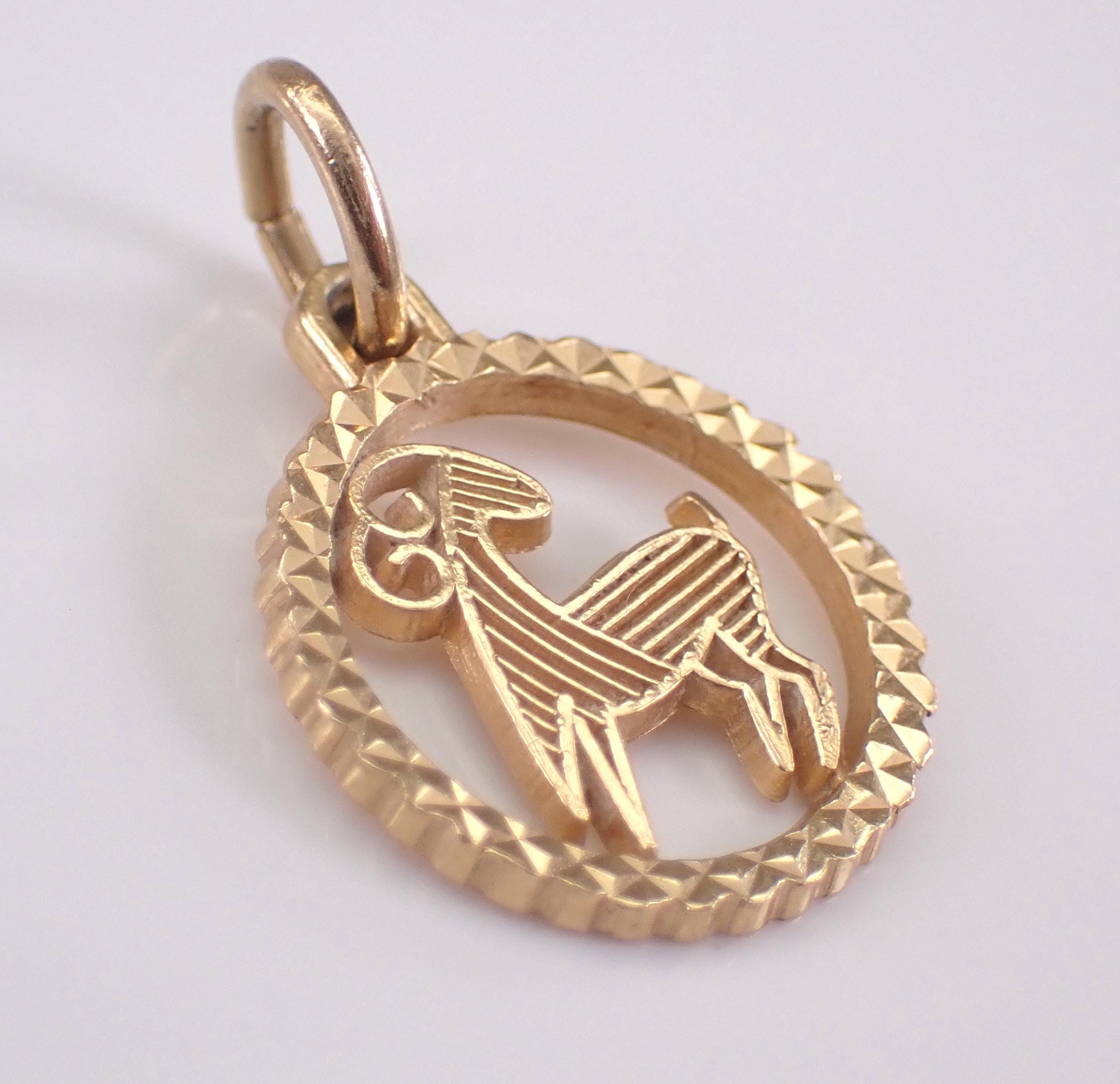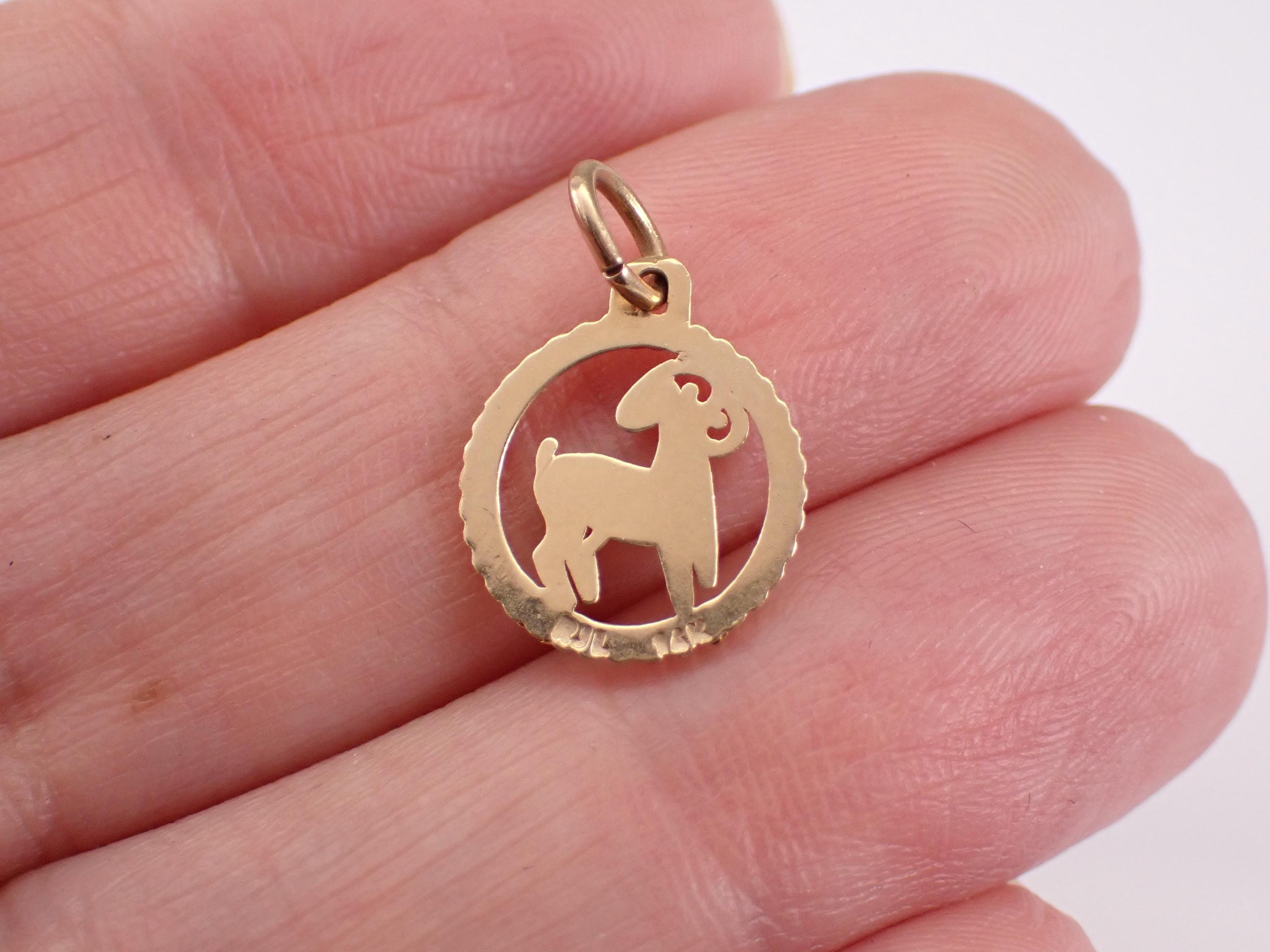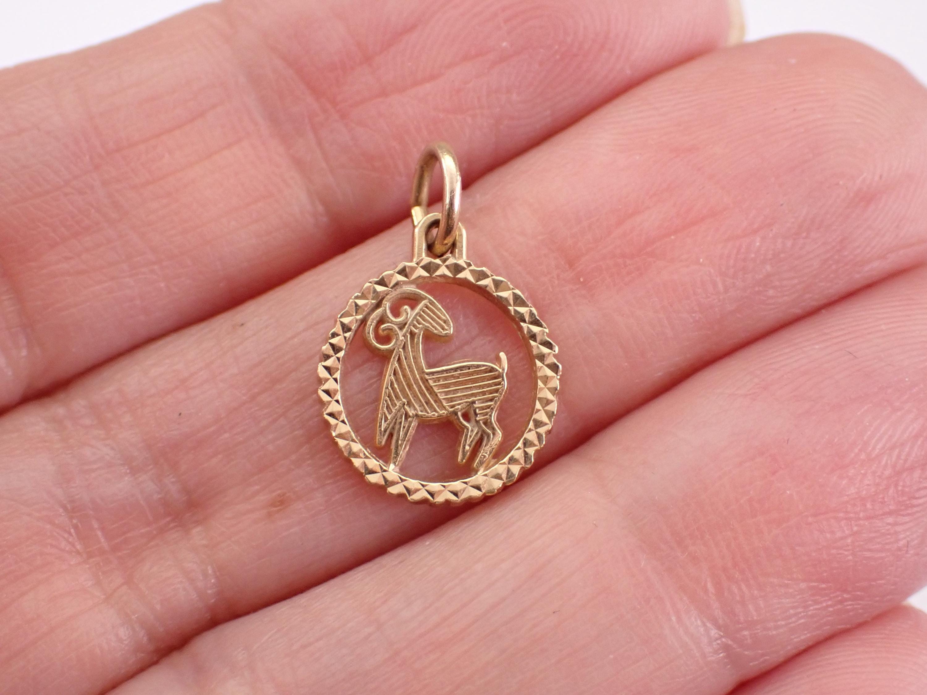 Vintage 14K Yellow Gold Capricorn Charm Pendant. This charm is 14K Solid Yellow gold and measures 12mm in diameter. This pendant weighs .9 grams. I will ship this pendant promptly in a gift pouch.