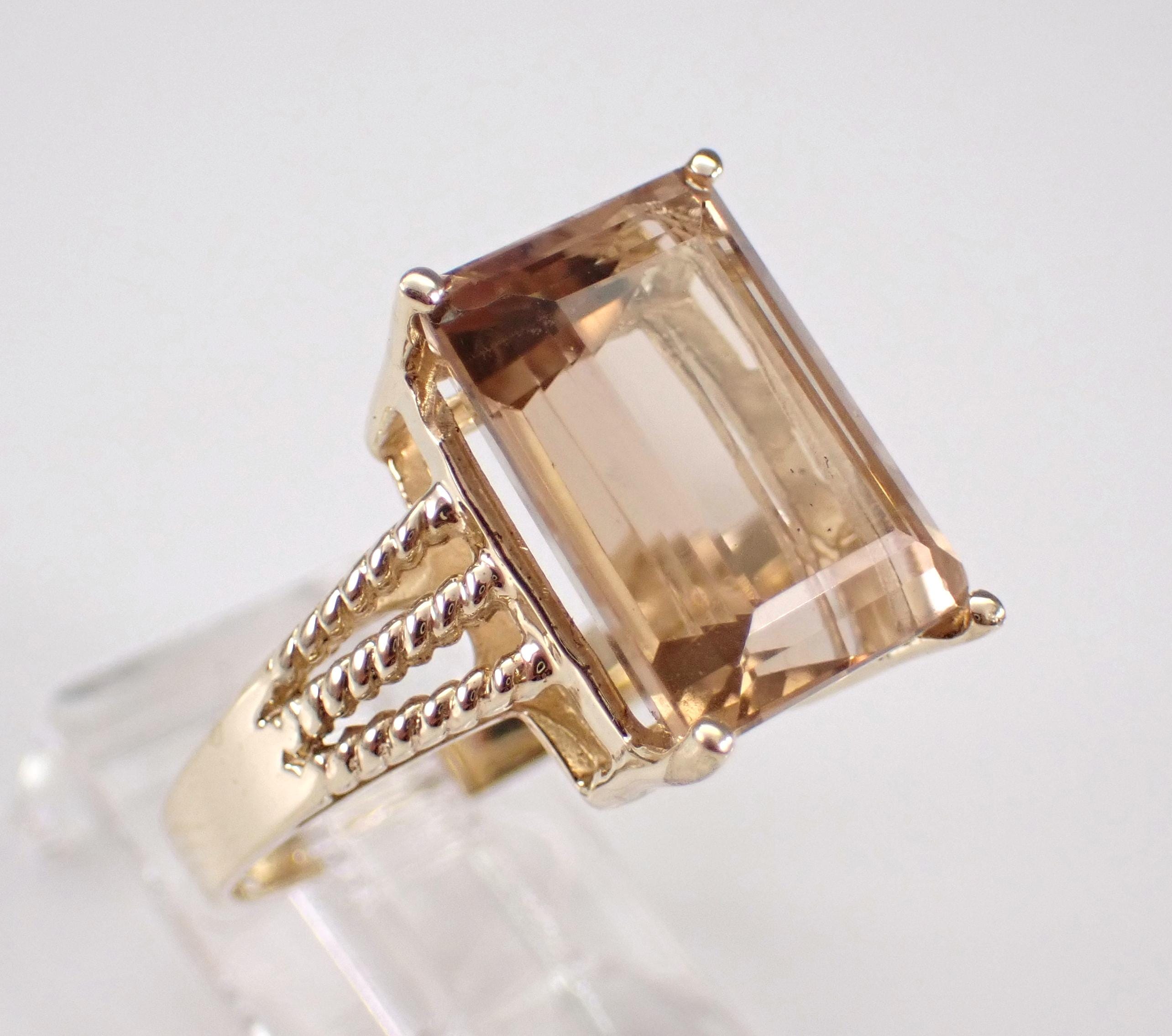 Vintage Yellow Gold Brownish Yellow Topaz Solitaire Ring. This Topaz measures 14 X 10 mm and weighs 8 carats. This ring is solid 10KT Yellow Gold, weighs 4.7 grams and is a finger size 7, which can be resized (please inquire about sizing with the finger size that you need). This ring will be accompanied by an appraisal by a GIA Certified Diamond Grader with the retail replacement value of $1,495.00. I will ship this ring promptly in a gift box.