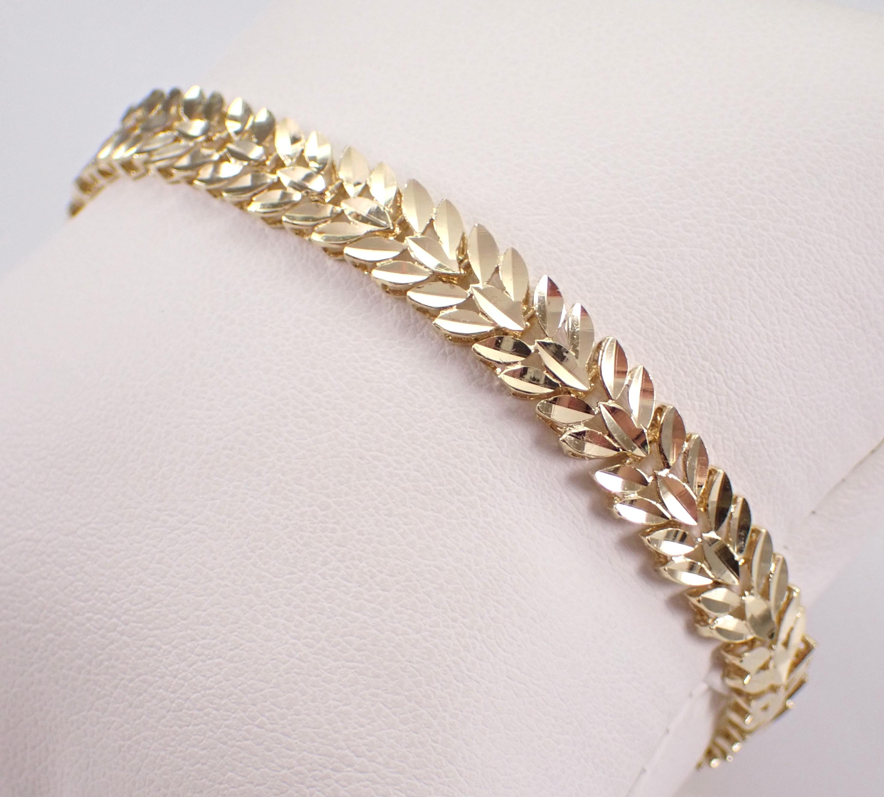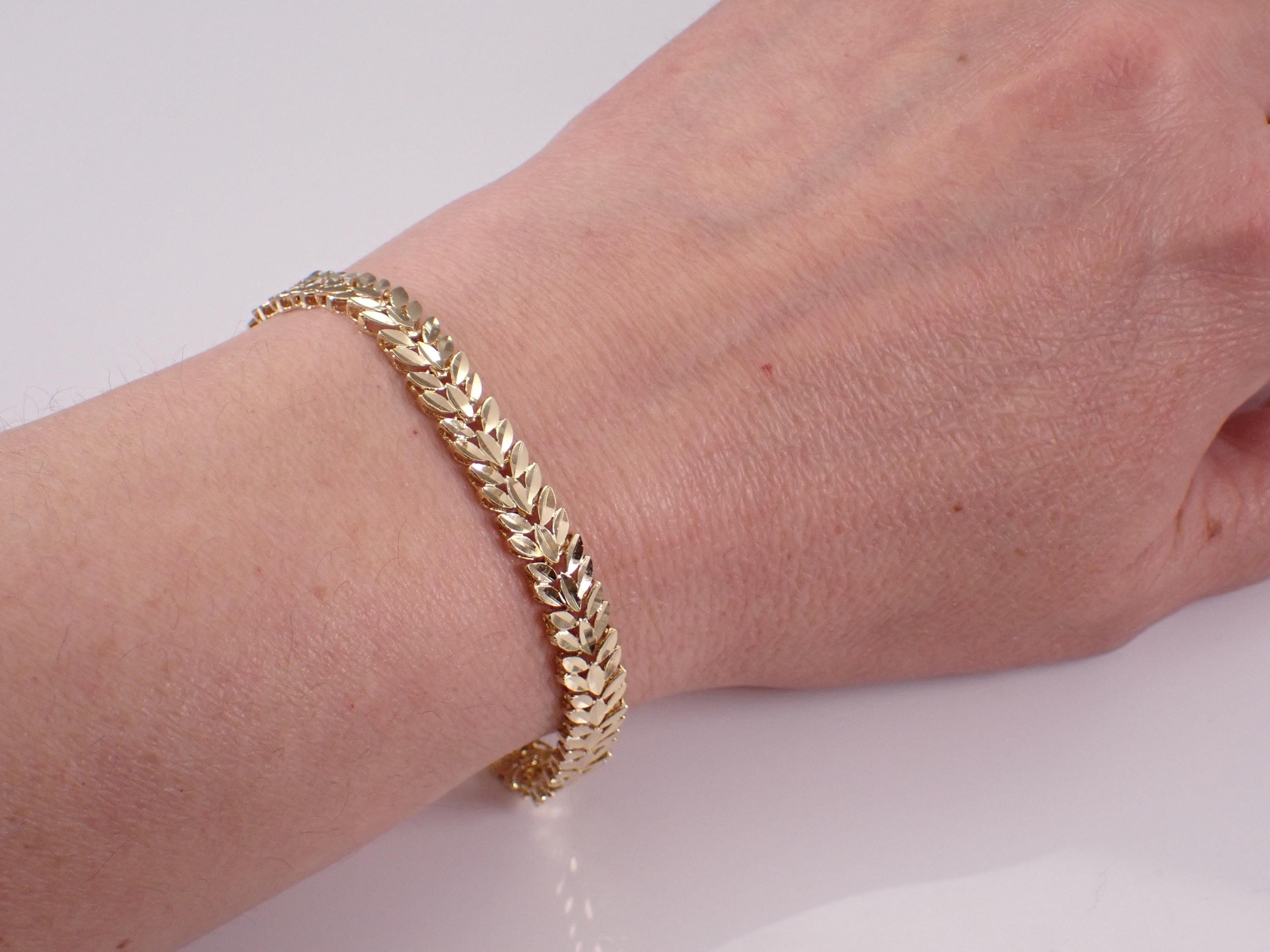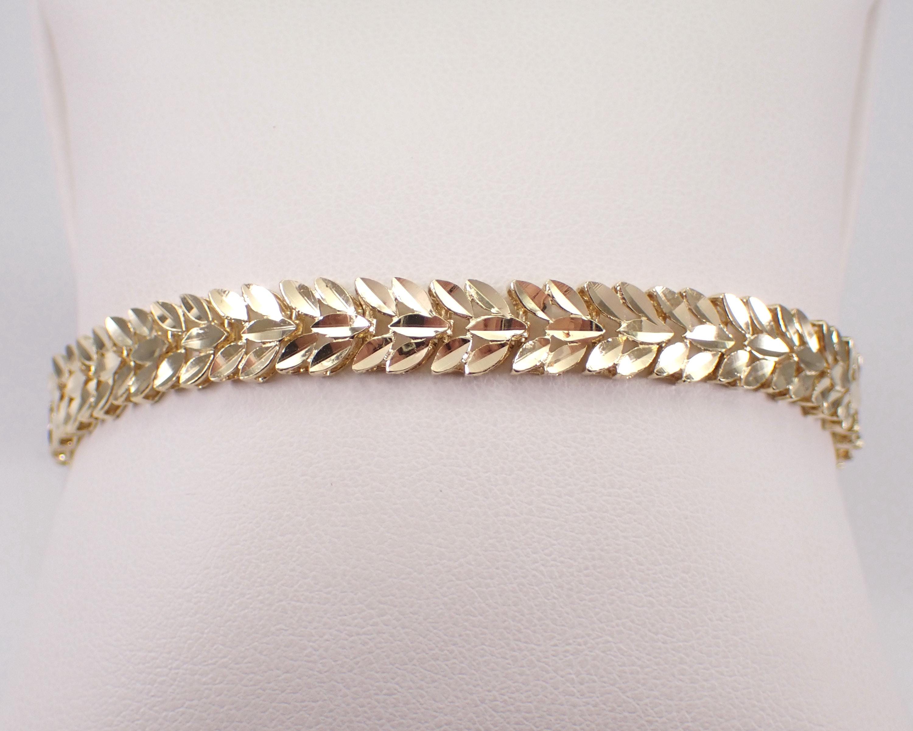 Vintage Solid 14K Yellow Gold Chevron Bracelet. This bracelet weighs 8.9 grams, measures 7 mm in width and 7.5" in length. This bracelet will be accompanied by an appraisal by a GIA Certified Diamond Grader with the retail replacement value of $2,875.00. I will ship this bracelet promptly in a gift box.