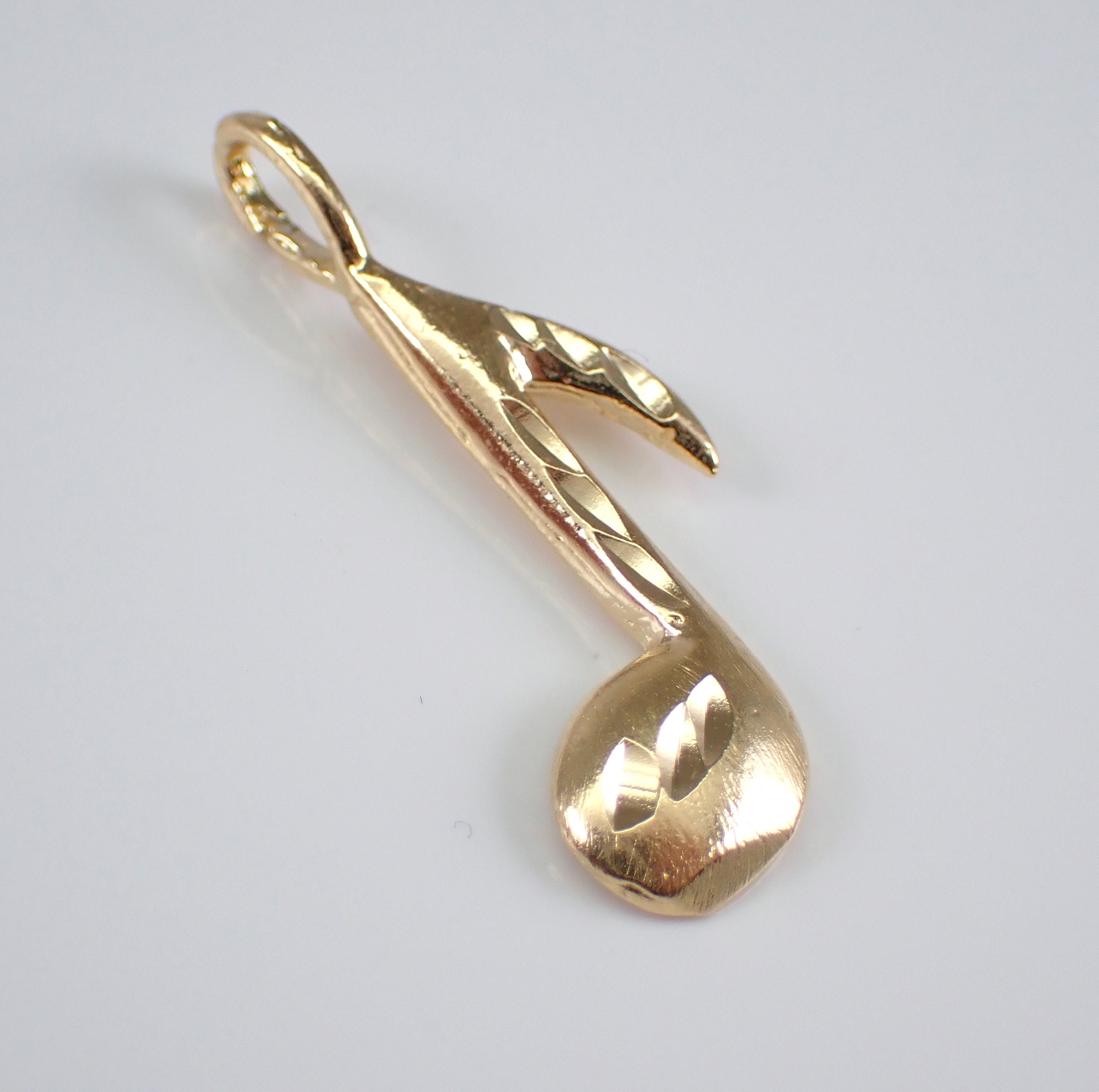 Vintage 14K Yellow Gold Music Note Charm Pendant. This charm is Solid 14K Yellow gold and weighs 1.3 grams. This pendant is absolutely adorable and measures 26 mm in length. This will make an amazing gift for any music lover. I will ship this pendant promptly in a gift pouch.