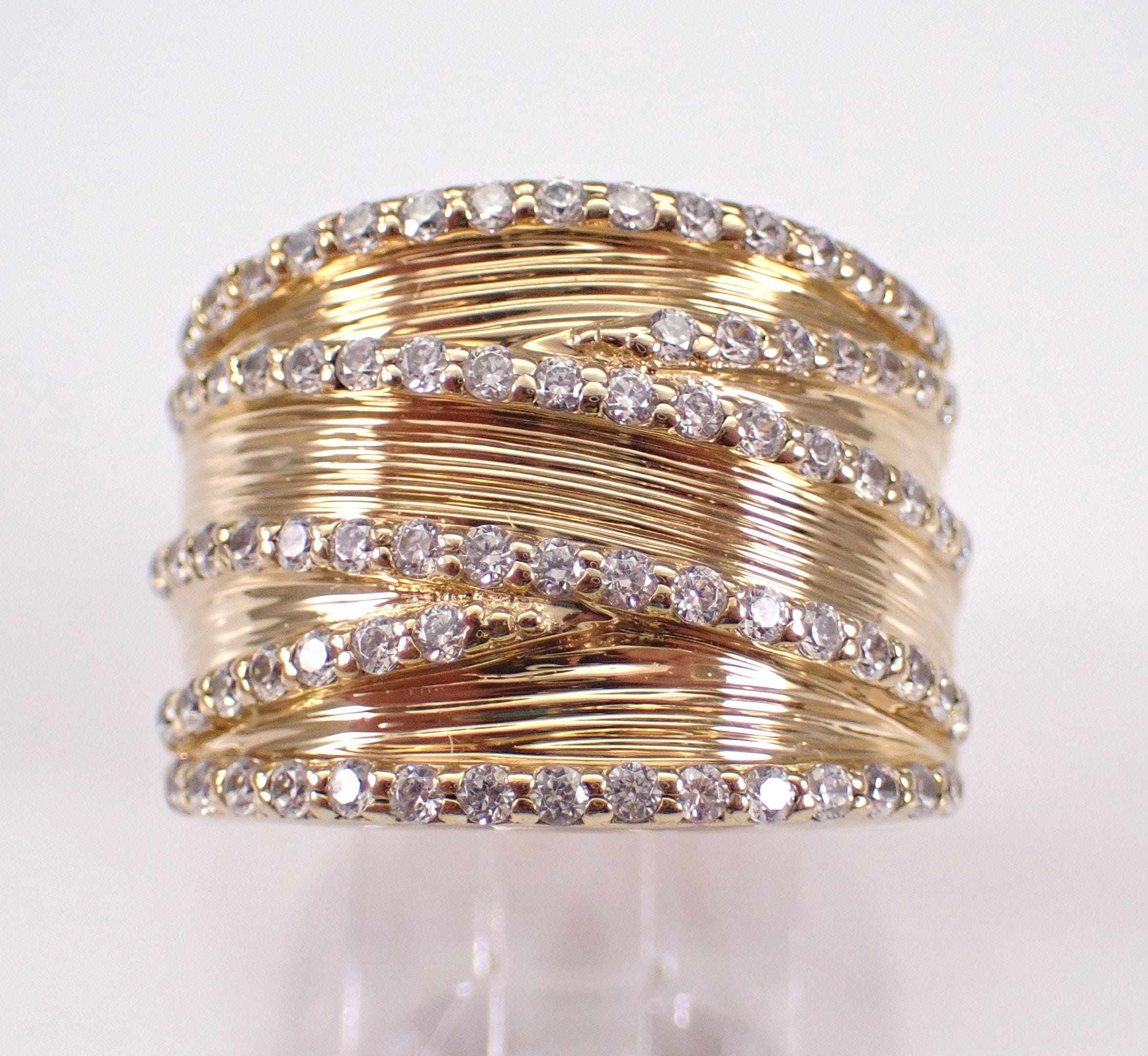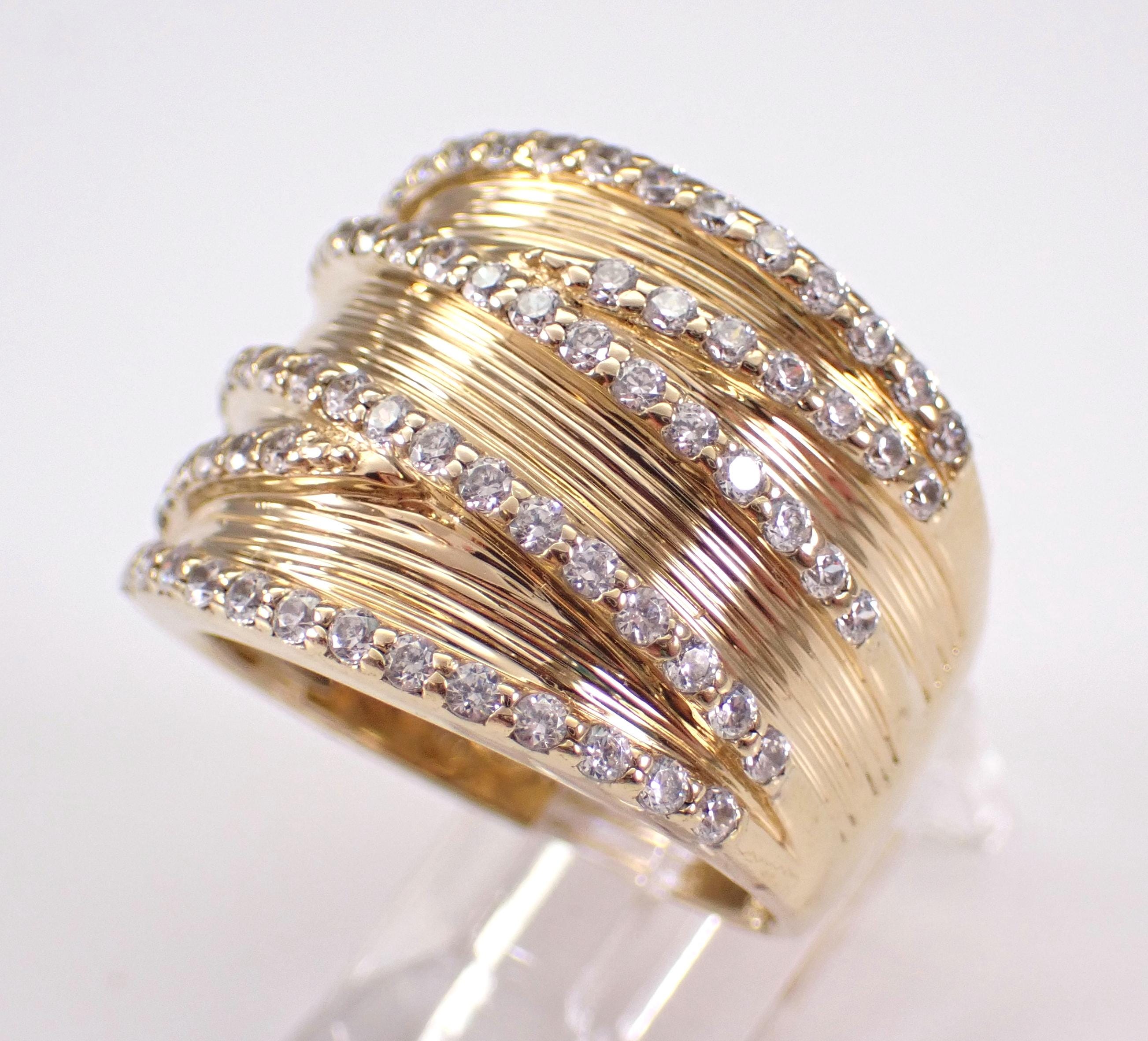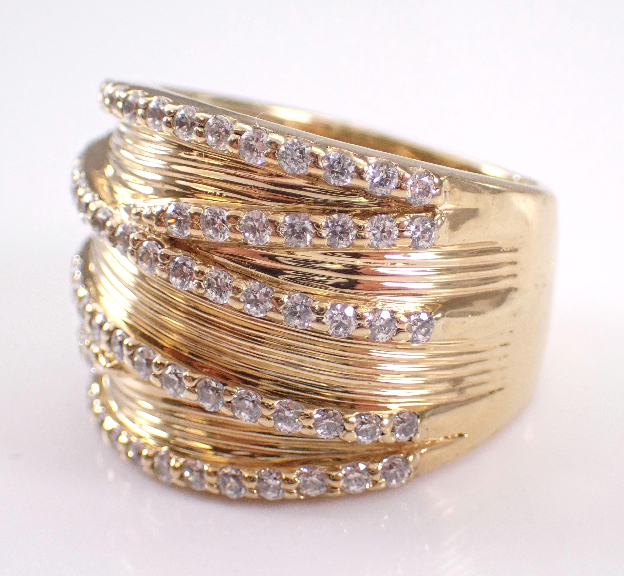 Vintage Sterling Silver (Gold Plated/Vermeil) Cubic Zirconia ring by Sonia B. This ring is set with 78 Round Cubic Zirconia. This ring is made of Sterling Silver and marked 925. This ring is in very good, excellent condition, is finger size 8, weighs 12.1 grams and measures 17.5 mm along the finger. This ring will be shipped promptly in a gift pouch, not the original Sonia B pouch.
