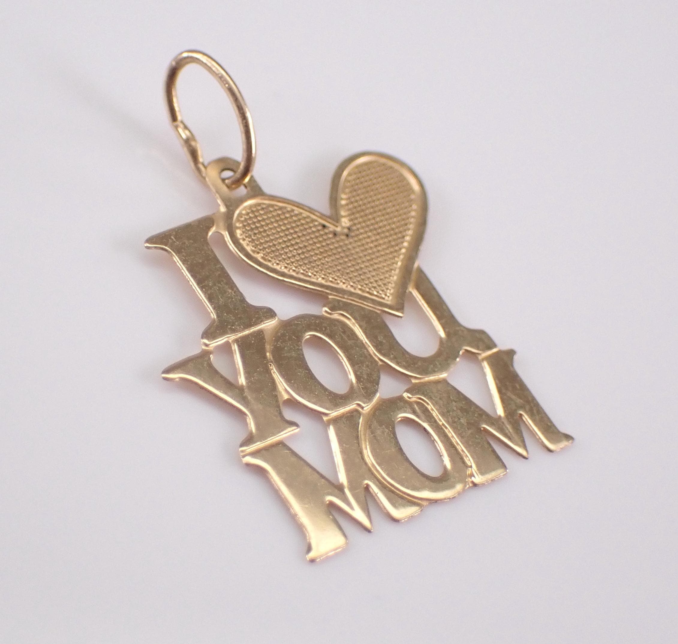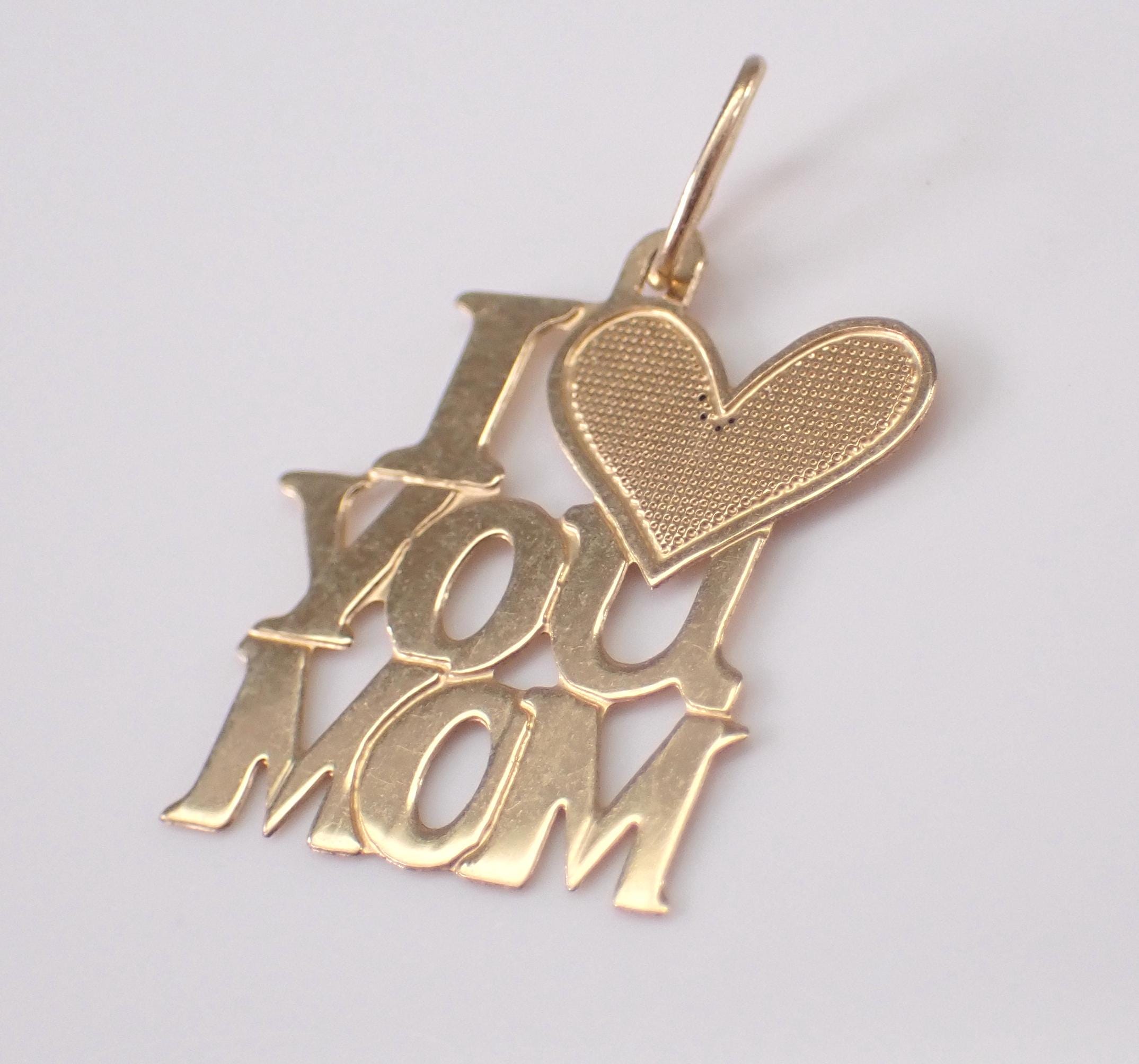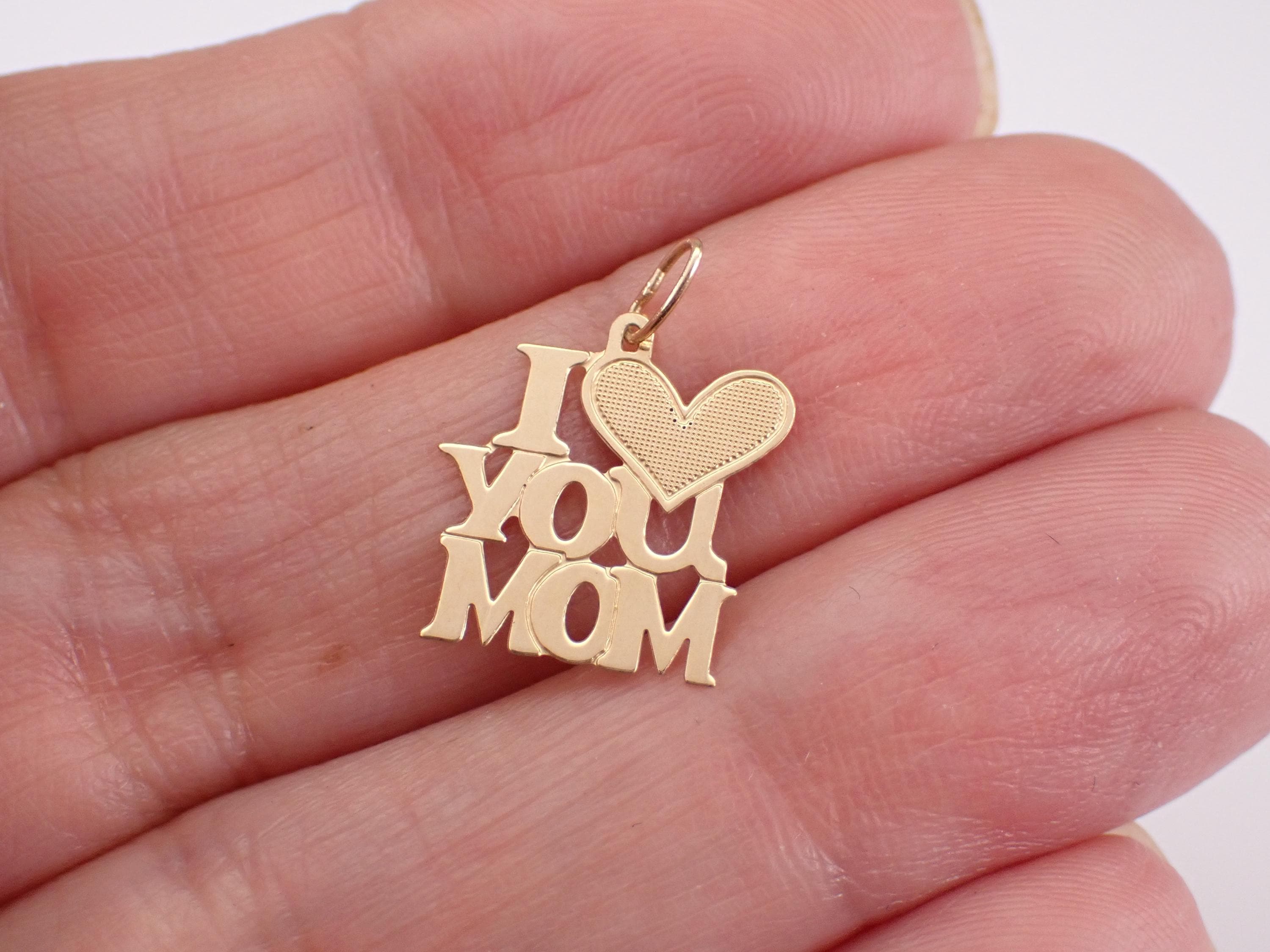 Vintage 14K Yellow Gold I :OVE MOM Charm Pendant. This charm is 14K Yellow gold and weighs .4 grams. This charm measures 12.5 X 13.5 mm without the bail. I will ship this pendant promptly in a gift pouch.