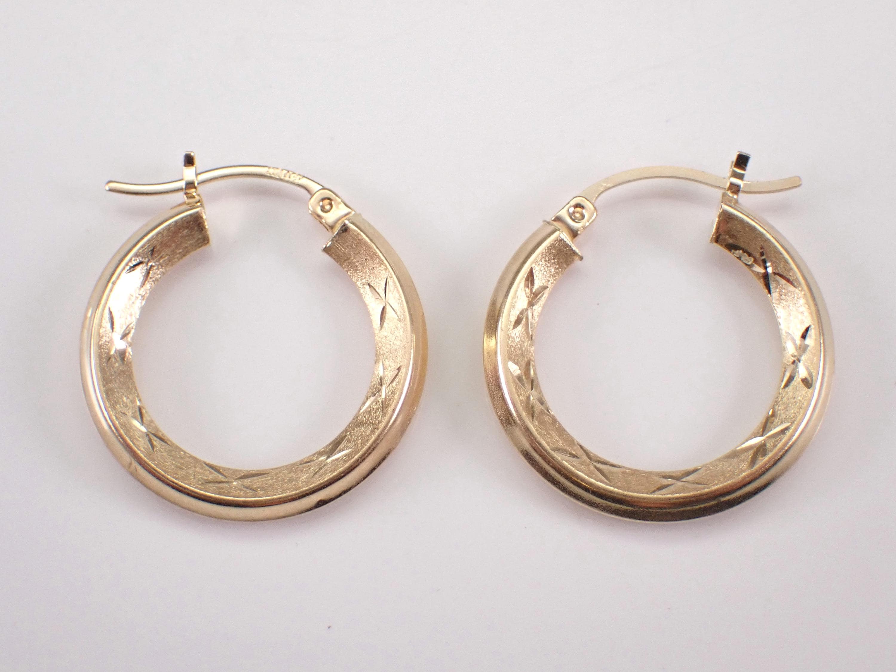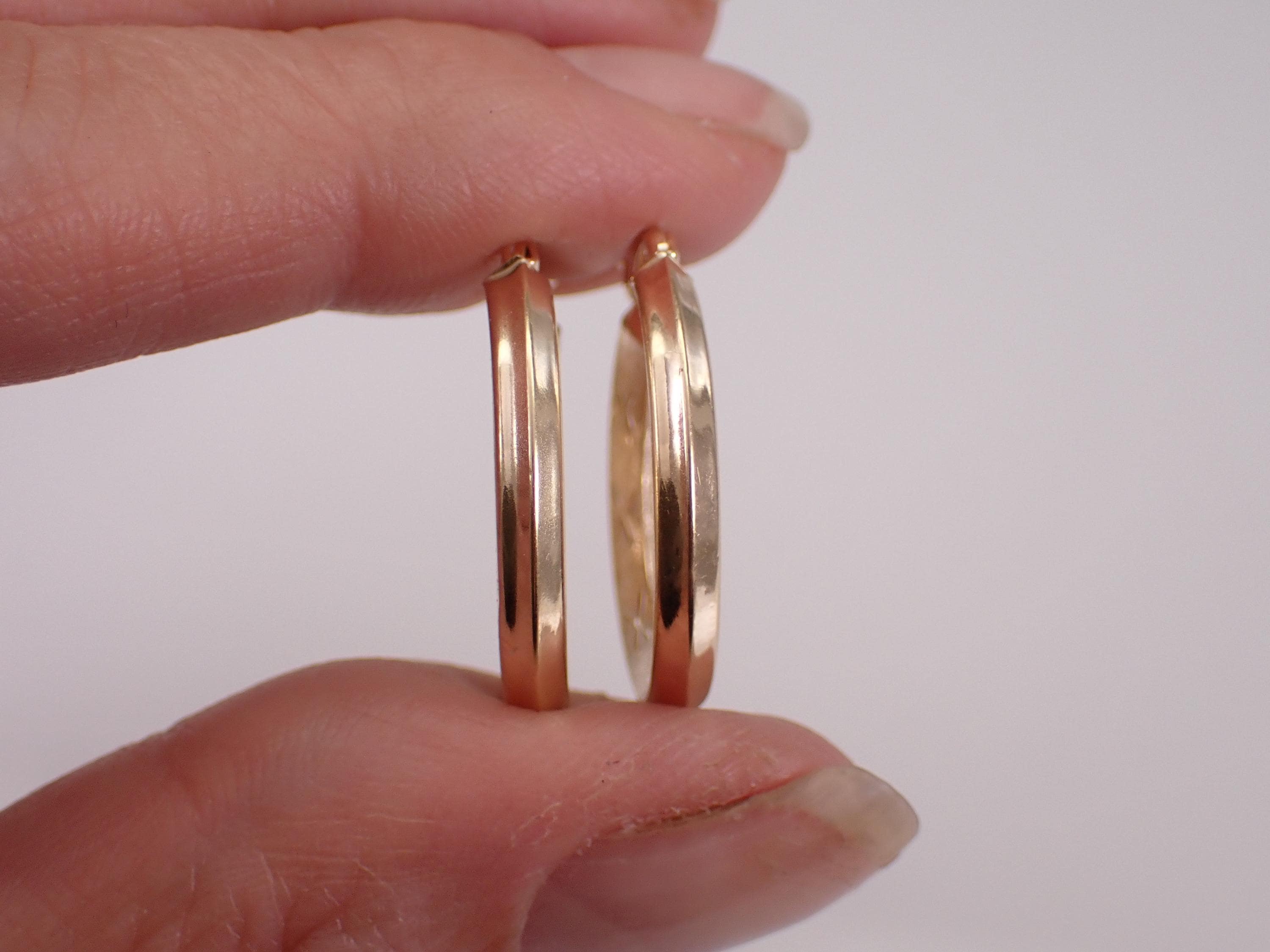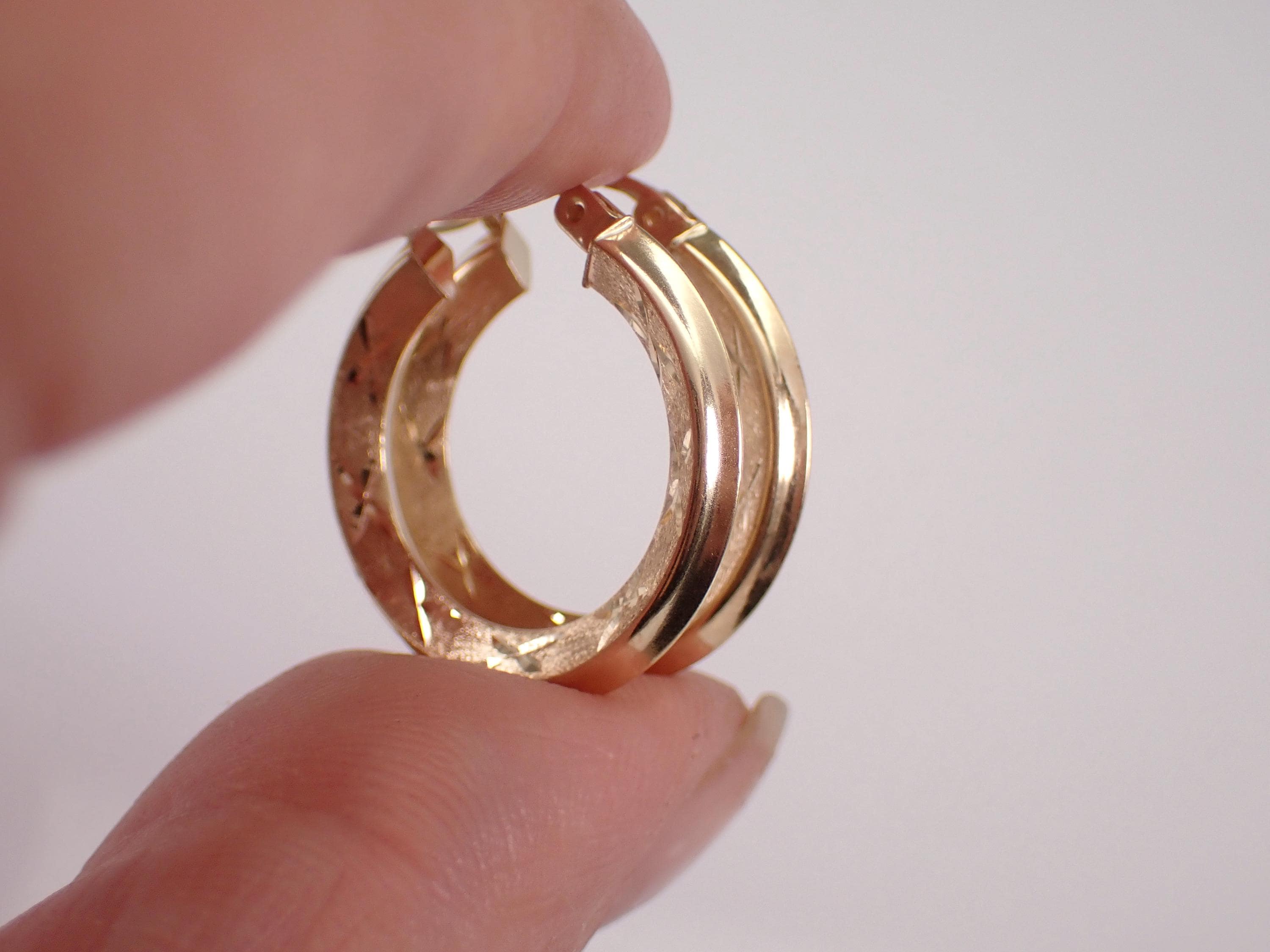 Yellow Gold Unique Vintage Hoop Earrings. These earrings are 10K Yellow Gold and weigh a total of 1.2 grams. These earrings are for pierced ears and measure 22 mm in diameter. These earrings will be shipped promptly in a gift box.
