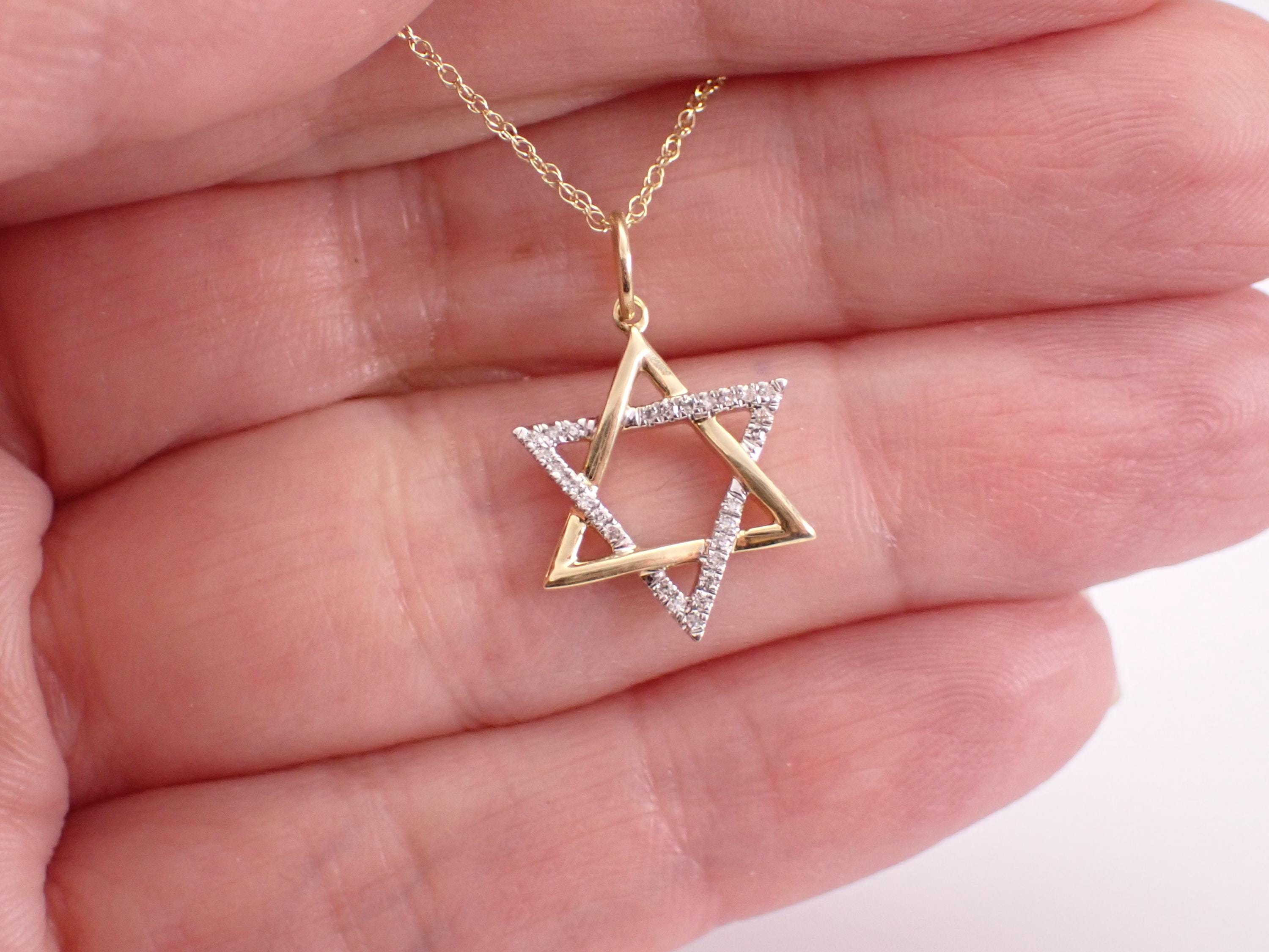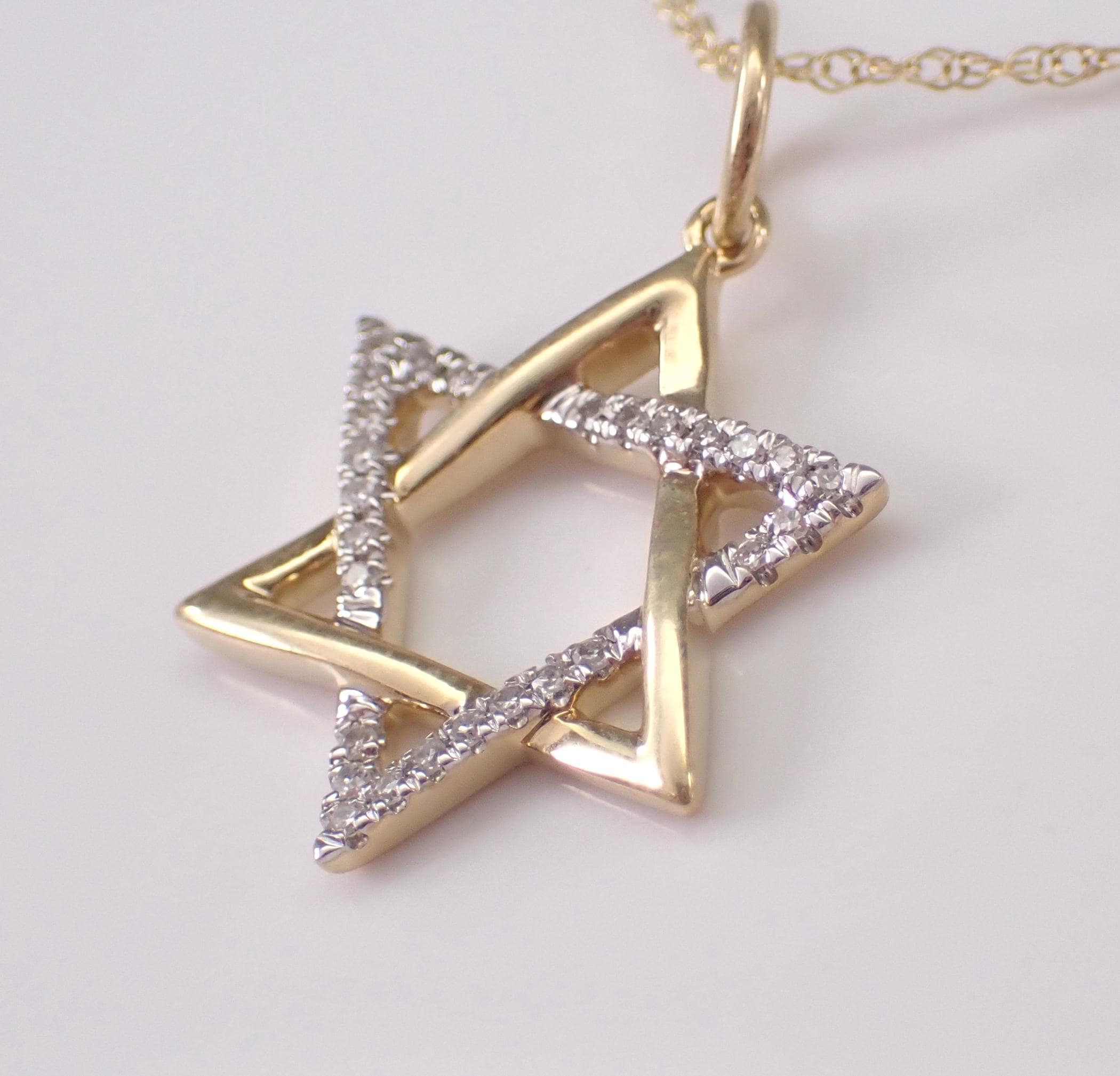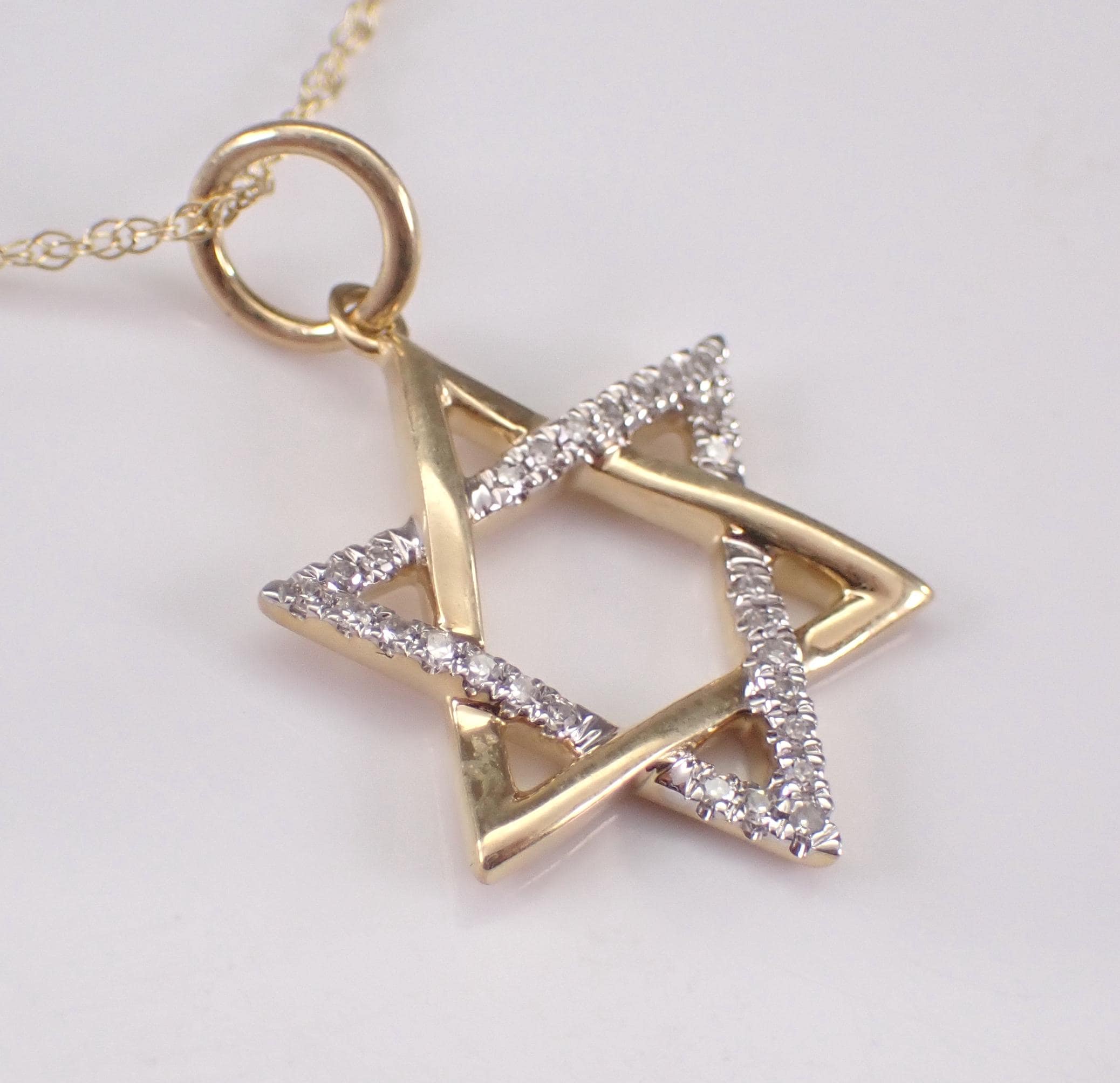 Yellow Gold Diamond Star of David Charm Pendant Necklace with Chain. There are twenty-seven genuine Round Brilliant Diamonds set in this pendant. These diamonds are H color, SI clarity and weigh a total of .12 carat. This pendant is 10KT Yellow Gold and comes with an 18" 10K Yellow Gold chain. This necklace weighs 1.6 grams and the star measures 15 X 13 mm without the bail. This necklace will be accompanied by an appraisal by a GIA Certified Diamond Grader with the retail replacement value of $1,495.00. I will ship this pendant promptly in a beautiful gift box.