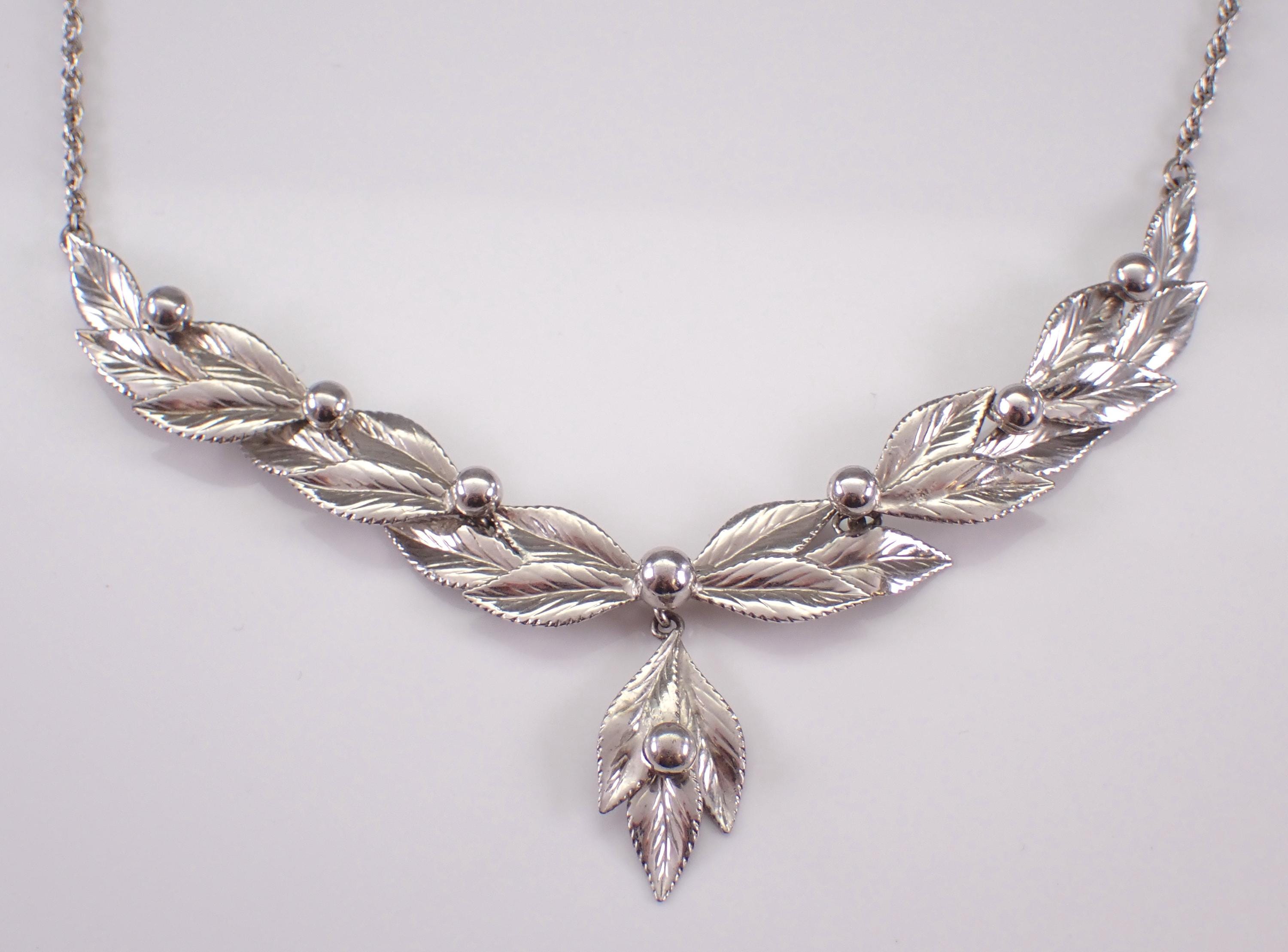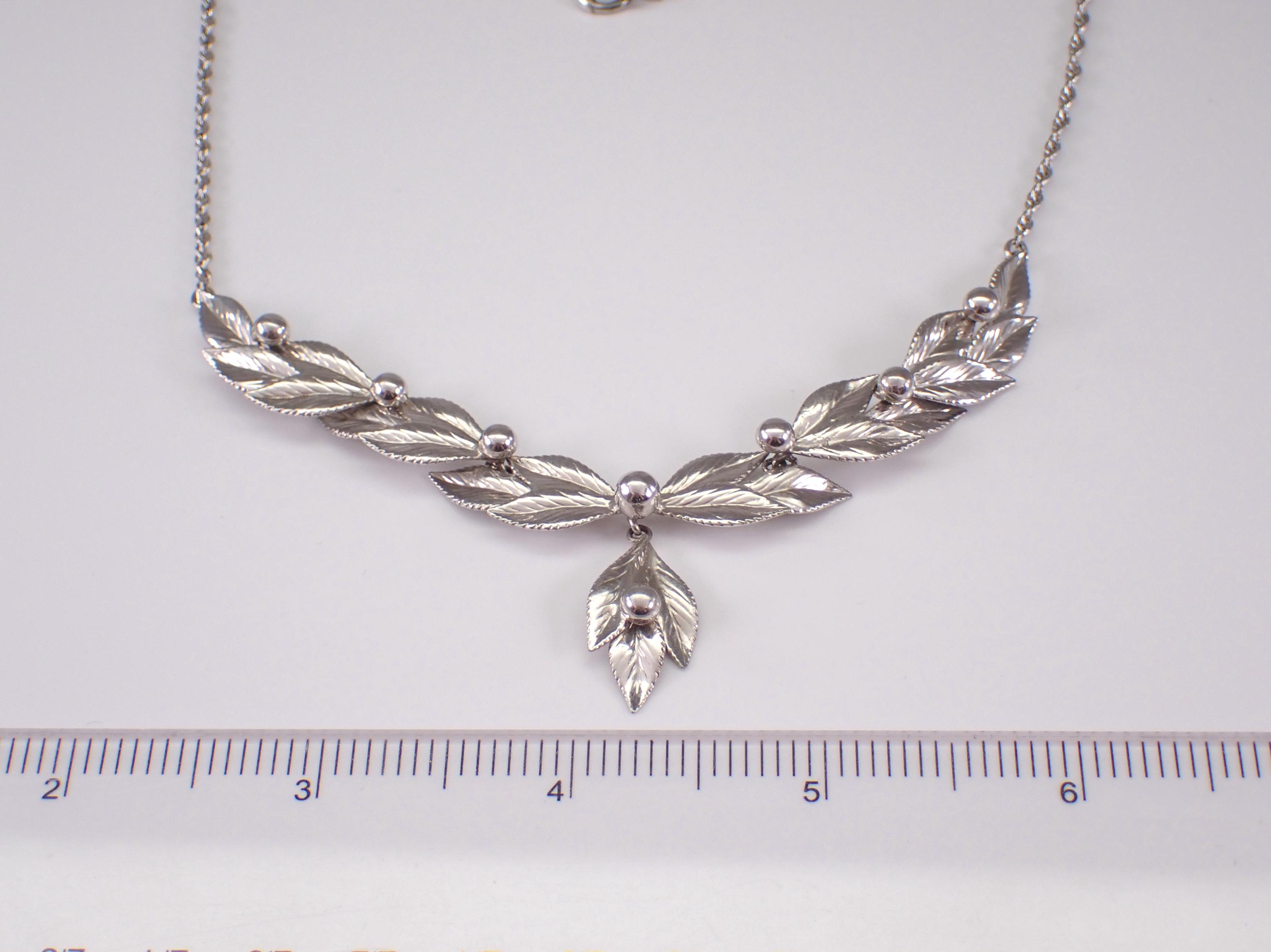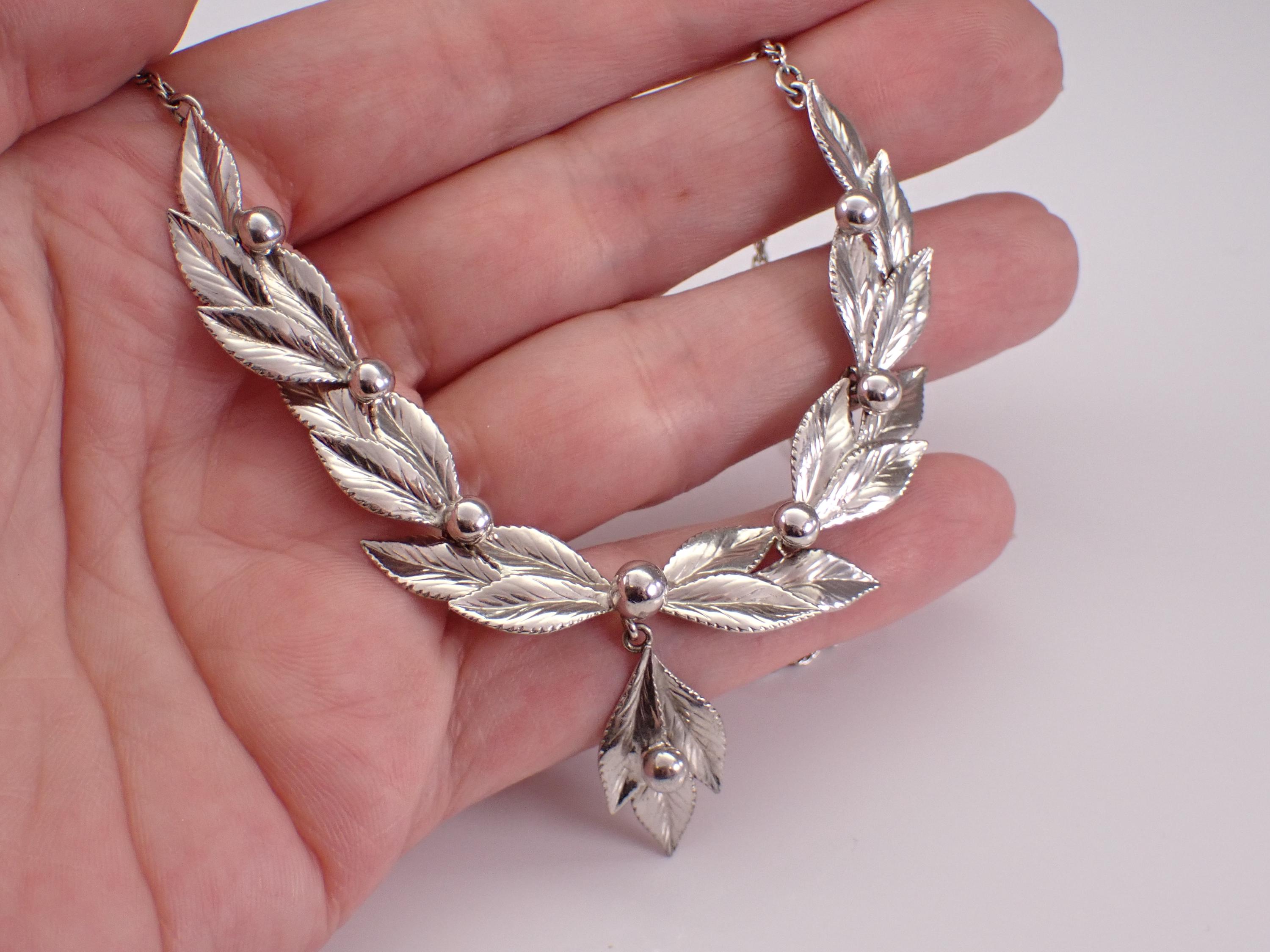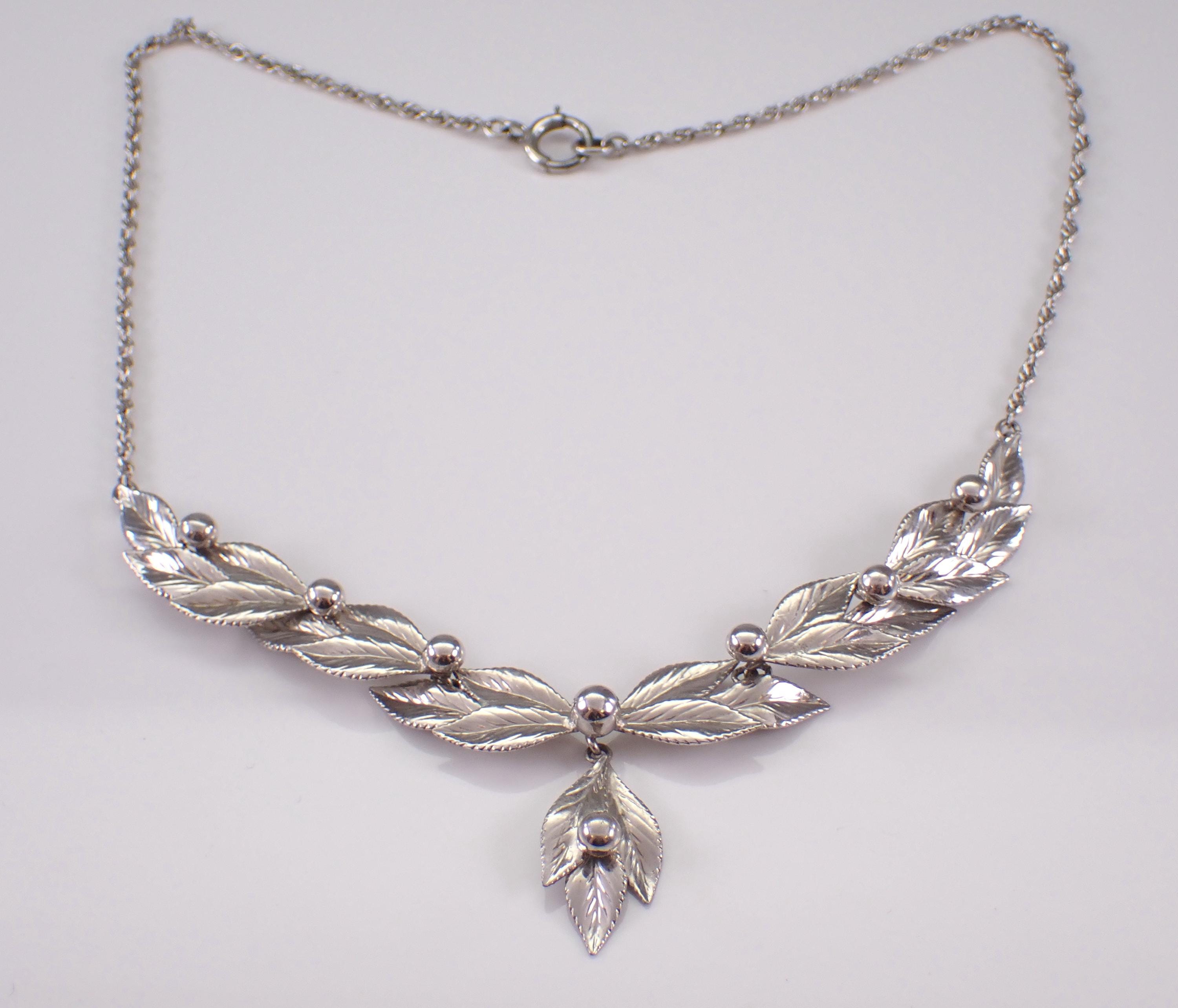 This necklace measures 16" in length and weighs 9.6 grams with a unique leaf detail station centerpiece. This necklace is a very unique vintage item, perfect gift for any occasion! This necklace will be shipped promptly in a gift pouch.