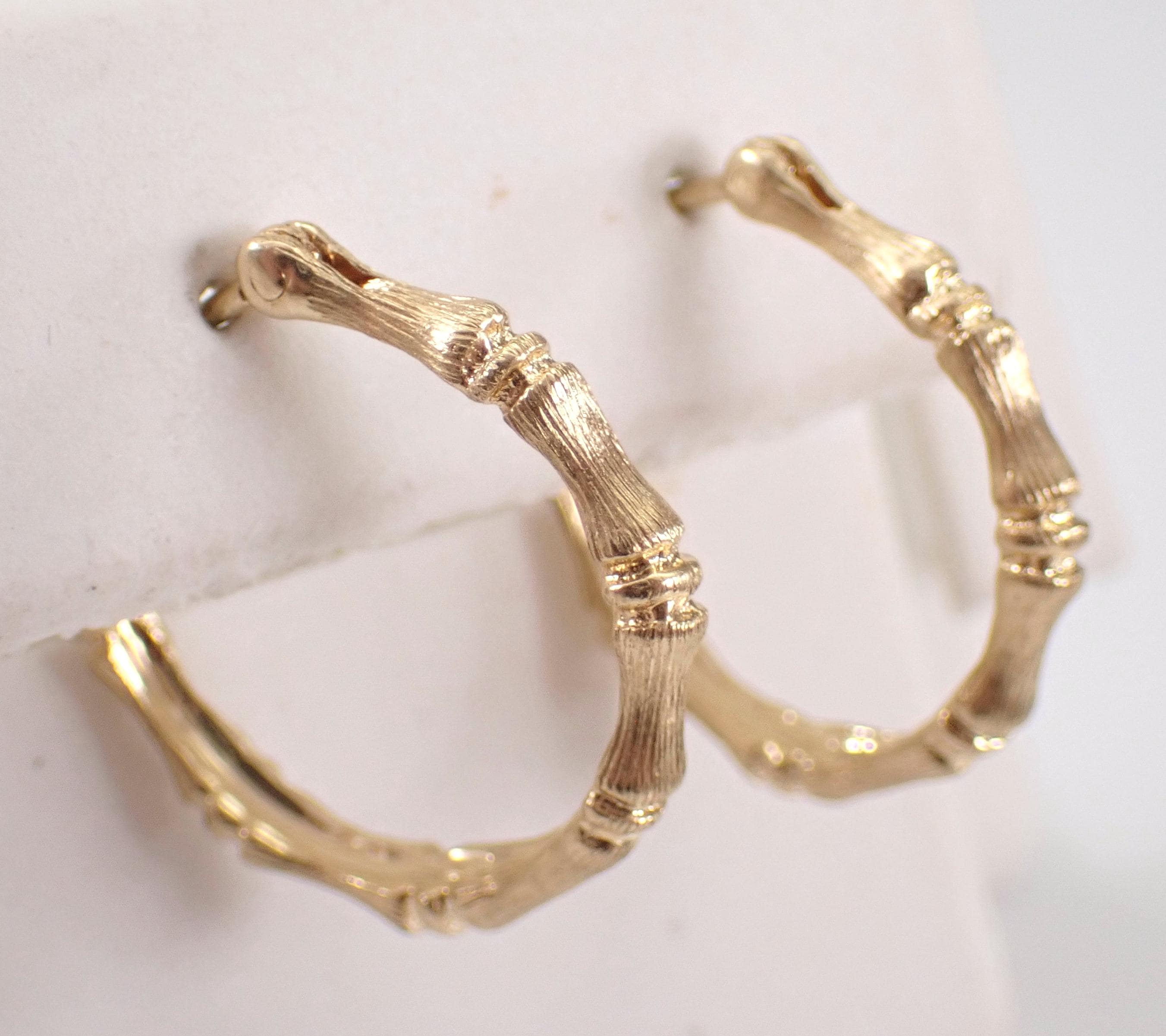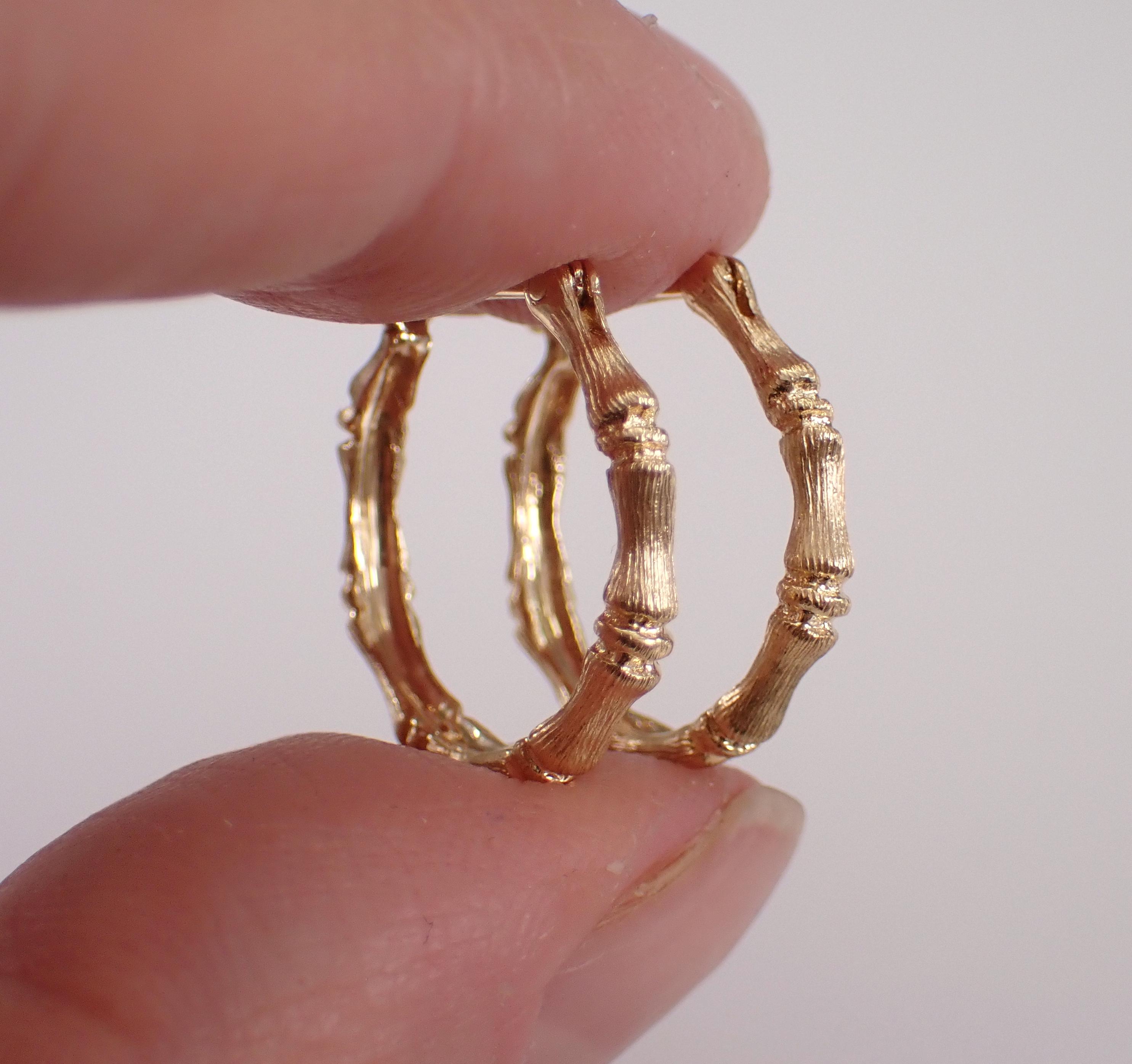 14K Yellow Gold Vintage Hoop Earrings. These earrings are 14K Yellow Gold and weigh a total of 2.4 grams. These earrings are for pierced ears and measure 17.5 mm in diameter. These earrings will be shipped promptly in a gift box.