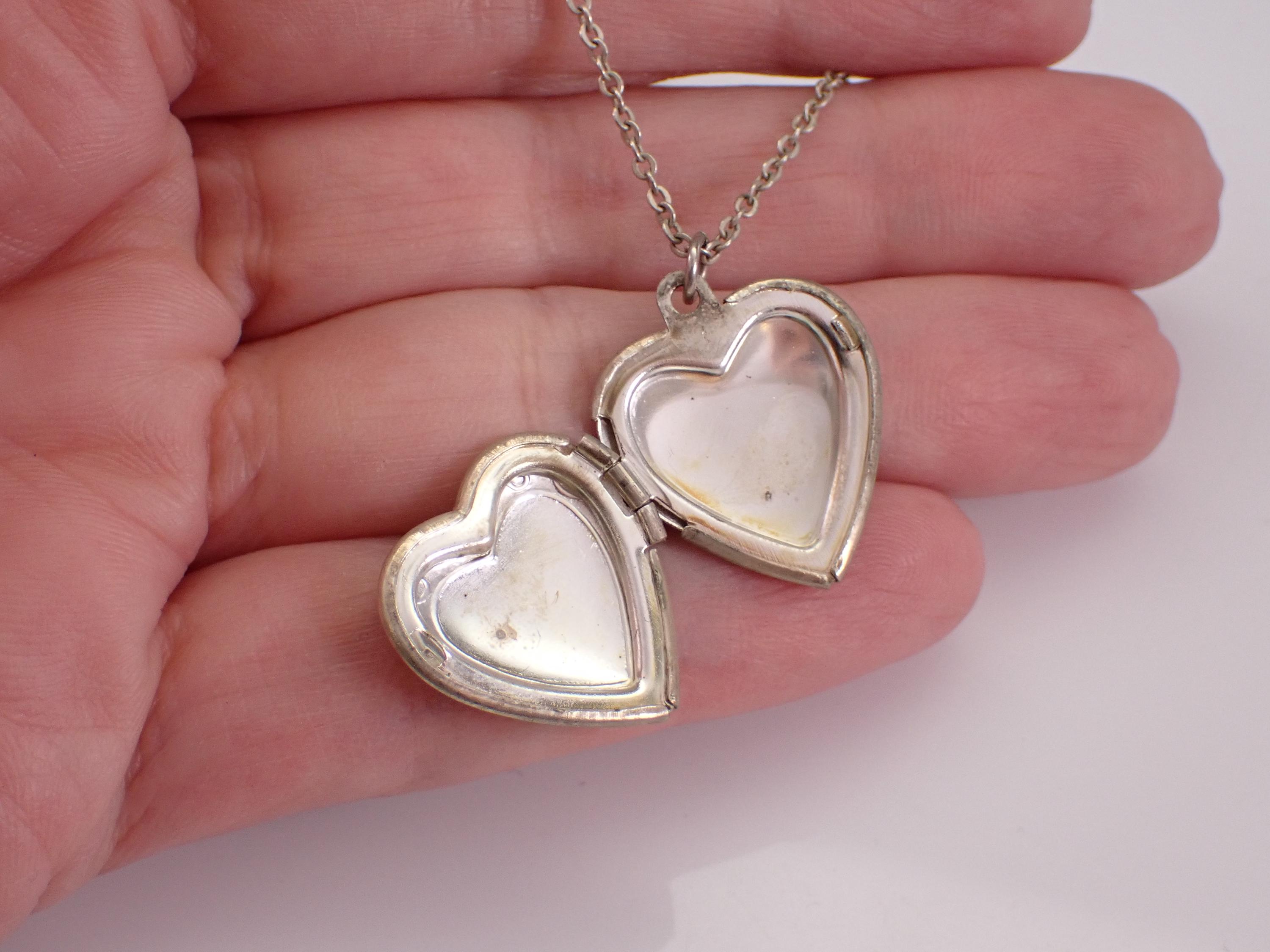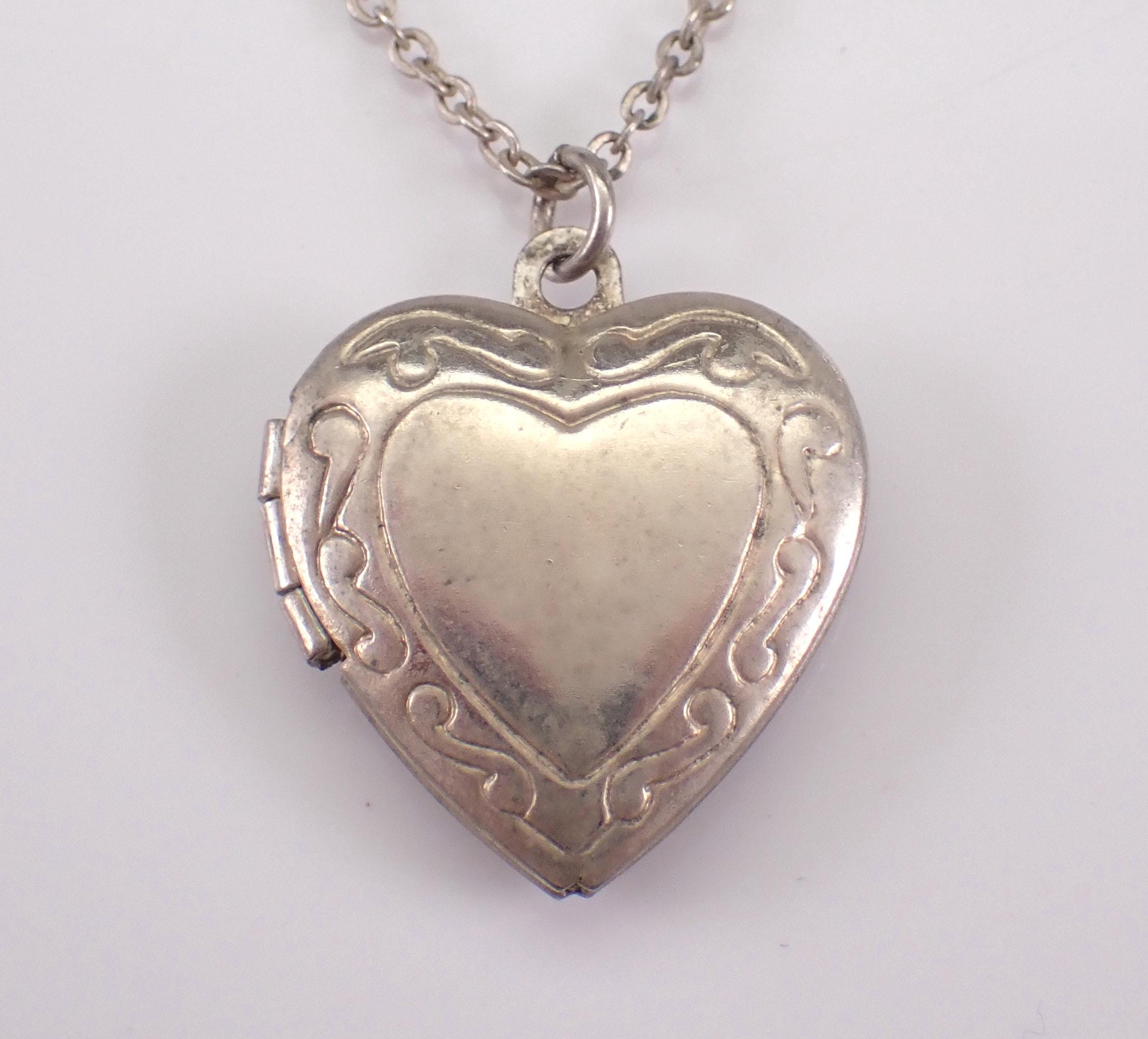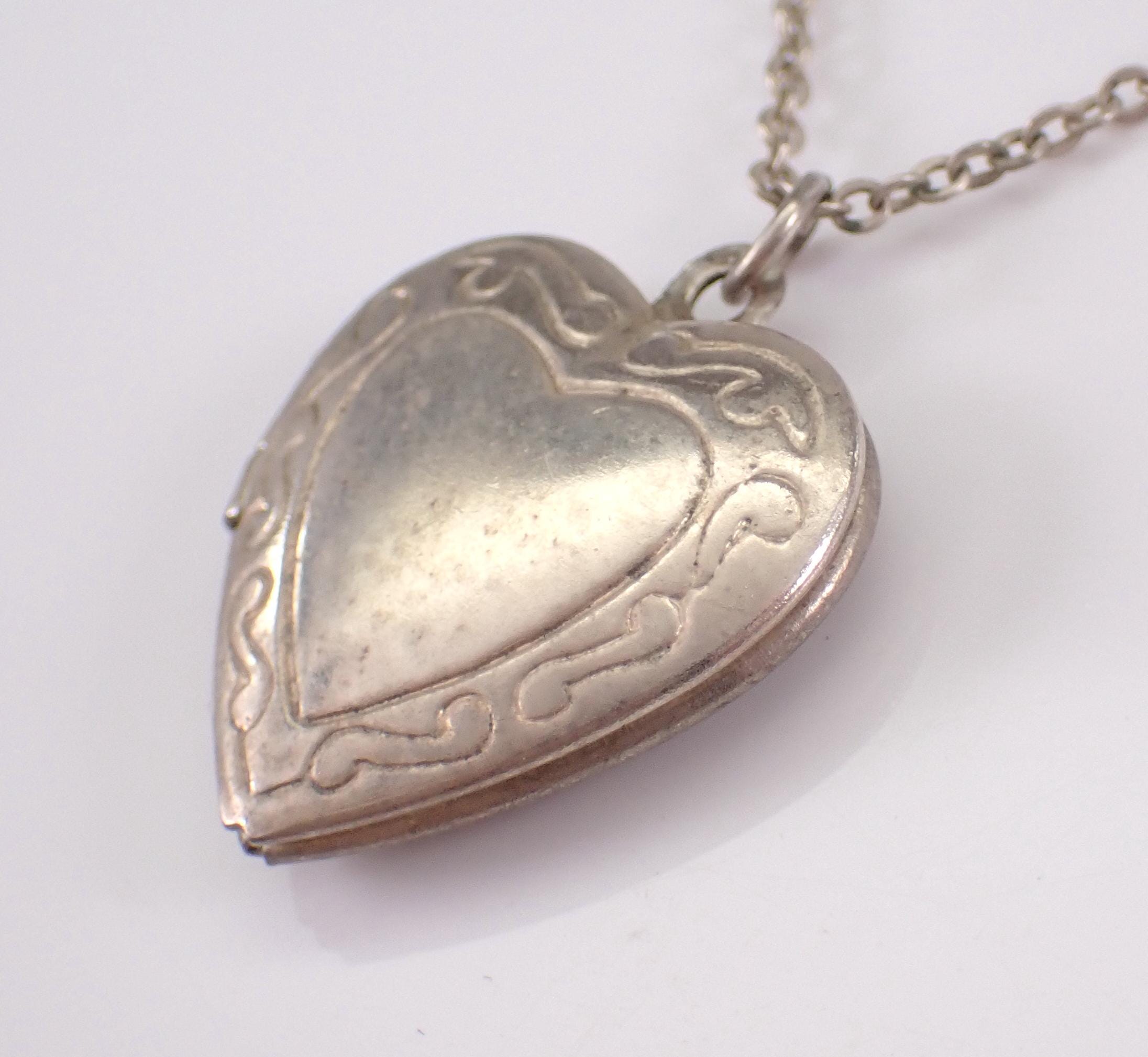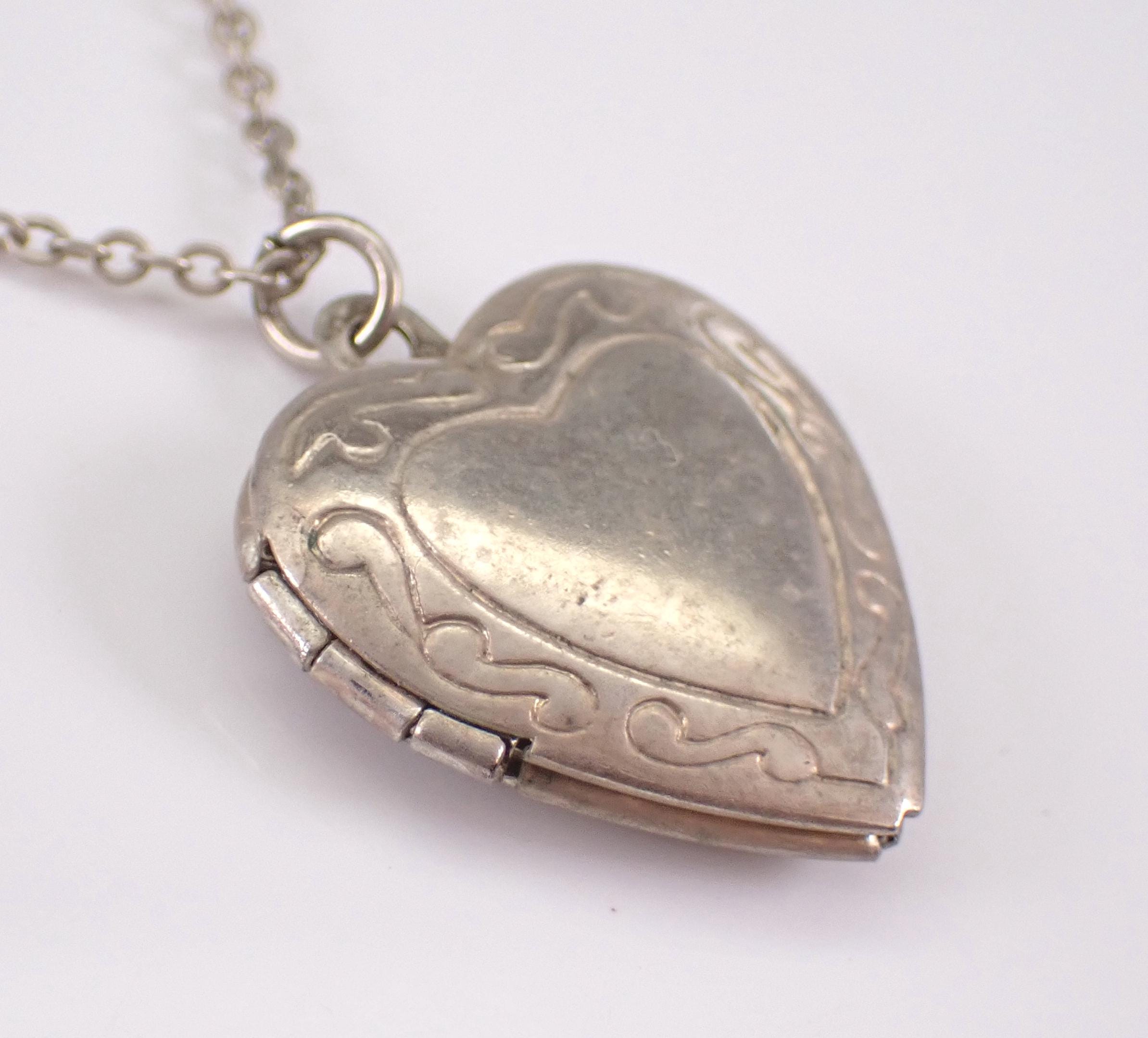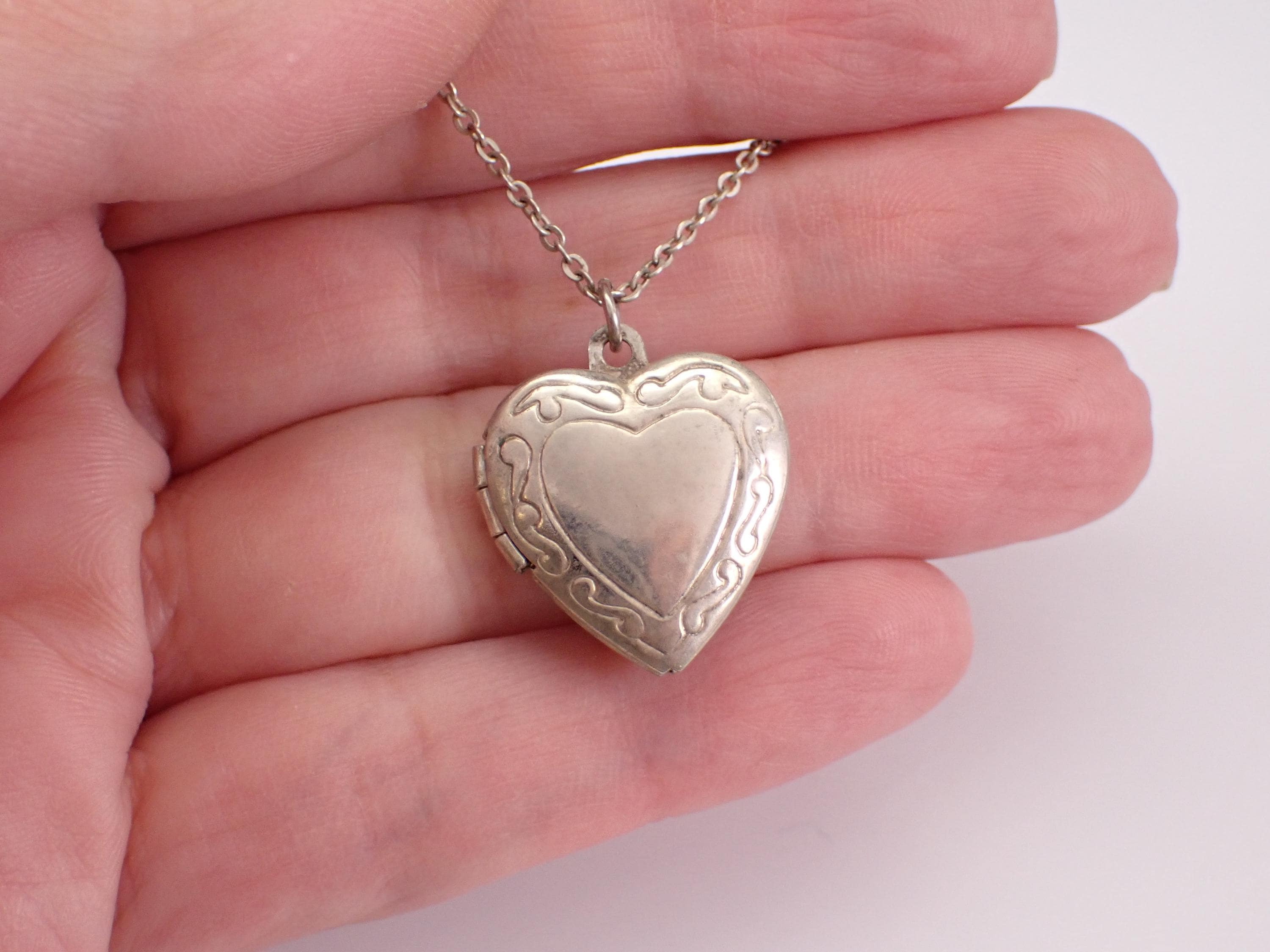 Sterling Silver Heart Charm Locket Pendant Necklace with Chain.