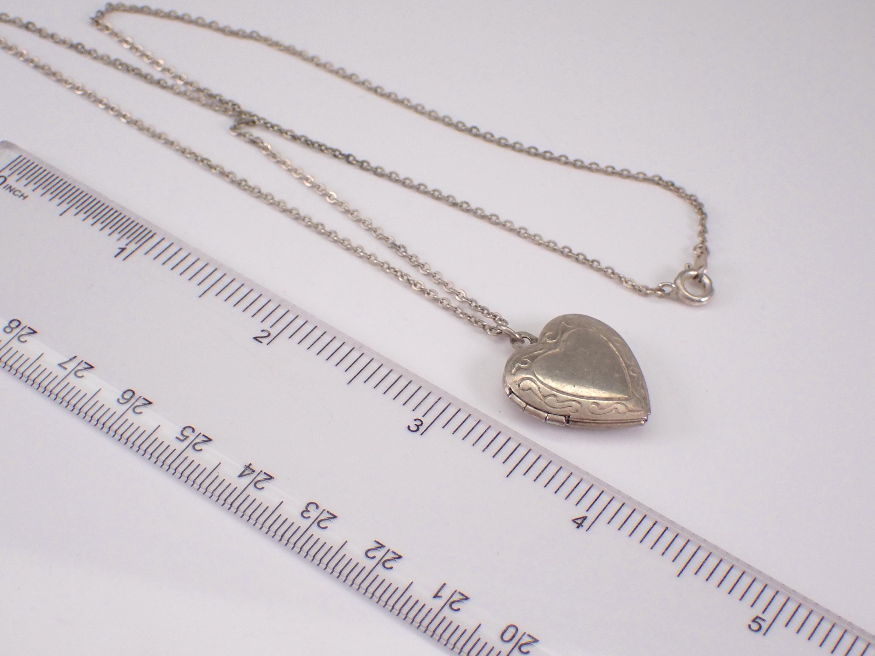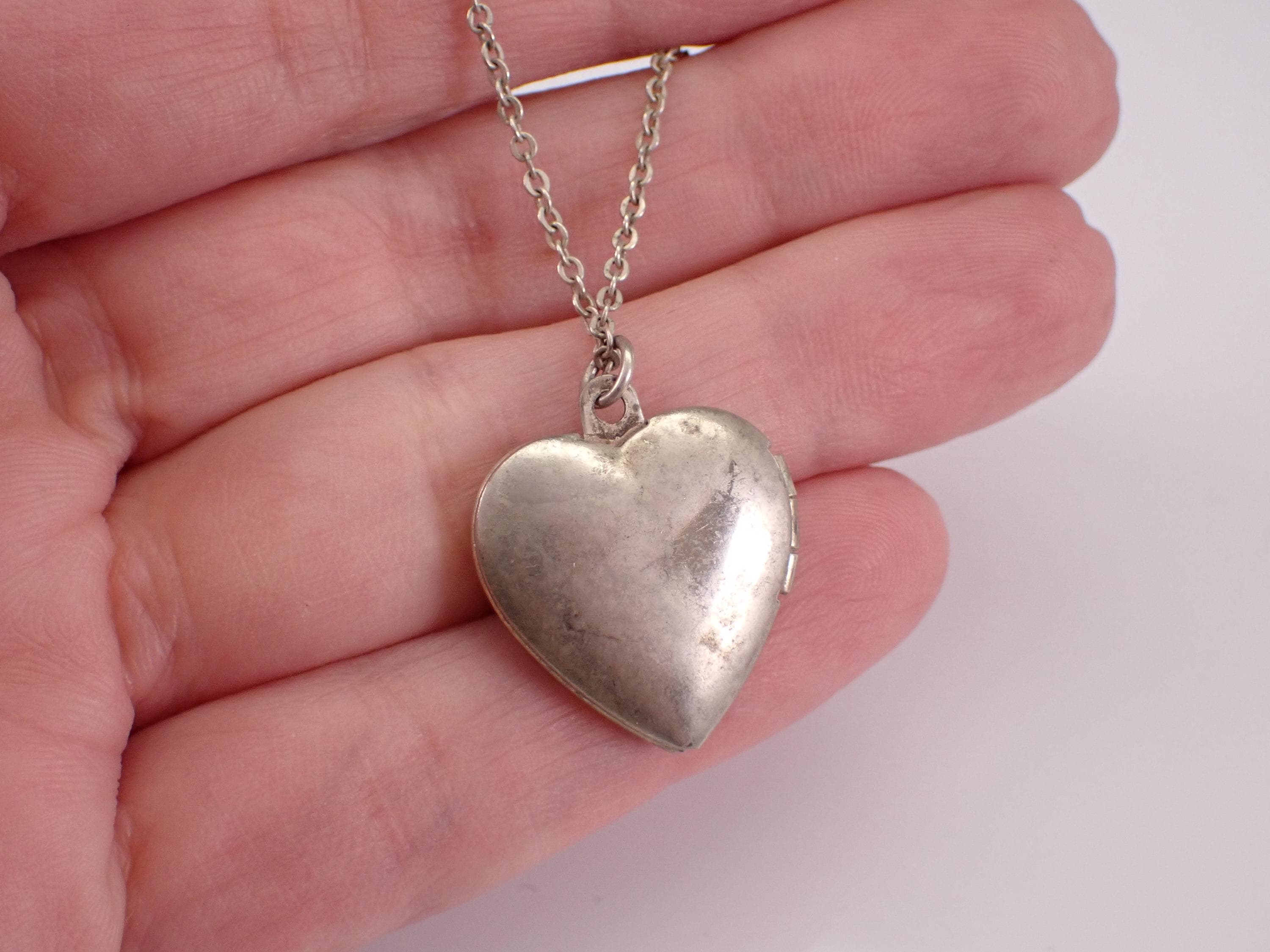 This pendant and chain are both Sterling Silver and the chain measures 18" in length. The heart measures 19.5 X 19.5 mm without the bail. This necklace weighs 4.6 grams. This necklace does show some wear but is perfect for everyday wear, great gift for any occasion! Will be shipped promptly in a gift pouch.