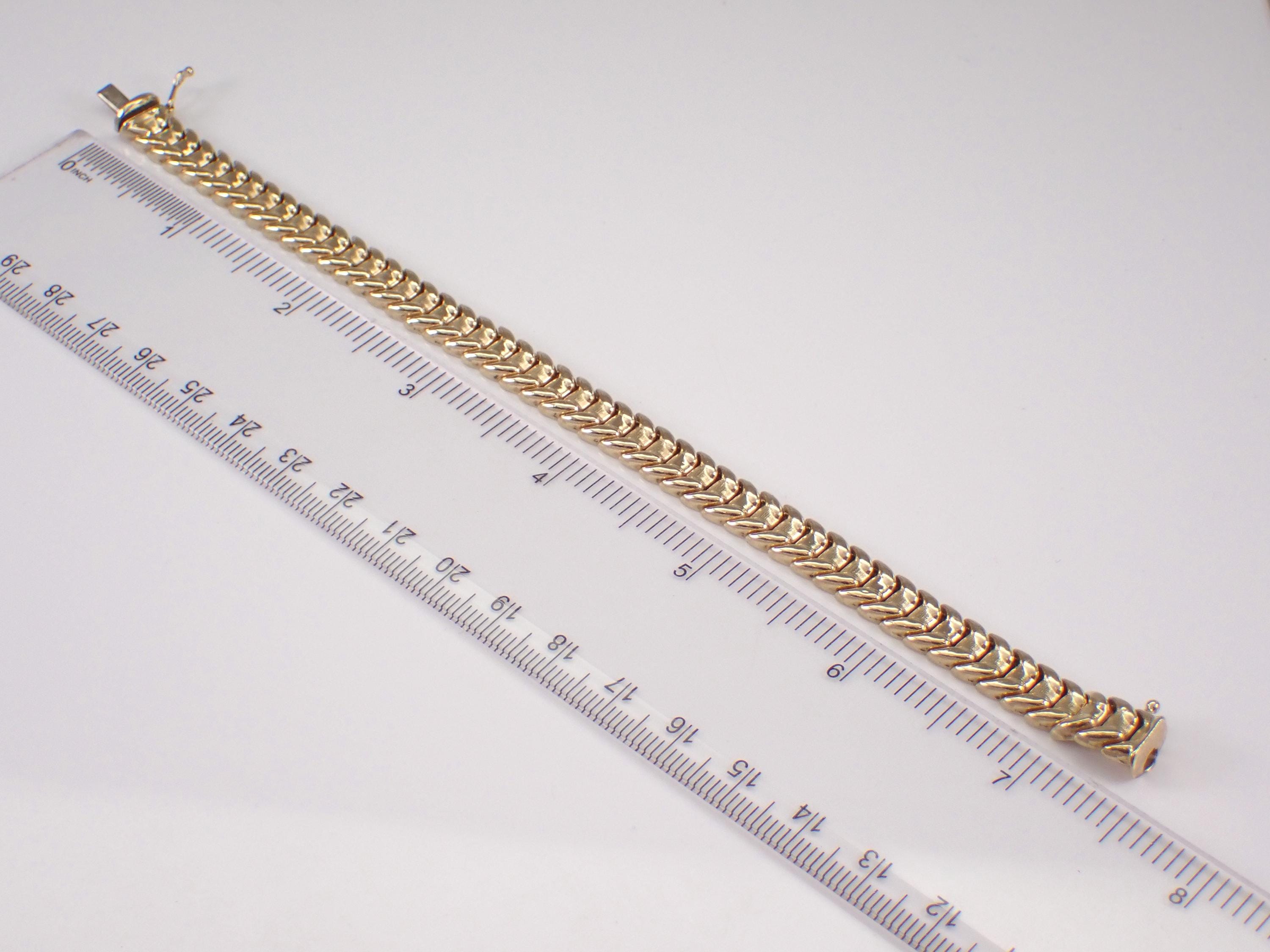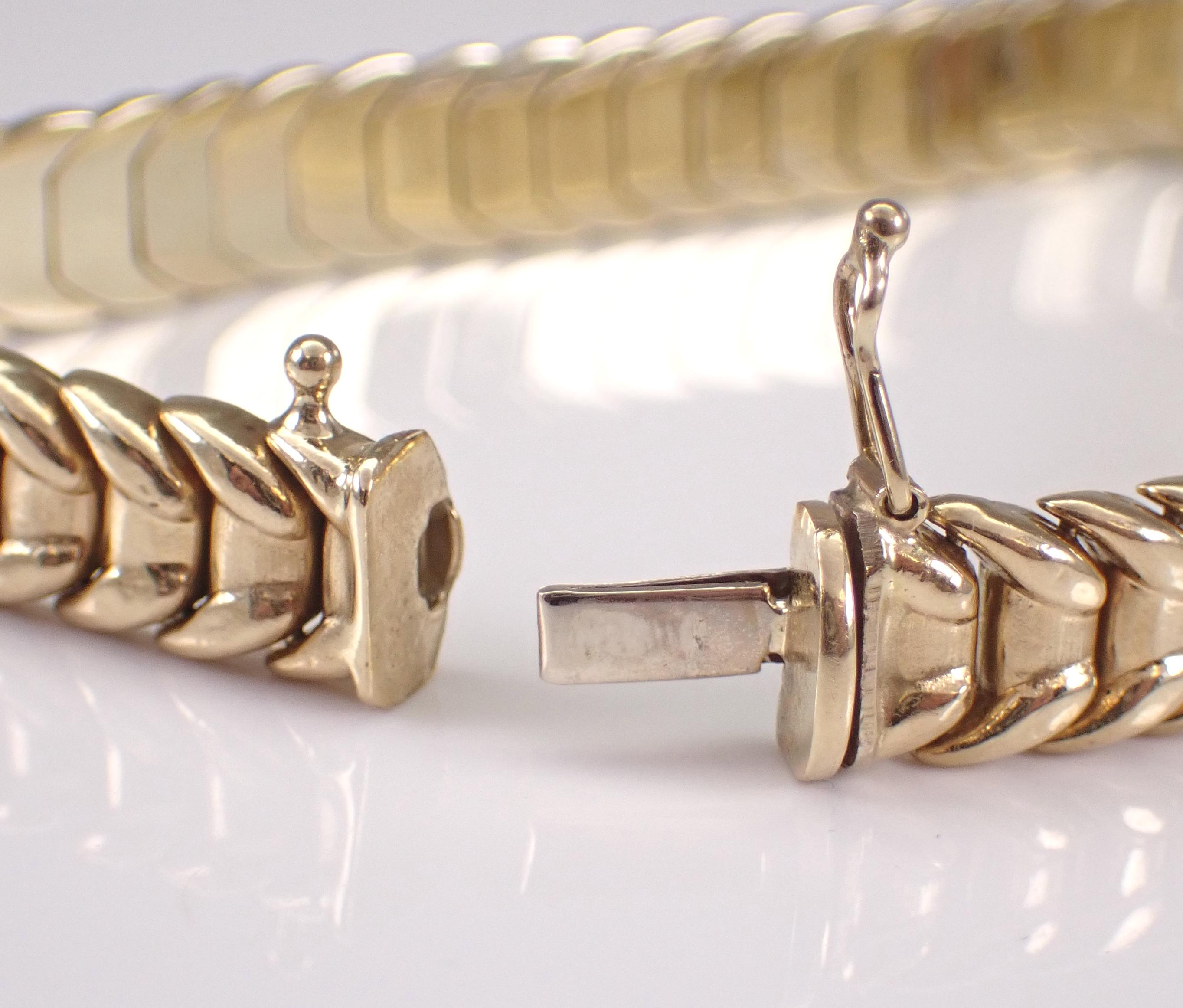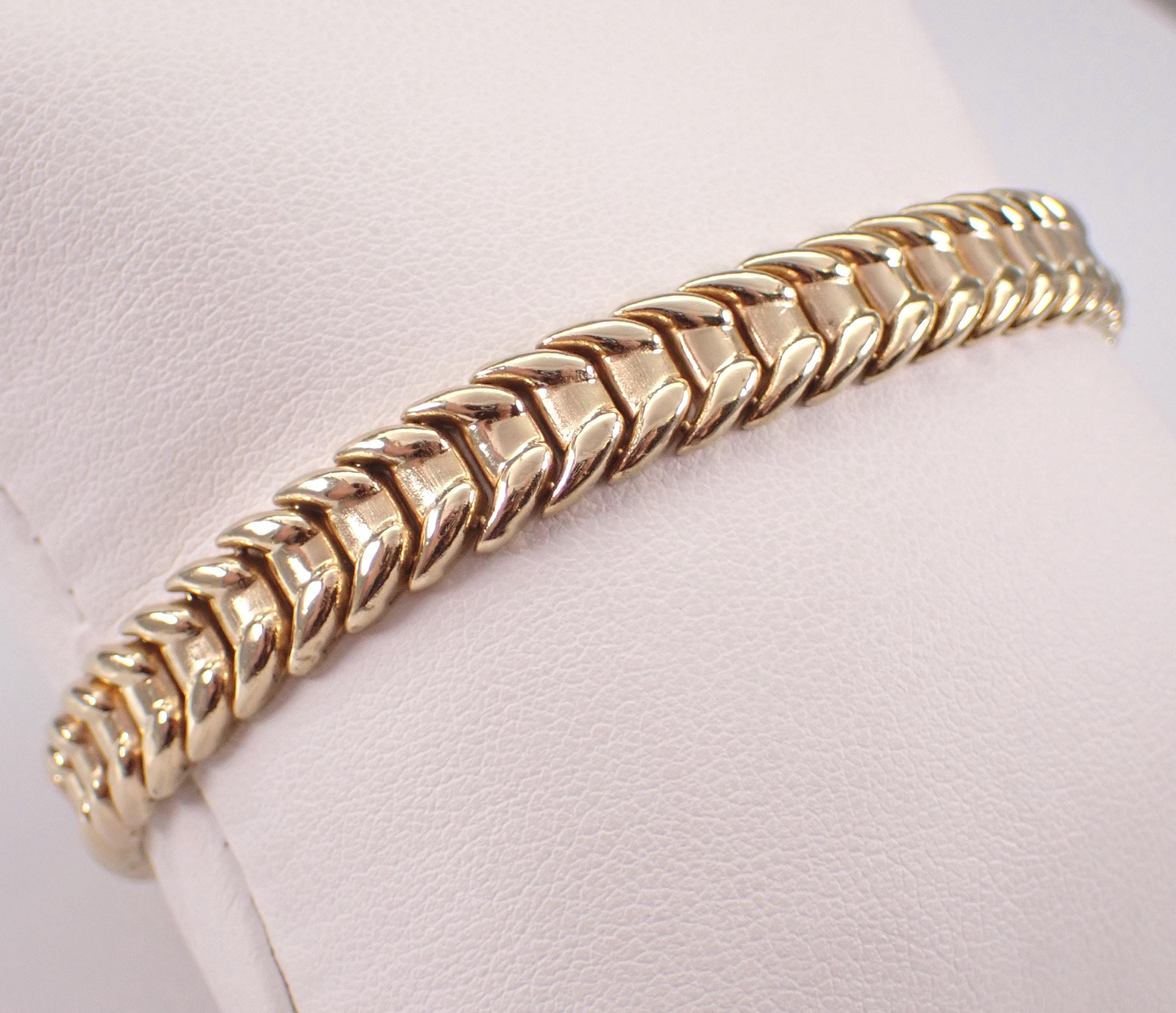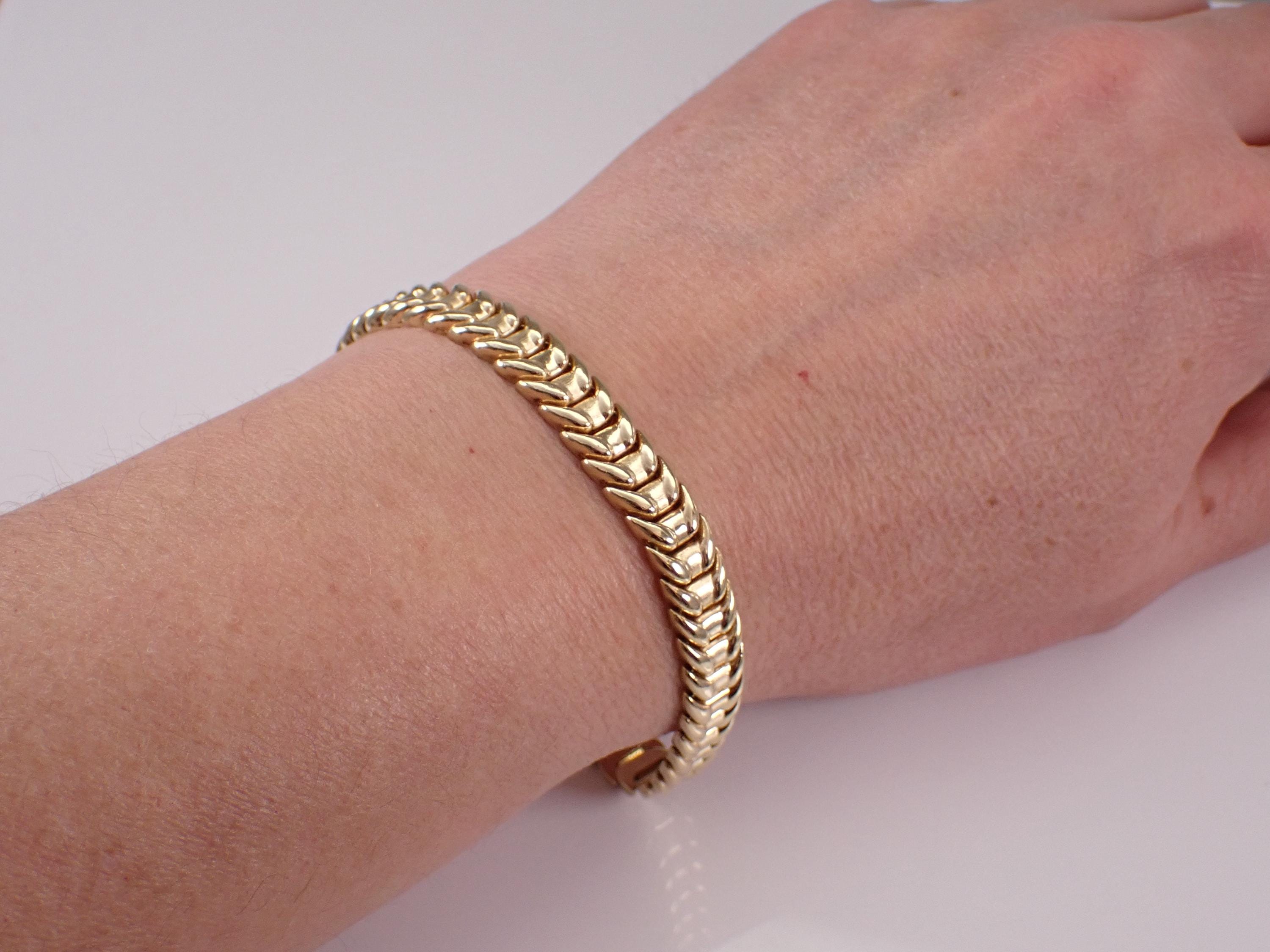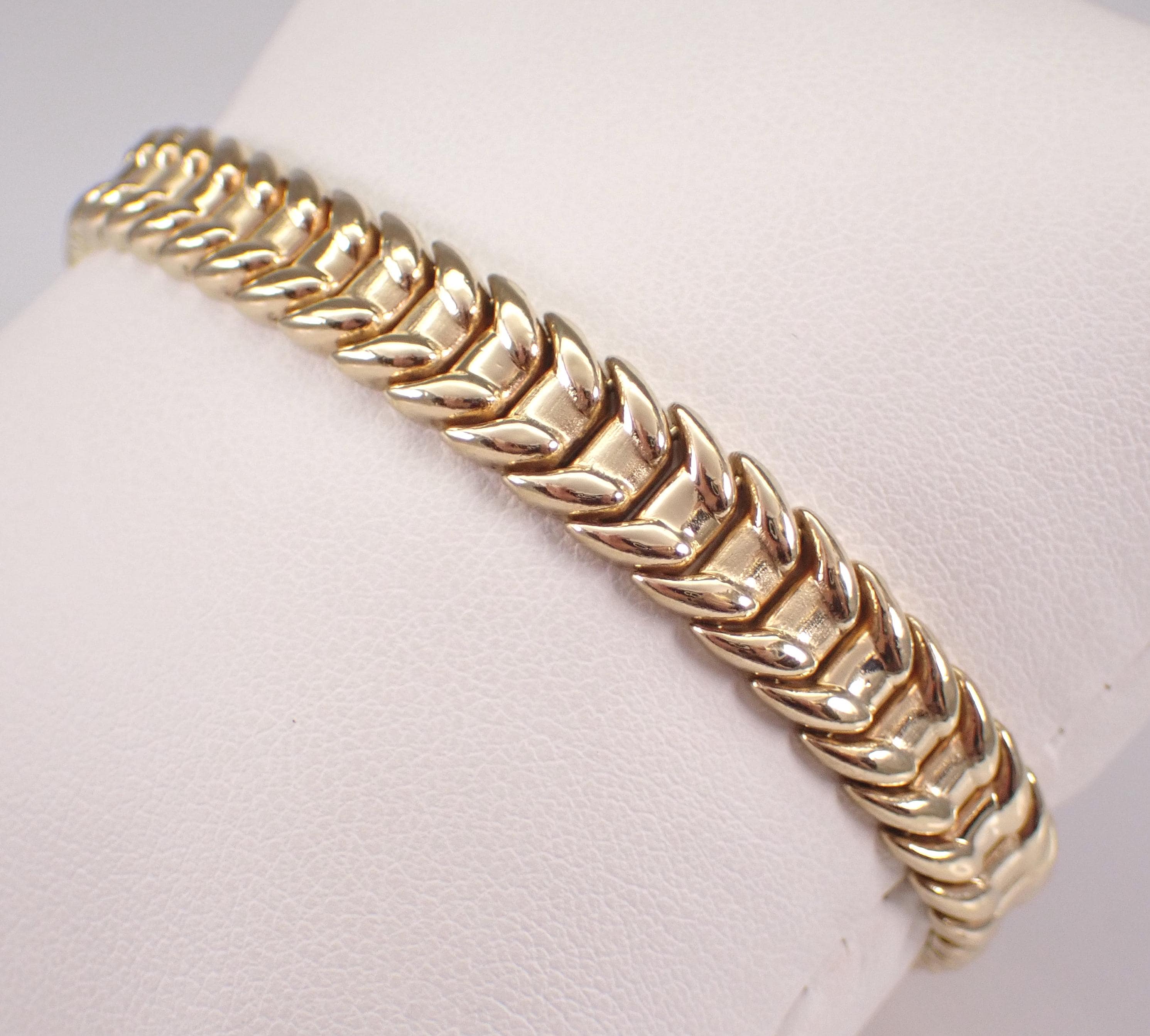 Vintage 14K Yellow Gold Bracelet. This bracelet weighs 15.5 grams and fits a standard ladies wrist, measuring 7 1/4". This bracelet measures 8 mm in width. This bracelet will be accompanied by an appraisal by a GIA Certified Diamond Grader with the retail replacement value of $4,895.00. I will ship this bracelet promptly in a gift box.
