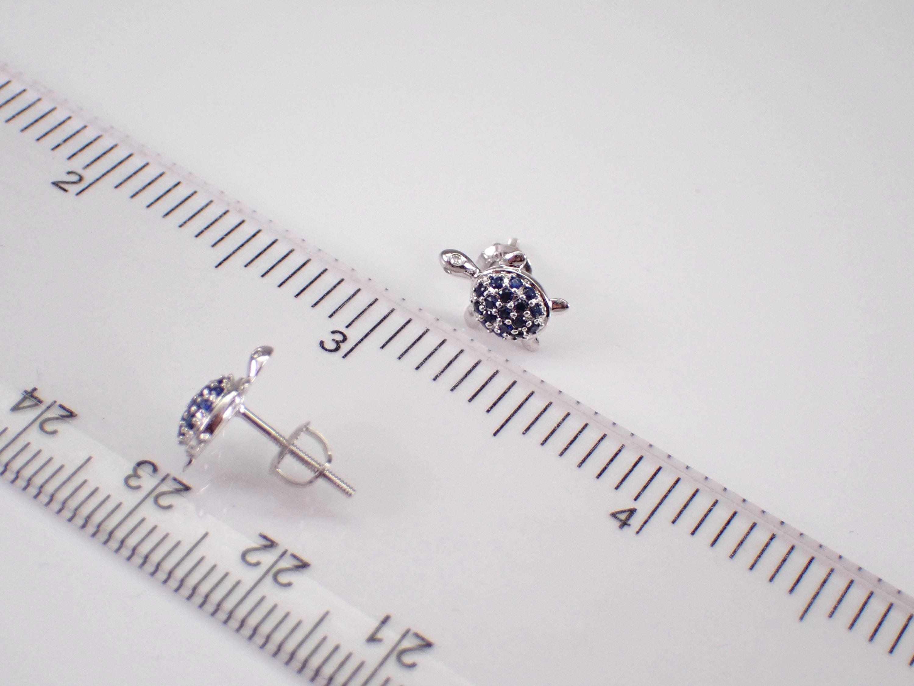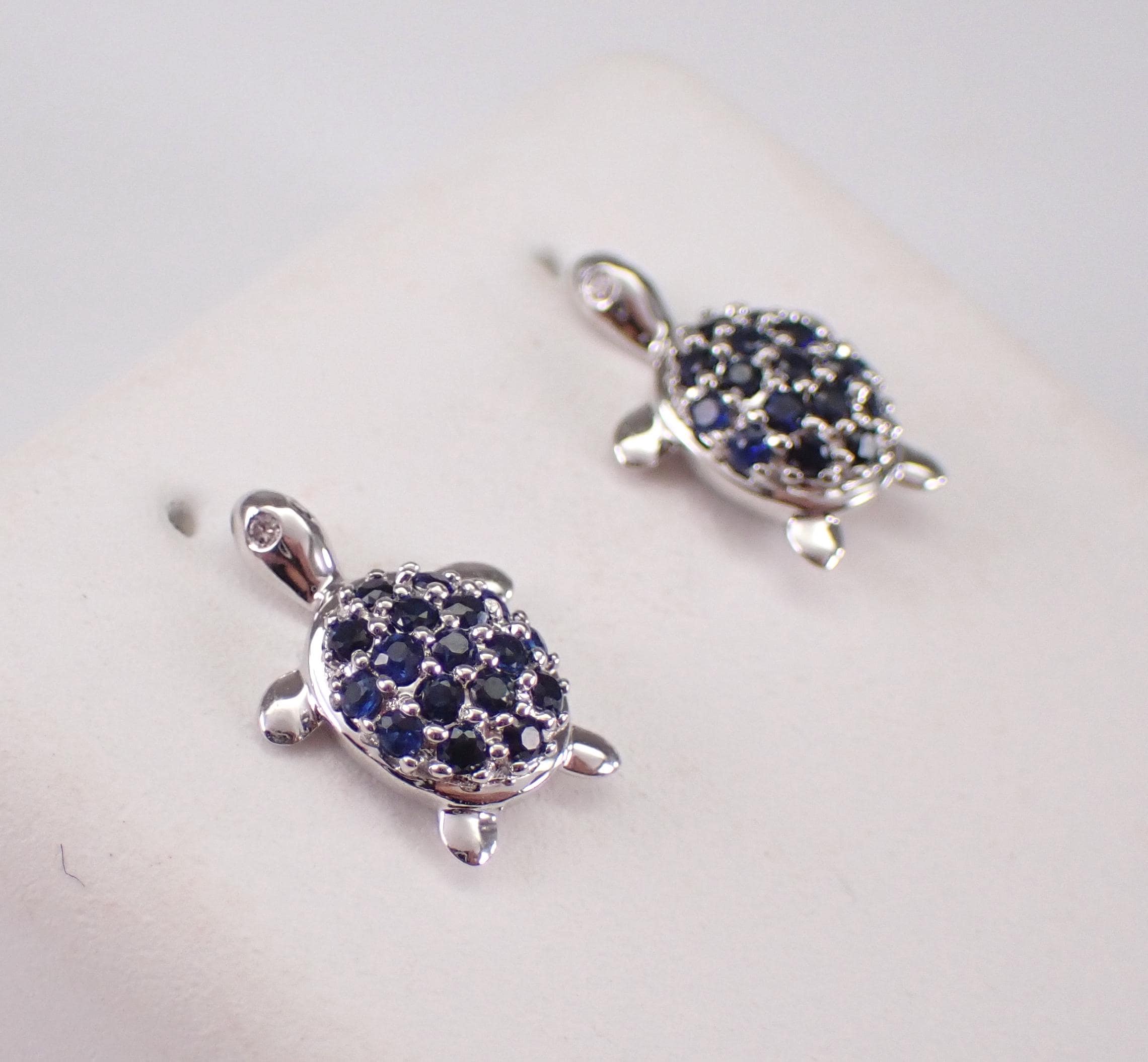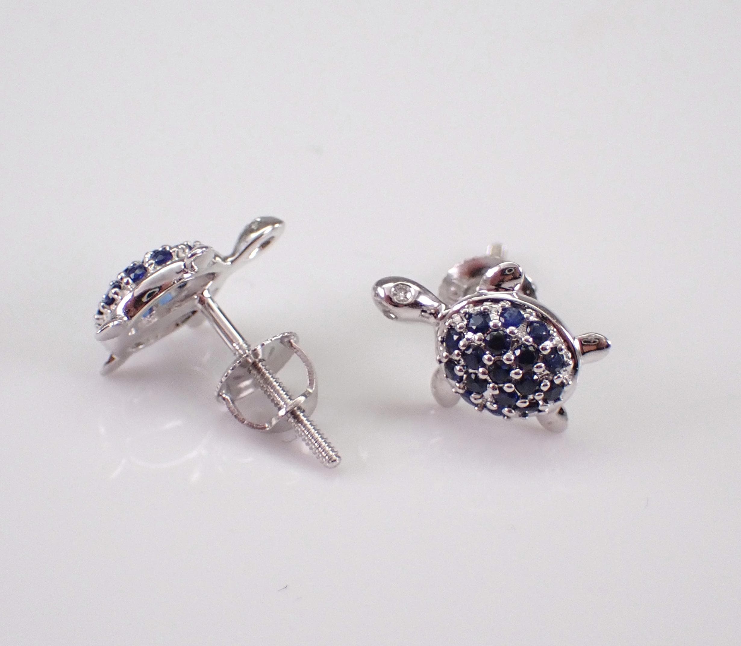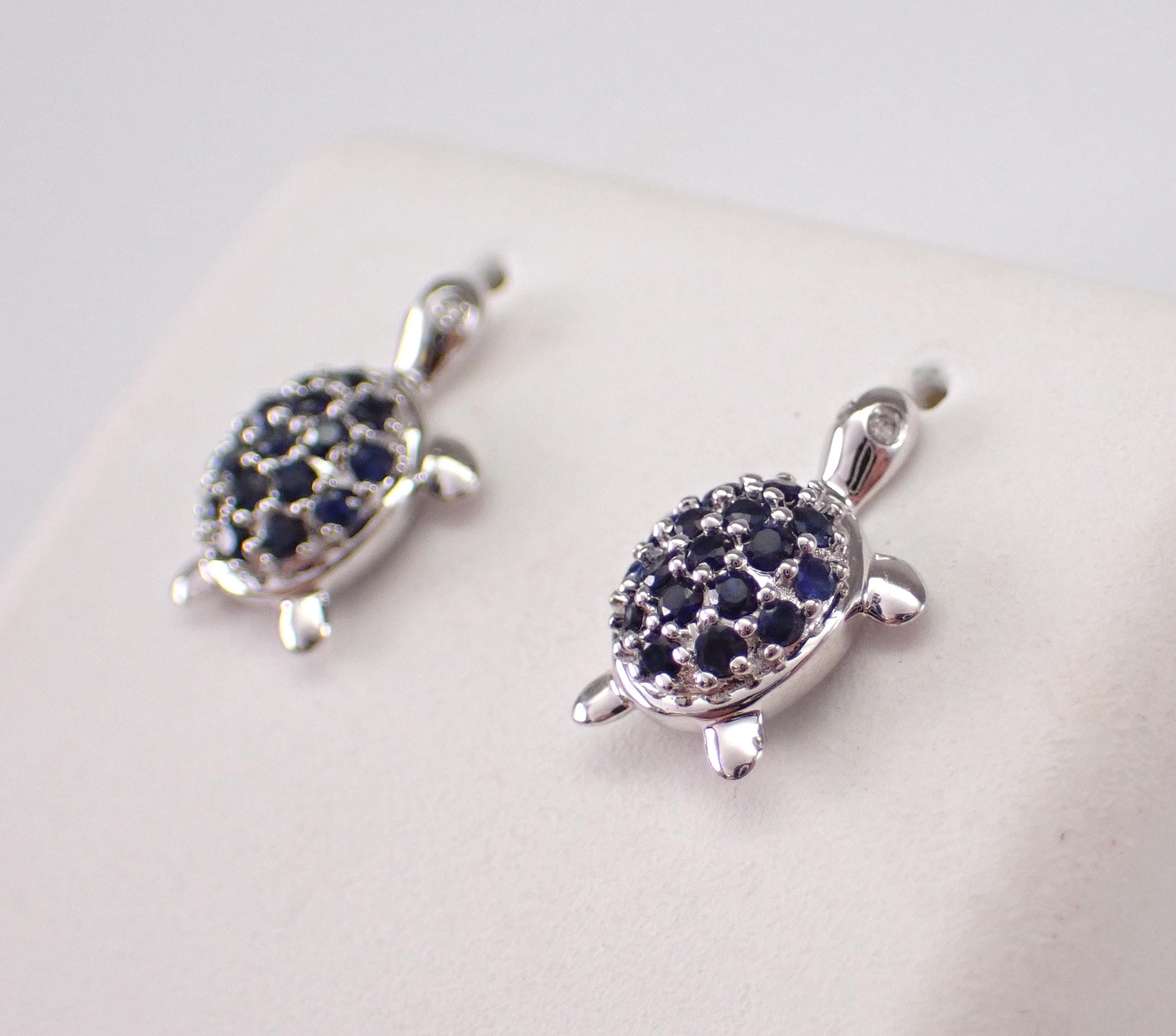 White Gold Sapphire Turtle Stud Earrings