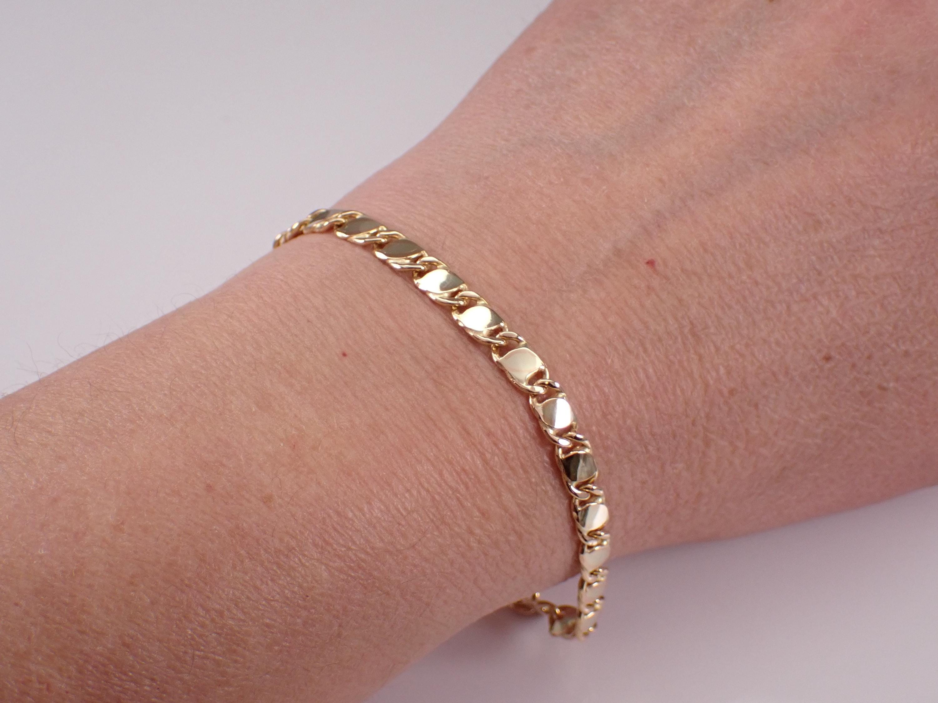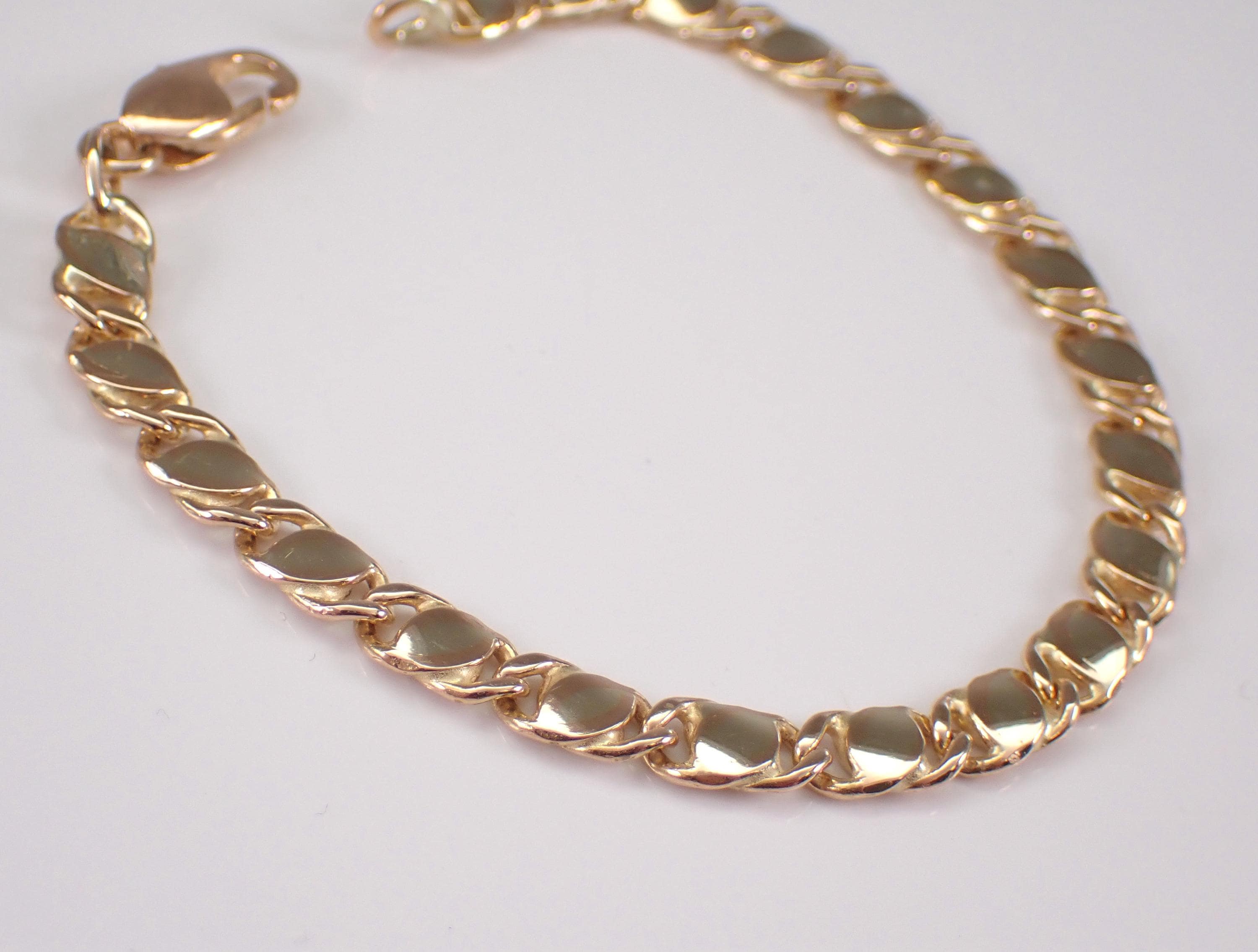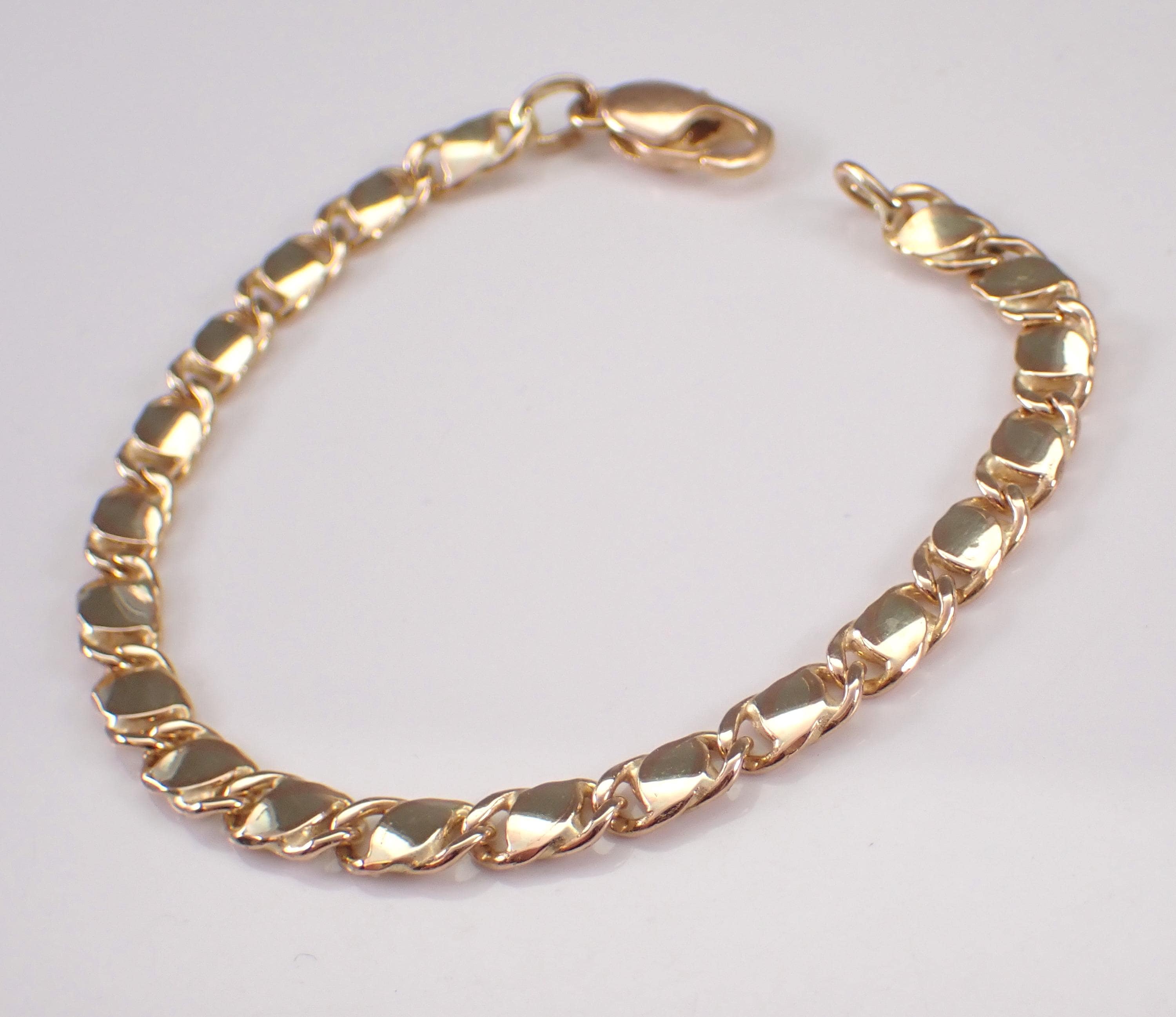 Unique Vintage Solid 14K Gold Bracelet. This bracelet is very unusual and is set with white gold and rose gold inlay in the yellow gold links. This bracelet weighs 9.8 grams, measures 5 mm in width and measures 6 1/4" in length. This bracelet will be accompanied by an appraisal by a GIA Certified Diamond Grader with the retail replacement value of $3,295.00. I will ship this bracelet promptly in a gift box.