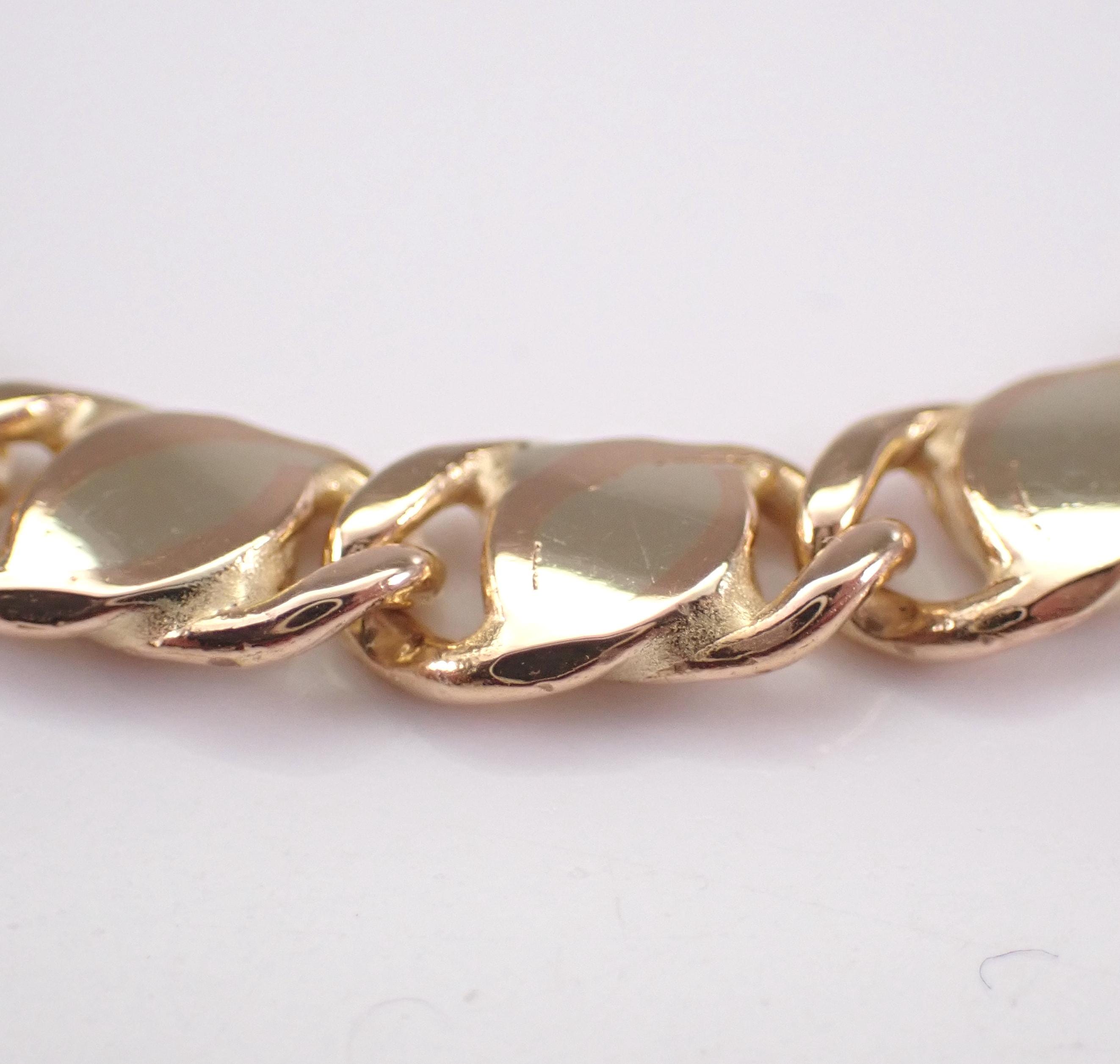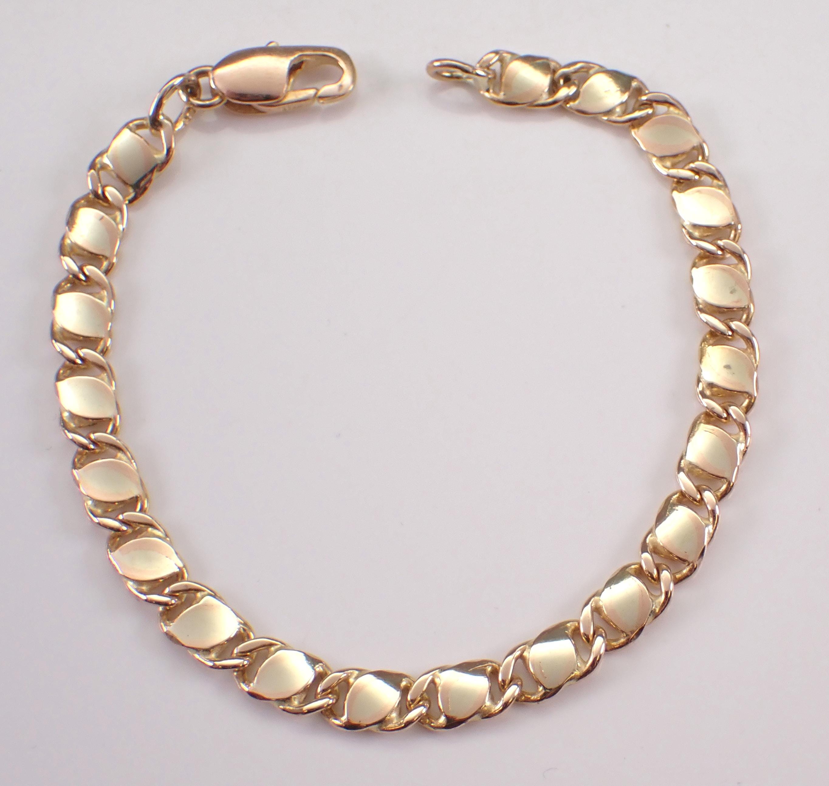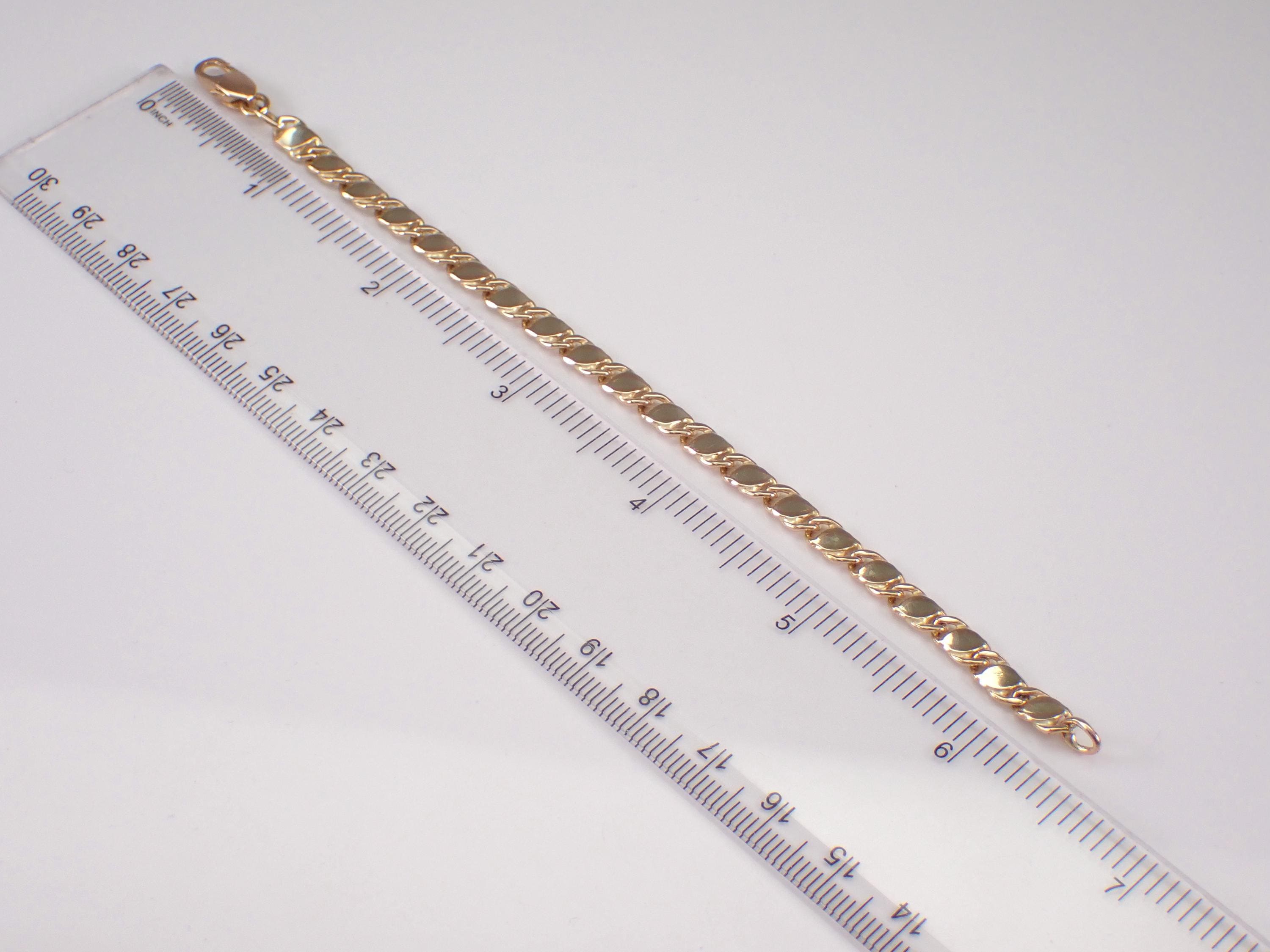 Unique Vintage Solid 14K Gold Bracelet. This bracelet is very unusual and is set with white gold and rose gold inlay in the yellow gold links. This bracelet weighs 9.8 grams, measures 5 mm in width and measures 6 1/4" in length. This bracelet will be accompanied by an appraisal by a GIA Certified Diamond Grader with the retail replacement value of $3,295.00. I will ship this bracelet promptly in a gift box.