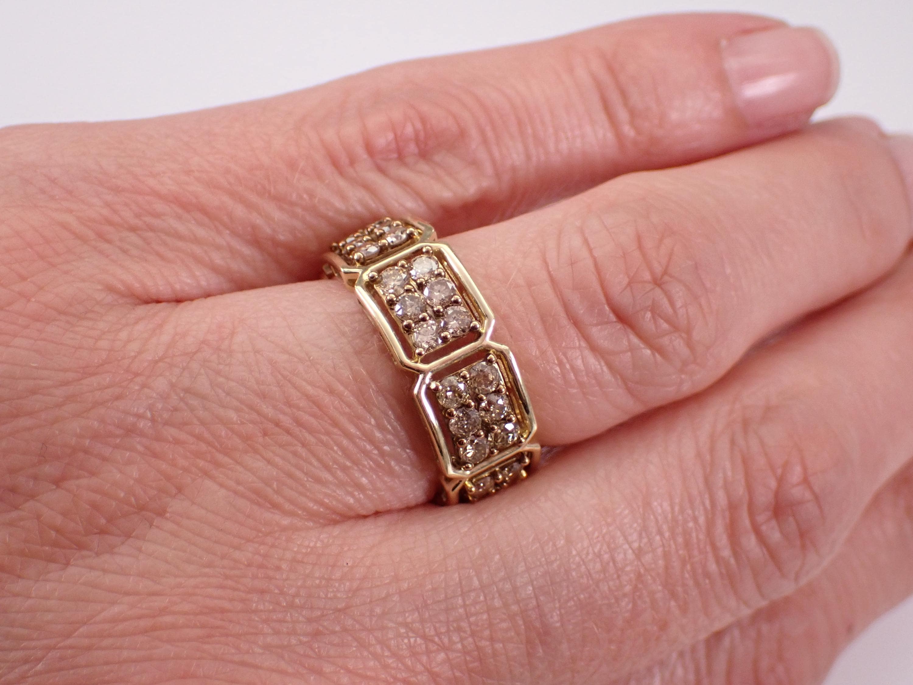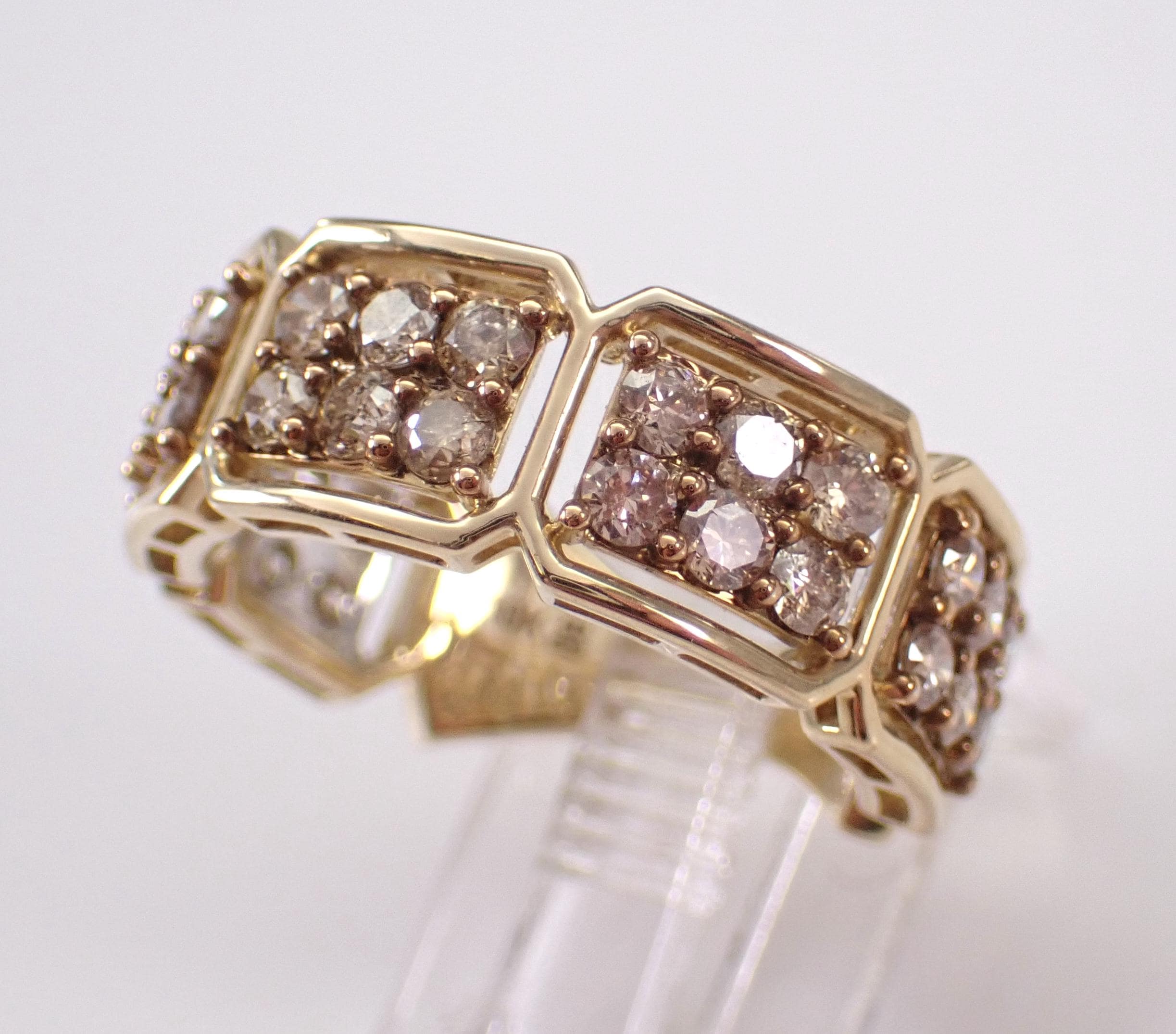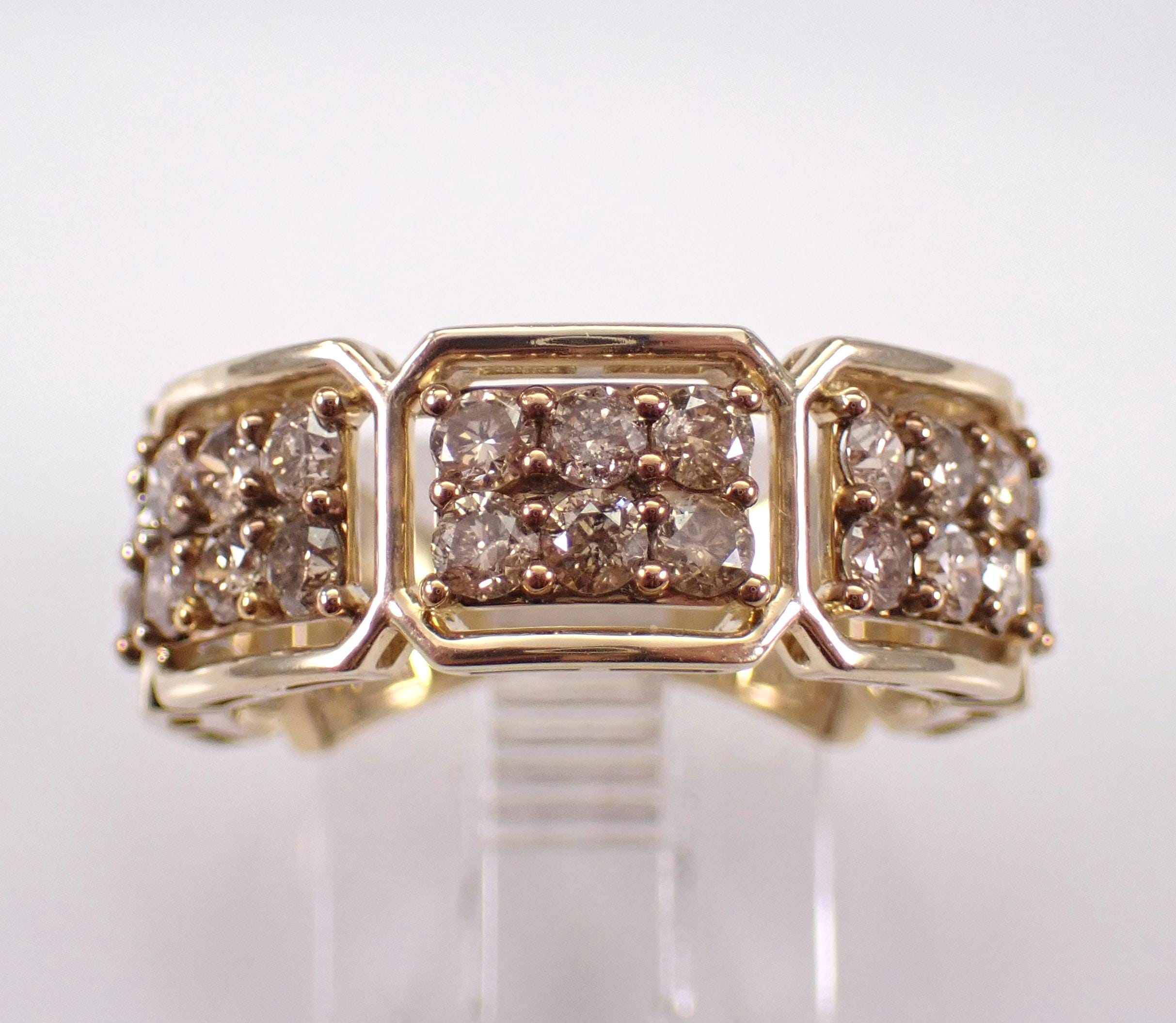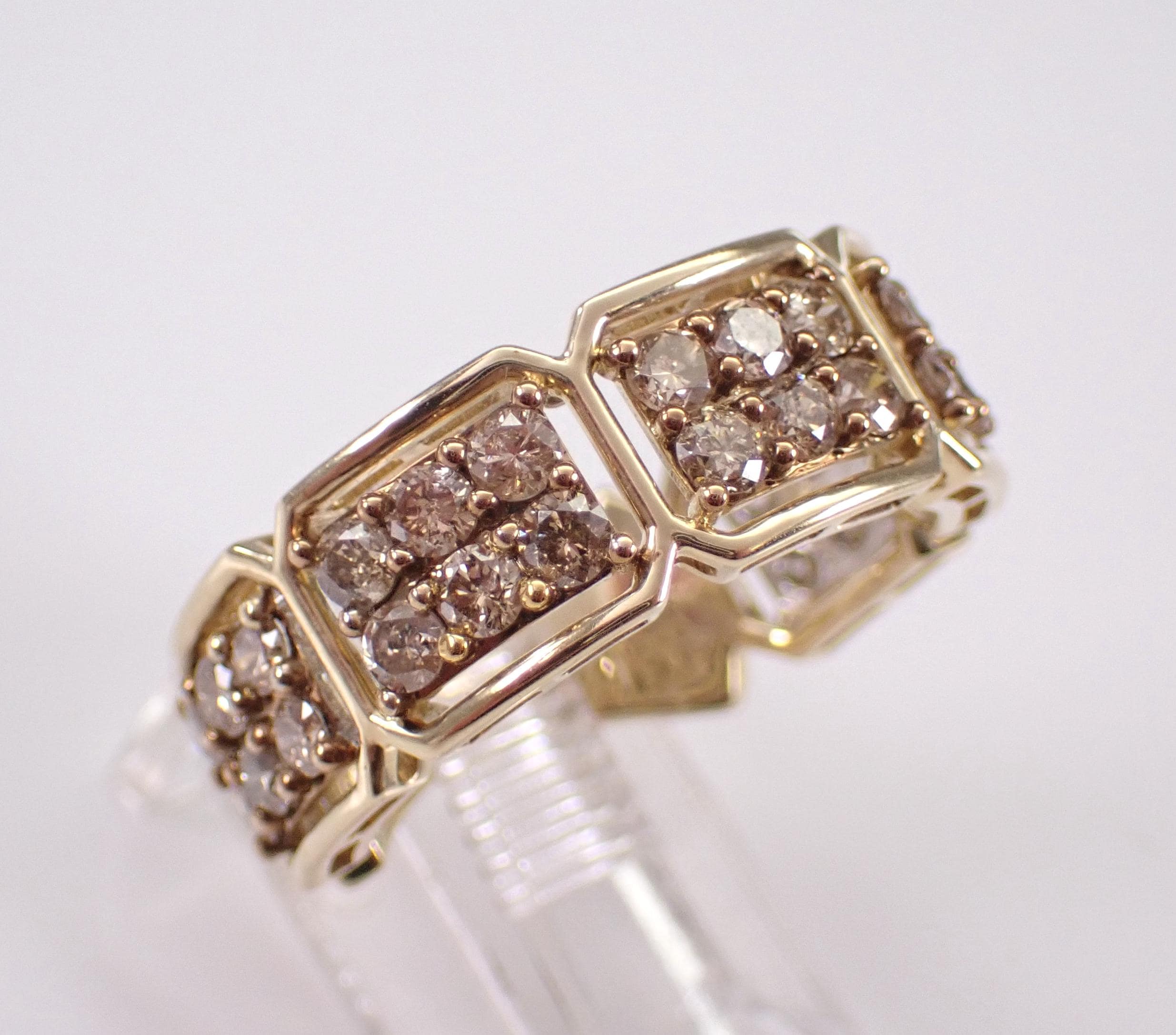 Yellow Gold Diamond Wedding Ring Anniversary Band. This ring is set with thirty Round Brilliant Diamonds. These diamonds are a light brown/Champagne color, SI/I clarity and weigh a total of 1.00 carat. This ring is 10KT Yellow Gold, weighs 4.8 grams, measures 8 mm in width and is a finger size 7, which can be resized free of charge (please inquire about sizing with the finger size you need). This ring will be accompanied by an appraisal written by a GIA Certified Diamond Grader with the retail replacement value of $2,995.00. I will ship this ring promptly in a beautiful gift box.