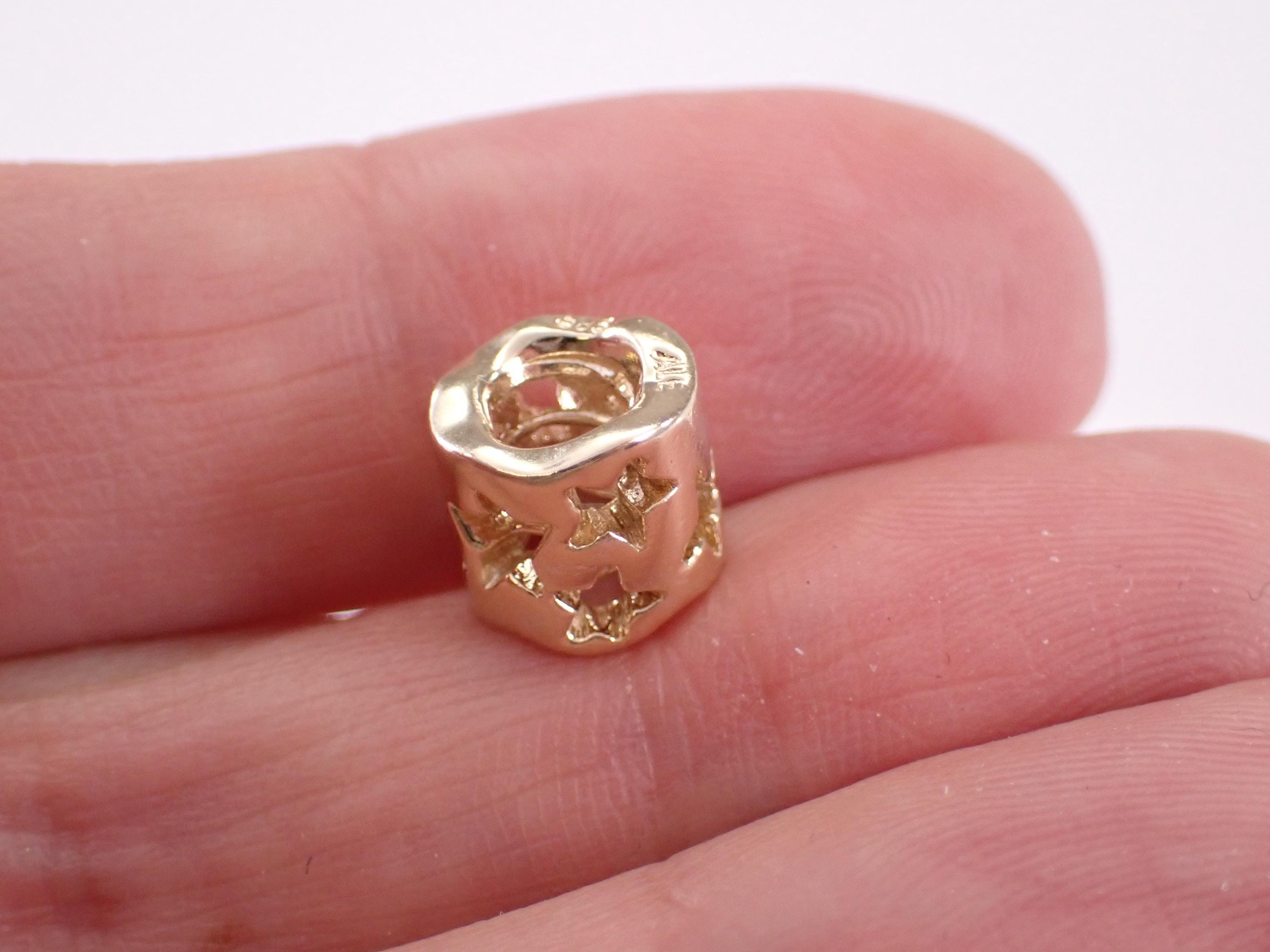 5. Pandora 14K Yellow Gold Seeing Stars Spacer Charm (retired). This charm weighs 2.8 grams, measures 8 mm in diameter and 8 mm in width.