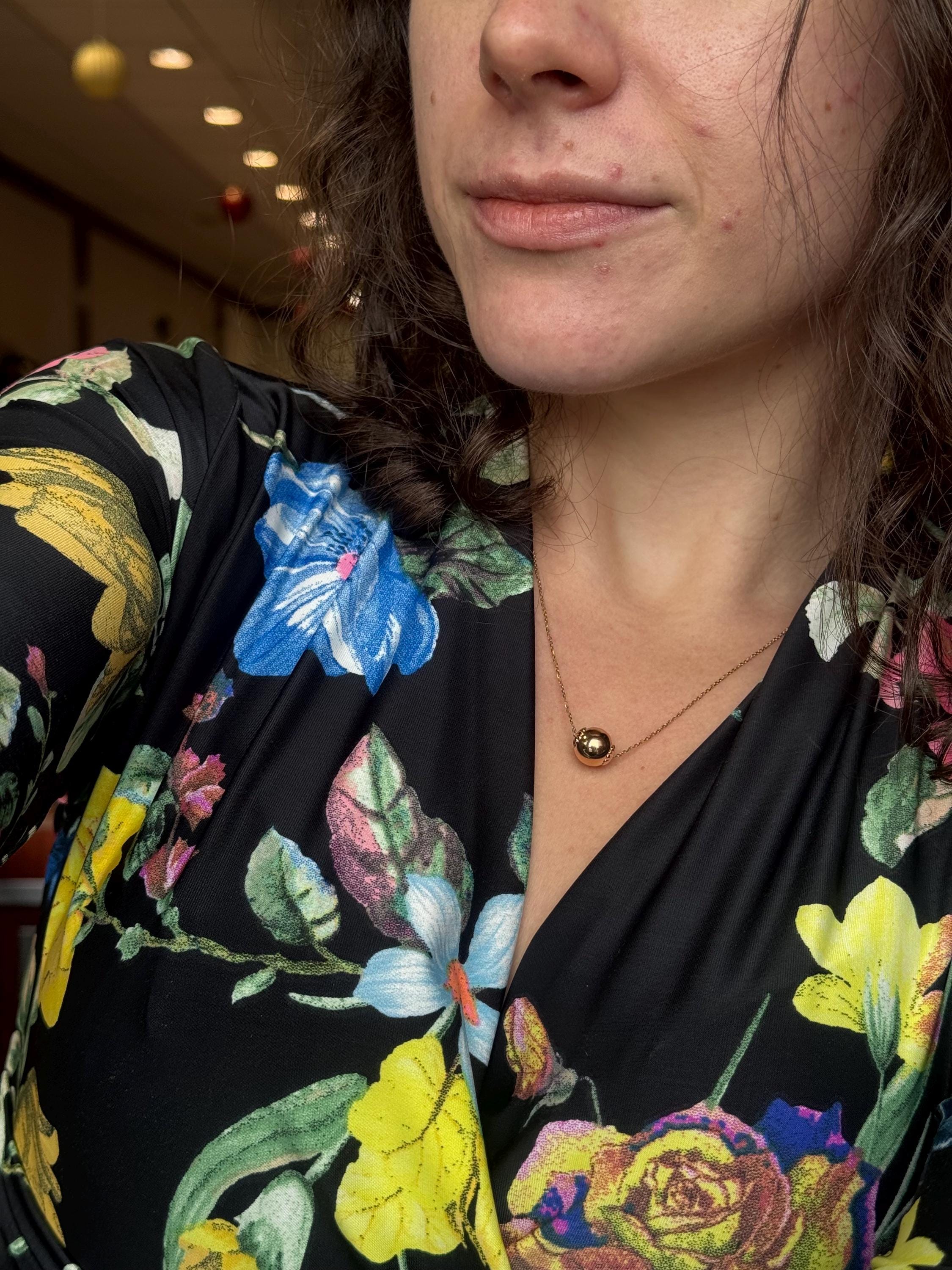 Vintage 14K Yellow Gold Sliding Bead Pendant Necklace with Chain. This pendant is 14KT Yellow Gold and comes with an 18" 14KT Yellow Gold chain. The gold sphere is elegantly accented on both sides with intricate, fluted caps, adding a touch of sophisticated detail and texture. It slides gracefully along the chain, also crafted from 14K gold. Both the pendant and chain weigh a total of 2.2 grams and the pendant measures 10 mm in diameter. I will ship this necklace promptly in a beautiful gift box.