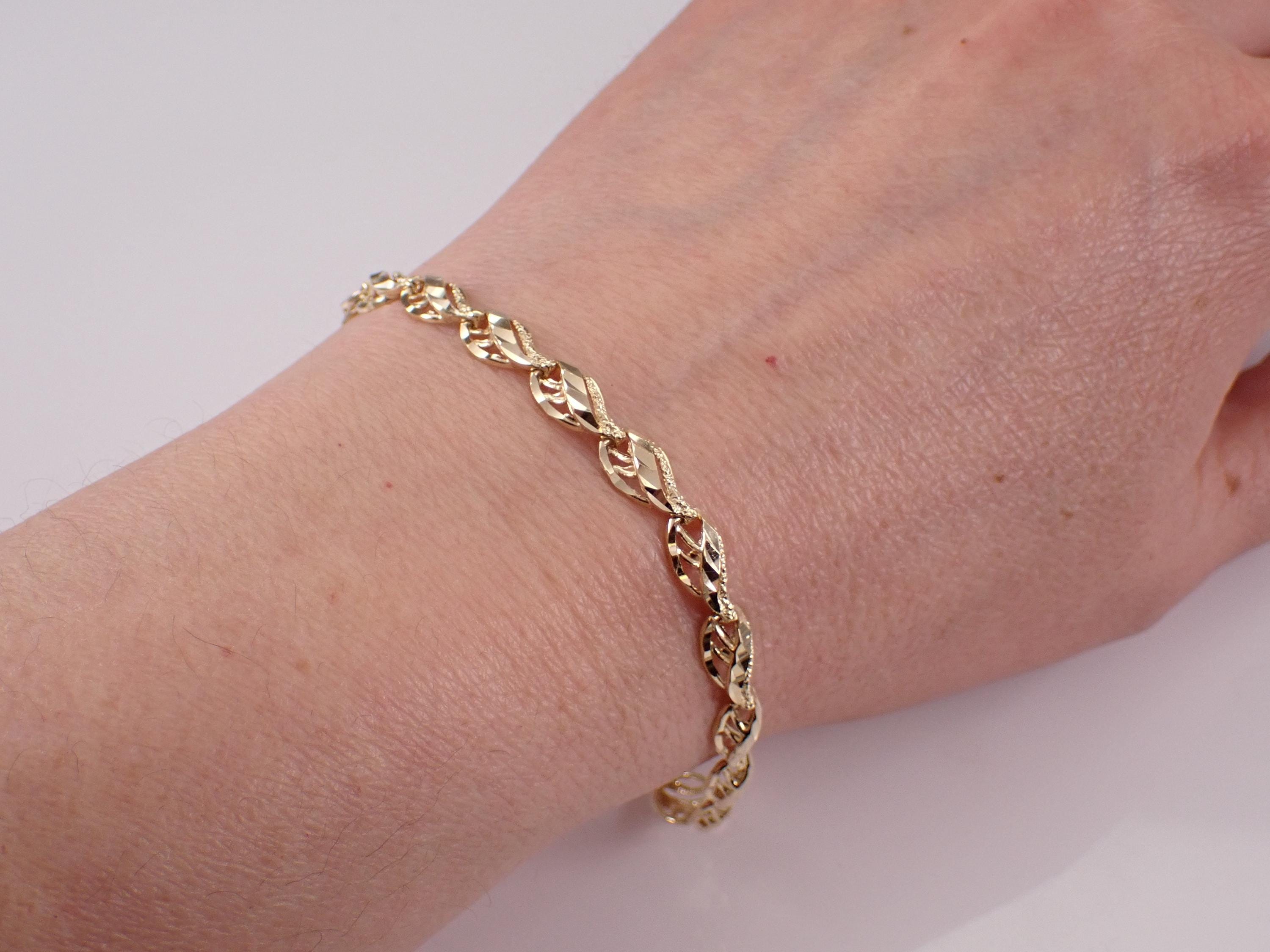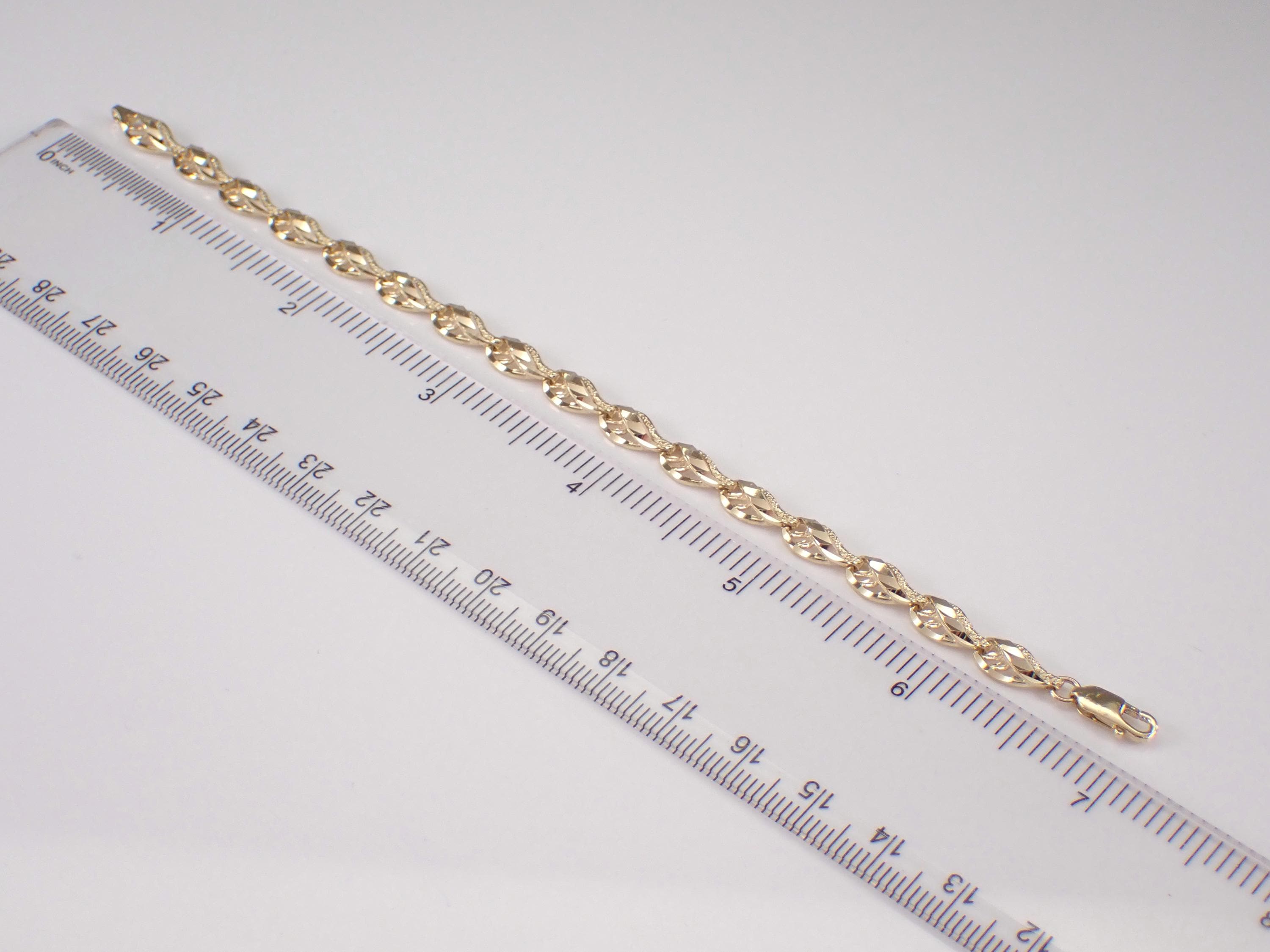 Vintage 14K Yellow Gold Bracelet. This bracelet is made of solid 14K Yellow Gold. This bracelet weighs 6.6 grams, measures 6 mm in width and 6 3/4" in length. I will ship this bracelet promptly in a gift box accompanied by an appraisal for insurance and authentication purposes.