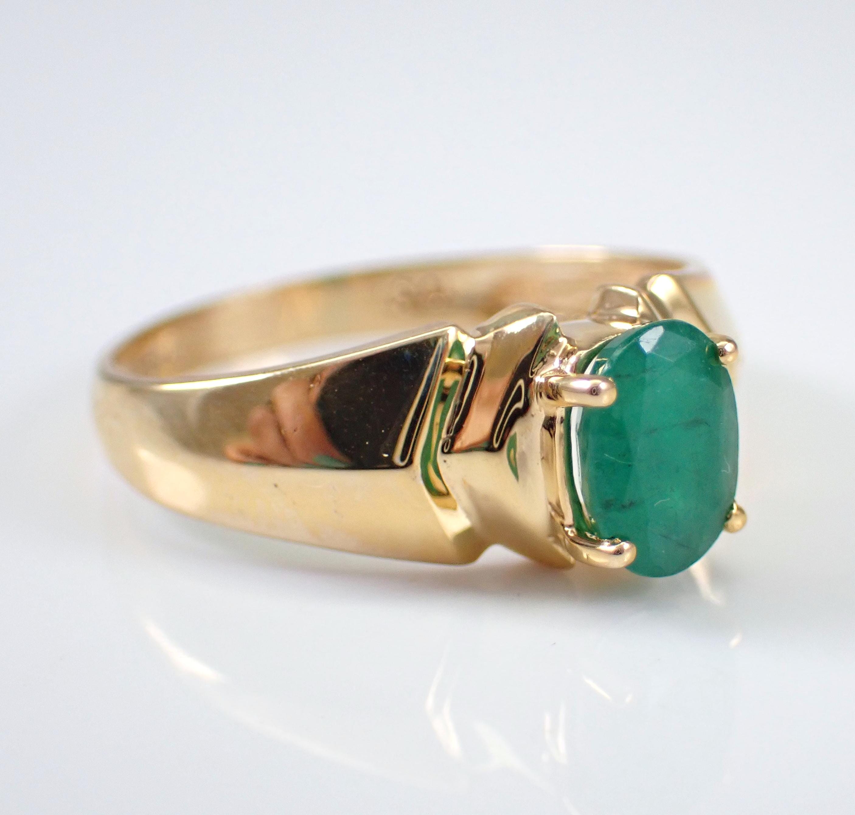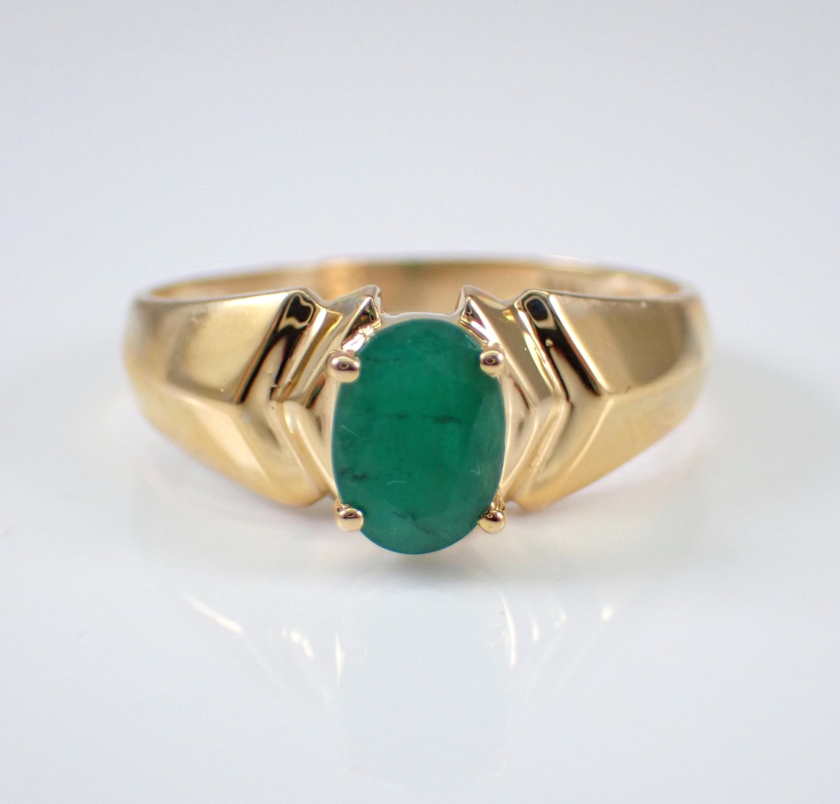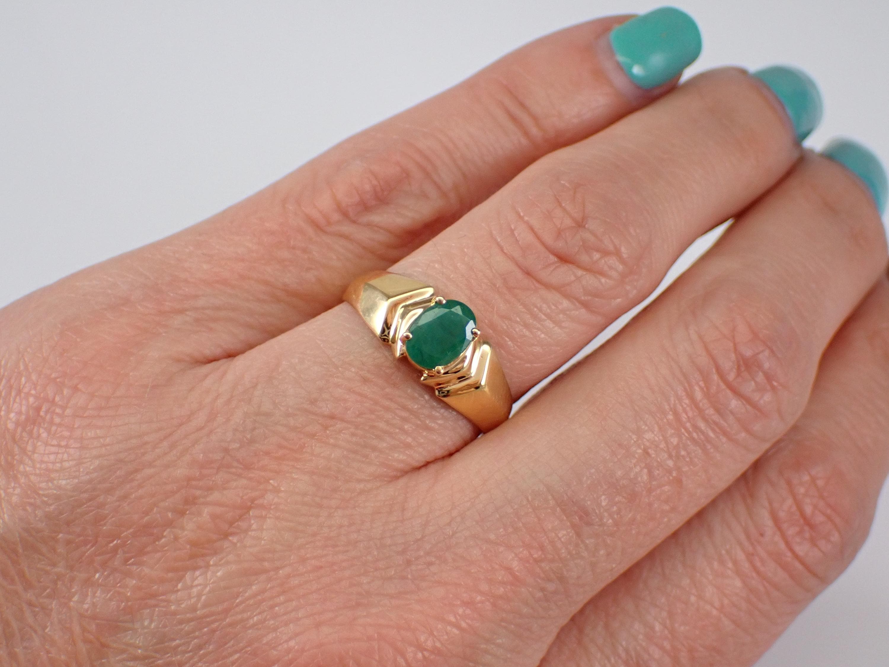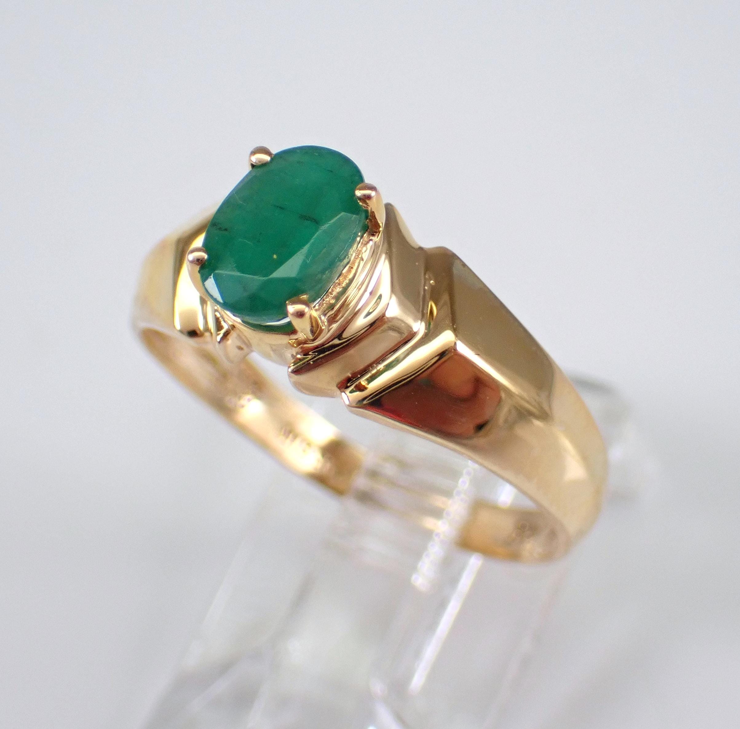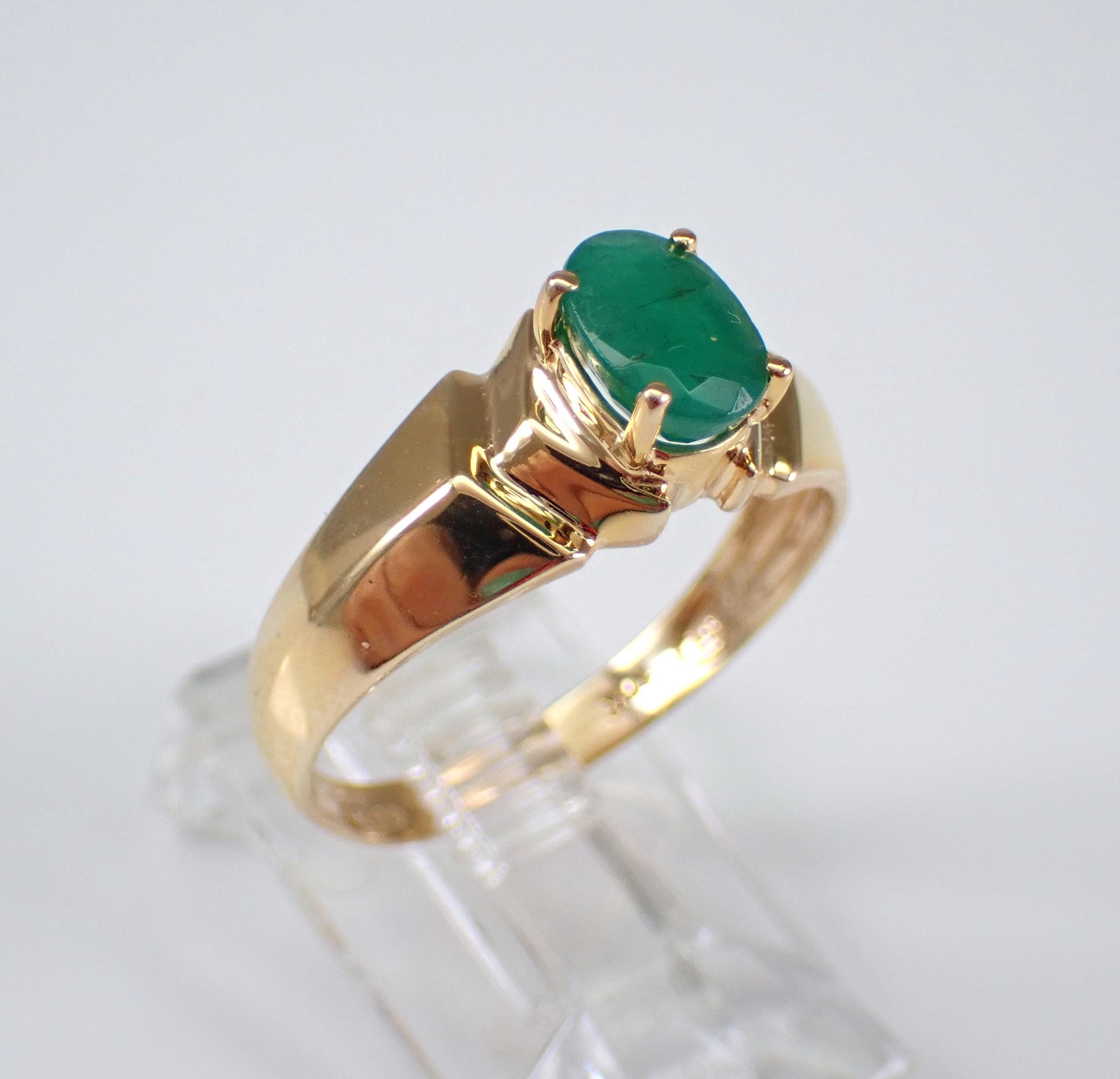 Vintage Estate Yellow Gold Emerald Solitaire Engagement Ring.