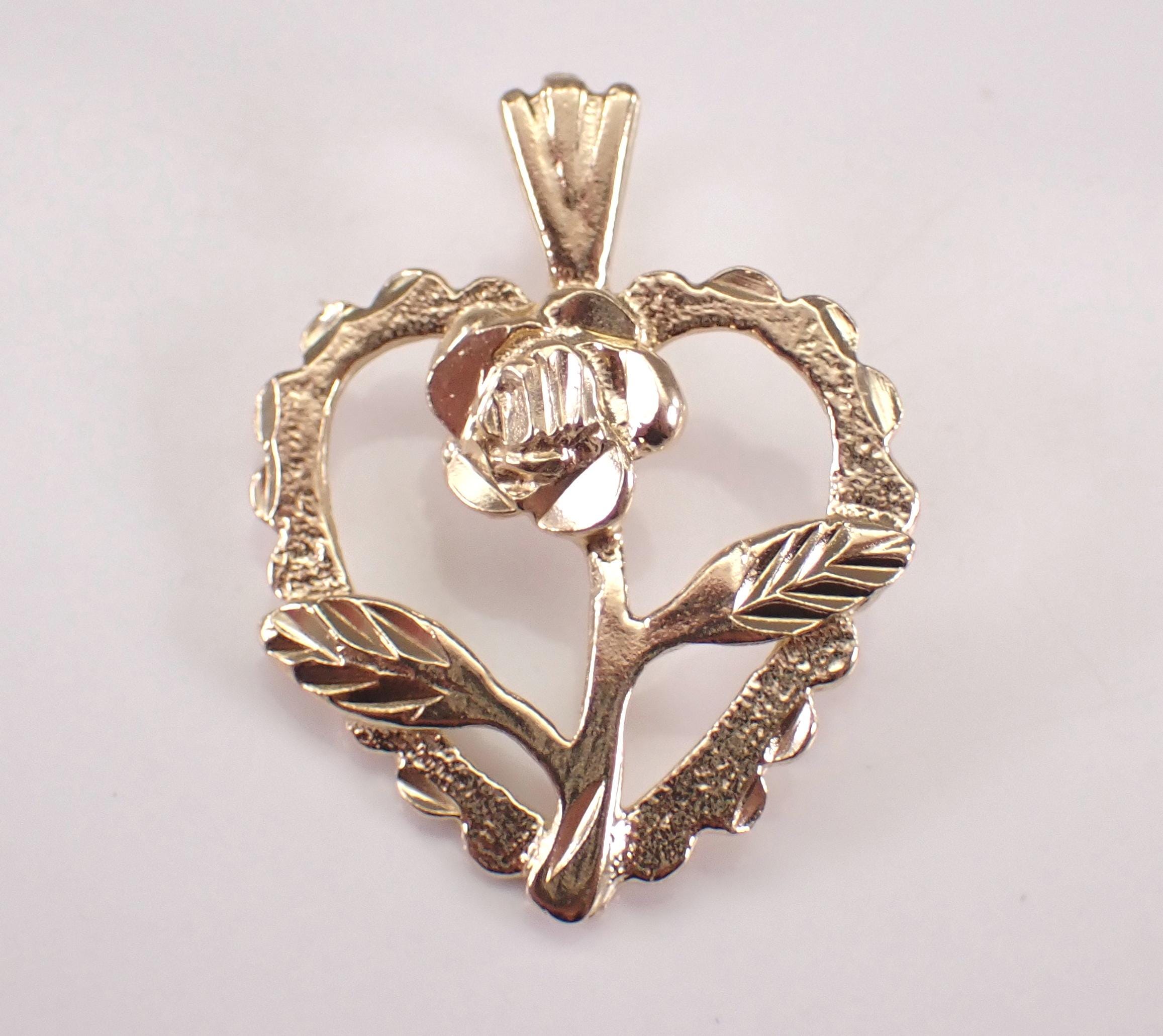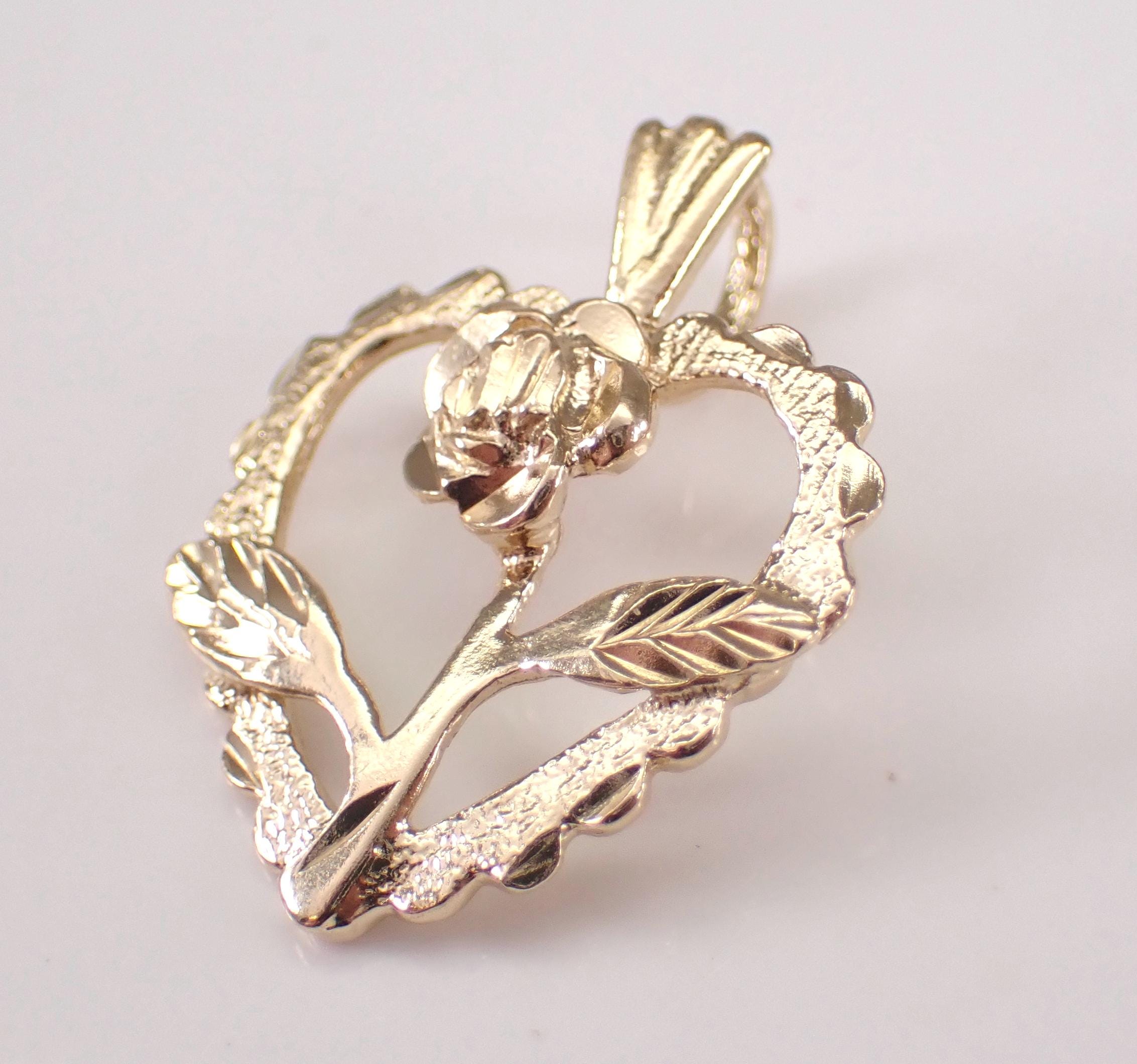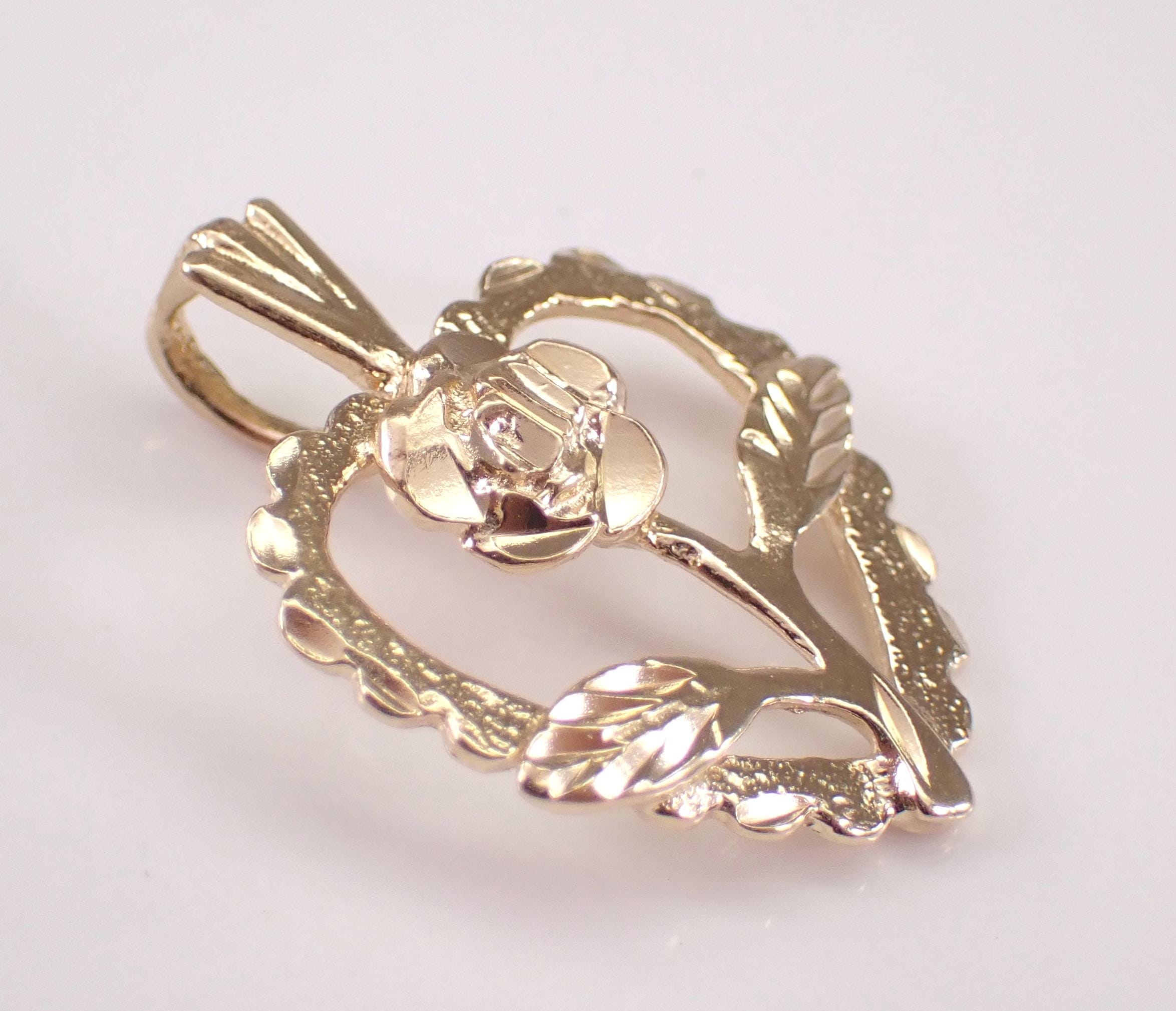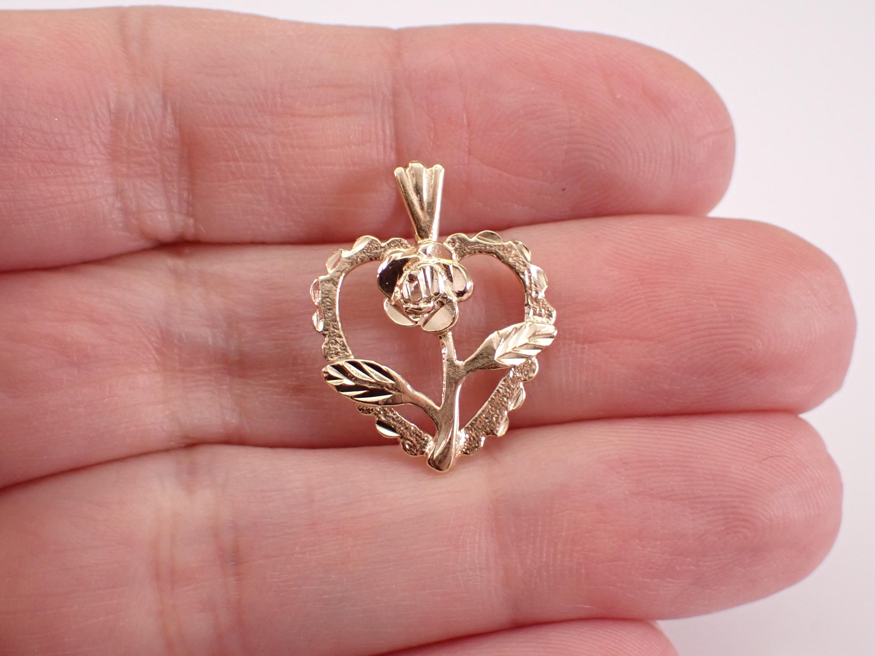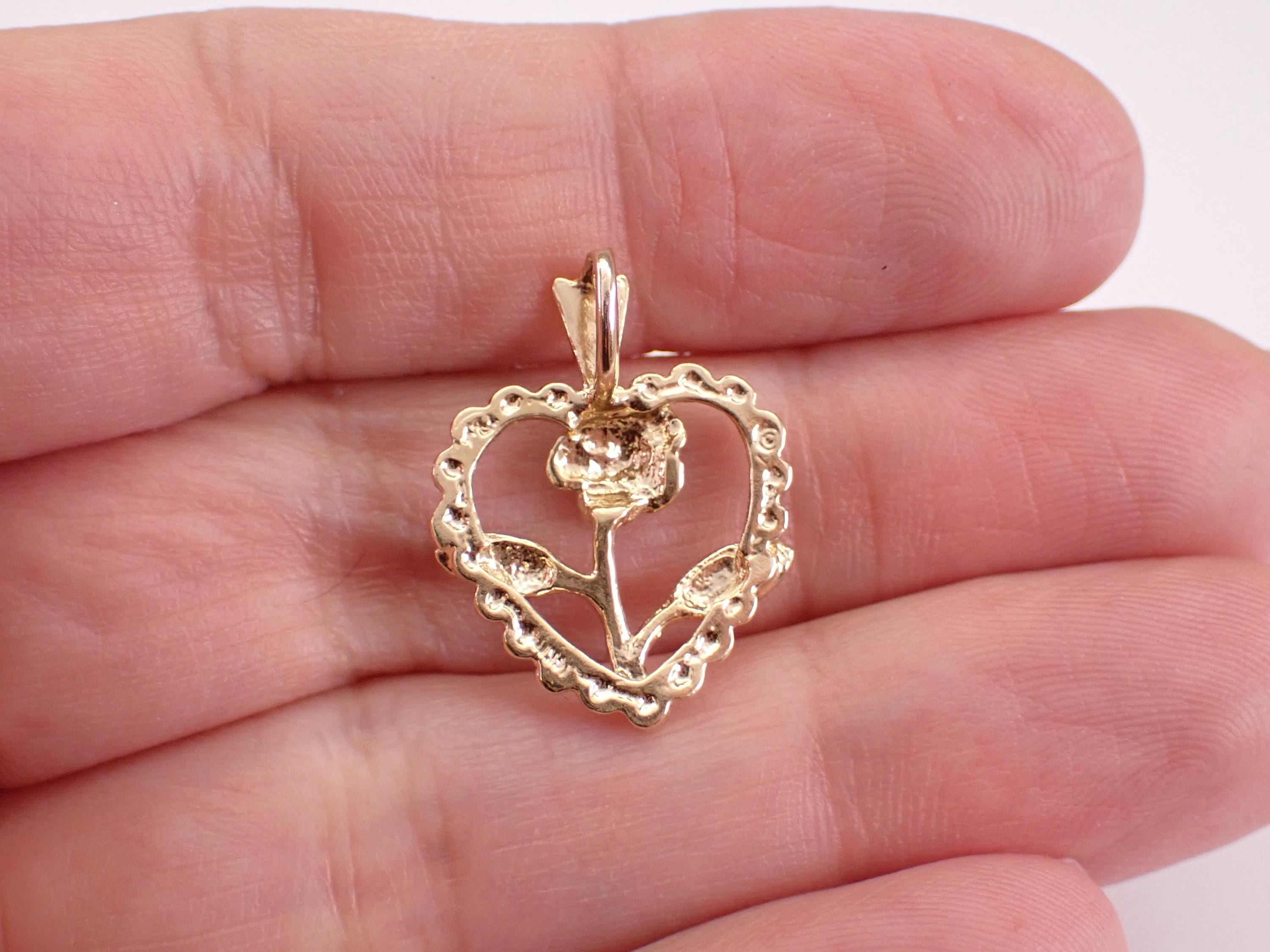 Vintage 14K Yellow Gold Heart and Flower Charm Pendant. This charm measures 22 X 17 mm with the bail and weighs 1.7 grams. I will ship this pendant promptly in a gift pouch.