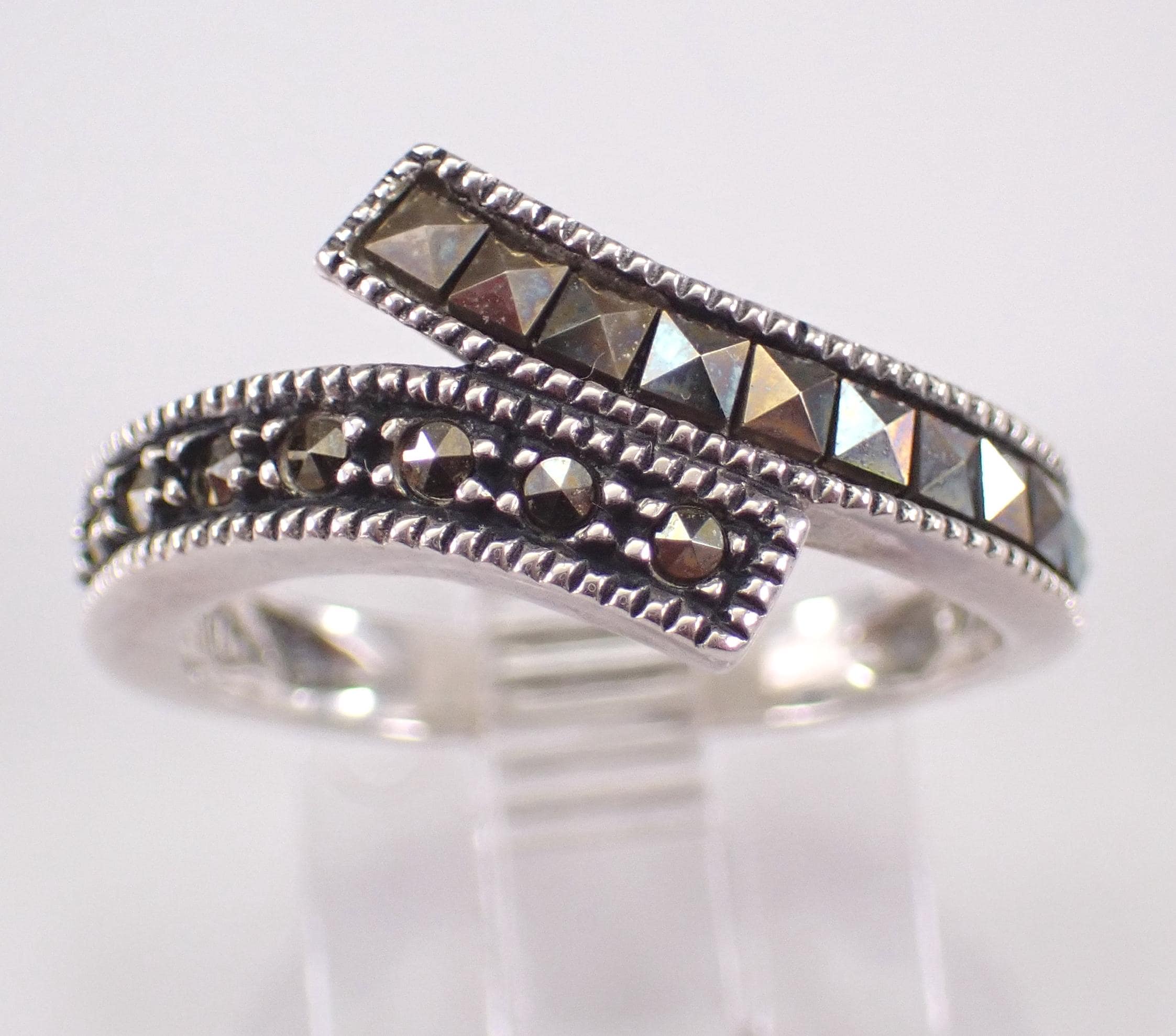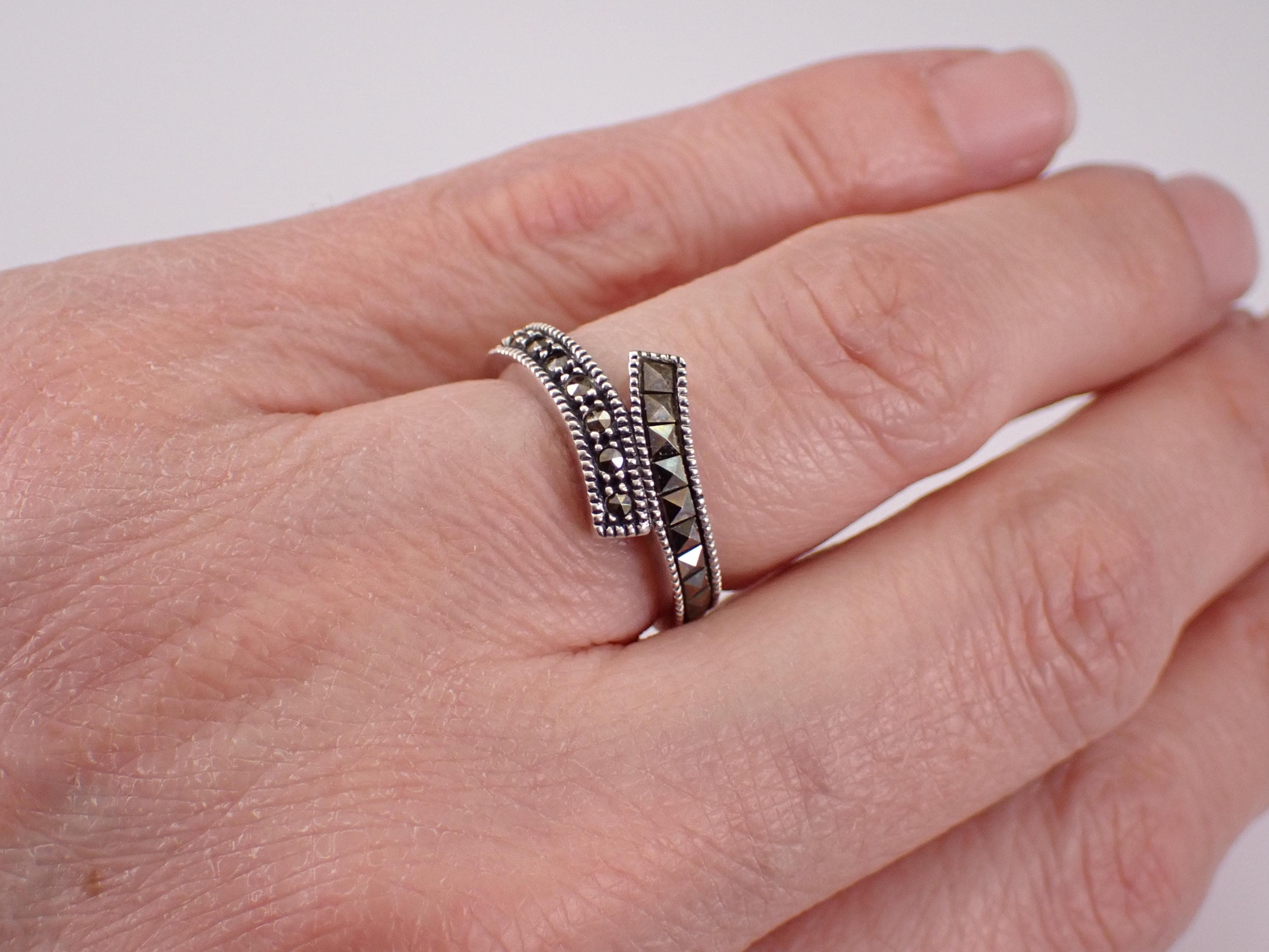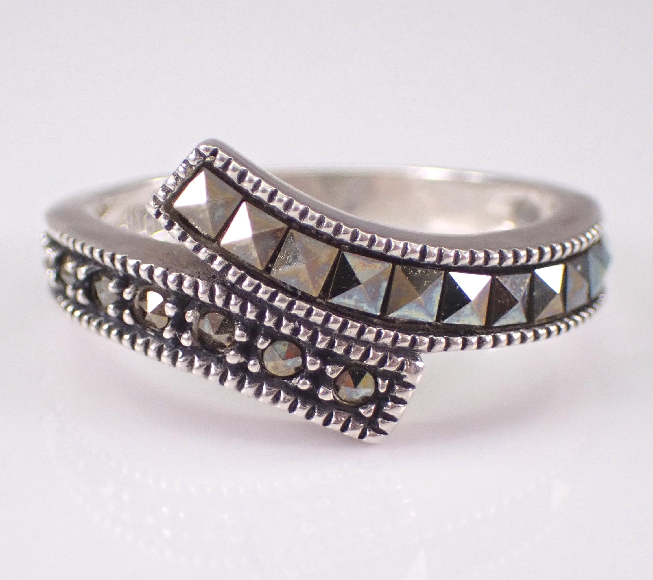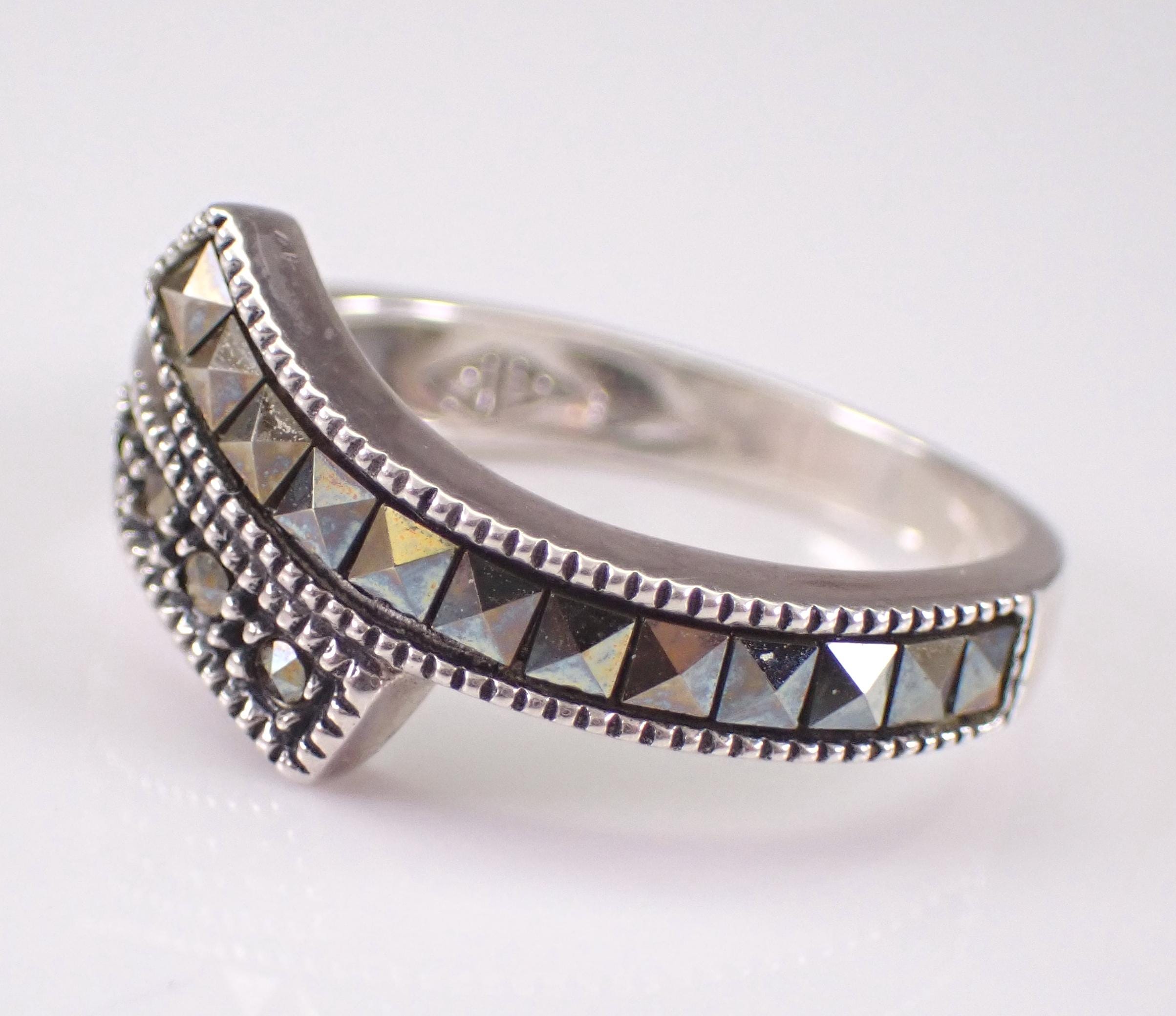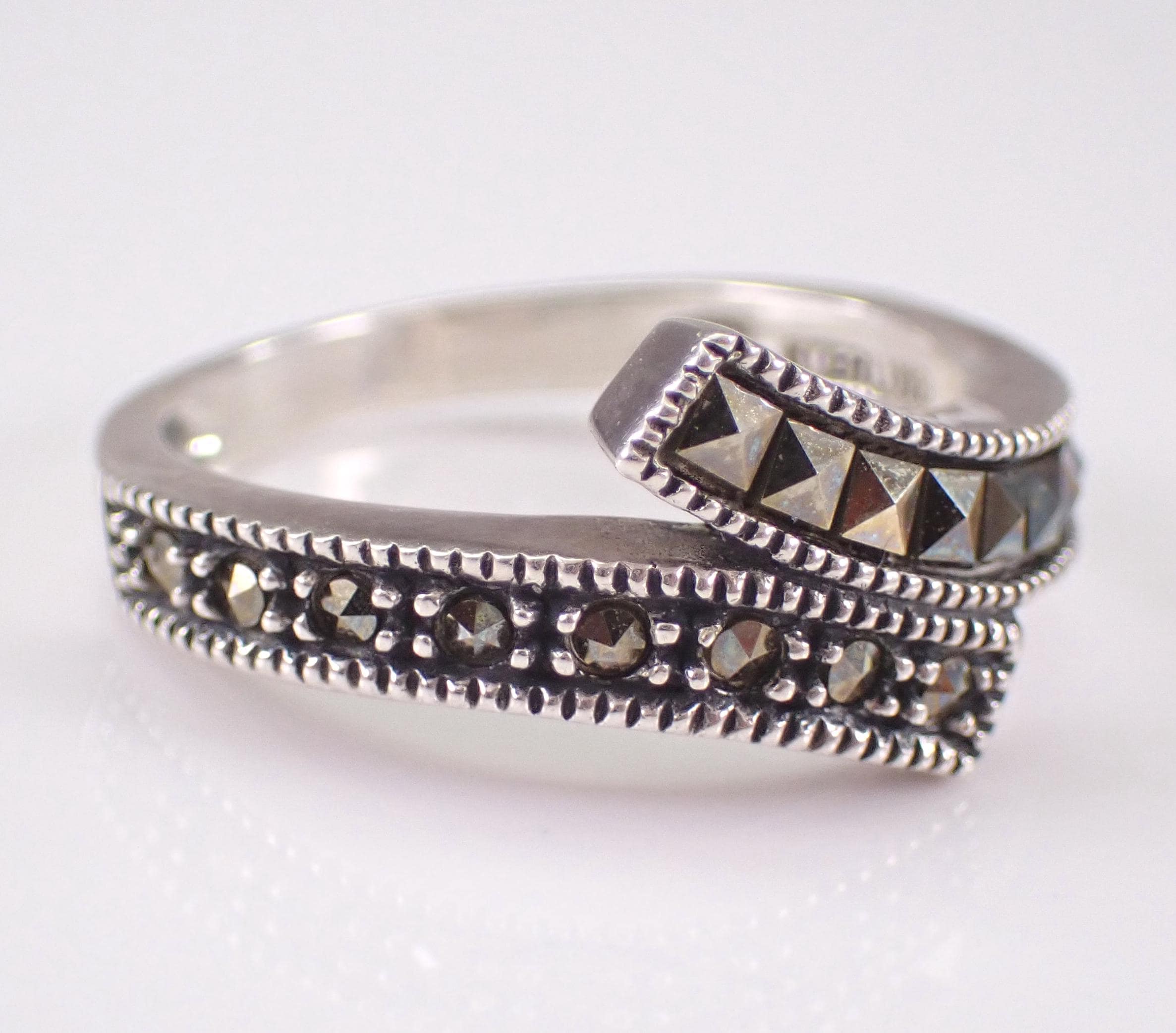 Vintage Sterling Silver marcasite ring. This ring is in excellent condition, is finger size 6 1/4 and weighs 2.9 grams. This ring will be shipped promptly in a gift pouch.