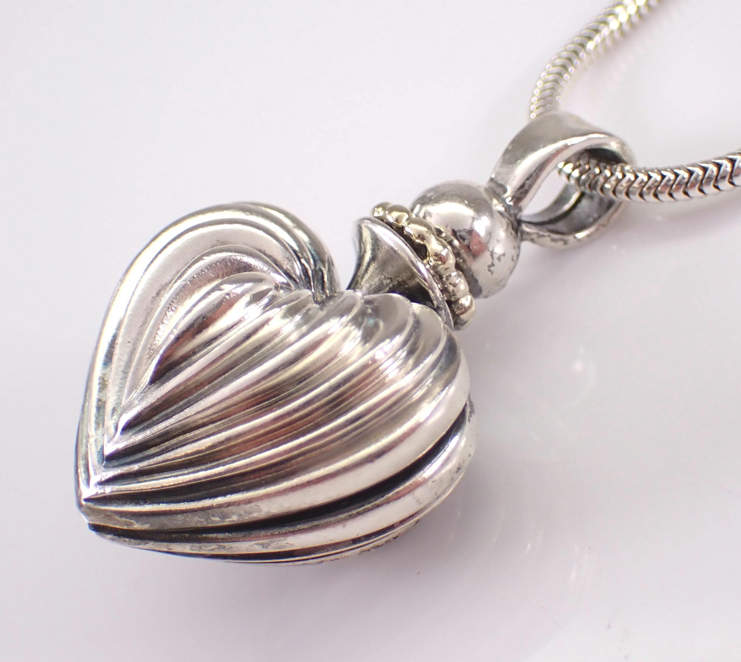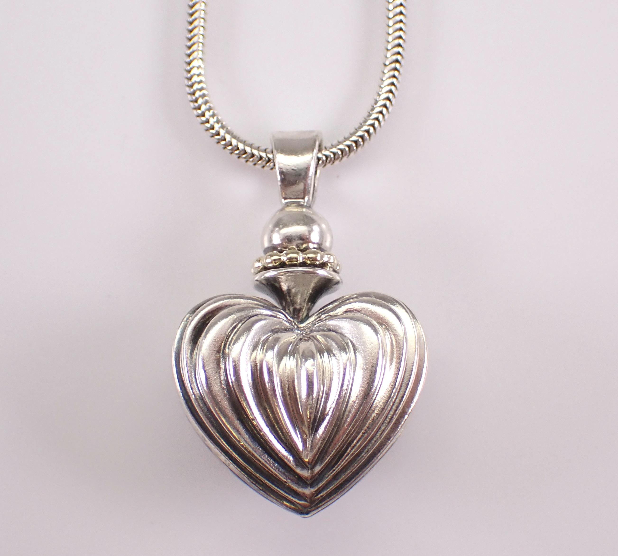 Sterling Silver Lagos Caviar Heart Charm Pendant Necklace with Chain.