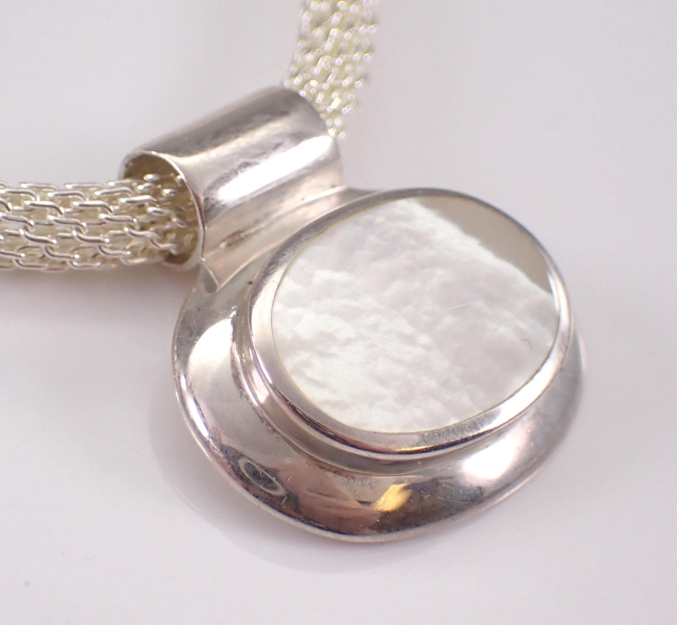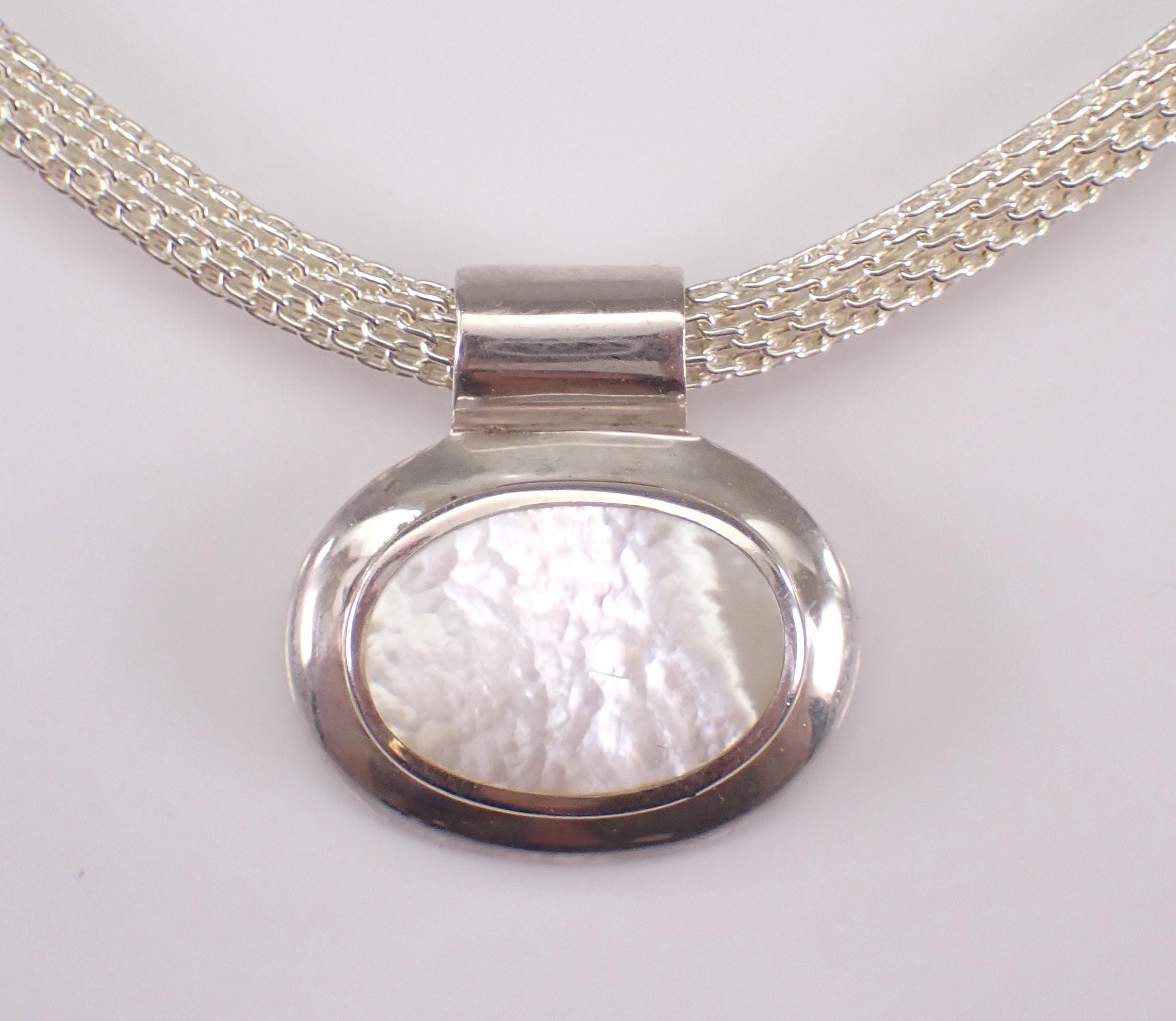 Sterling Silver Mother of Pearl Charm Pendant Necklace with Choker Chain.