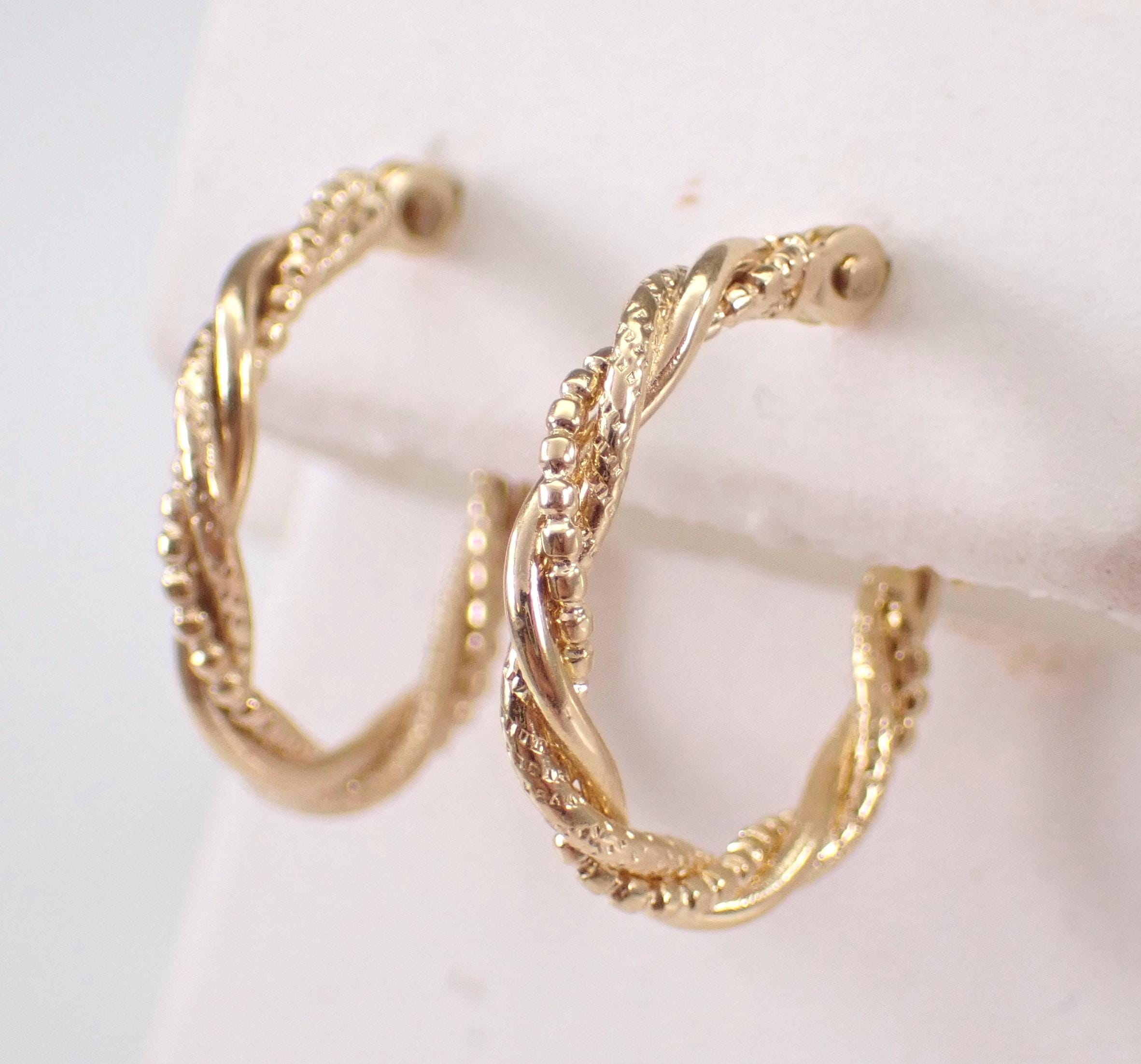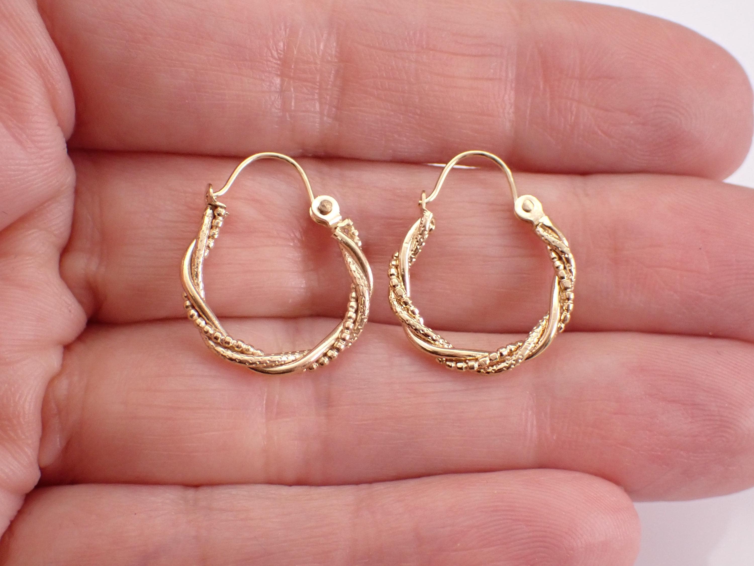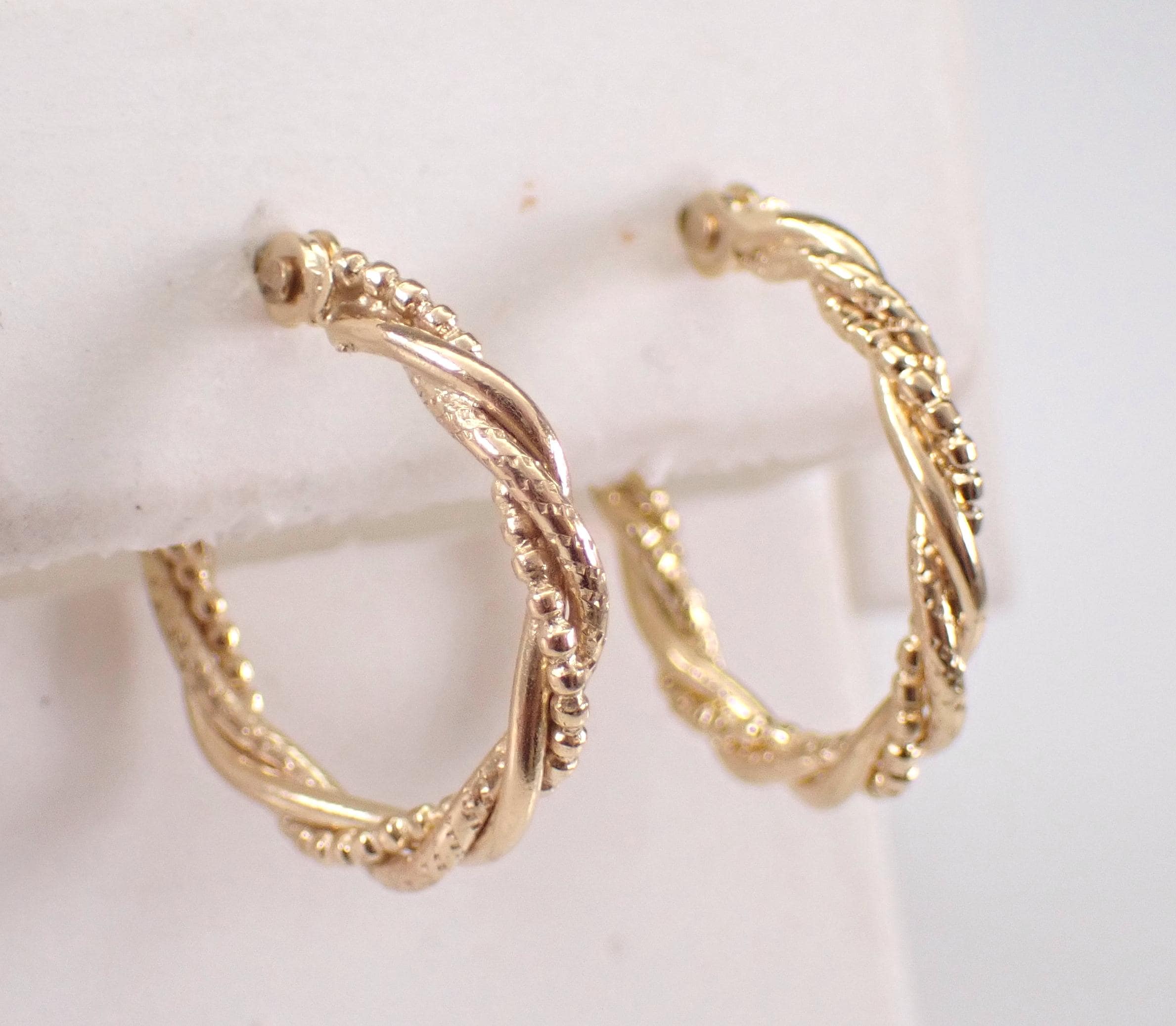 Vintage 14K Yellow Gold Hoop Earrings. These earrings are 14K Yellow Gold and weigh a total of 2.4 grams. These earrings are for pierced ears and measure 16.5 mm in diameter and will be shipped promptly in a gift pouch.