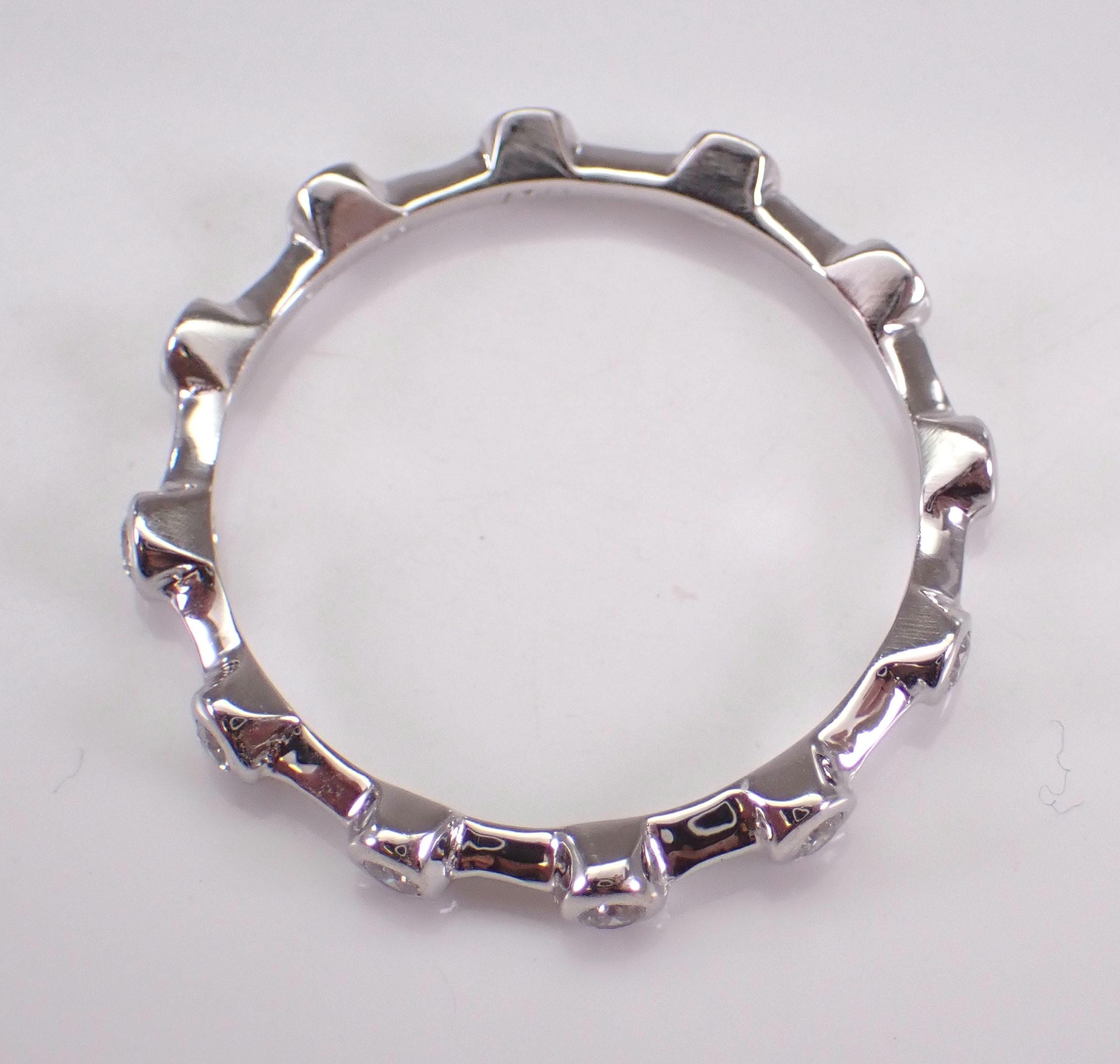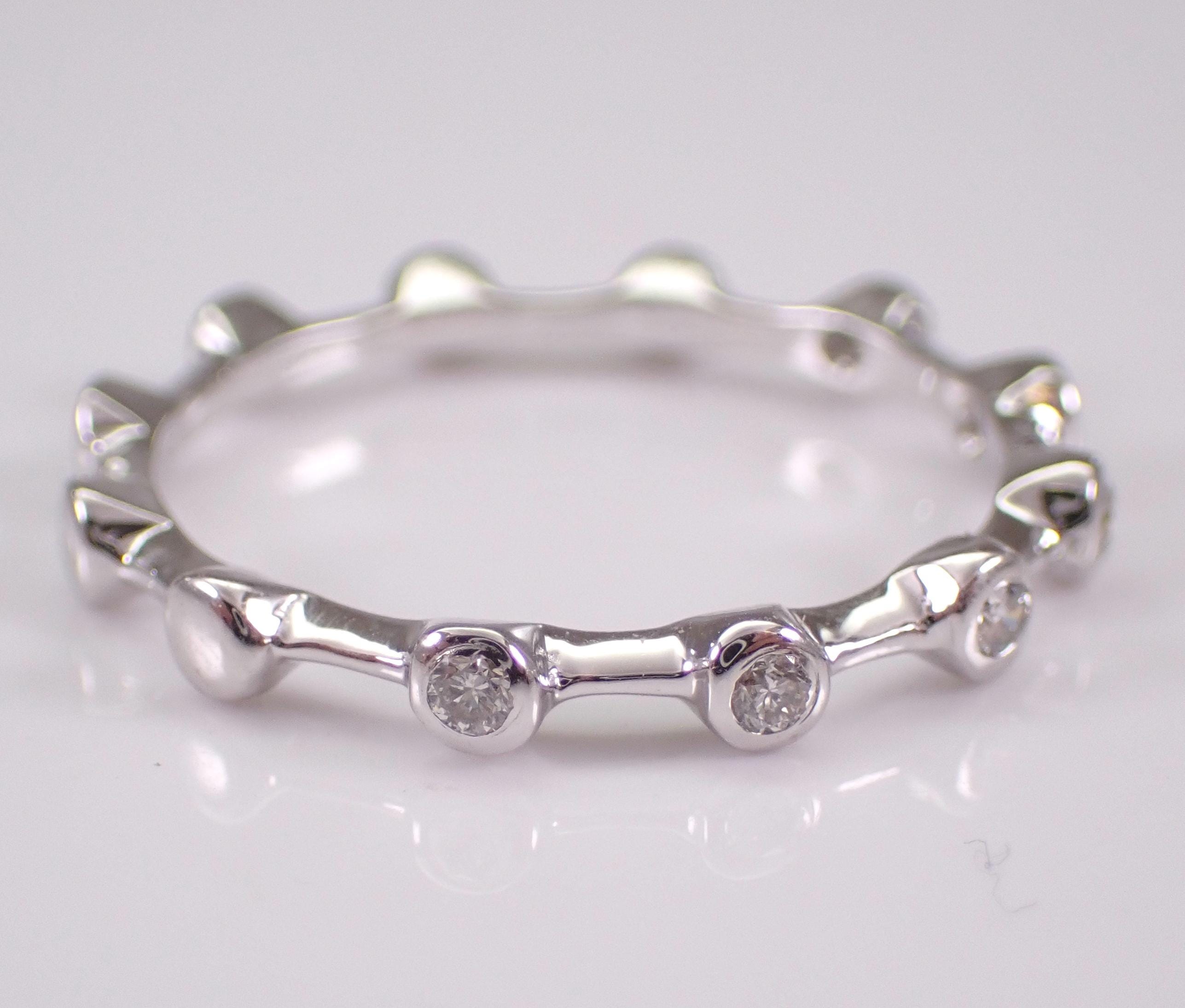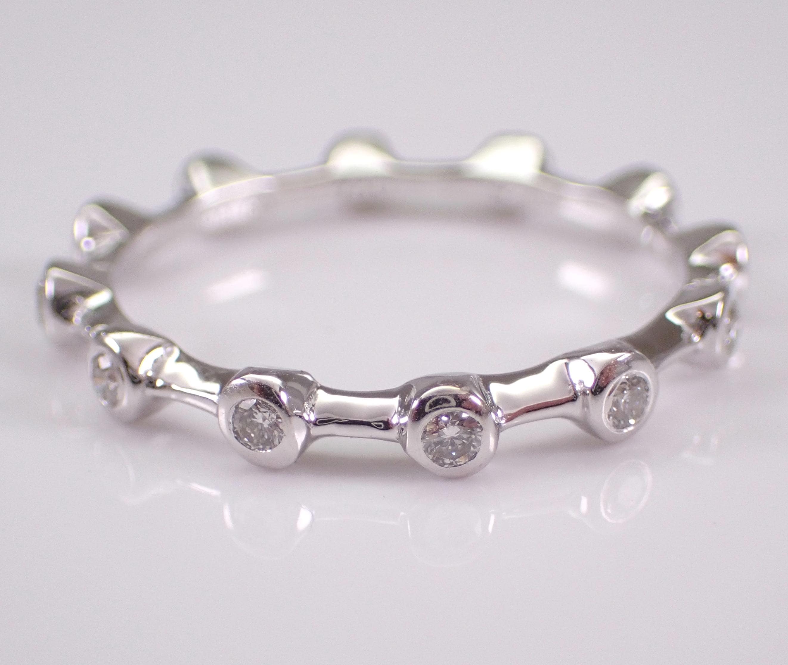 18K White Gold Diamond Wedding Ring Anniversary Band by HIDALGO. This diamond ring is set with six genuine Round Brilliant Diamonds. These diamonds are G color, SI/I clarity and weigh a total of .07 carat. This ring is 18KT White Gold, weighs 1.8 grams and is a finger size 6 1/2, can be slightly resized. This ring will also be accompanied by an appraisal by a GIA Certified Diamond Grader with the replacement value of $1,695.00. I will ship this ring promptly in a beautiful gift box.