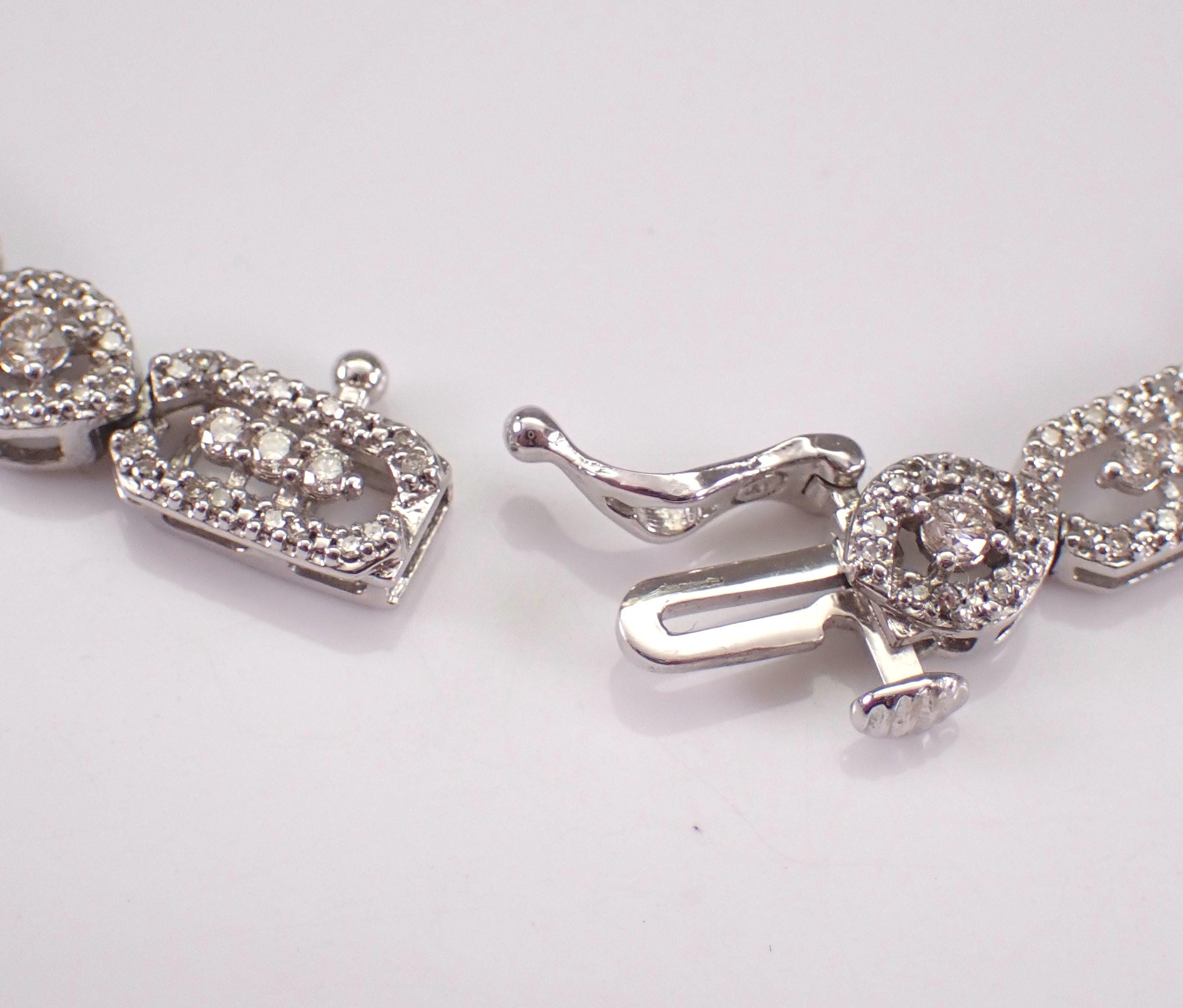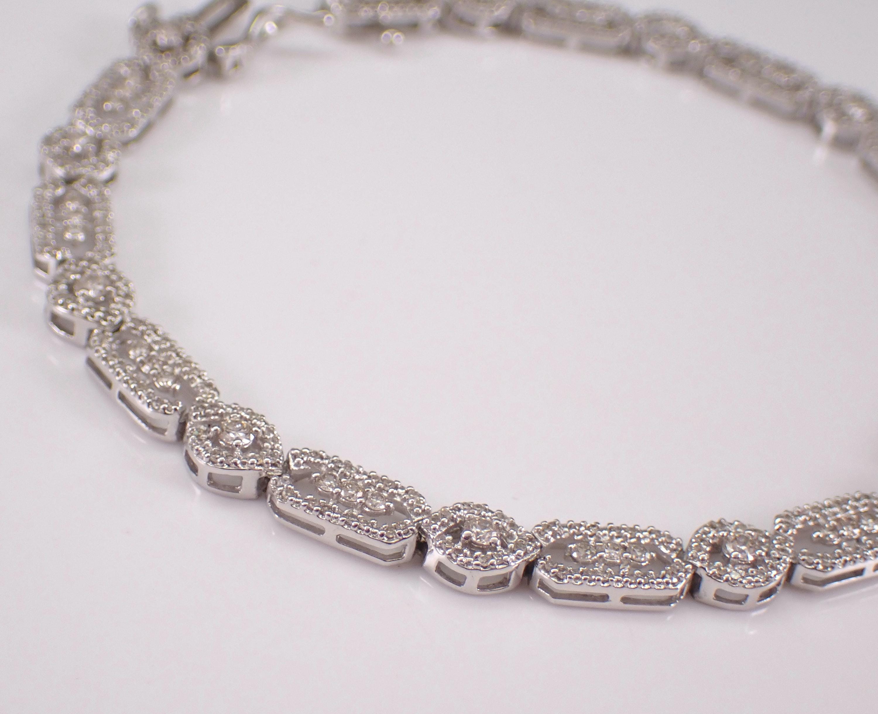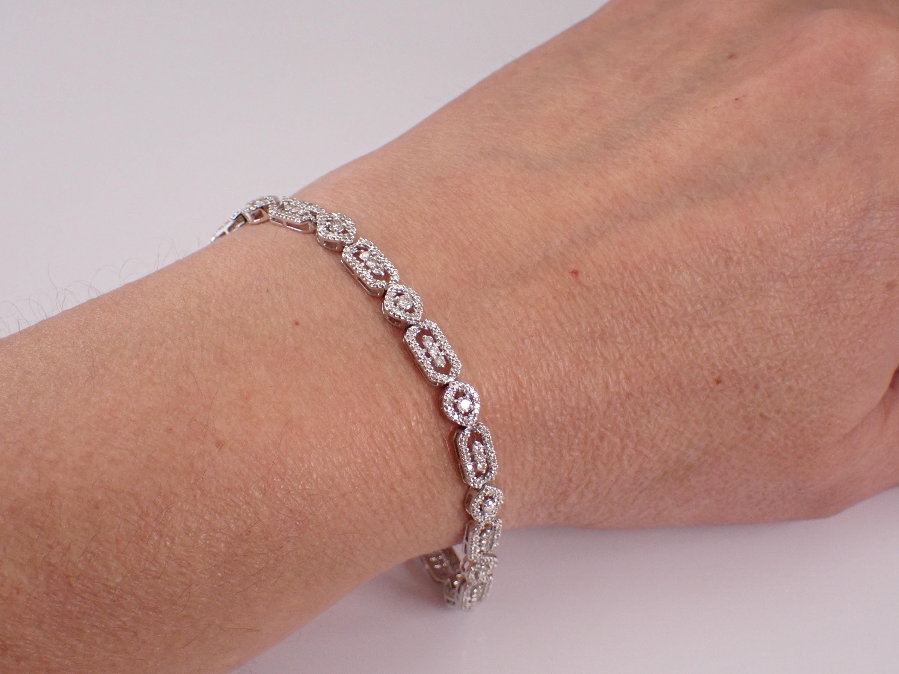 Solid White Gold Diamond Bracelet. This bracelet is set with three hundred and eighty-four (384) genuine natural round brilliant diamonds. These diamonds are H color, SI/I1 clarity and weigh a total of 1 1/2 carats. This bracelet is 10KT White Gold, weighs 8.0 grams, measures 5 mm in width and 7" in length. This bracelet will be accompanied by an appraisal written by a GIA Certified Diamond Grader with the retail replacement value of $4,395.00. I will ship this bracelet promptly in a beautiful gift box.