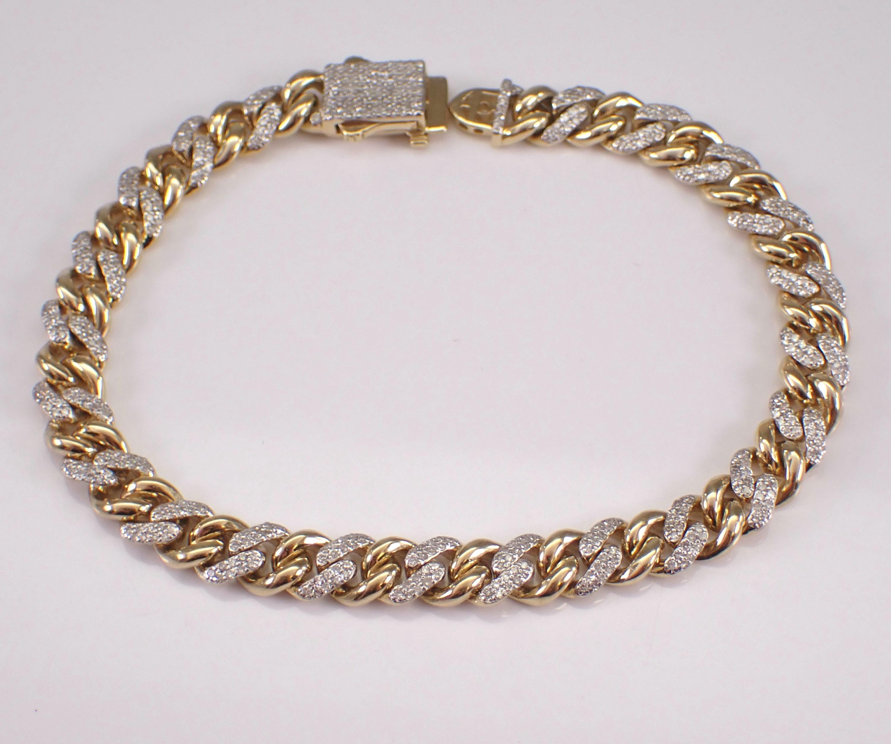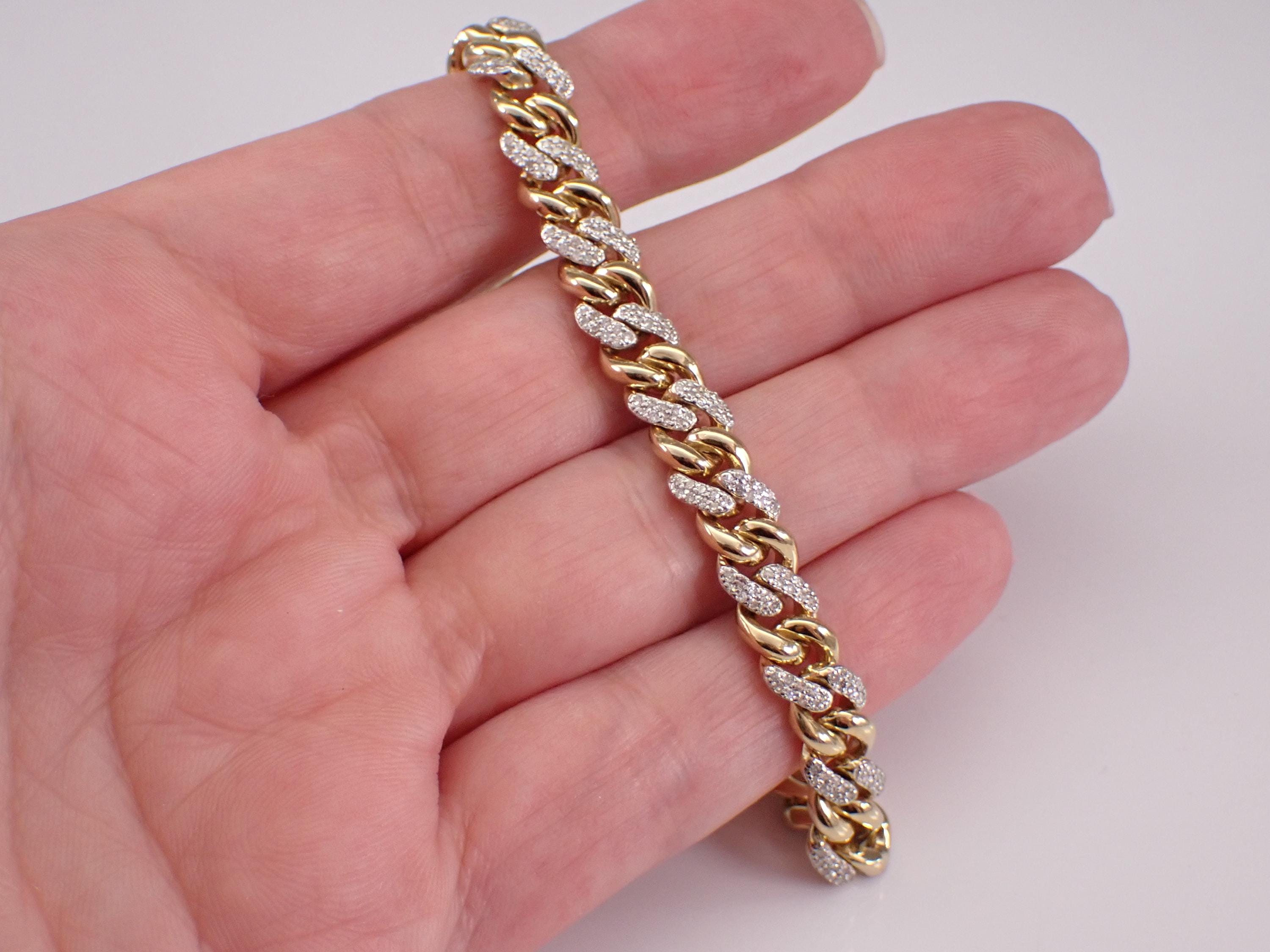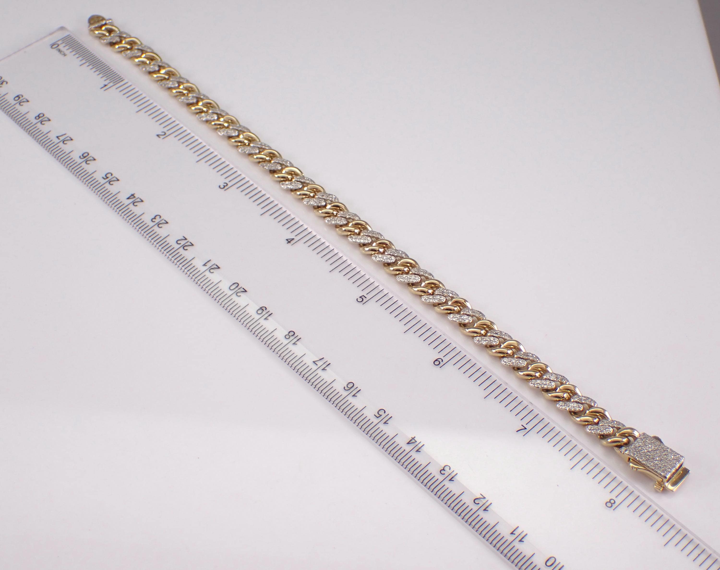 Yellow Cuban Link Diamond Bracelet. There are four hundred and seventy-eight (478) genuine Round Brilliant Diamonds set in this bracelet. These diamonds are H color, SI clarity and weigh a total of 2.00 carats. This bracelet is 10K Yellow Gold, weighs 26.6 grams, measures 7 mm in width and fits a wrist measuring at 8". This bracelet will be accompanied by an appraisal by a GIA Certified Diamond Grader with the retail replacement value of $9,985.00. I will ship this bracelet promptly in a gift box.