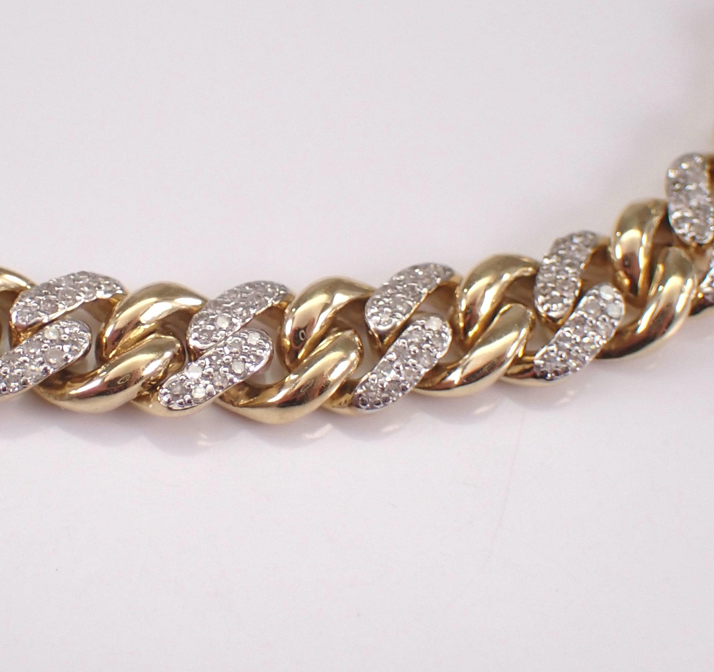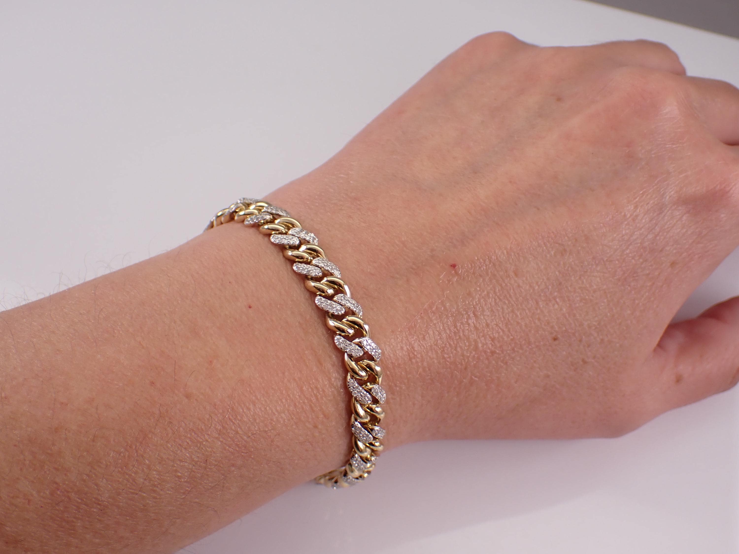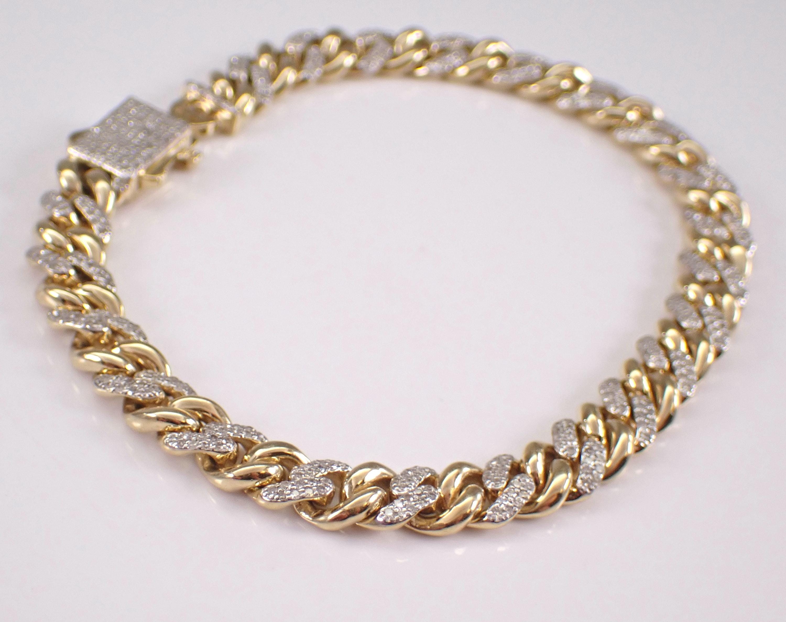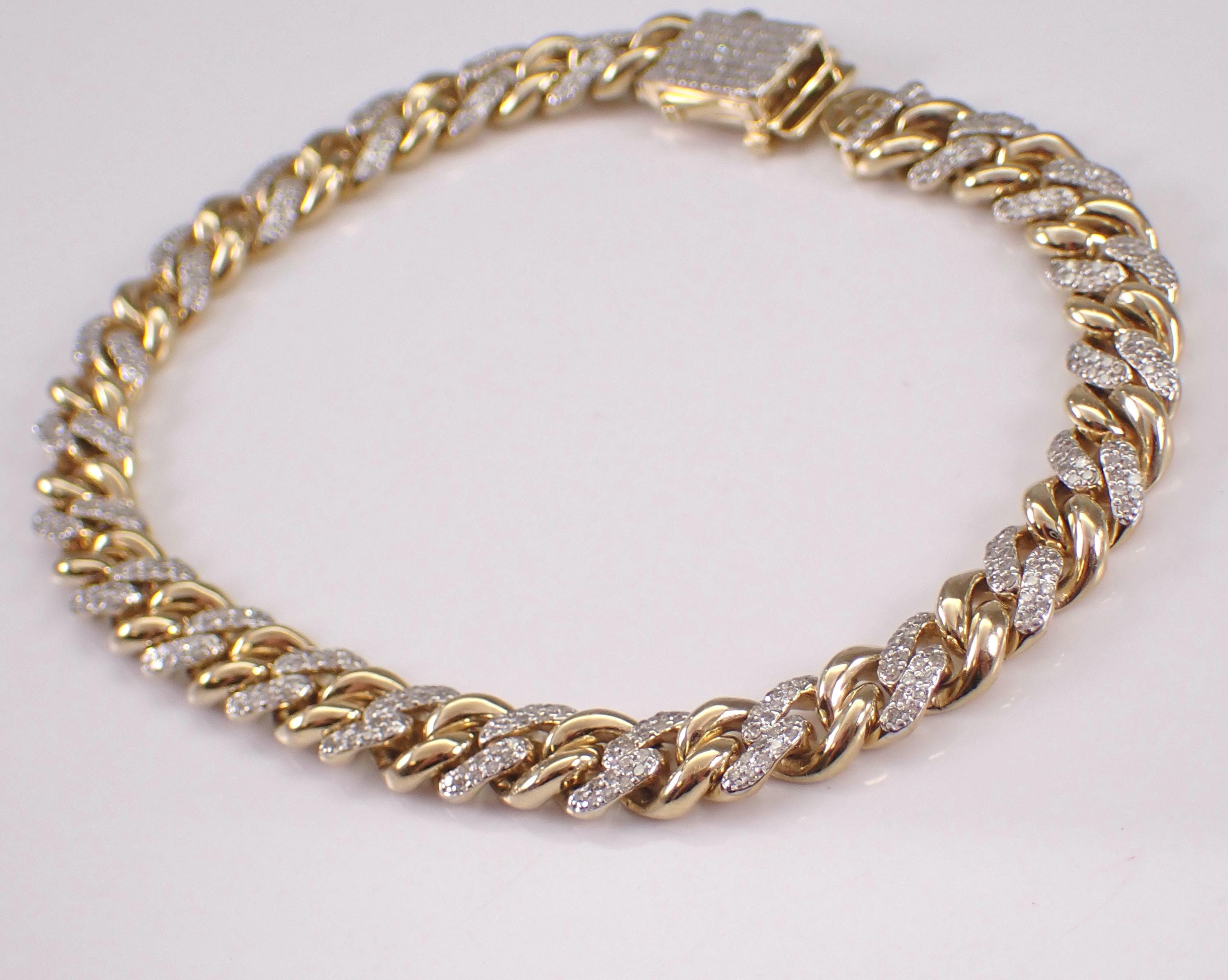 Yellow Cuban Link Diamond Bracelet. There are four hundred and seventy-eight (478) genuine Round Brilliant Diamonds set in this bracelet. These diamonds are H color, SI clarity and weigh a total of 2.00 carats. This bracelet is 10K Yellow Gold, weighs 26.6 grams, measures 7 mm in width and fits a wrist measuring at 8". This bracelet will be accompanied by an appraisal by a GIA Certified Diamond Grader with the retail replacement value of $9,985.00. I will ship this bracelet promptly in a gift box.