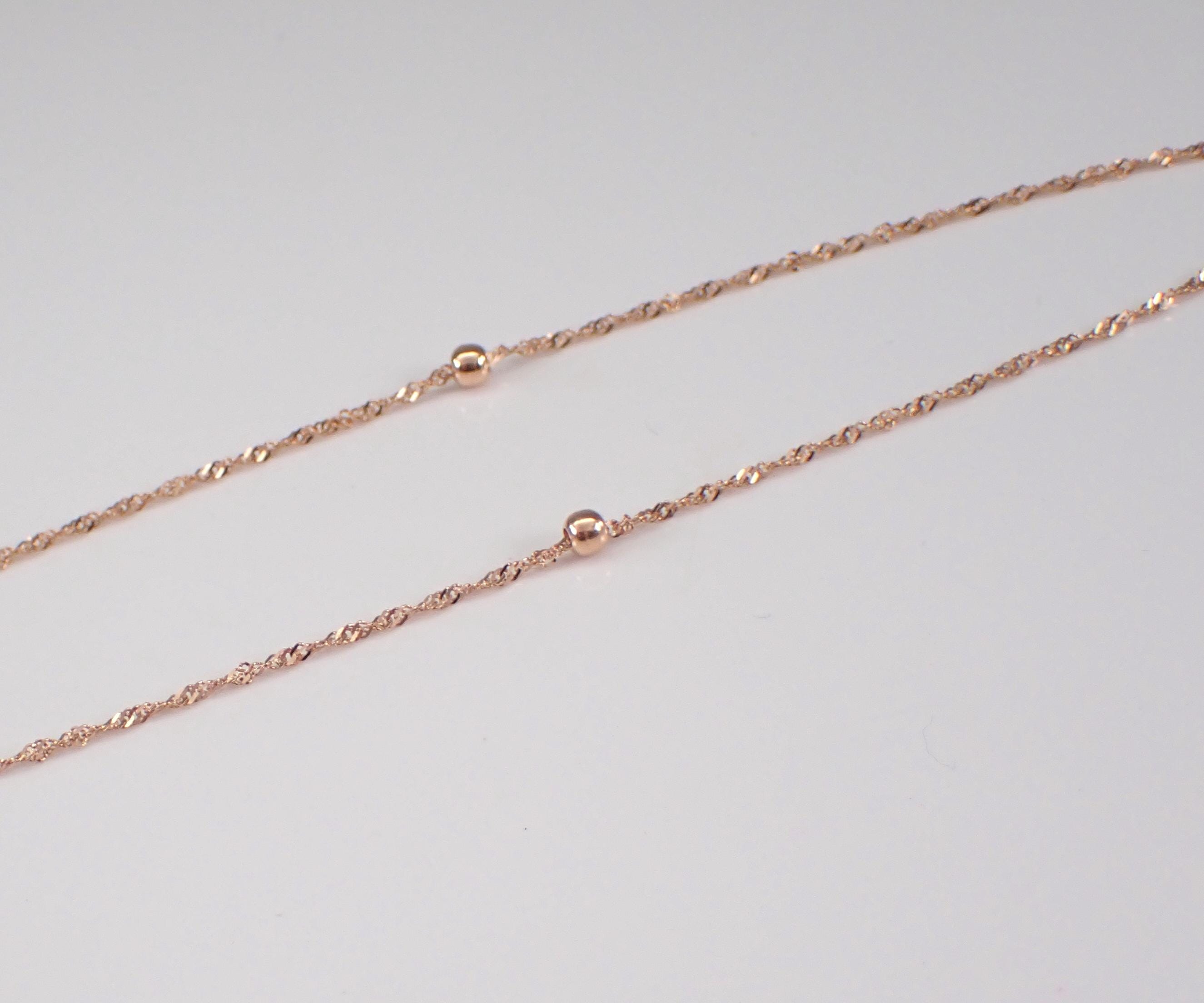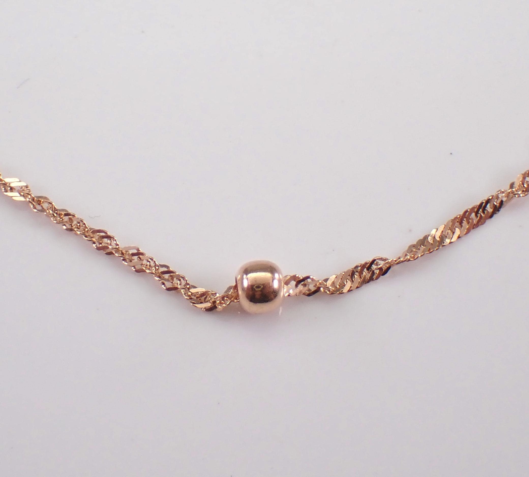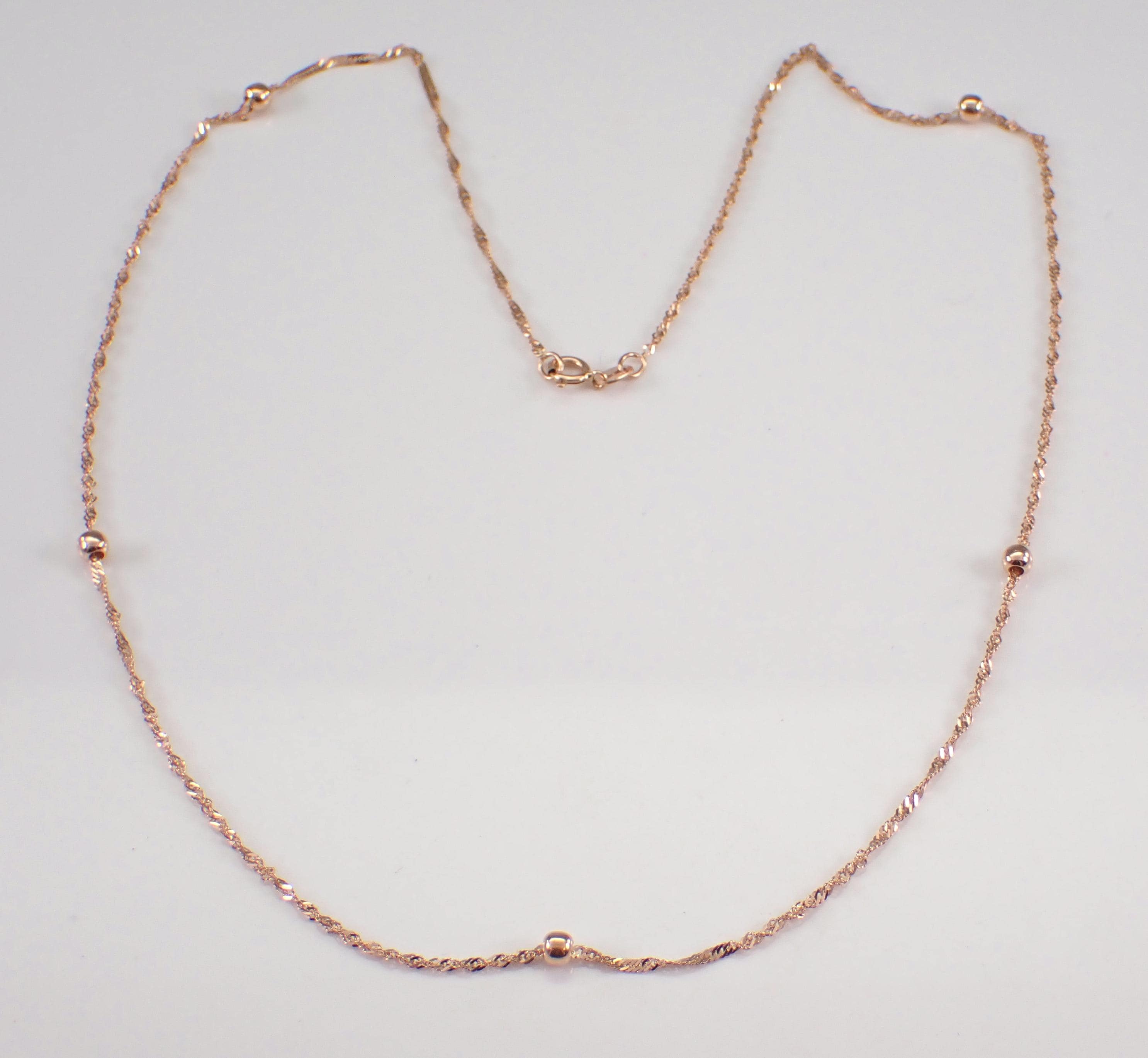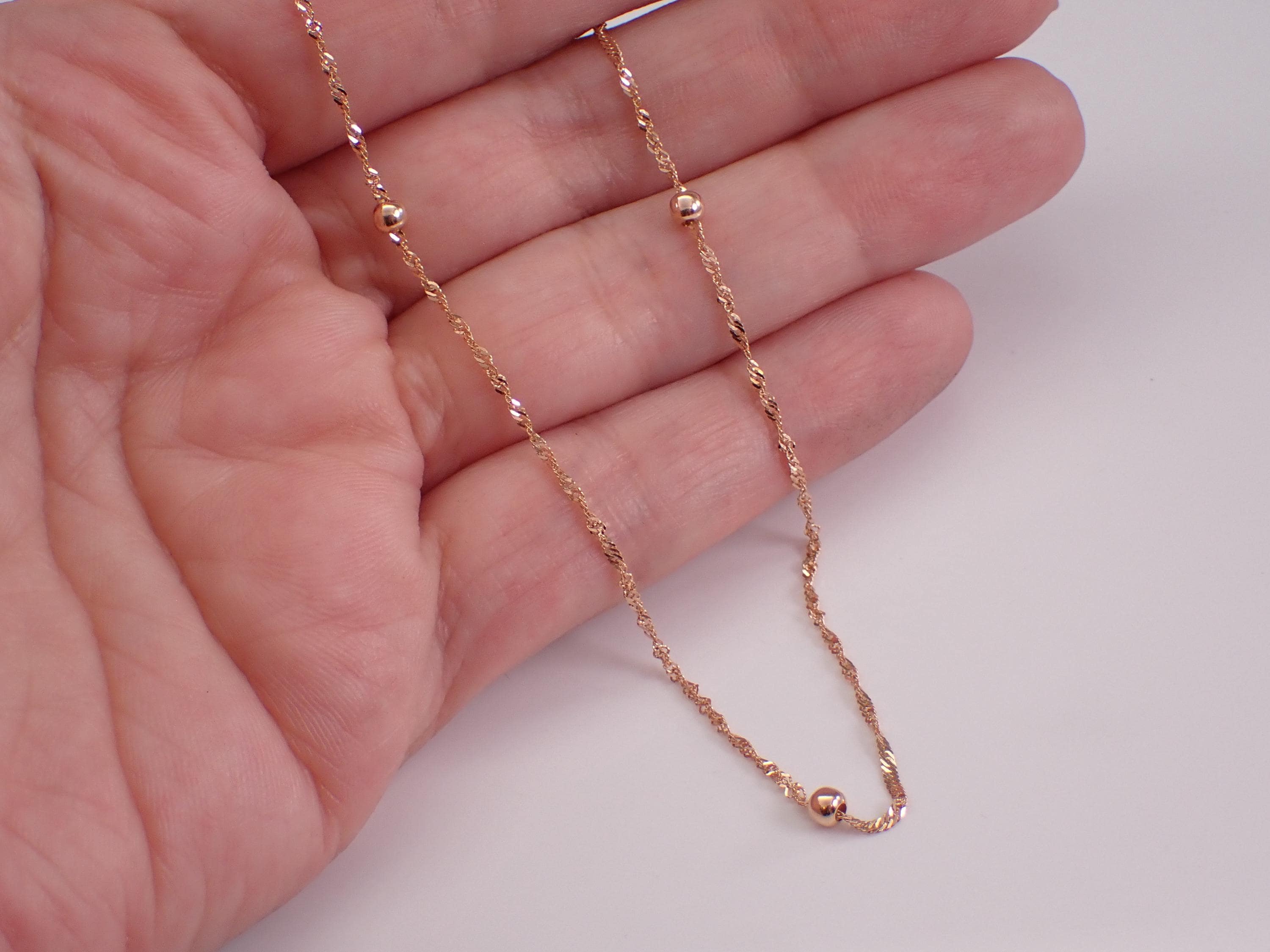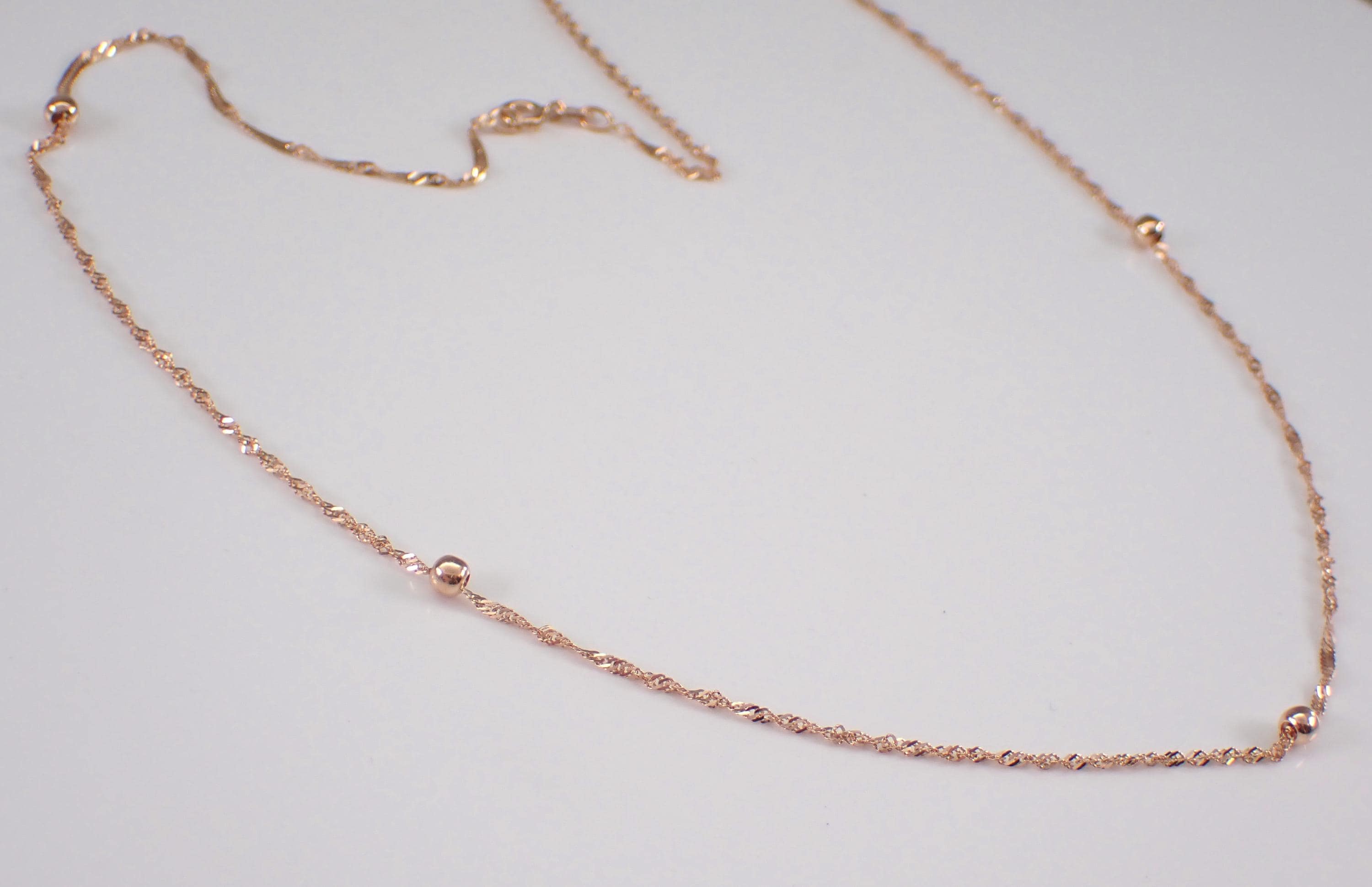 Vintage 14K Rose Gold Station Necklace Chain. This necklace measures 18" in length and weighs 1.5 grams. This chain has little bead stations attached and dates back to Circa 1970s. I will ship this necklace promptly in a gift pouch.
