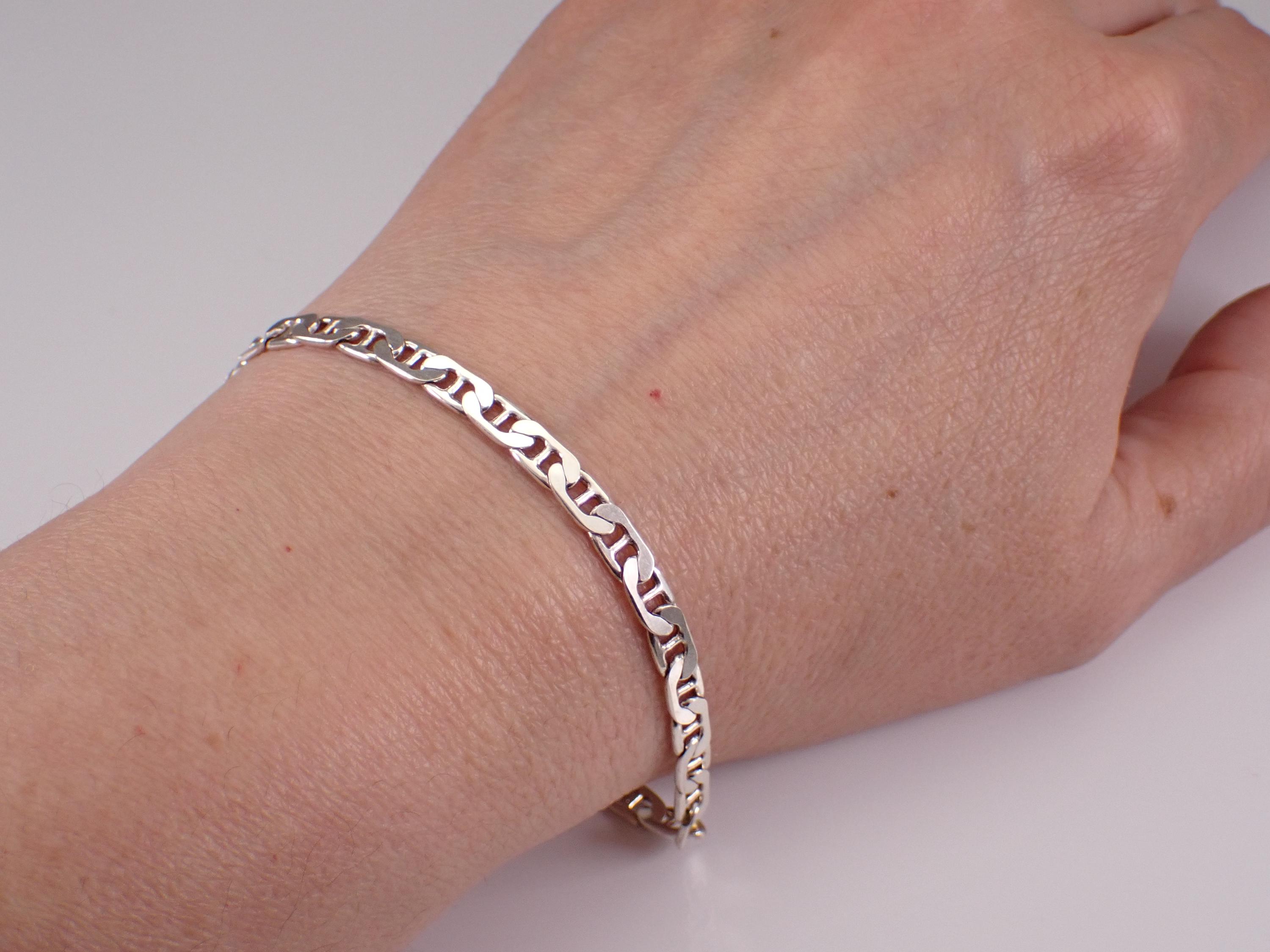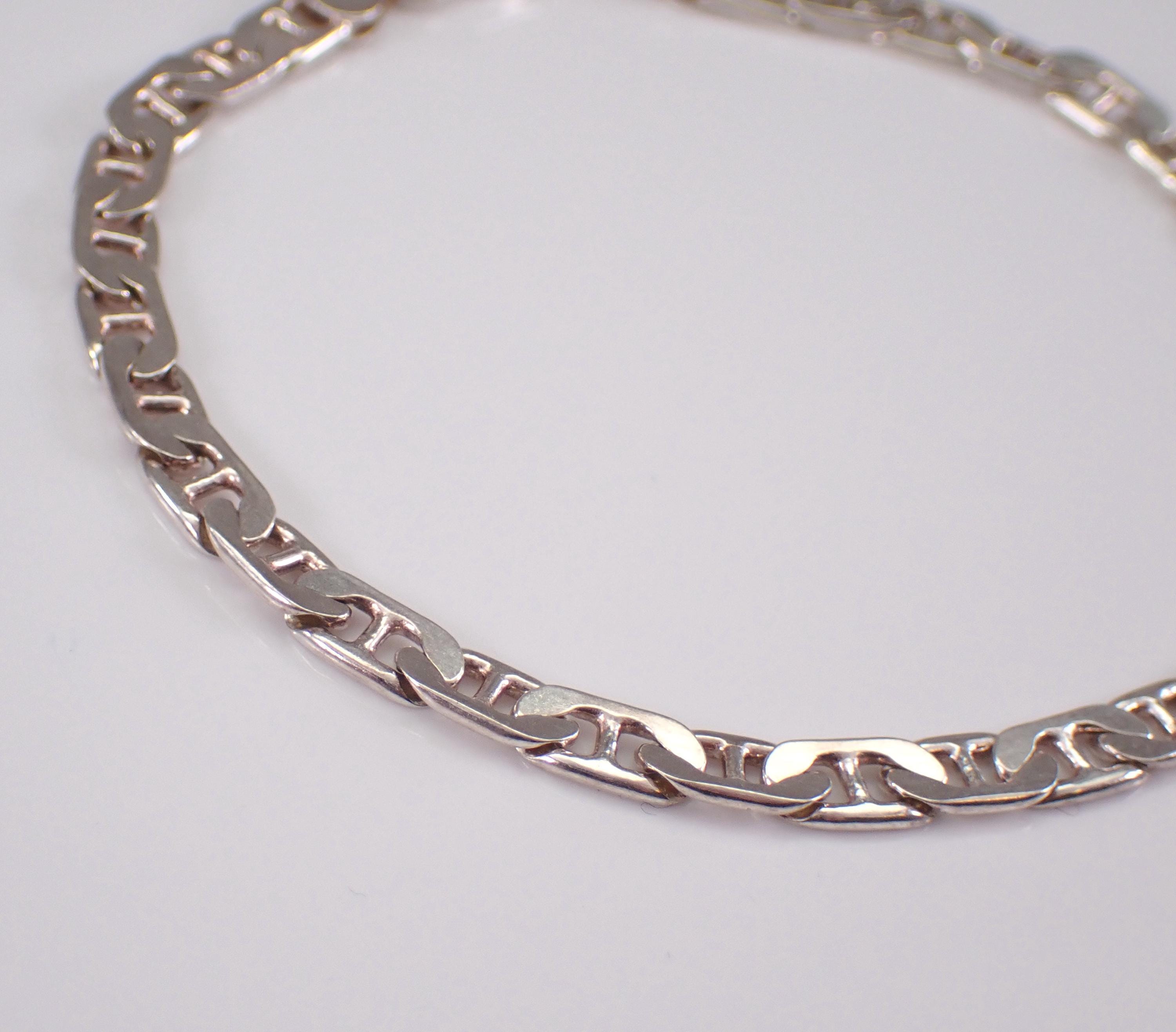 A unique vintage sterling silver Anchor Link Bracelet. This bracelet is in excellent condition and has a lobster claw clasp. This bracelet weighs 7.4 grams and measures 4.5mm in width and 8" in length. Perfect for everyday wear or any special occasion, like Birthday, Anniversary, Graduation, etc.
