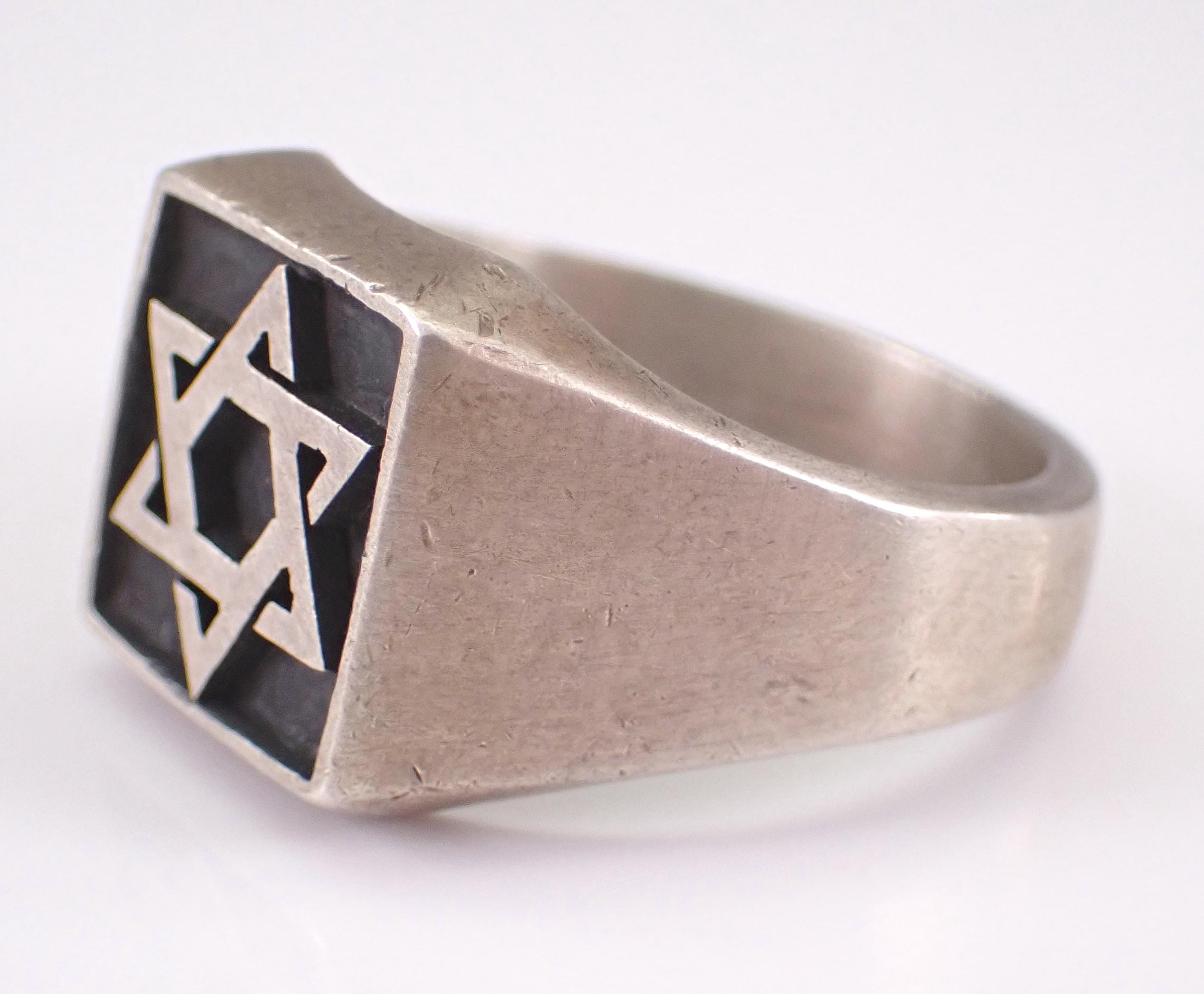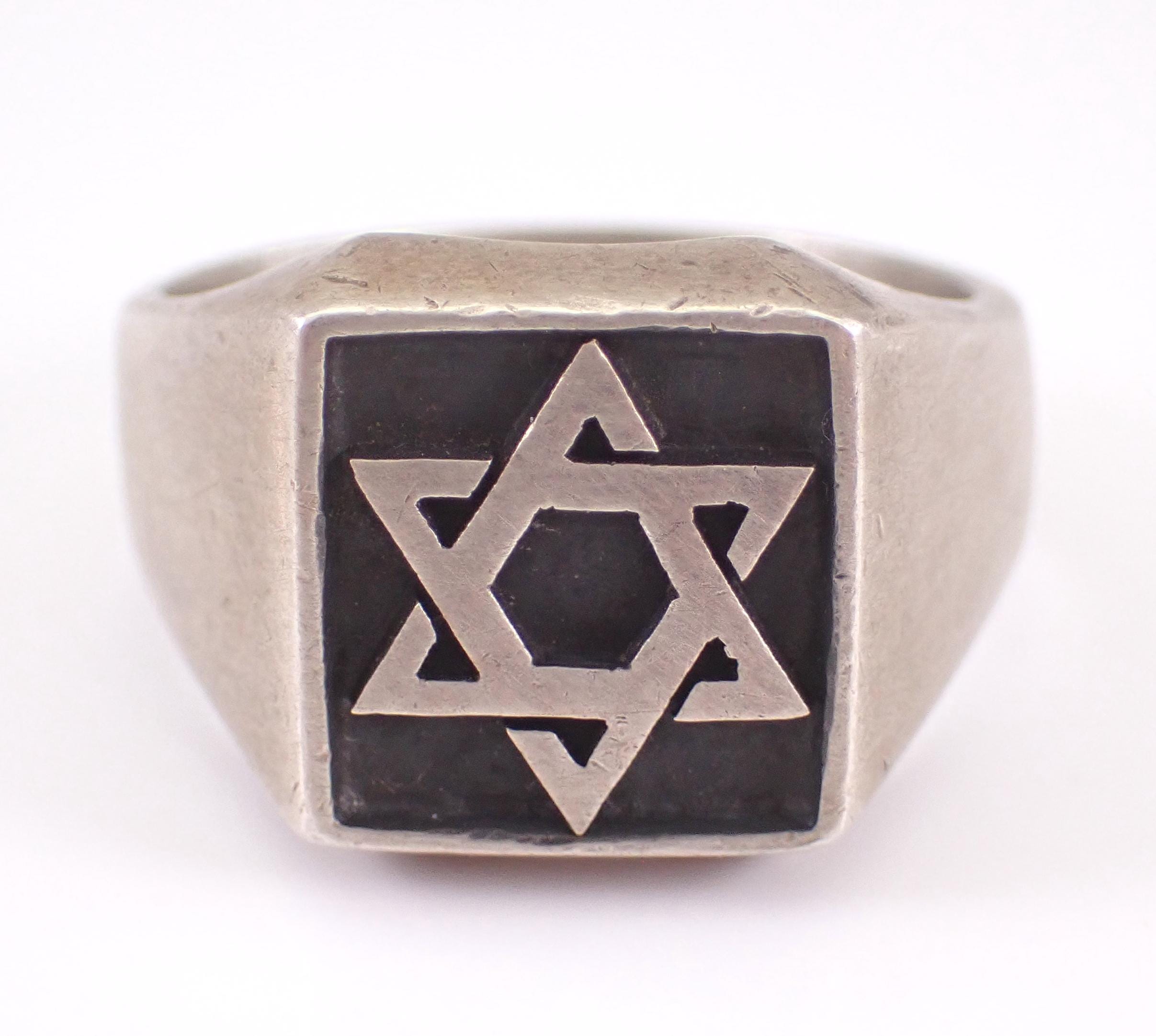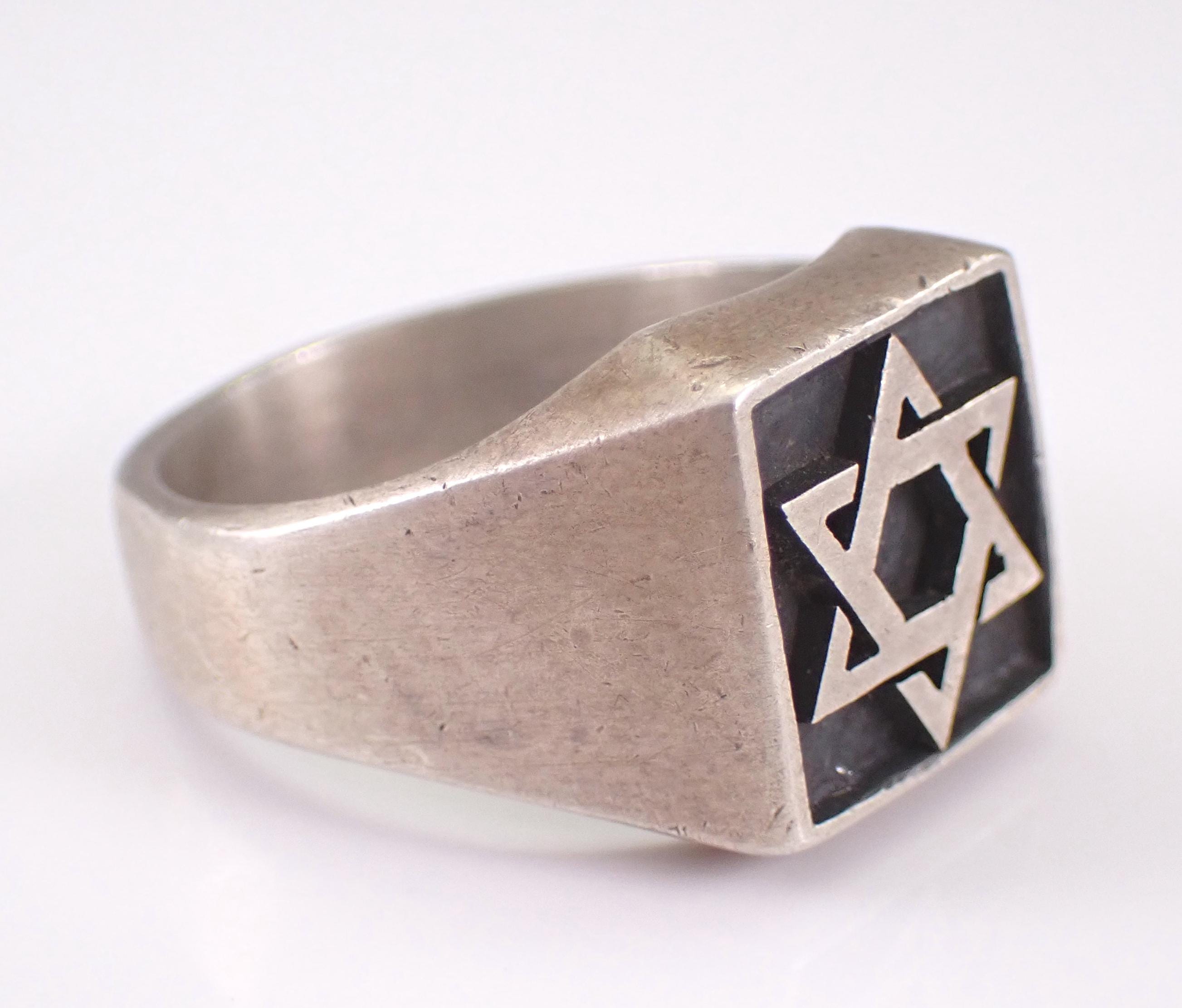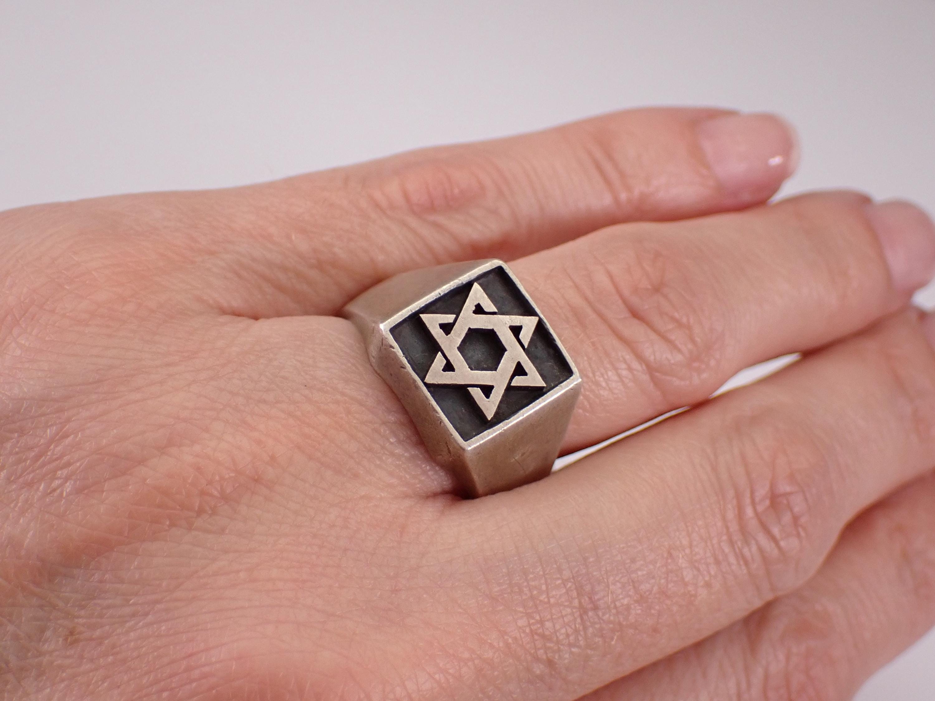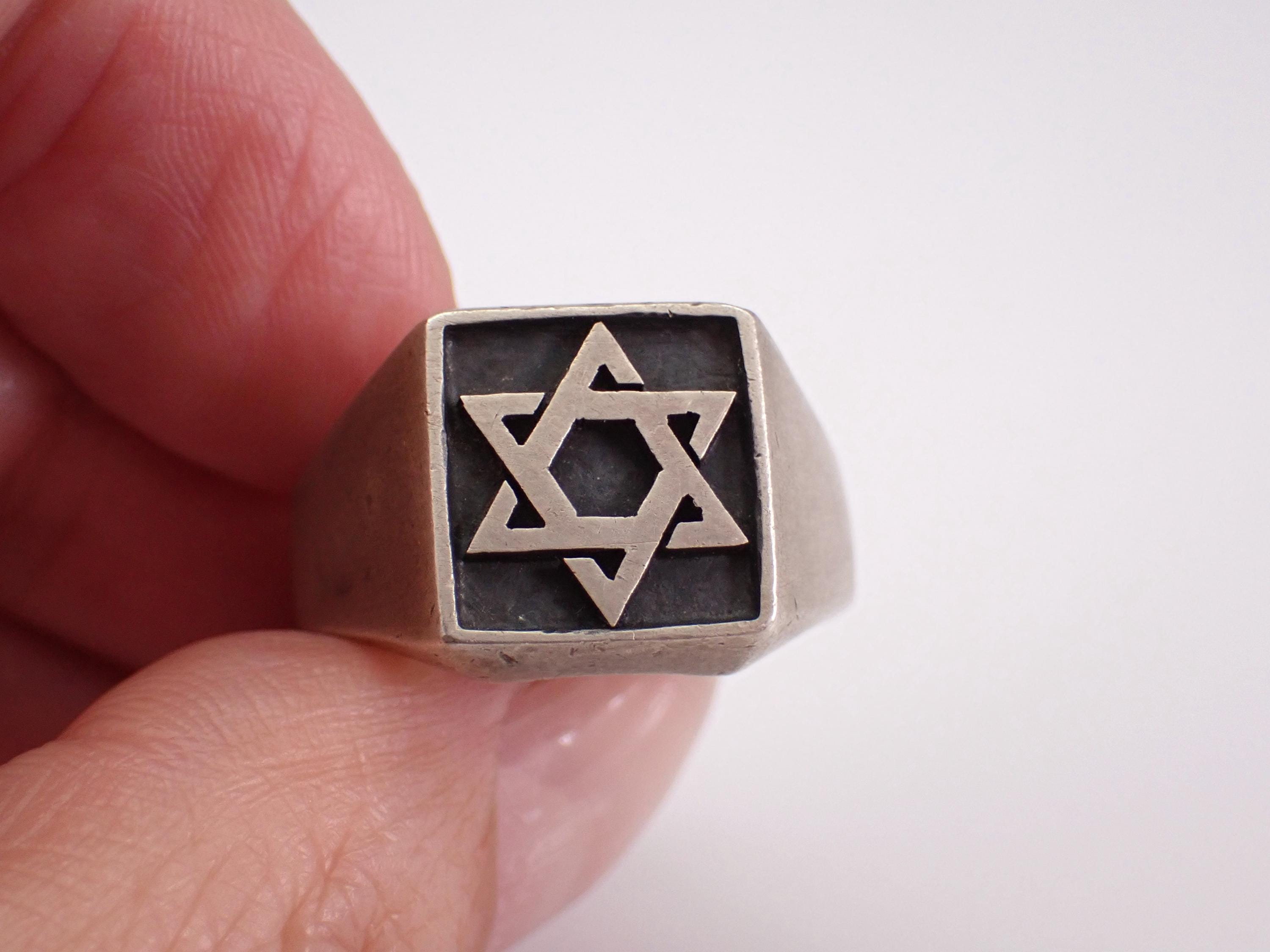 Vintage Sterling Silver ring. This ring has a Jewish Star of David in the center. This ring weighs 12.1 grams and measures 13 X 13 mm in the front. This ring is a finger size 10 and will be shipped promptly in a gift pouch.