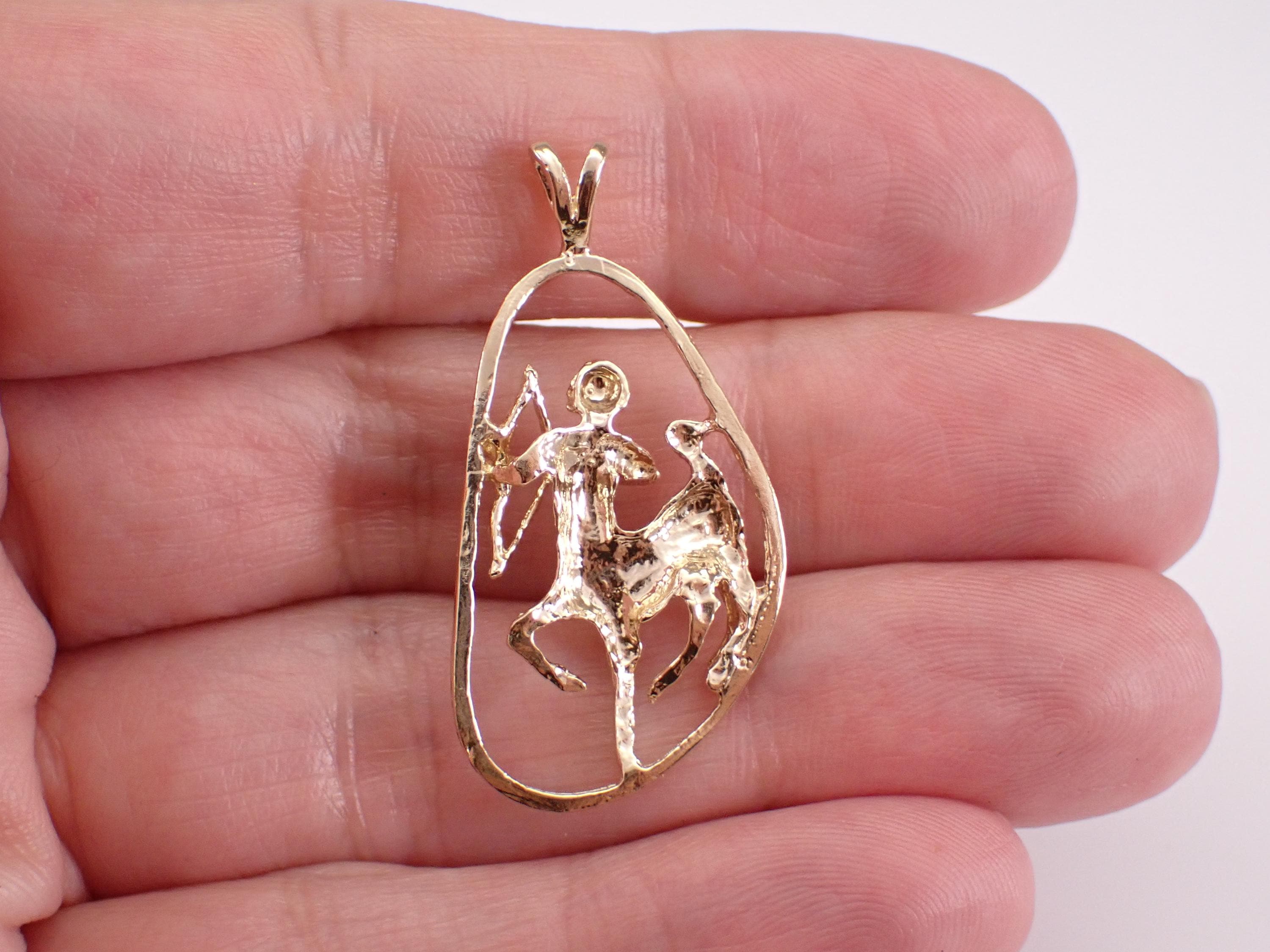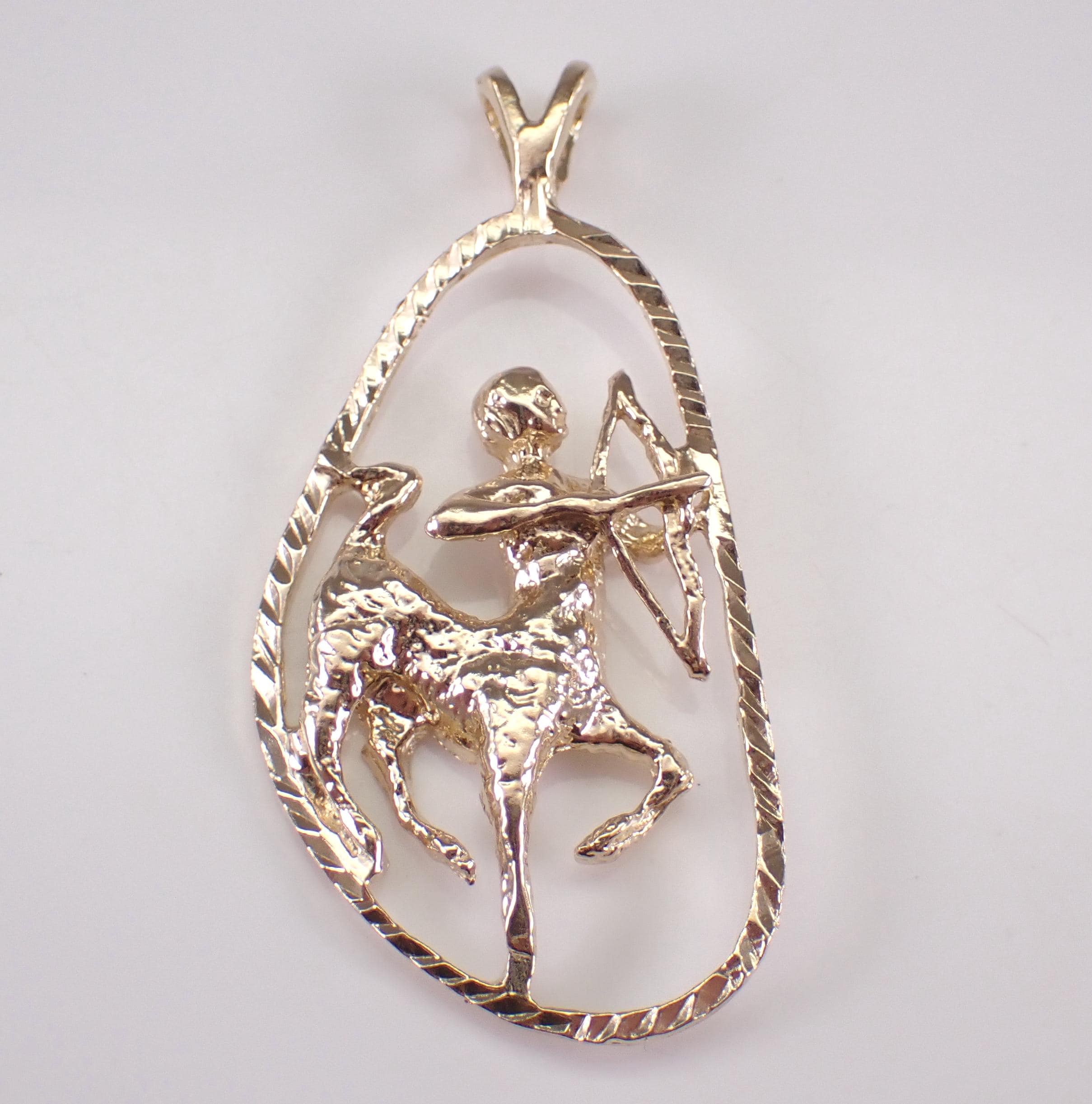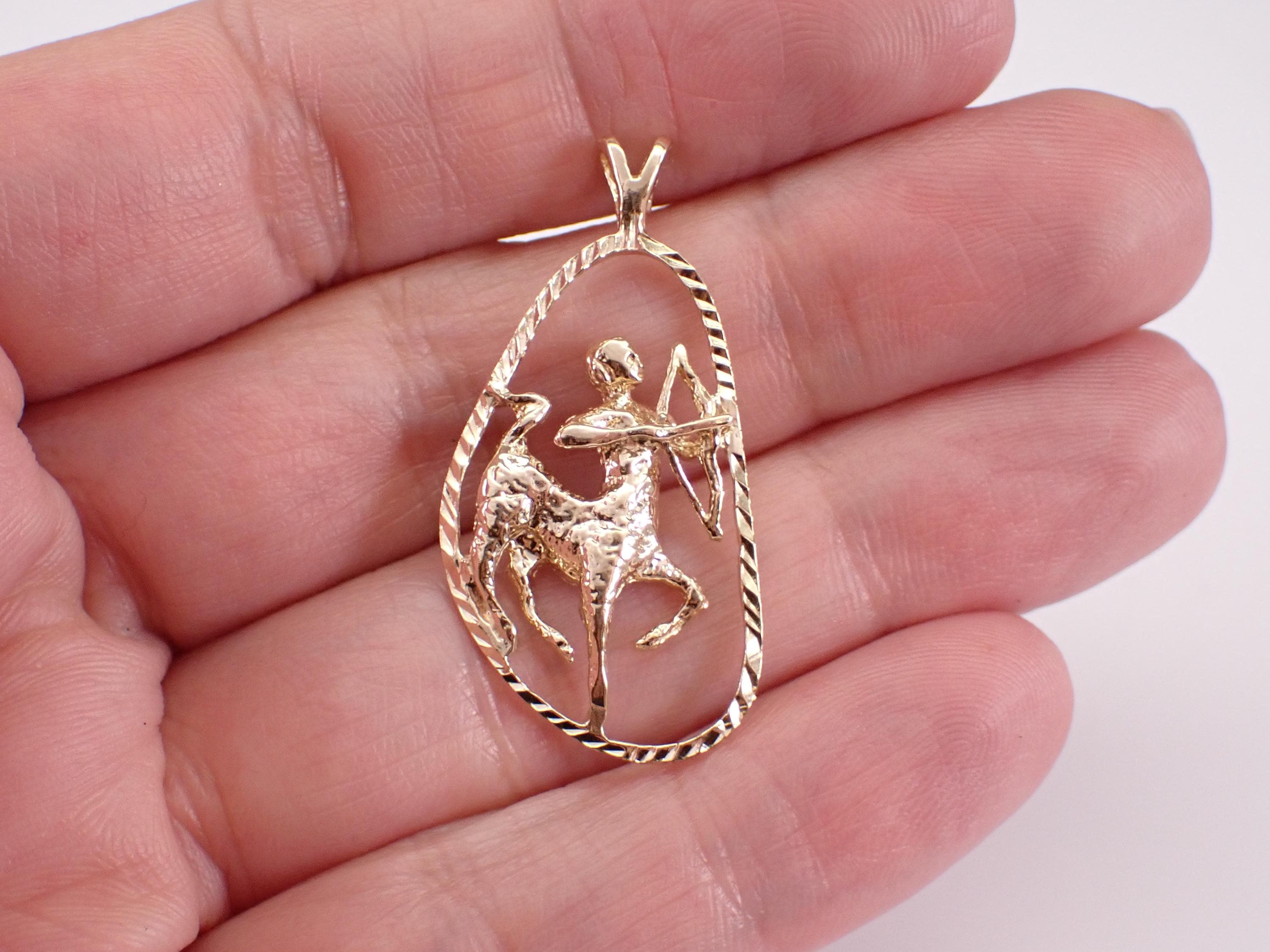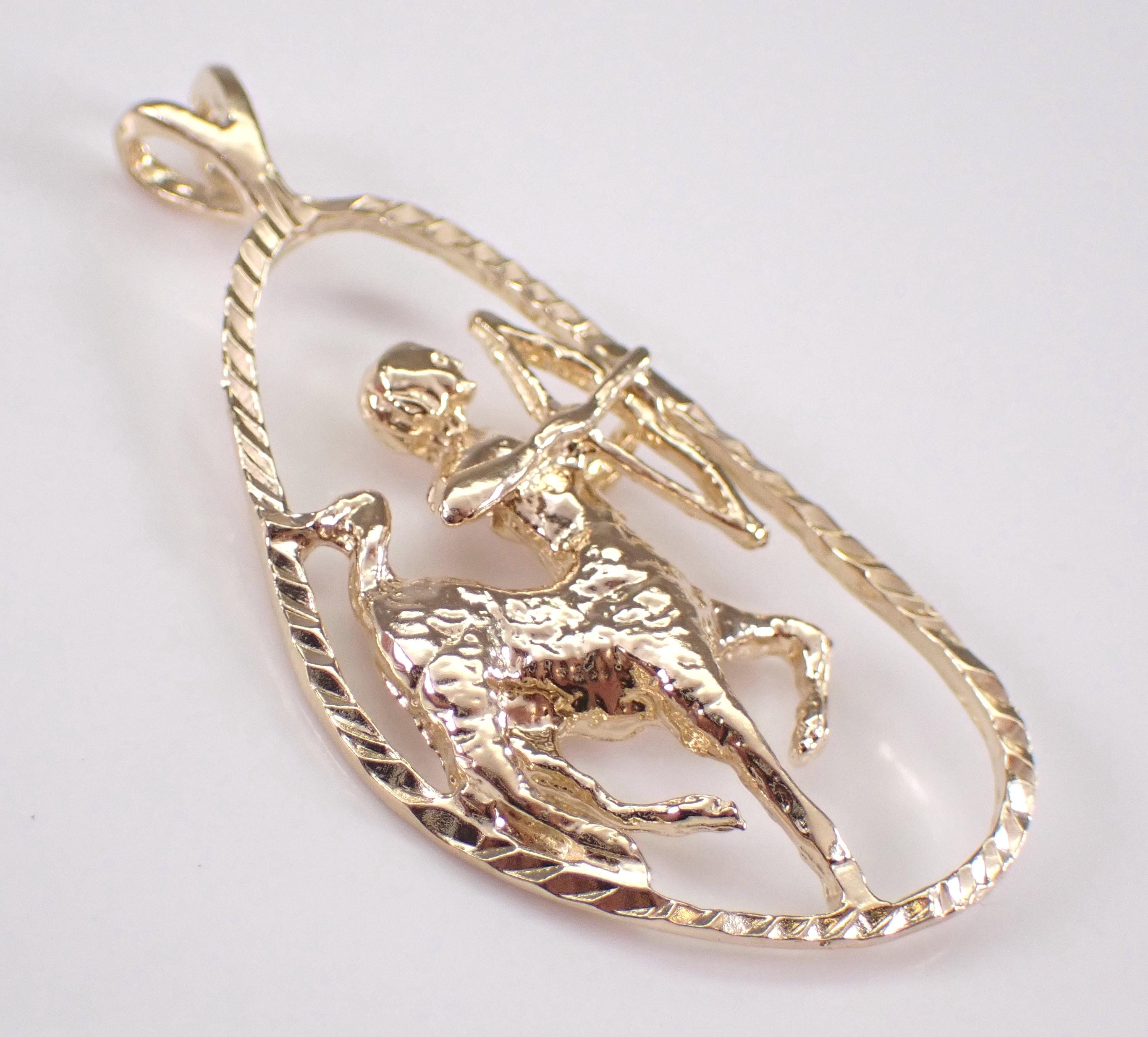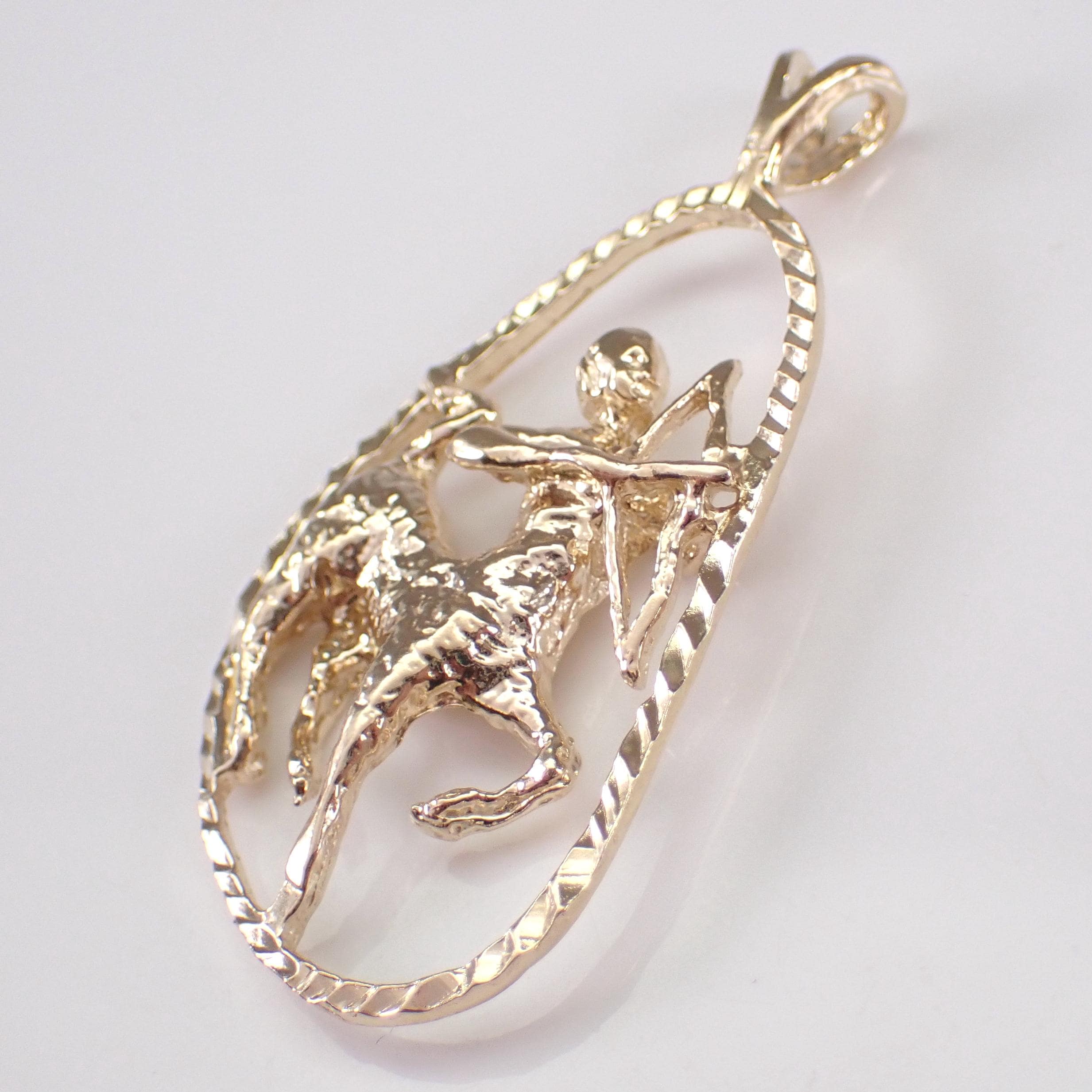 Vintage 14K Yellow Gold Sagittarius Charm Pendant. This charm is 14K Solid Yellow gold and measures 30 X 17.5 mm without the bail. This pendant weighs 3.0 grams. I will ship this pendant promptly in a gift pouch.