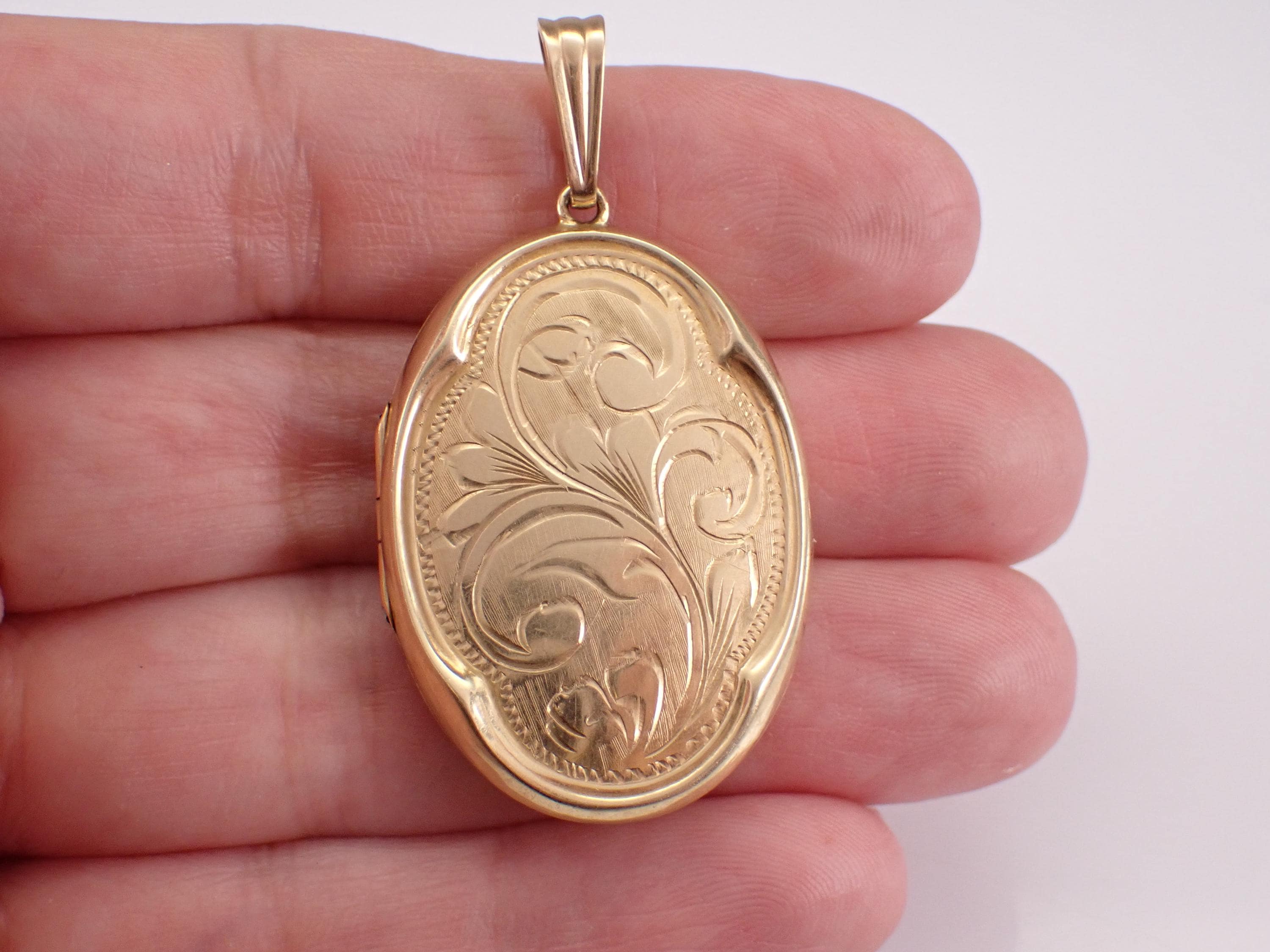 Vintage 14K Yellow Gold Locket Charm Pendant. This charm is solid 14K Yellow gold and weighs 9.1 grams. This pendant measures 35 X 27 mm.  I will ship this pendant promptly in a gift pouch.