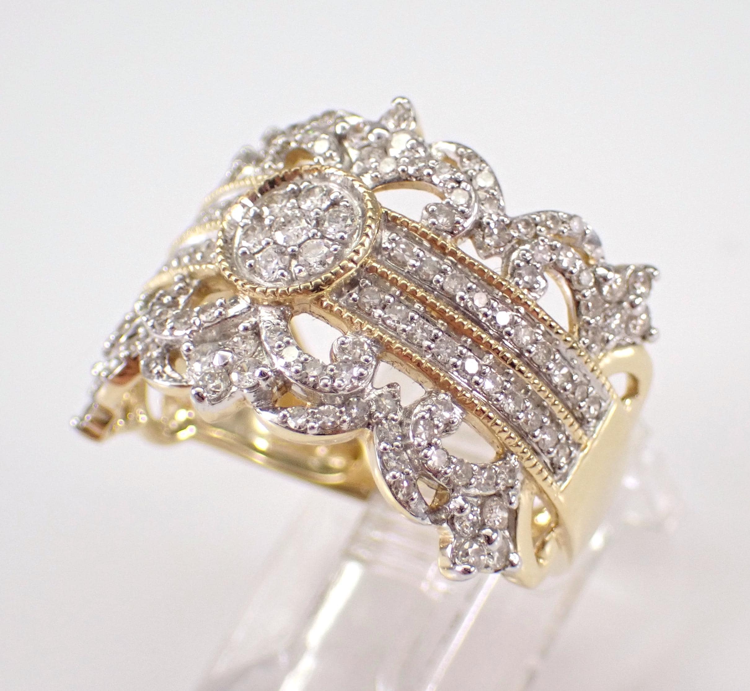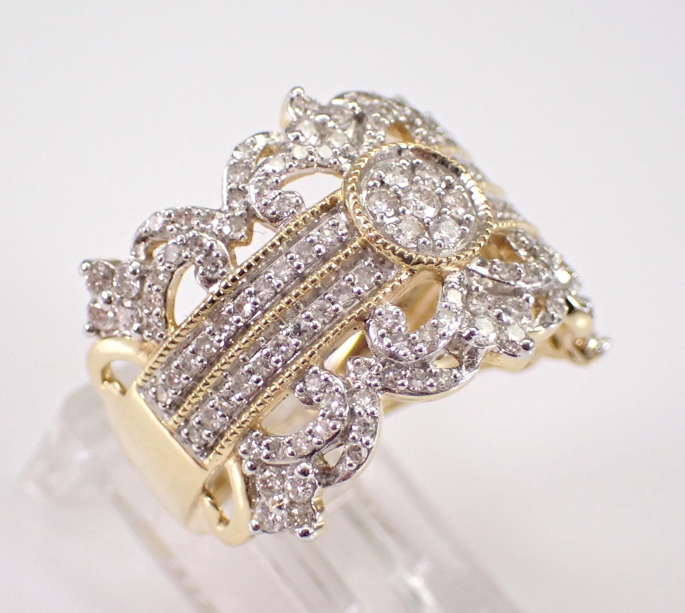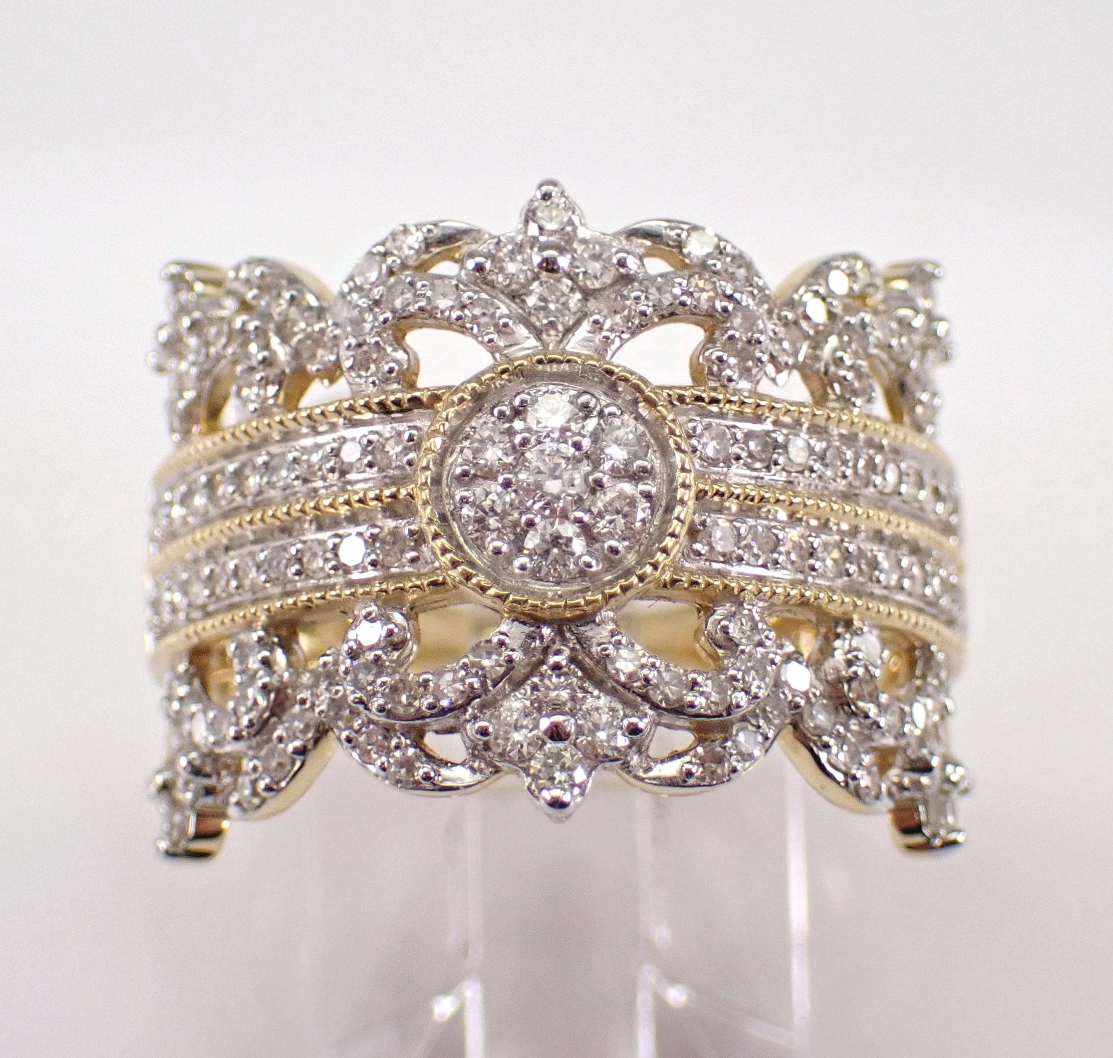 14K Yellow Gold Diamond Anniversary Ring. This ring is set with one hundred and forty-one (141) genuine Round Brilliant Diamonds. These diamonds are H color, SI/I1 clarity and weigh a total of 3/4 carat. This ring is 14KT Yellow Gold, weighs 5.4 grams, measures 15 mm in width and is a finger size 7, which can be resized free of charge (please inquire about sizing with the finger size you need). This ring will be accompanied by an appraisal by a GIA Certified Diamond Grader with the retail replacement value of $3,485.00. I will ship this ring promptly in a gift box.