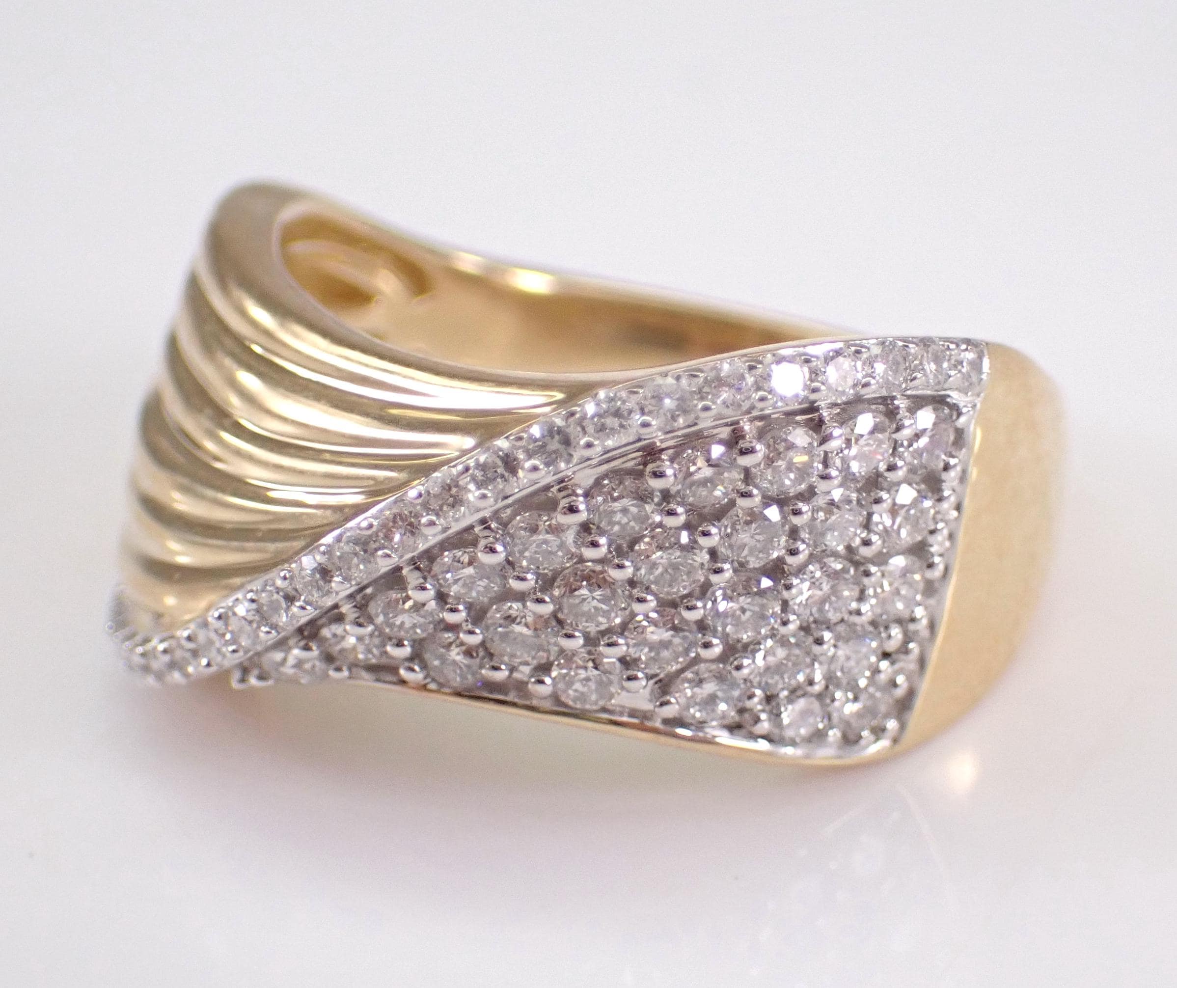 Yellow Gold Diamond Anniversary Ring Wedding Band. This ring is set with fifty-three genuine Round Brilliant Diamonds. These diamonds are G color, SI1 clarity and weigh a total of 3/4 carat. This ring is 10KT Yellow Gold, weighs 5.6 grams and is a finger size 7 1/4, which can be resized free of charge (please inquire about sizing with the finger size you need). This ring will be accompanied by an appraisal by a GIA Certified Diamond Grader with the retail replacement value of $3,495.00. I will ship this ring promptly in a beautiful gift box.