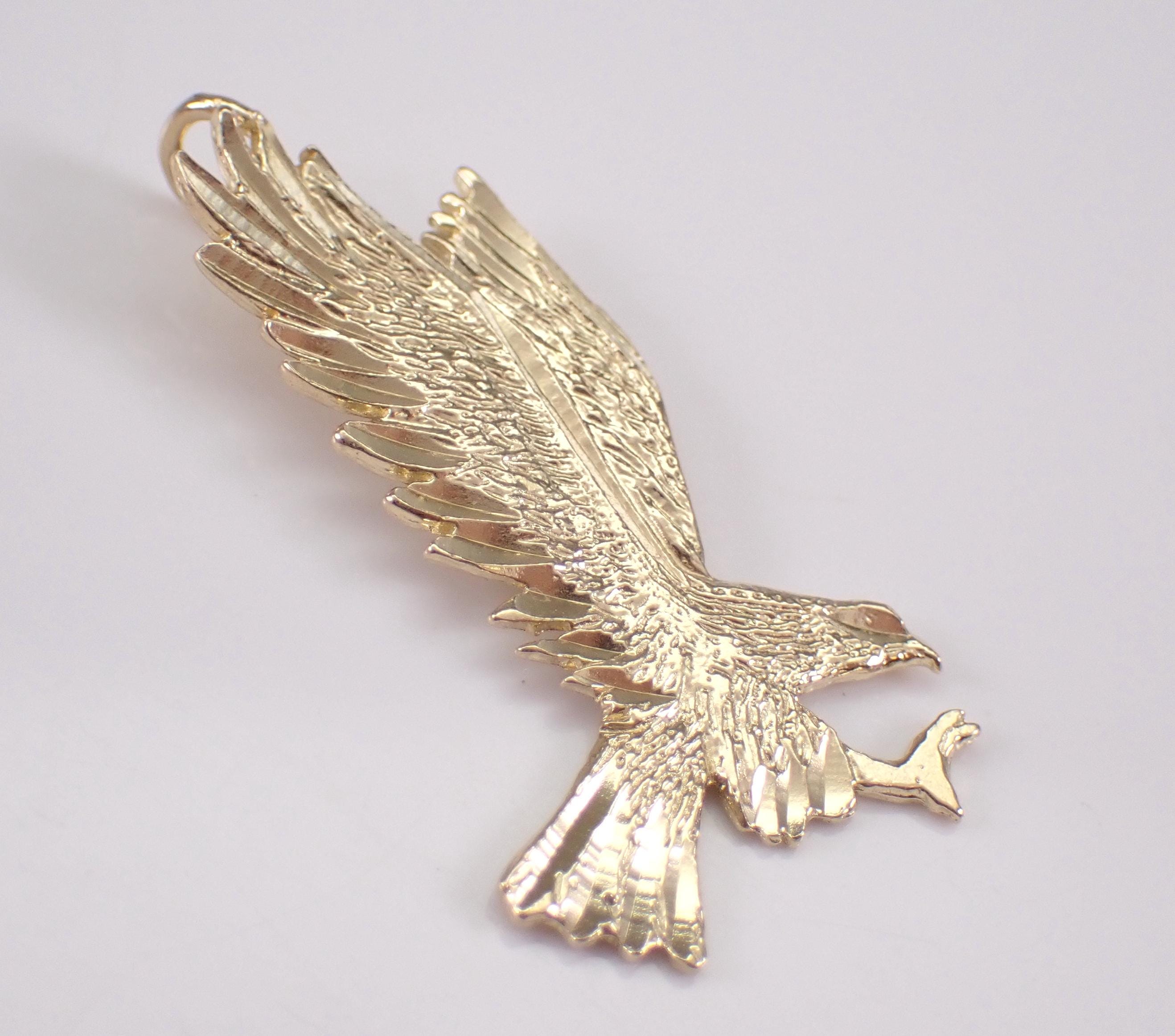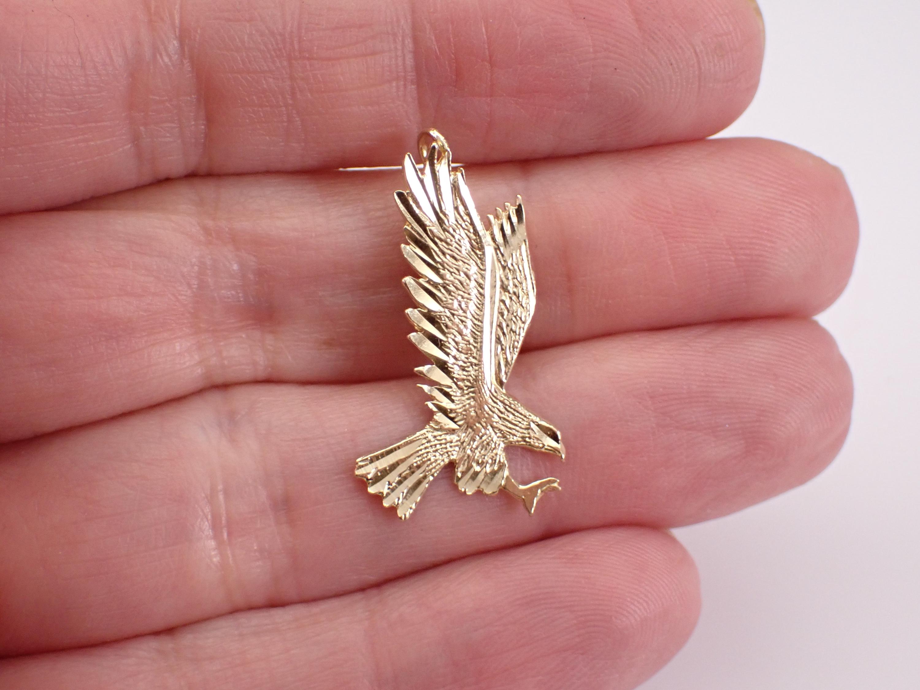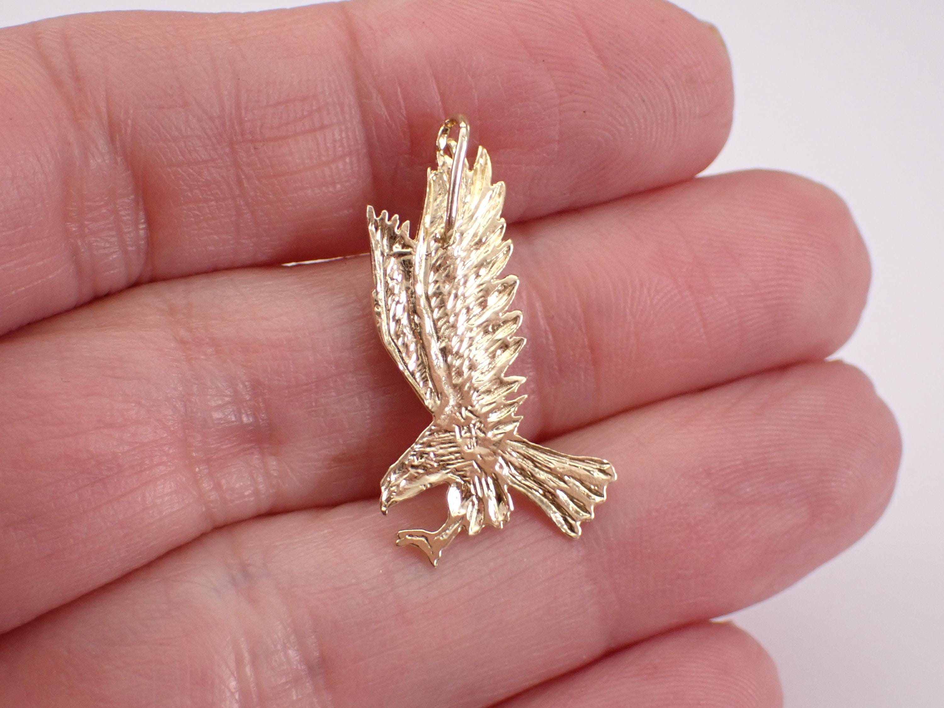Vintage 14K Yellow Gold Eagle Charm Pendant. This charm is 14K Yellow gold, measures 28 X 15 mm and weighs 1.3 grams. I will ship this pendant promptly in a gift pouch.