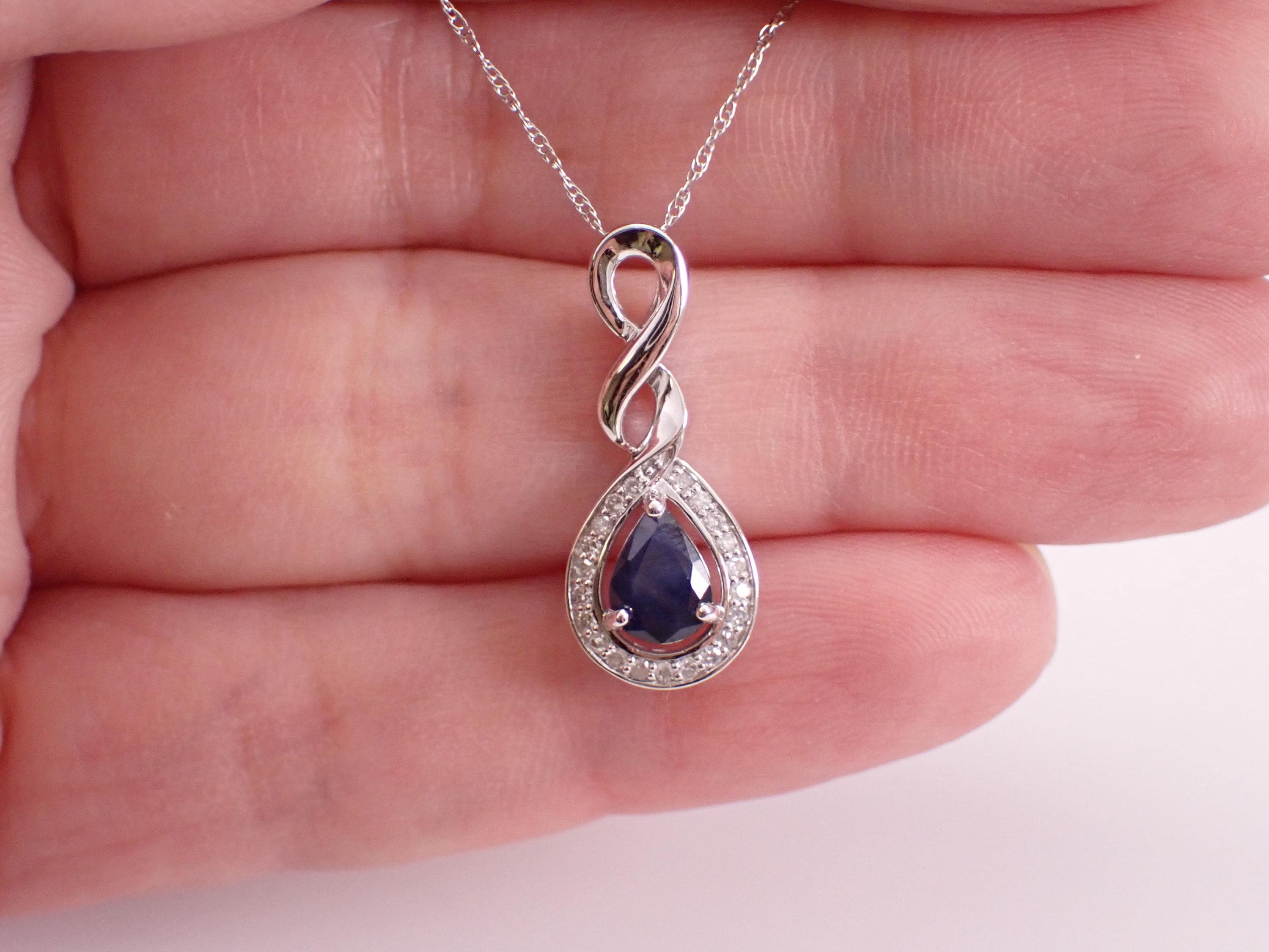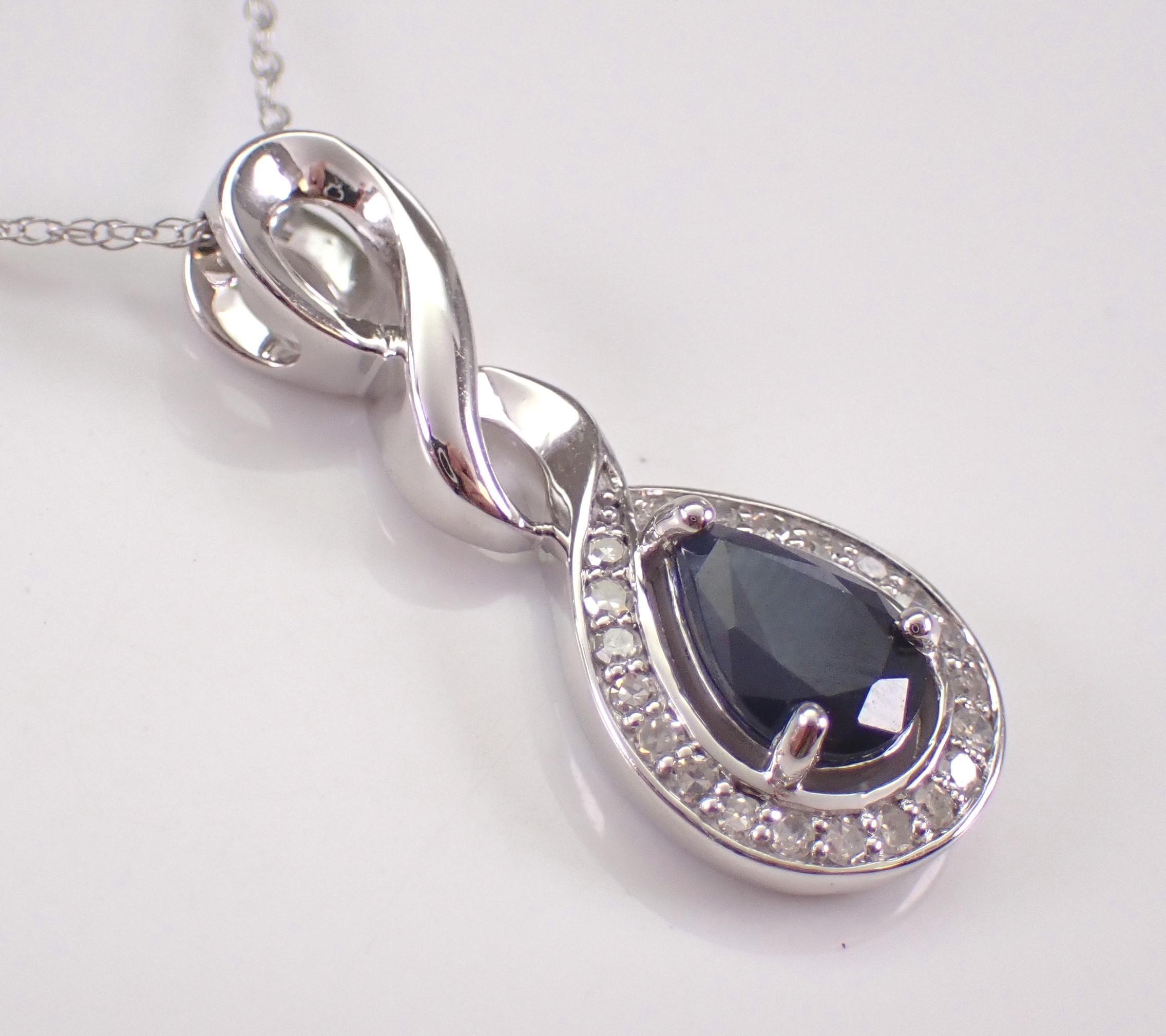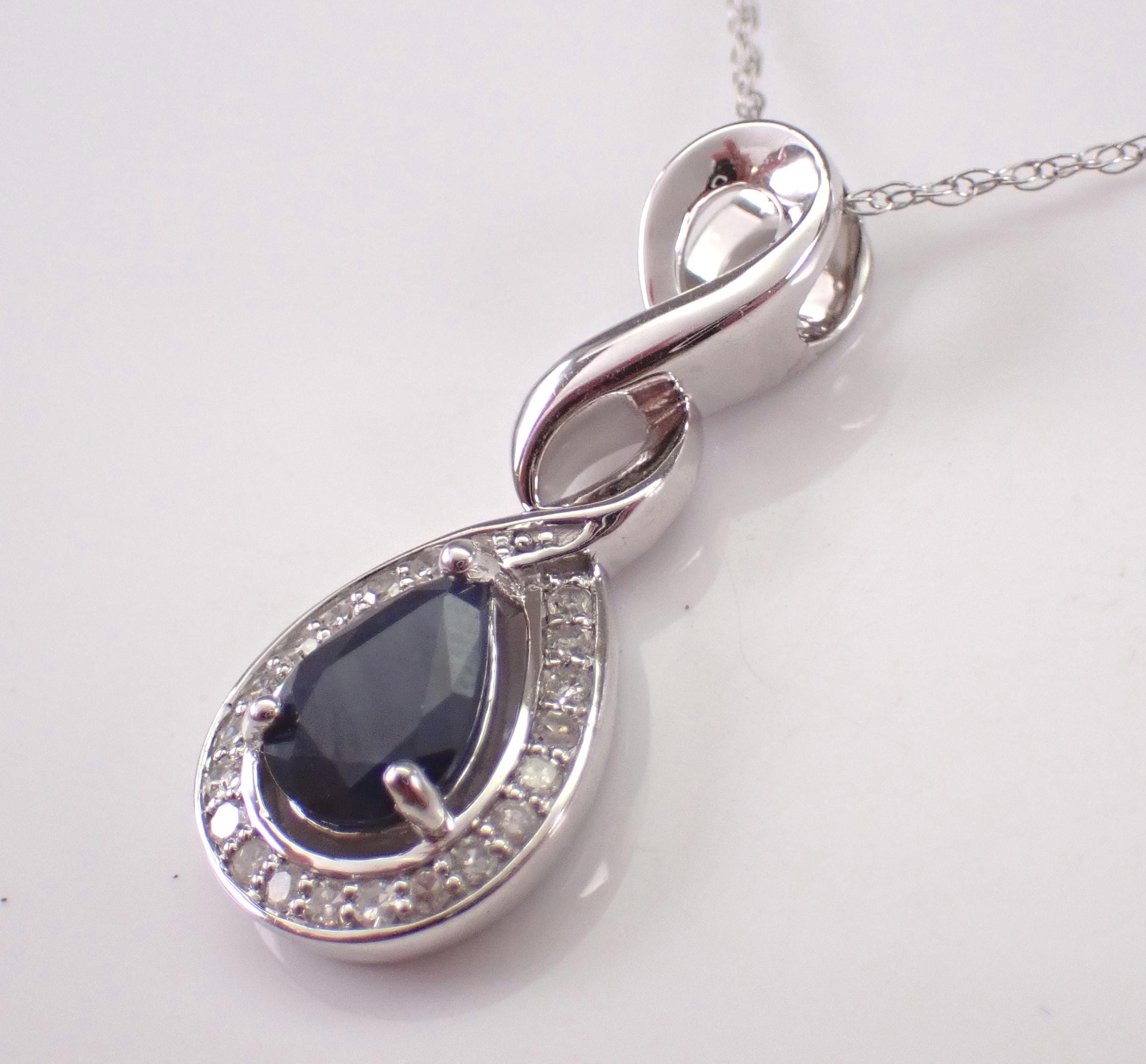 White Gold Diamond and Sapphire Pendant Necklace Chain.