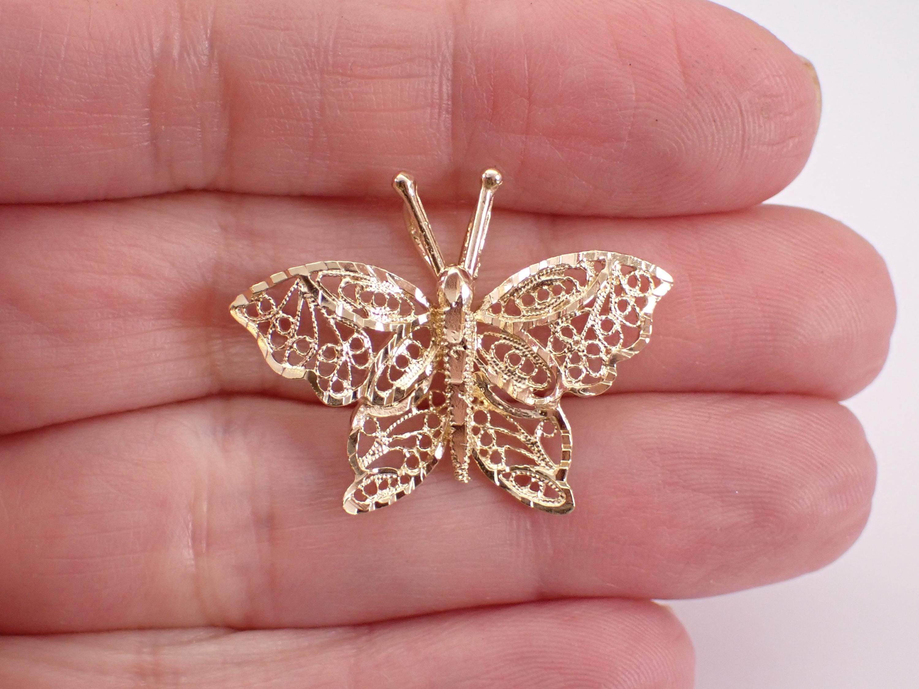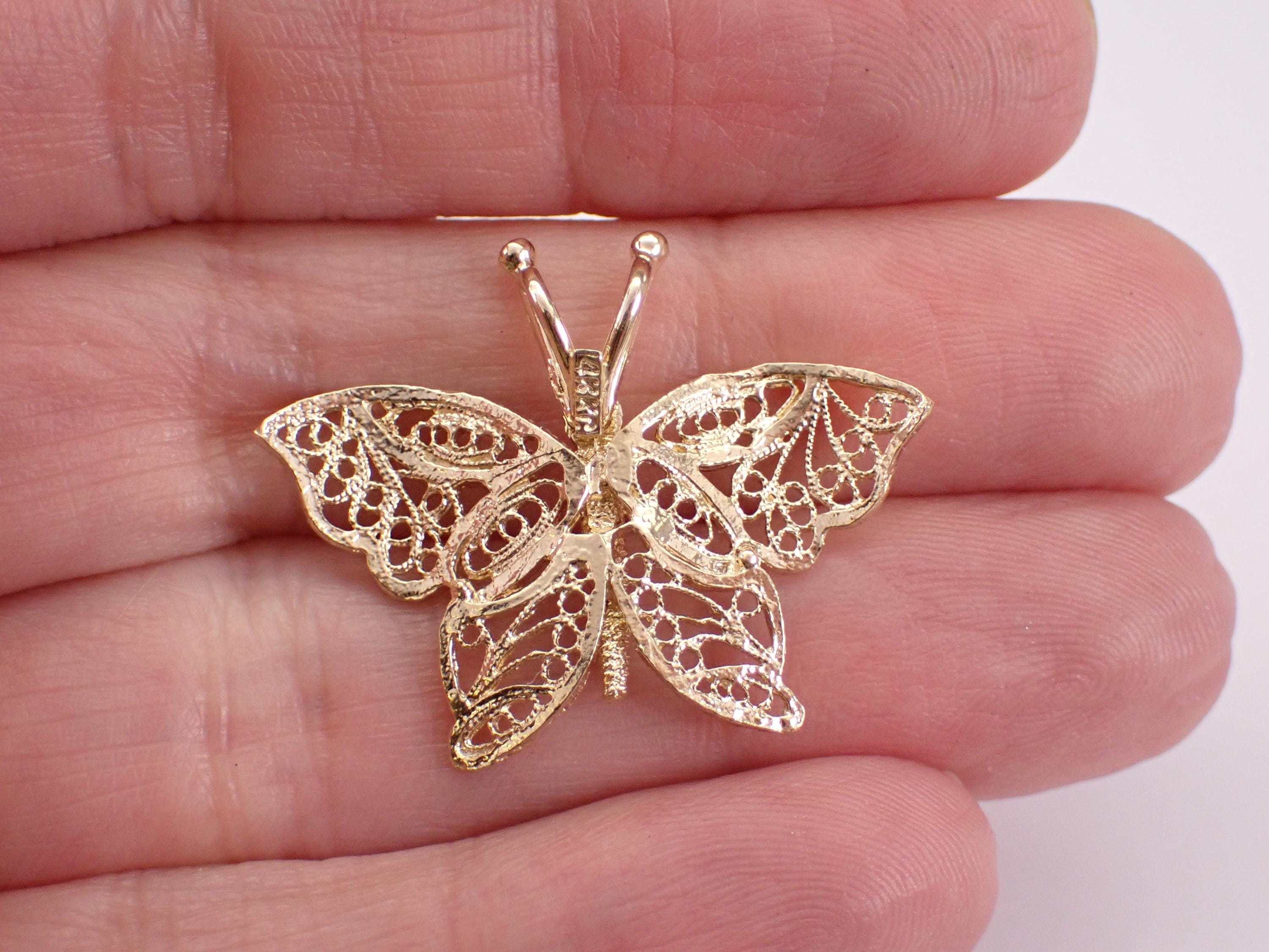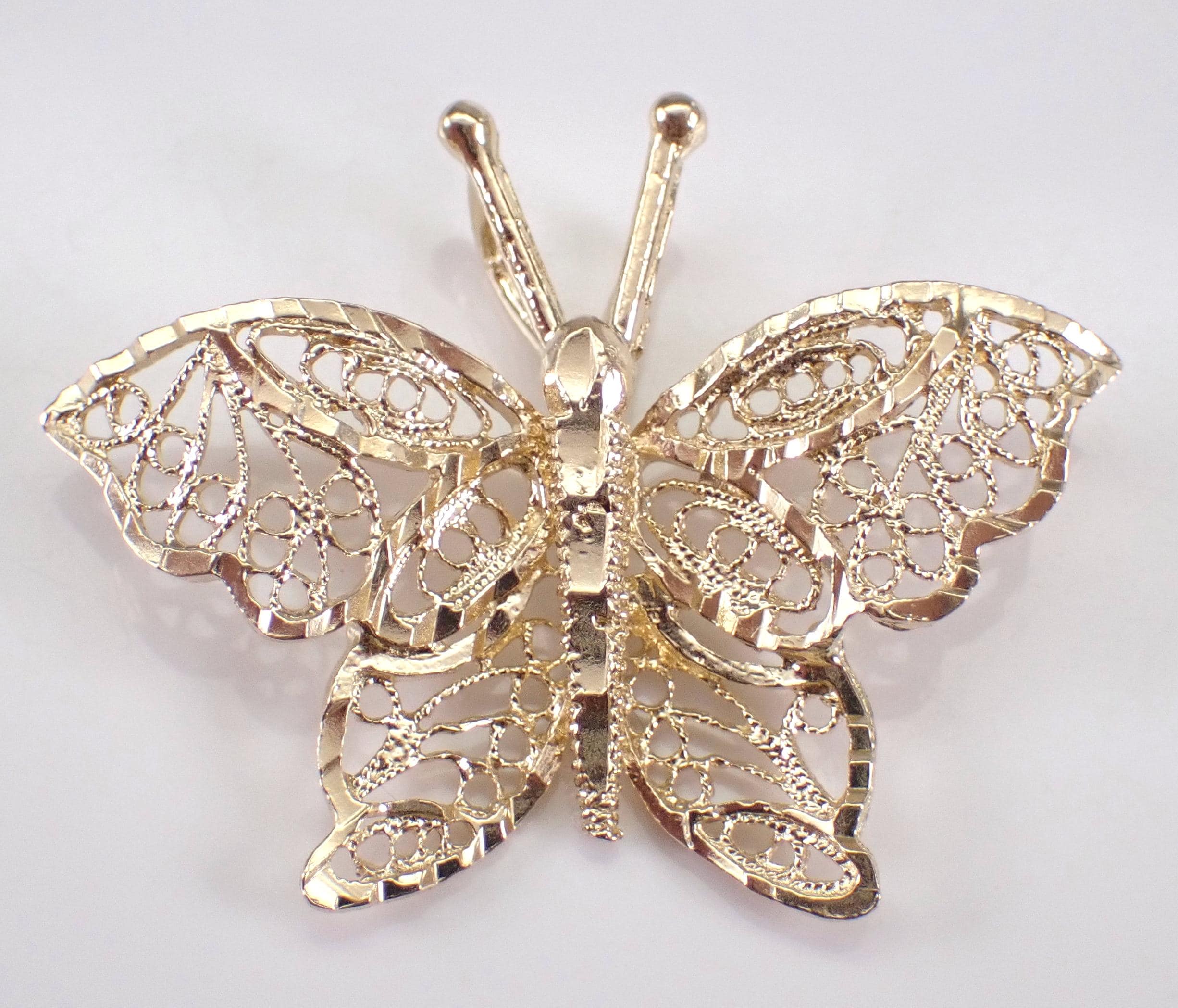Vintage 14K Yellow Gold Butterfly Charm Pendant. This pendant is 14K Yellow gold and weighs 2.8 grams. This butterfly measures 24 X 31 mm. I will ship this pendant promptly in a gift pouch.