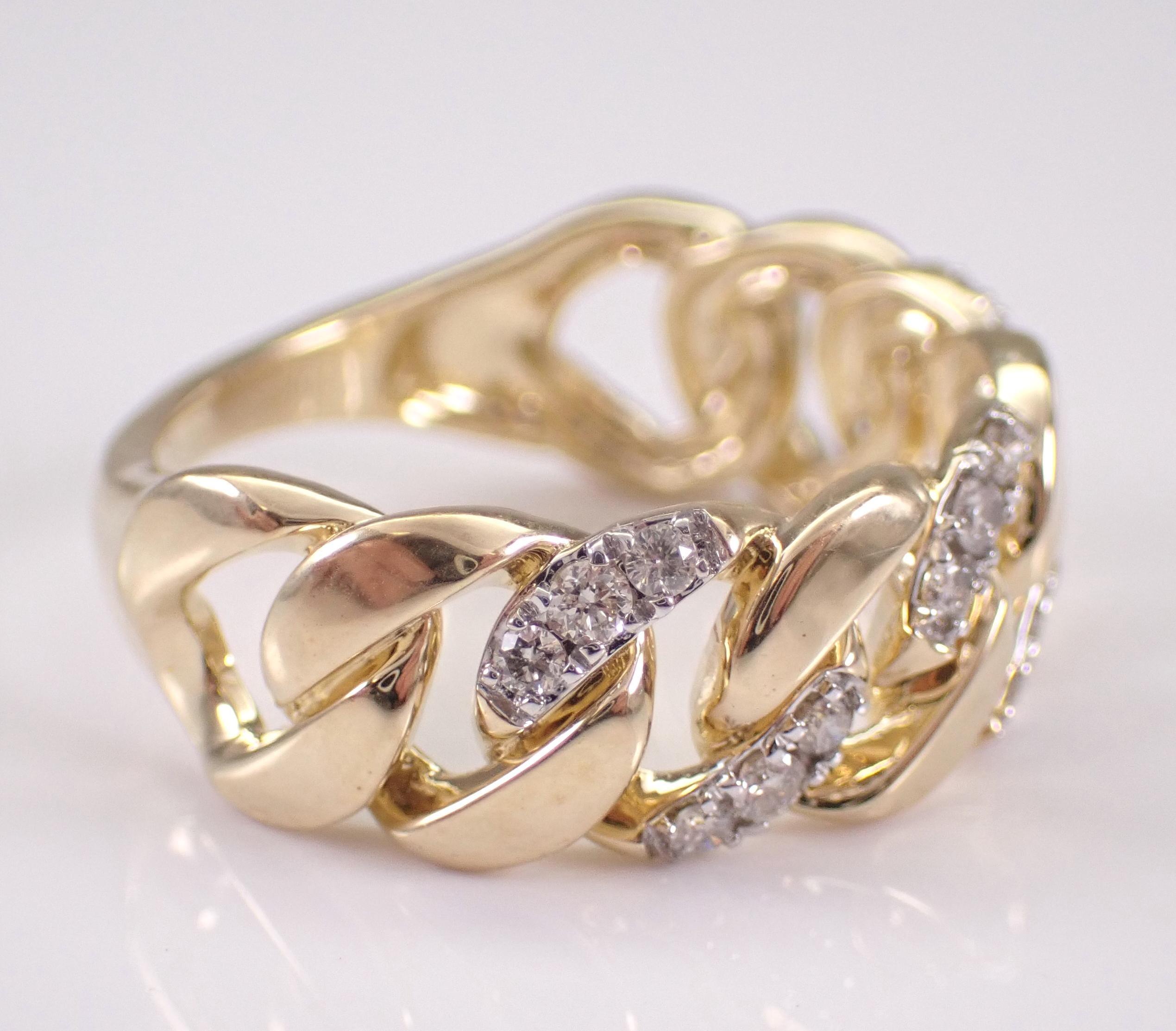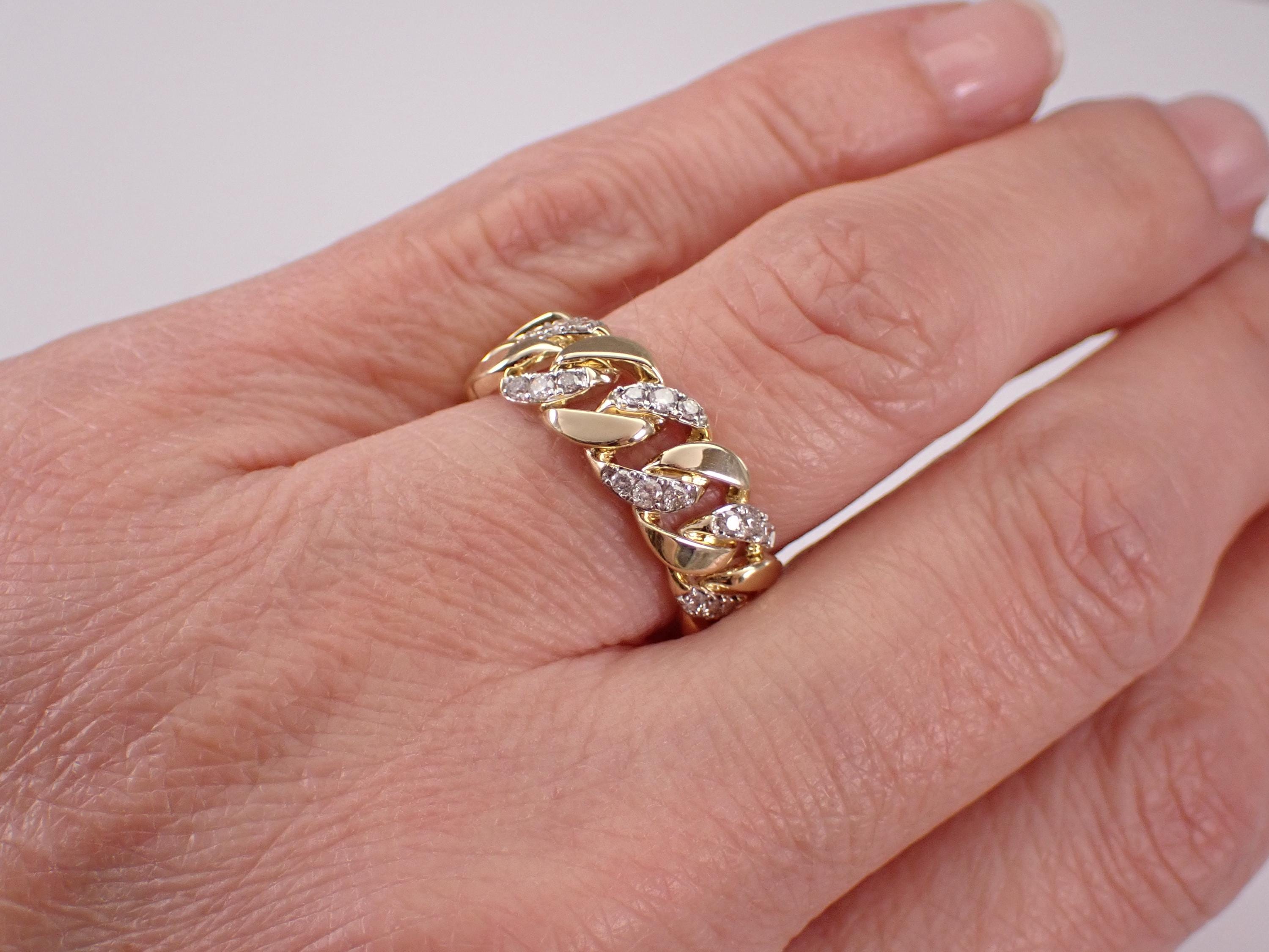 Yellow Gold Diamond Wedding Ring Anniversary Band. This ring is set with eighteen genuine round brilliant diamonds. These diamonds are H color, SI/I1 clarity and weigh a total of .25 carat. This ring is 10KT Yellow Gold, weighs 3.9 grams, measures 7.5 mm in width and is a finger size 7, can be resized (please inquire about sizing with the finger size you need). This ring will be accompanied by an appraisal written by a GIA Certified Diamond Grader with the retail replacement value of $1,649.00. I will ship this ring promptly in a beautiful gift box.