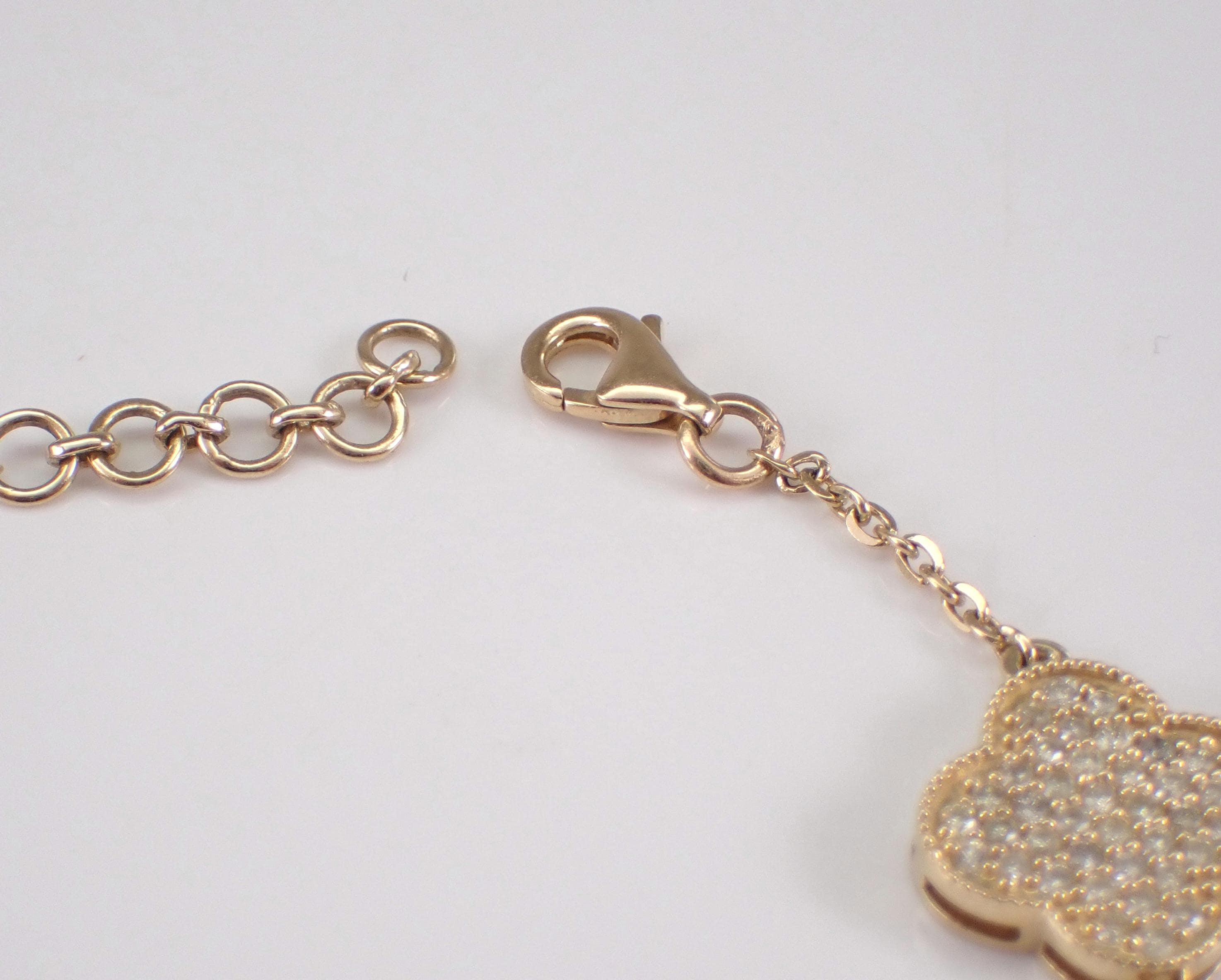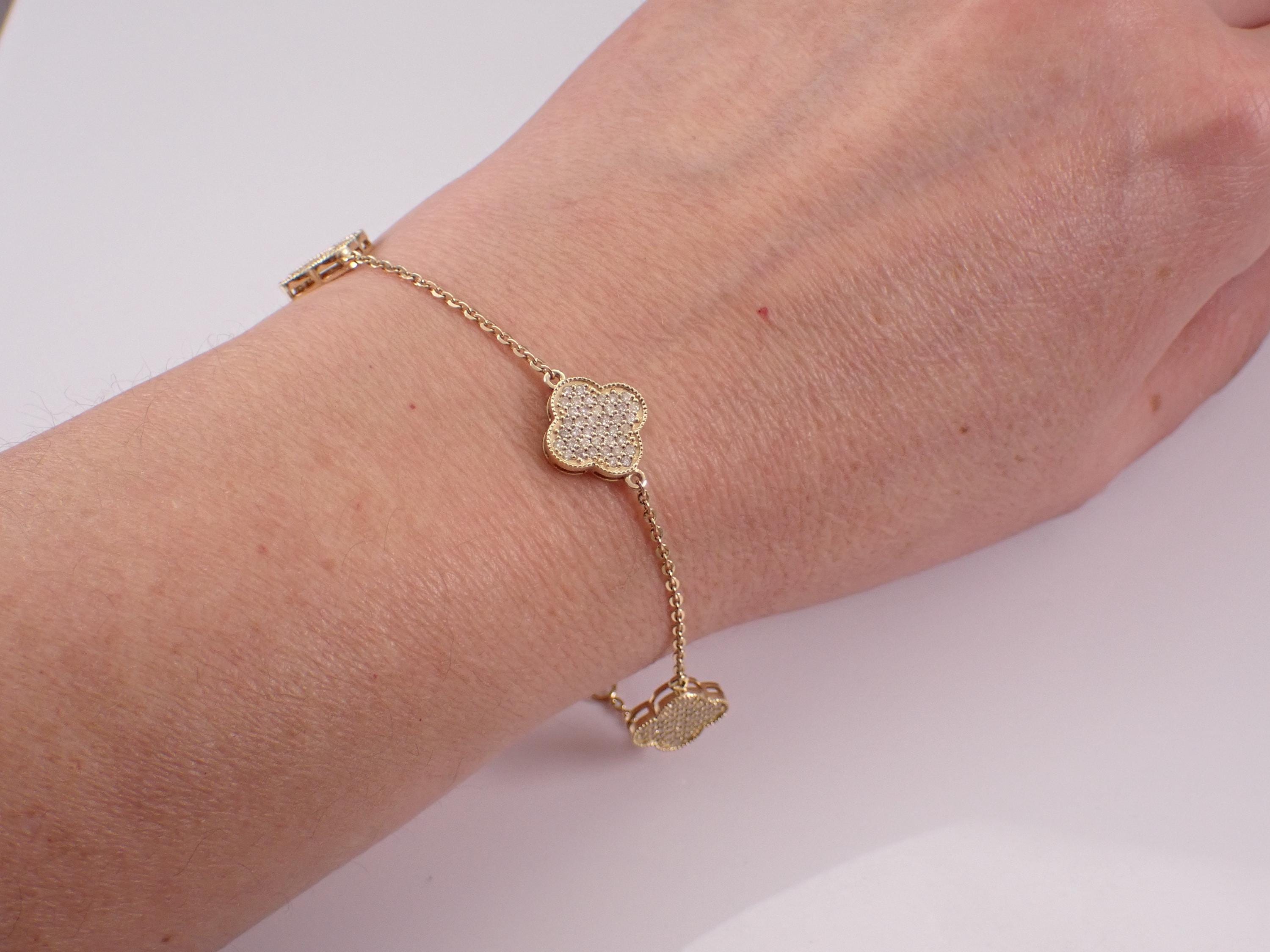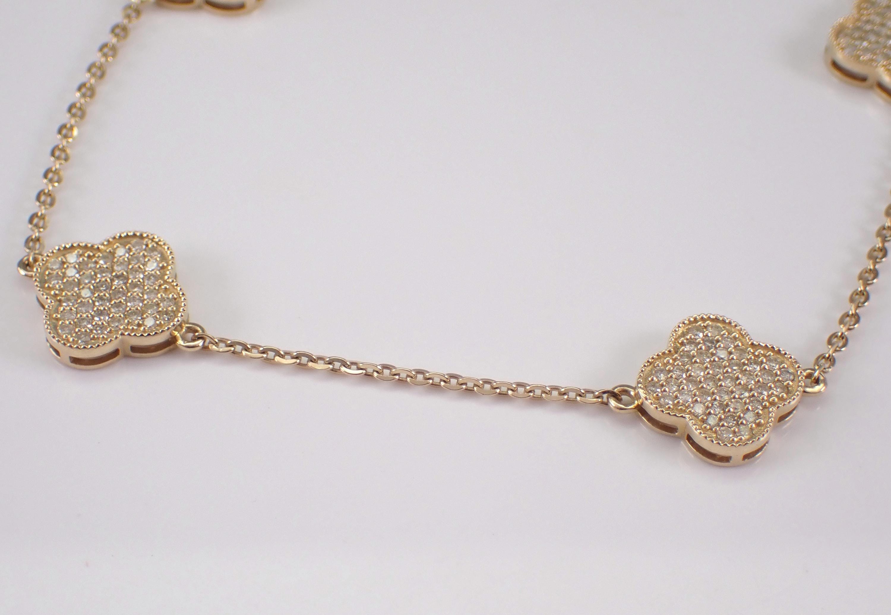 14K Yellow Gold Diamond Cluster Station Tennis Bracelet. This bracelet is set with one hundred and sixty (160) genuine Round Brilliant Diamonds. These diamonds are H color, SI/I1 clarity and weigh a total of 1.00 carat. This bracelet measures 7.75" in length overall but is adjustable for shorter 7" length, weighs 5.6 grams and is 14KT Yellow Gold. Each clover cluster measures 12 X 12 mm. This bracelet will be accompanied by an appraisal written by a GIA Certified Diamond Grader with the retail replacement value of $4,095.00. I will ship this bracelet promptly in a beautiful gift box.