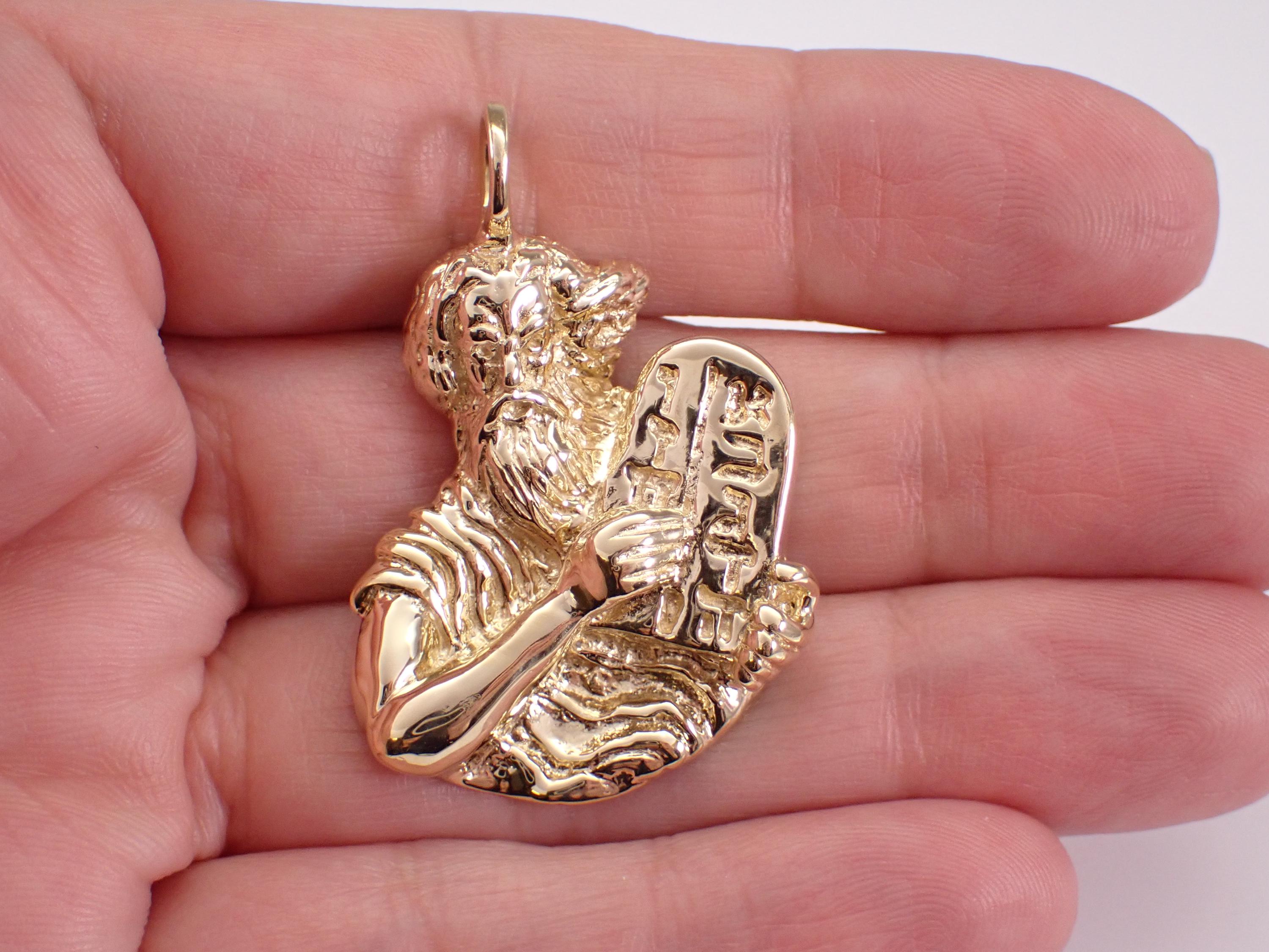 Vintage 14K Yellow Gold Moses Charm Pendant. This charm is 14K Solid yellow gold and measures 34 X 27 mm without the bail. This charm weighs 14.1 grams. I will ship this pendant promptly in a beautiful gift pouch.