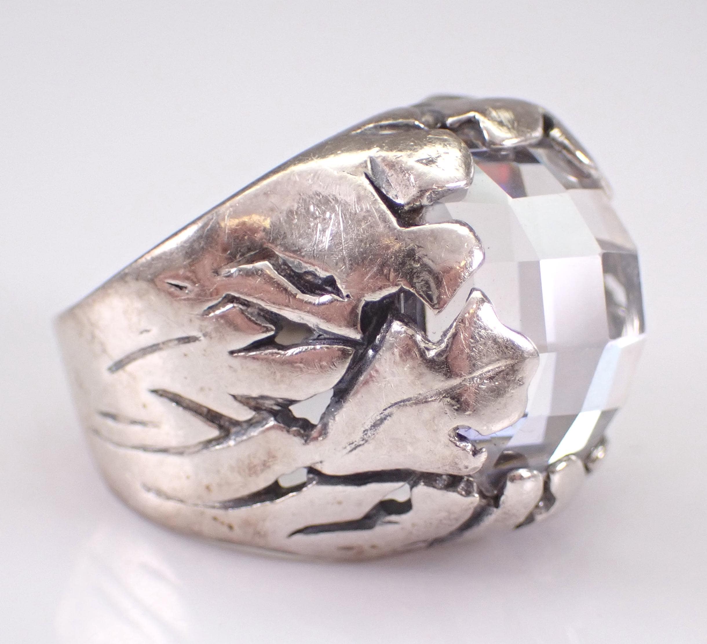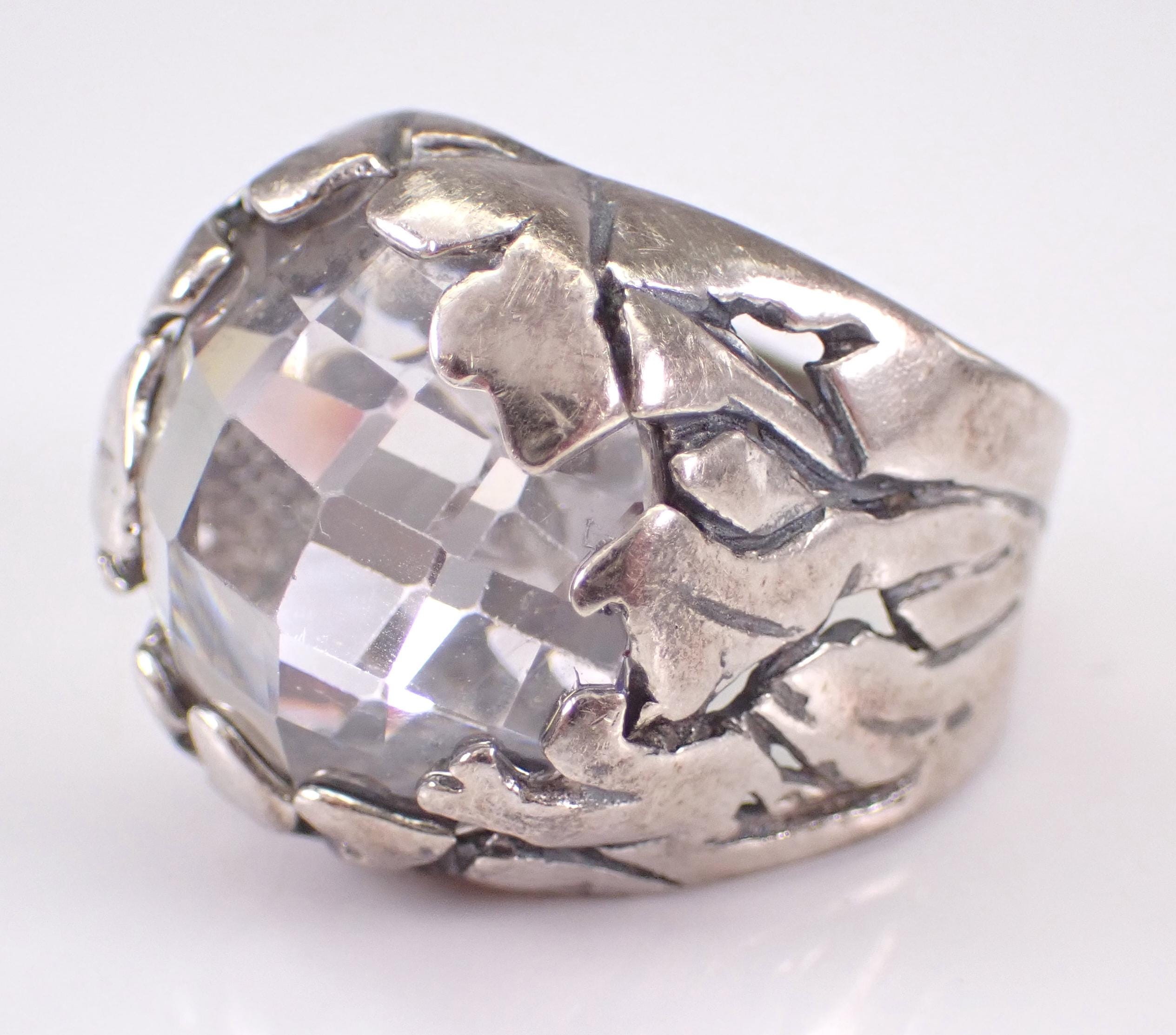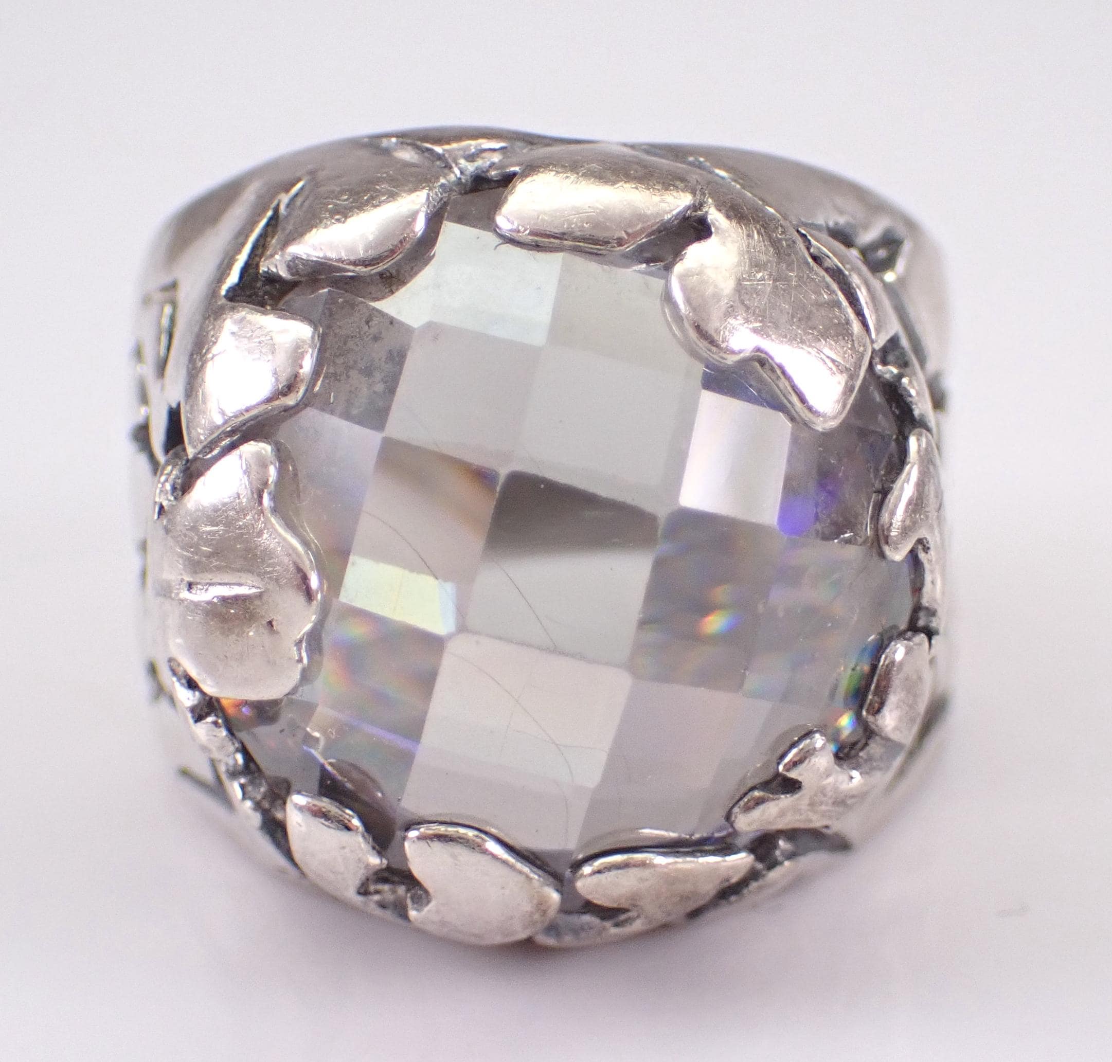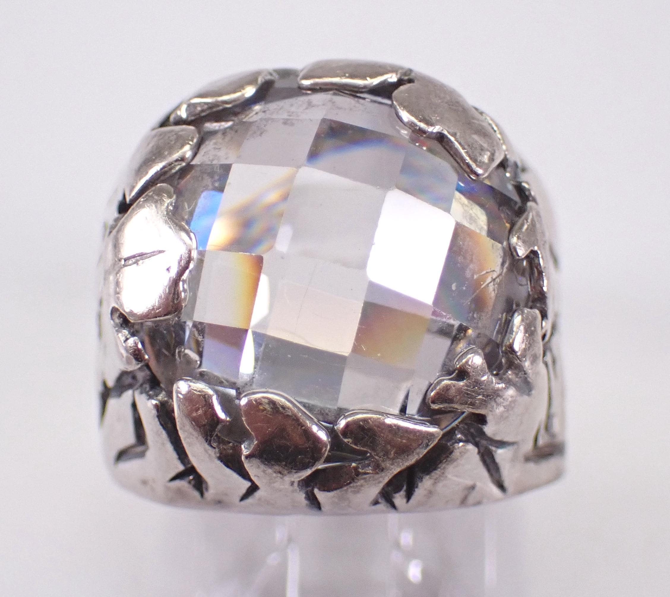 Vintage Sterling Silver Cubic Zirconia Engagement Ring. This ring is set with one Round Cubic Zirconia (CZ) in the center. This Cubic Zirconia measures 16 mm in diameter. This ring is Sterling Silver, weighs 10.9 grams and is a finger size 7. I will ship this ring promptly in a beautiful gift box.